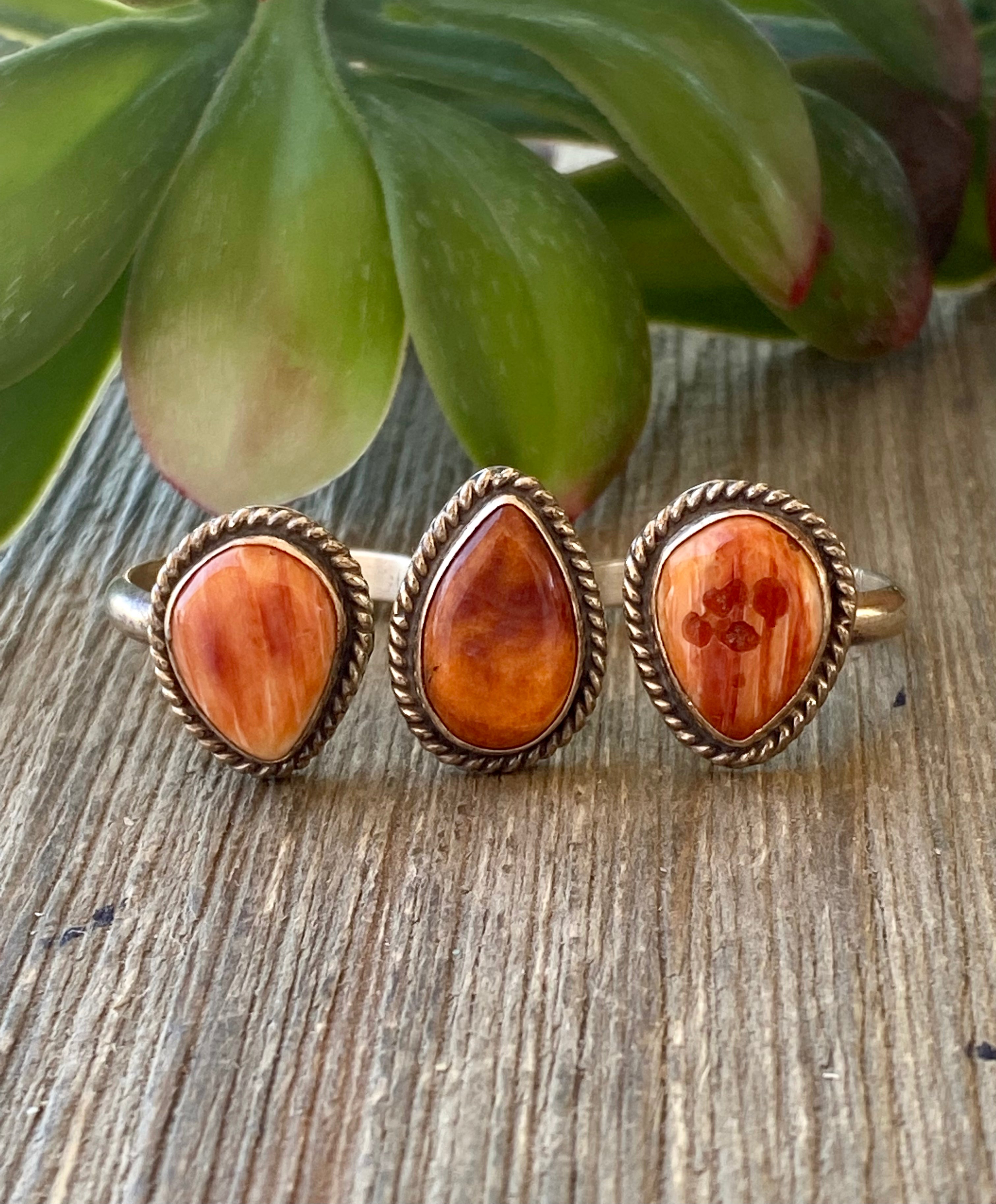 Navajo Made Spiny Oyster & Sterling Silver Knuckle Adjustable Ring