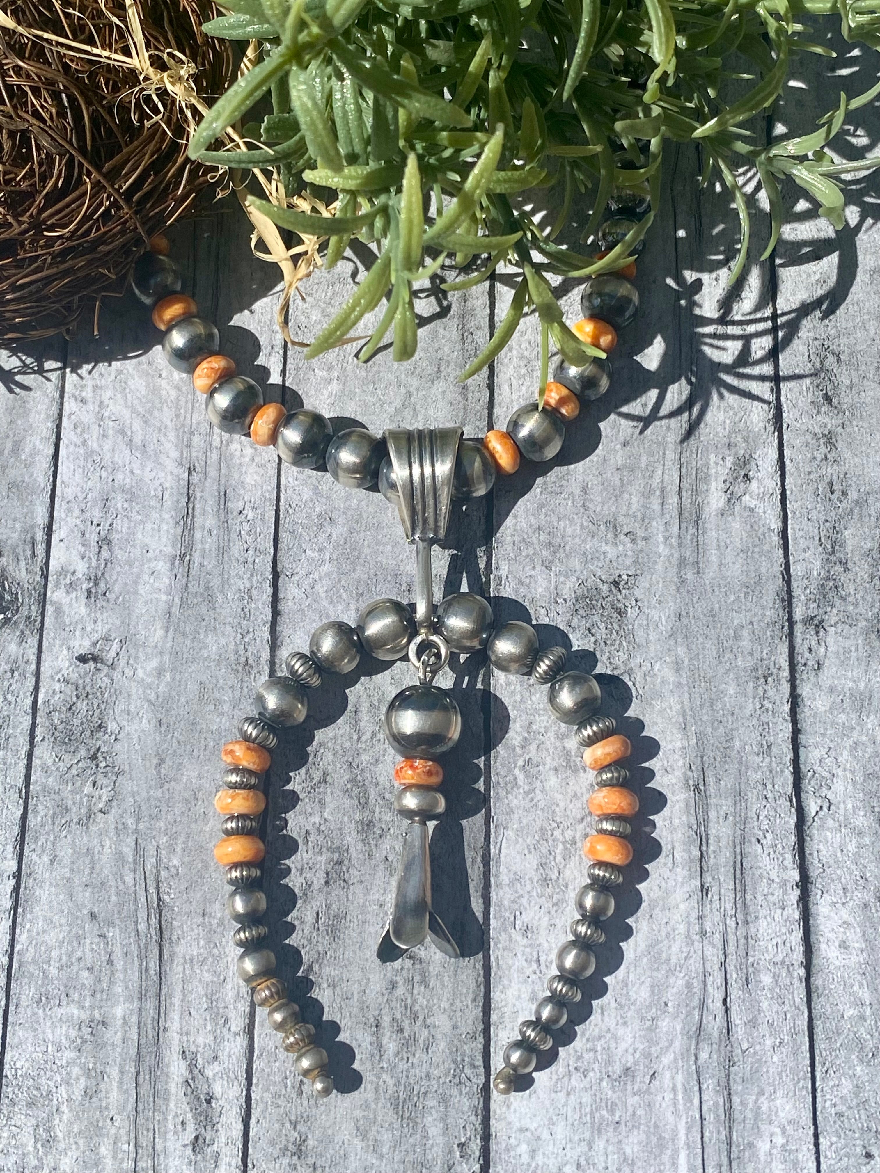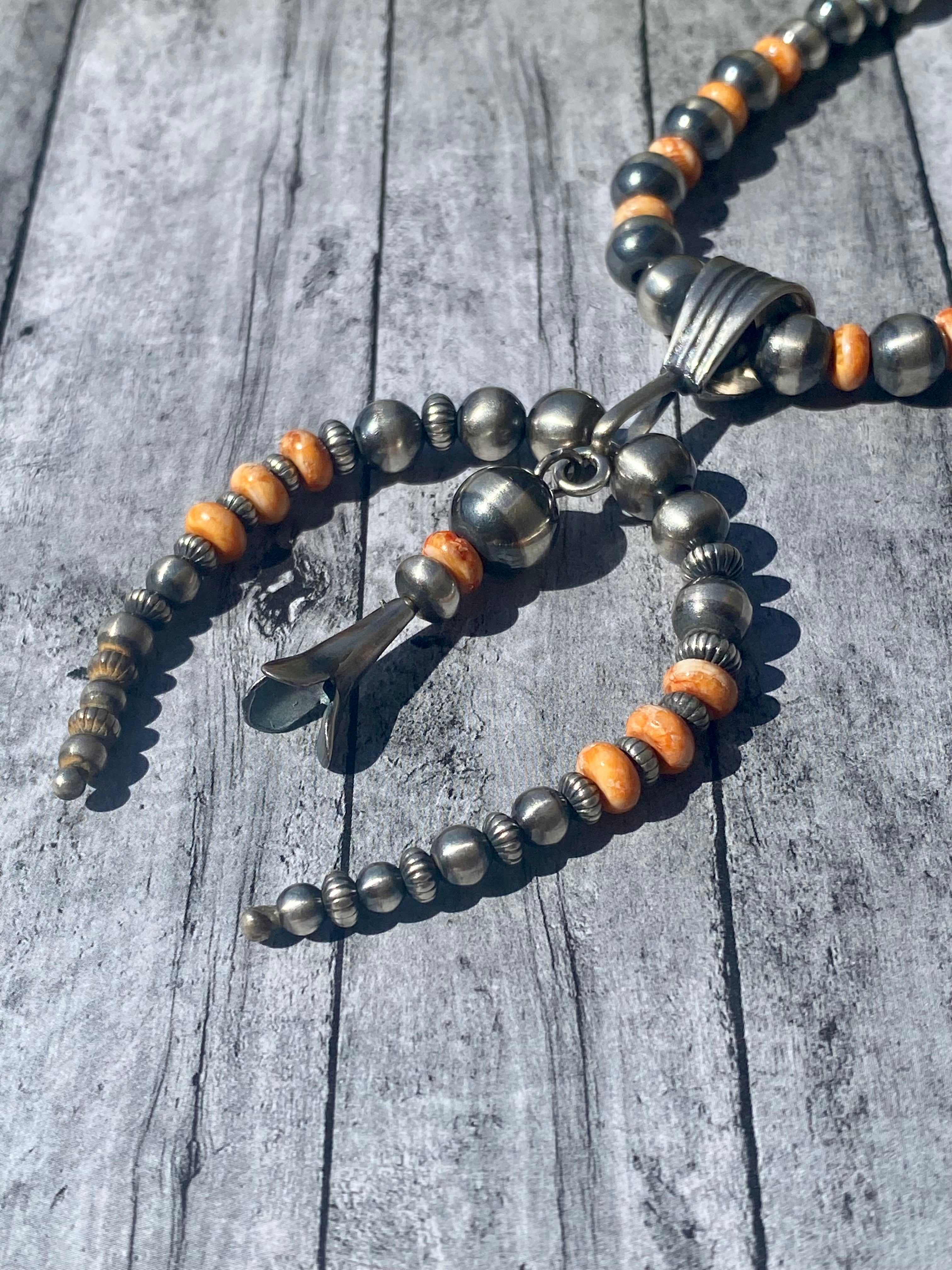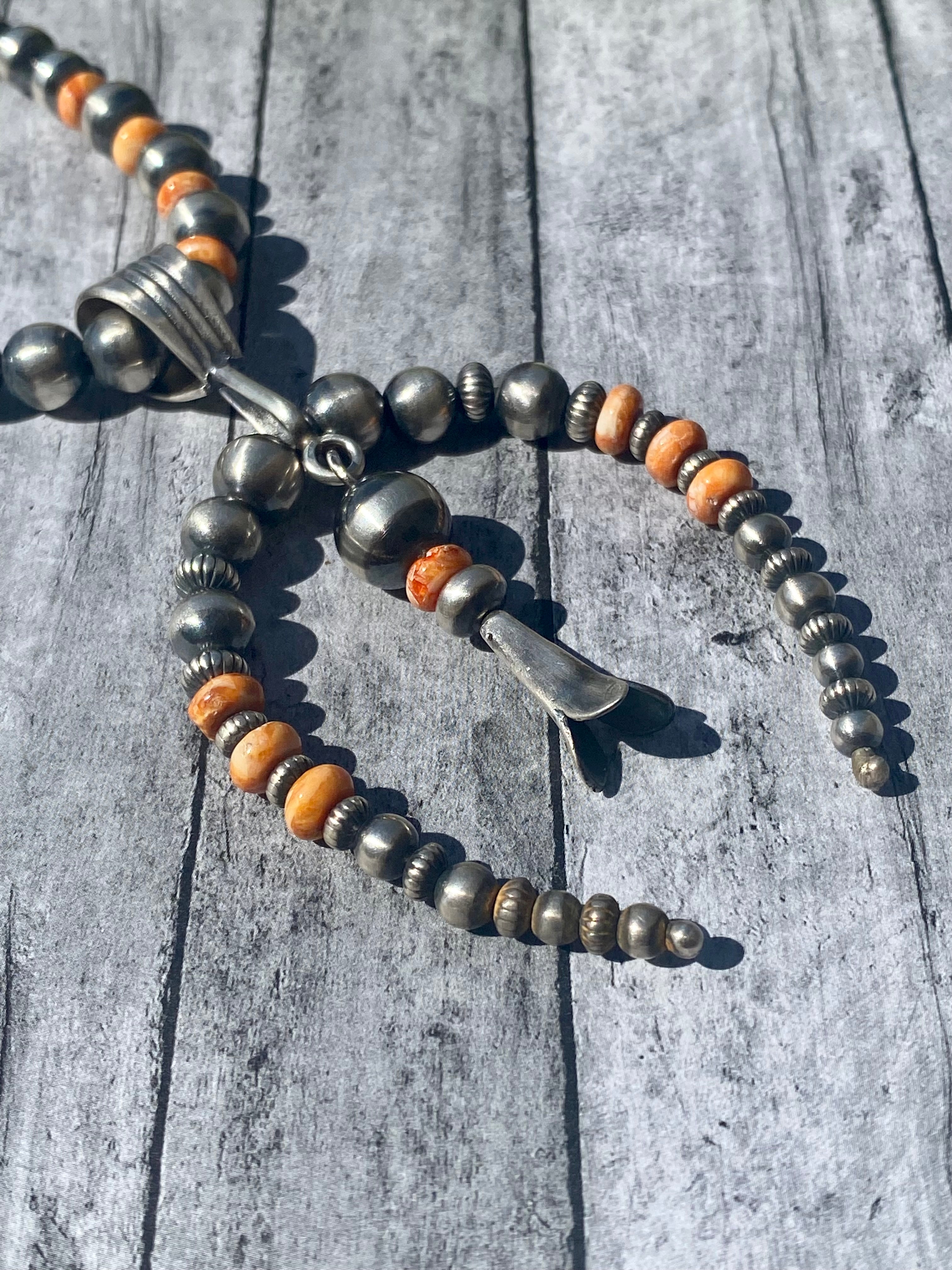 Navajo Made Spiny Oyster & Sterling Silver Naja Pearl Necklace