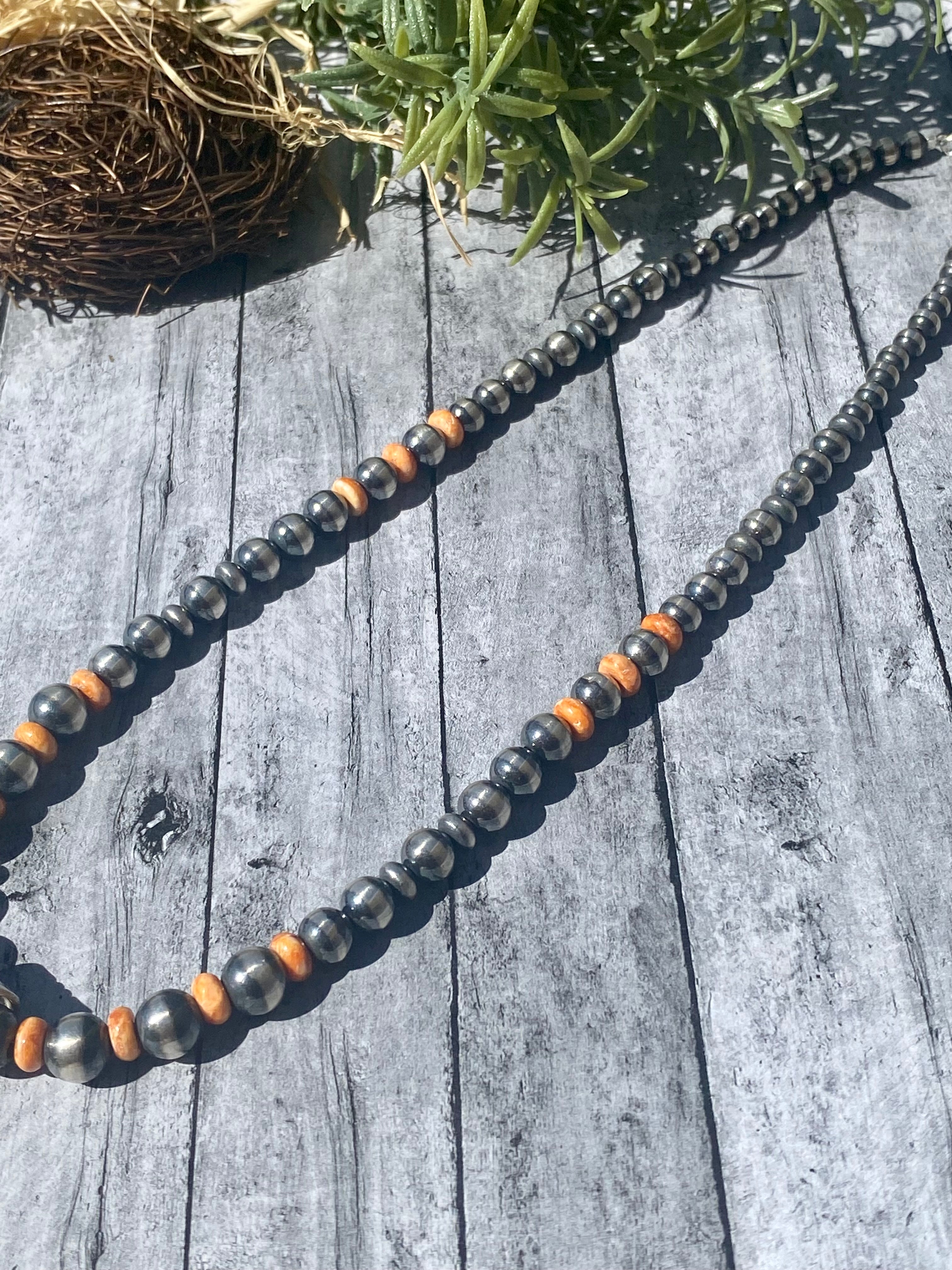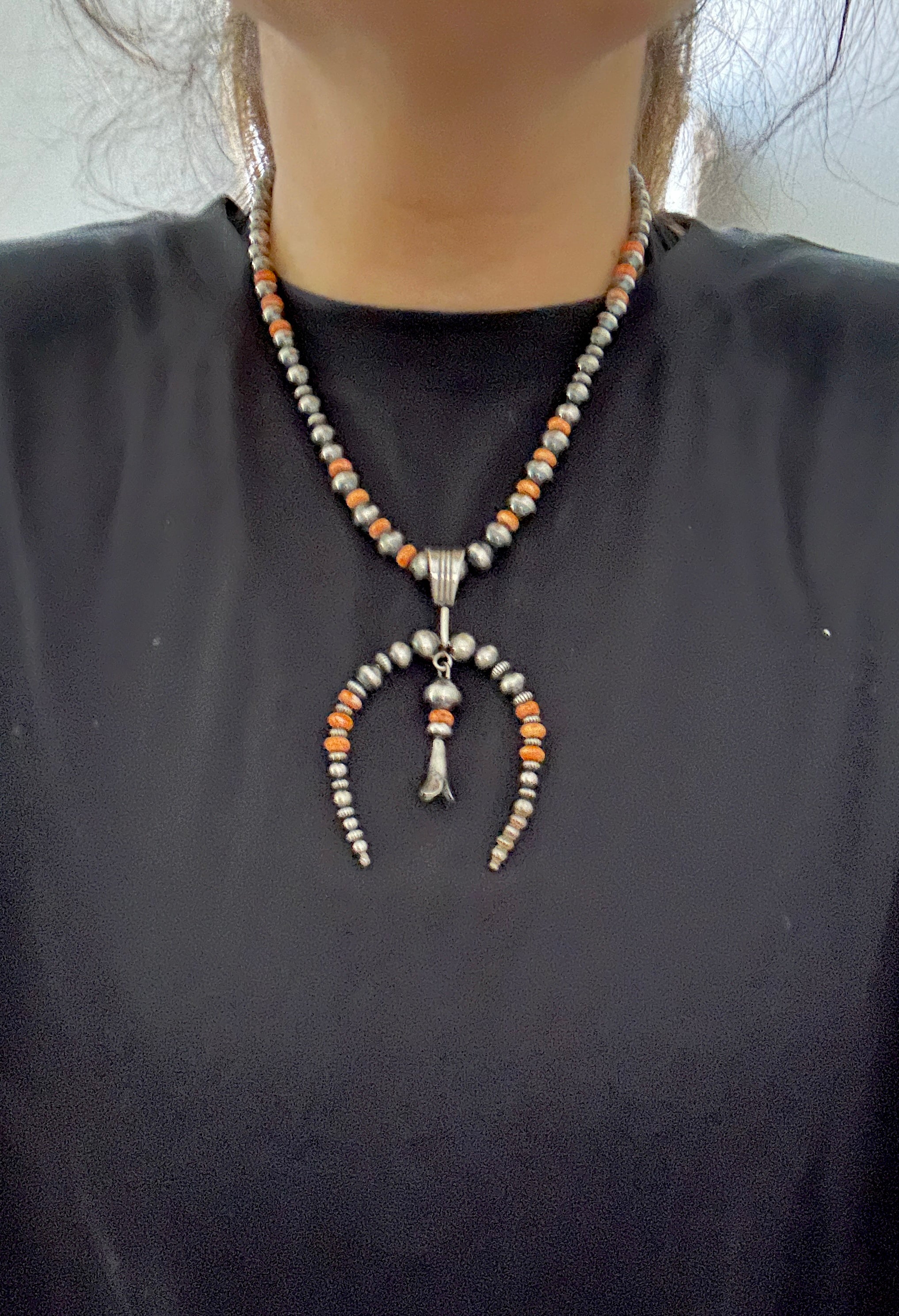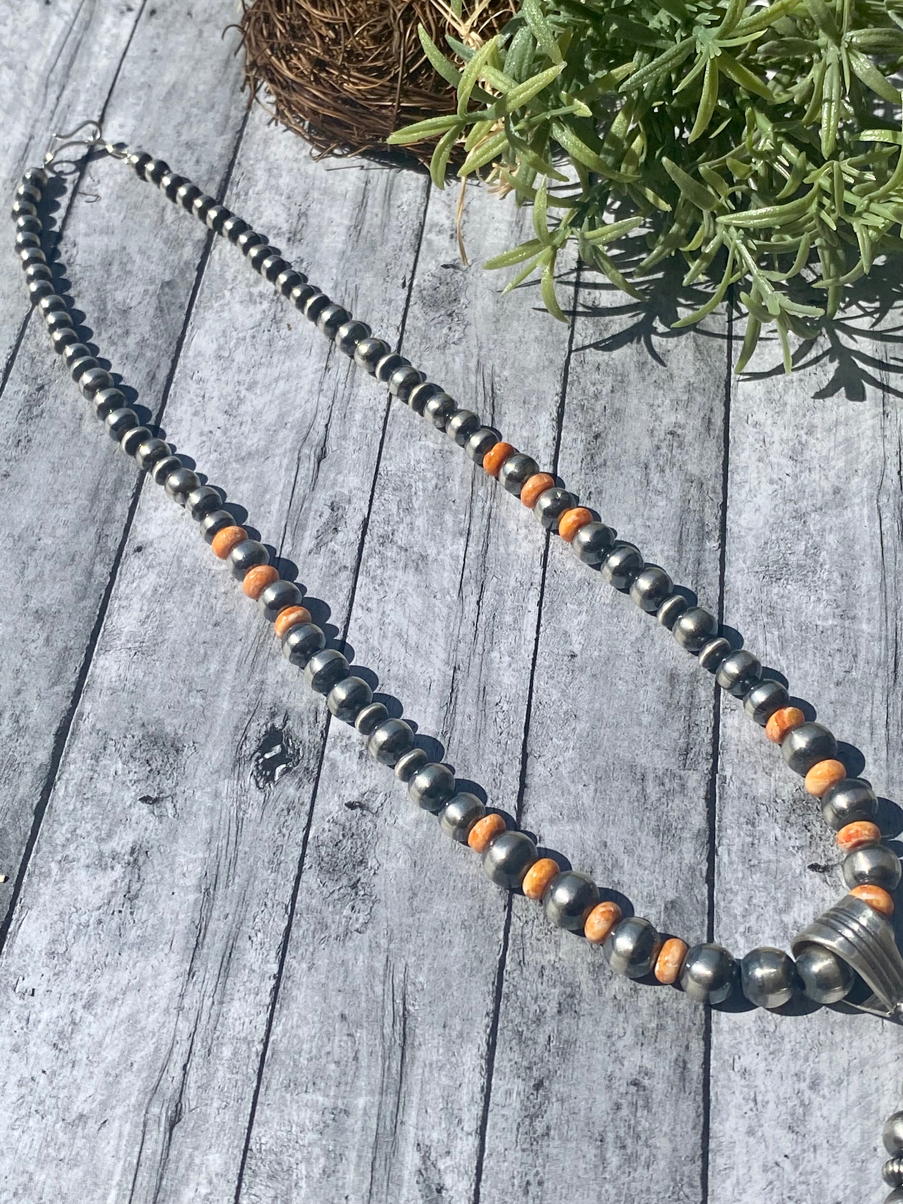 Navajo Made Spiny Oyster & Sterling Silver Naja Pearl Necklace