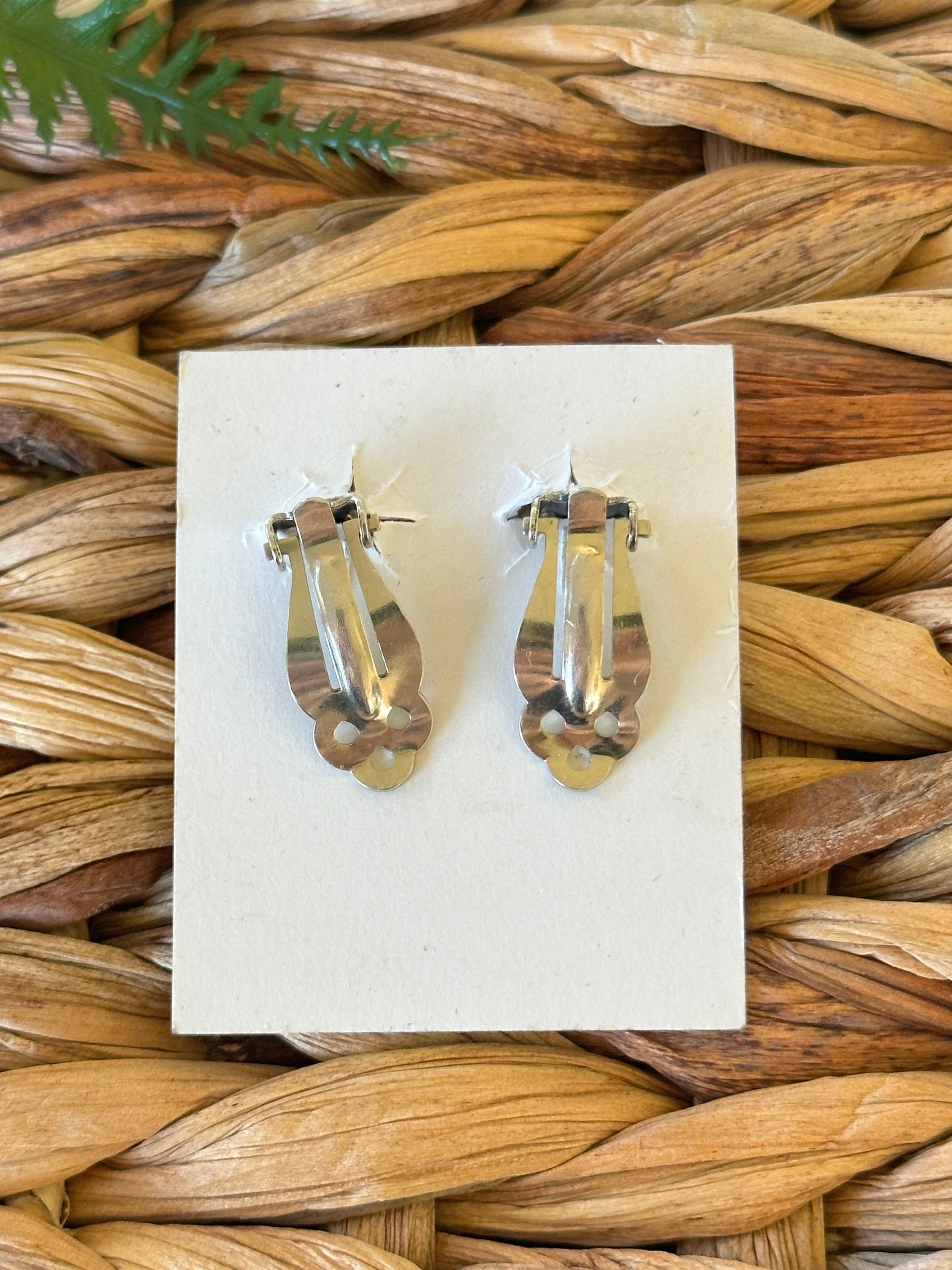 Beautiful post earrings, perfect for your everyday wear. Navajo Made Sterling Silver Clip On Shadowbox Earrings. It measures 1 inch long and just under 1/2 of an inch wide. Signed by the artist and stamped sterling silver.