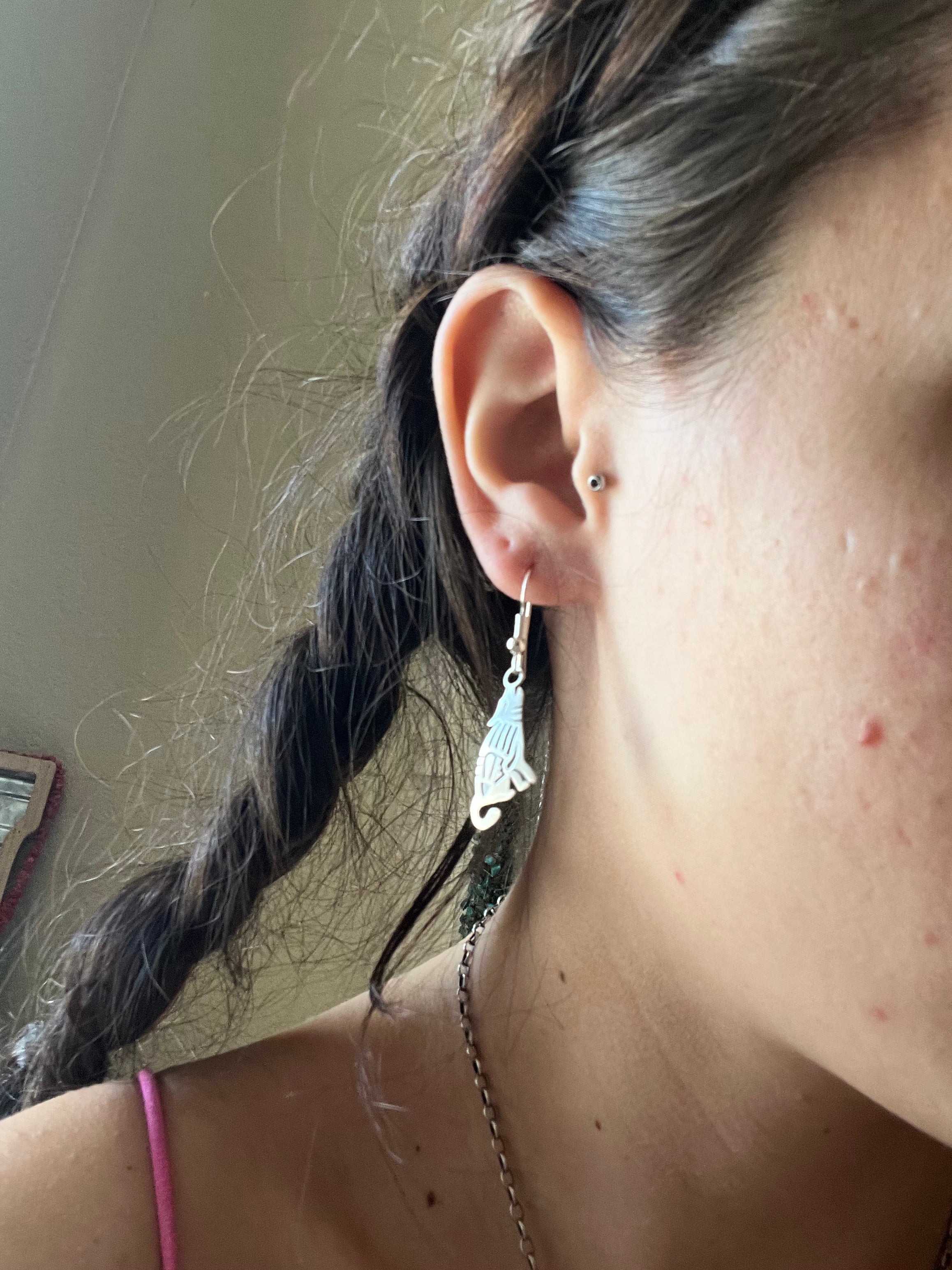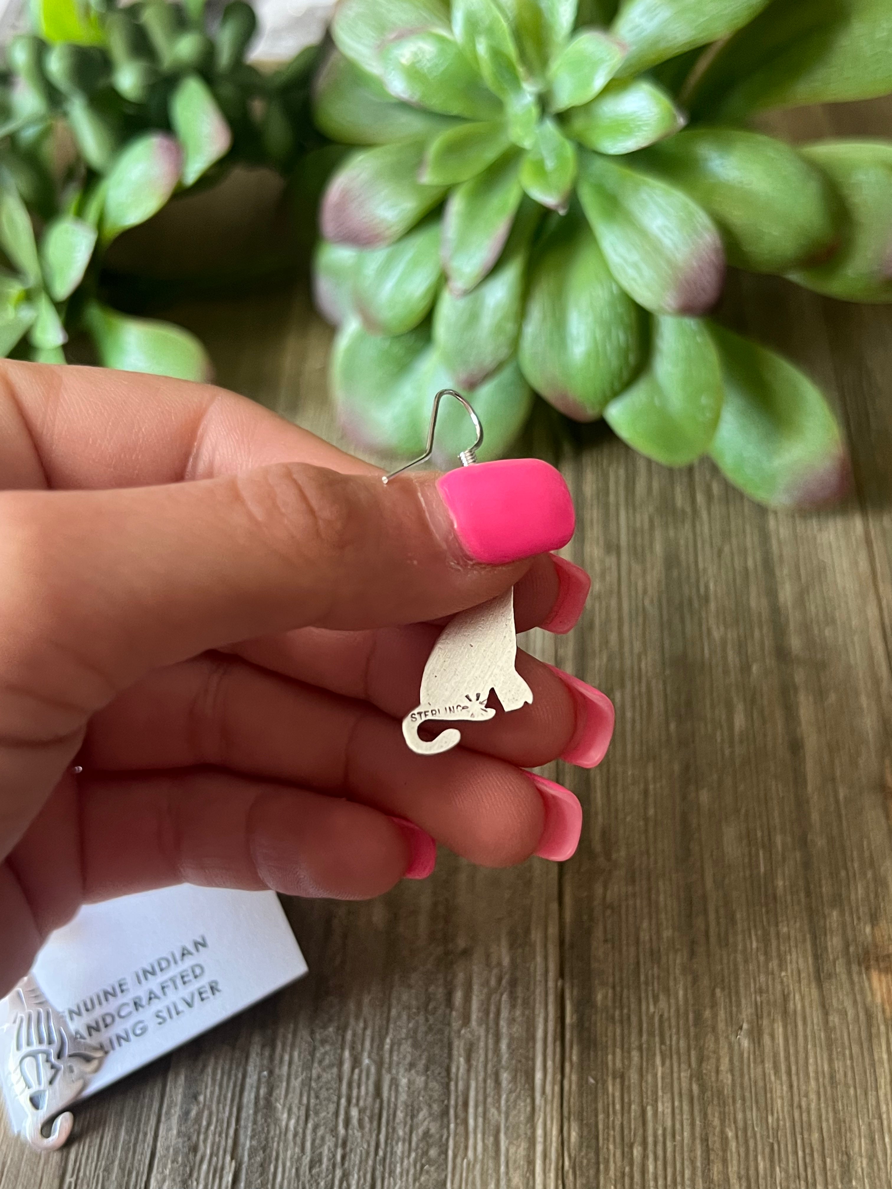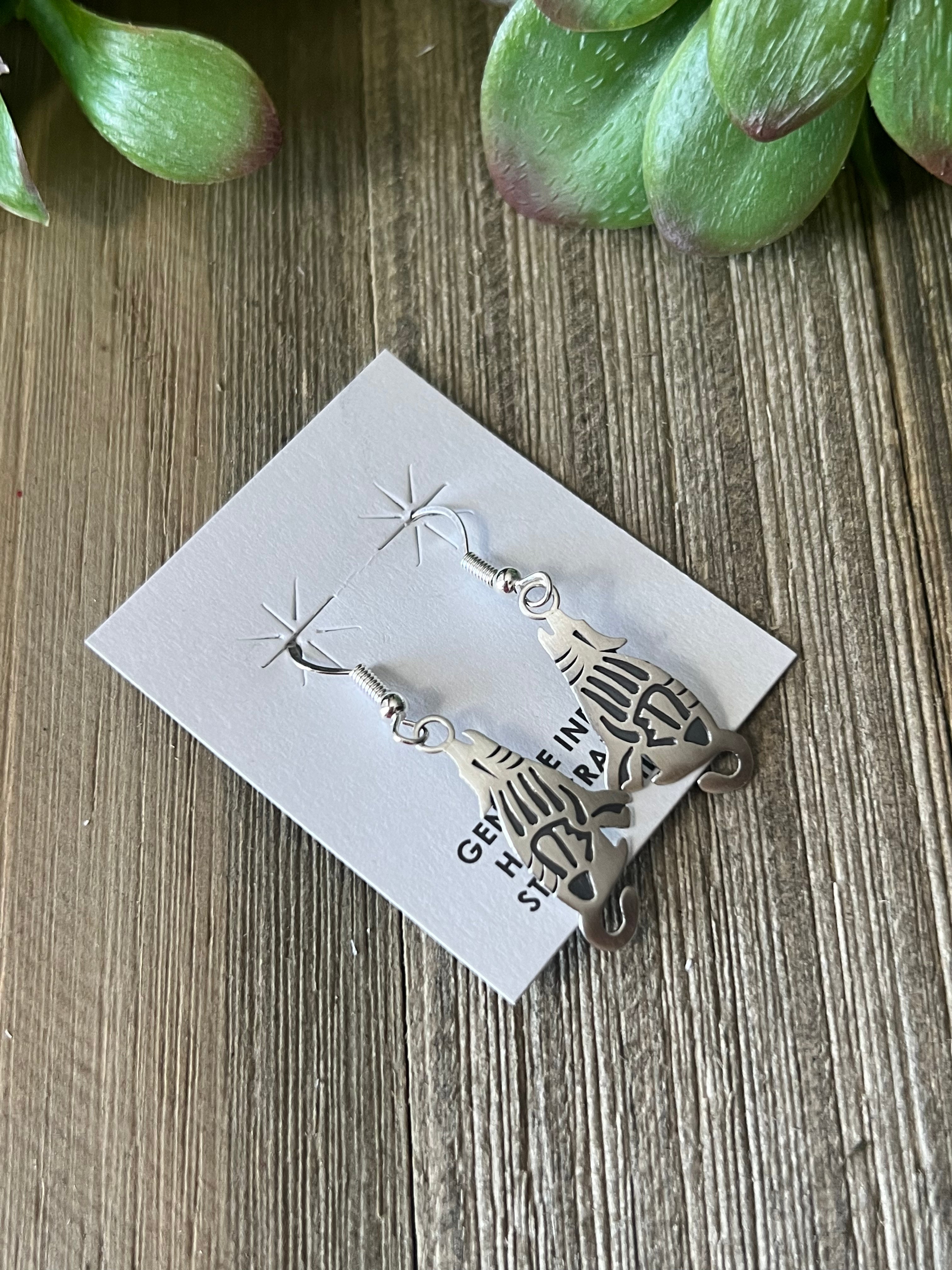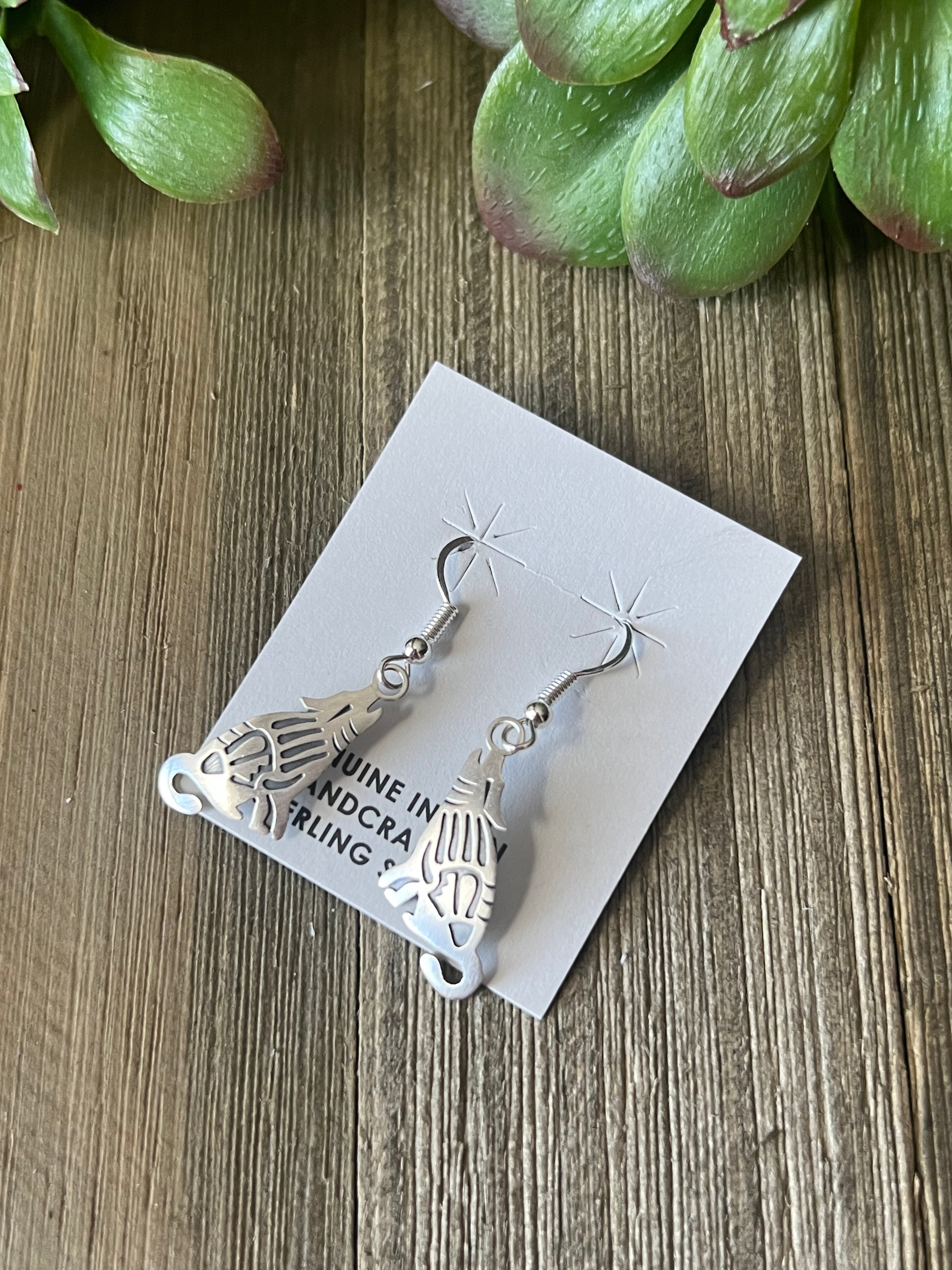 Navajo Made Sterling Silver Dangle Coyote Earrings