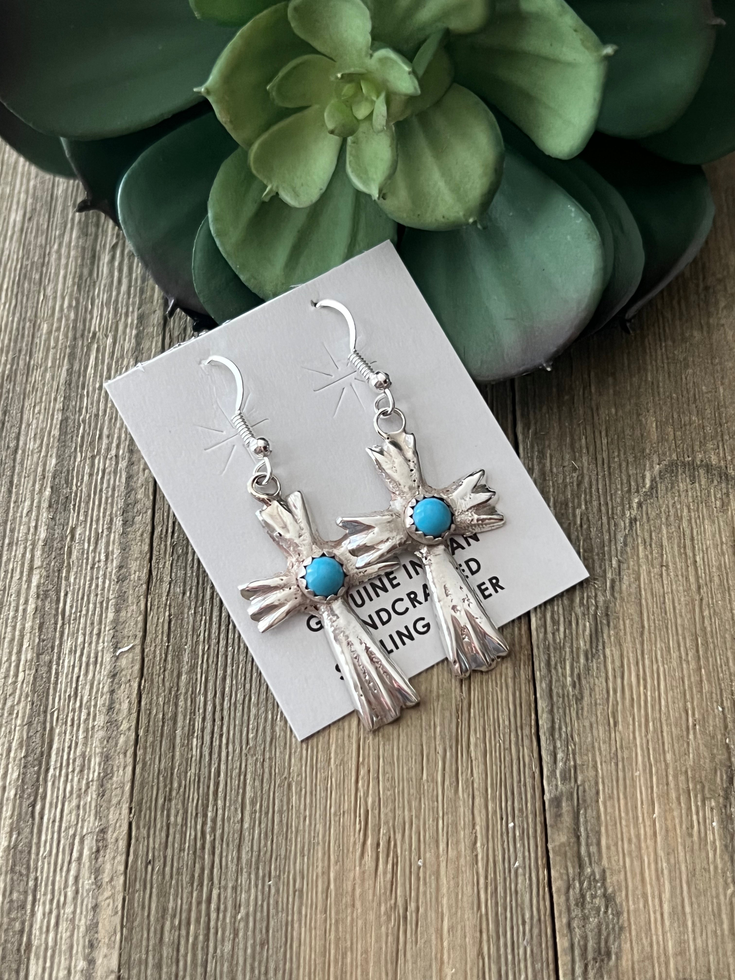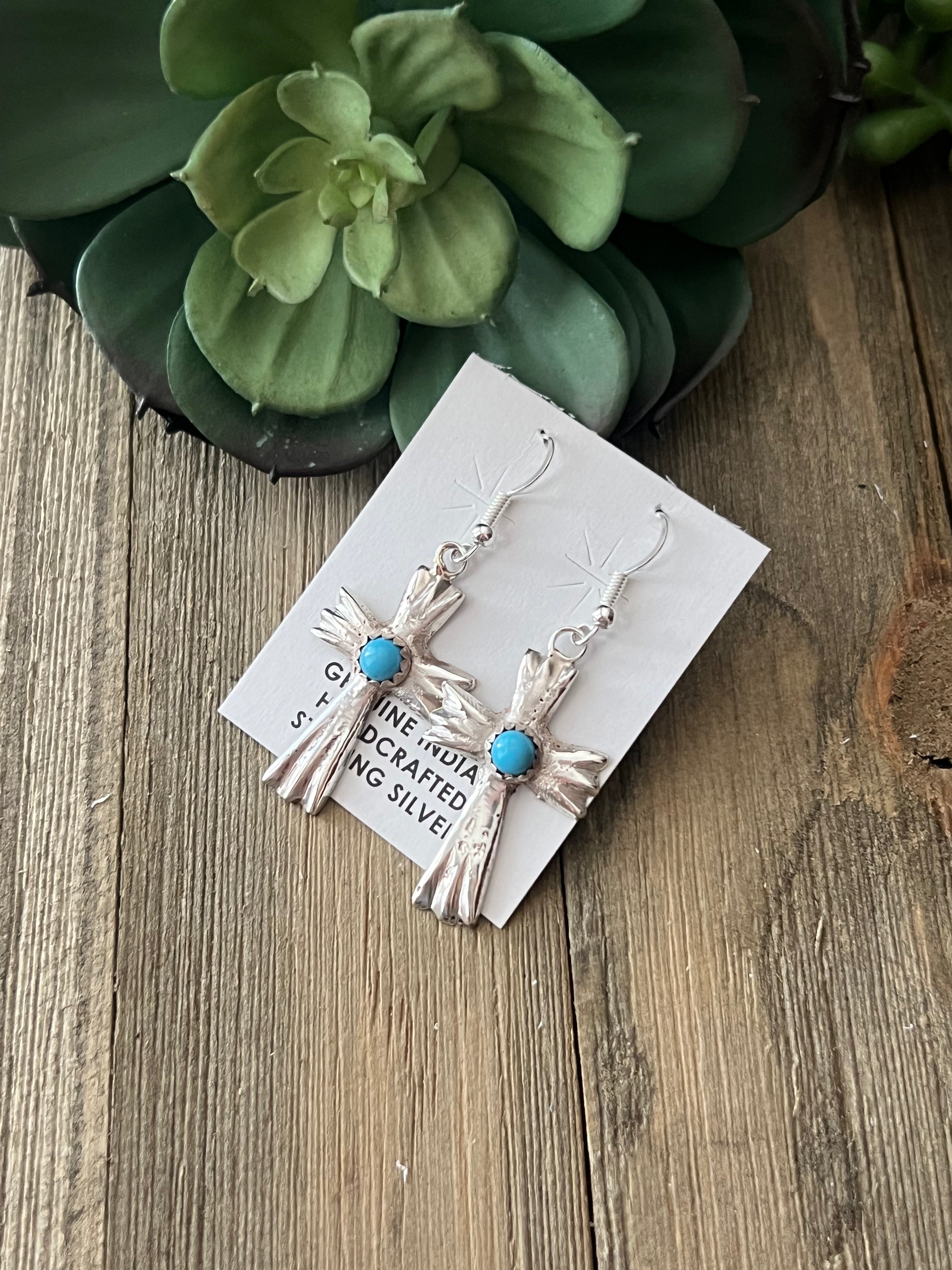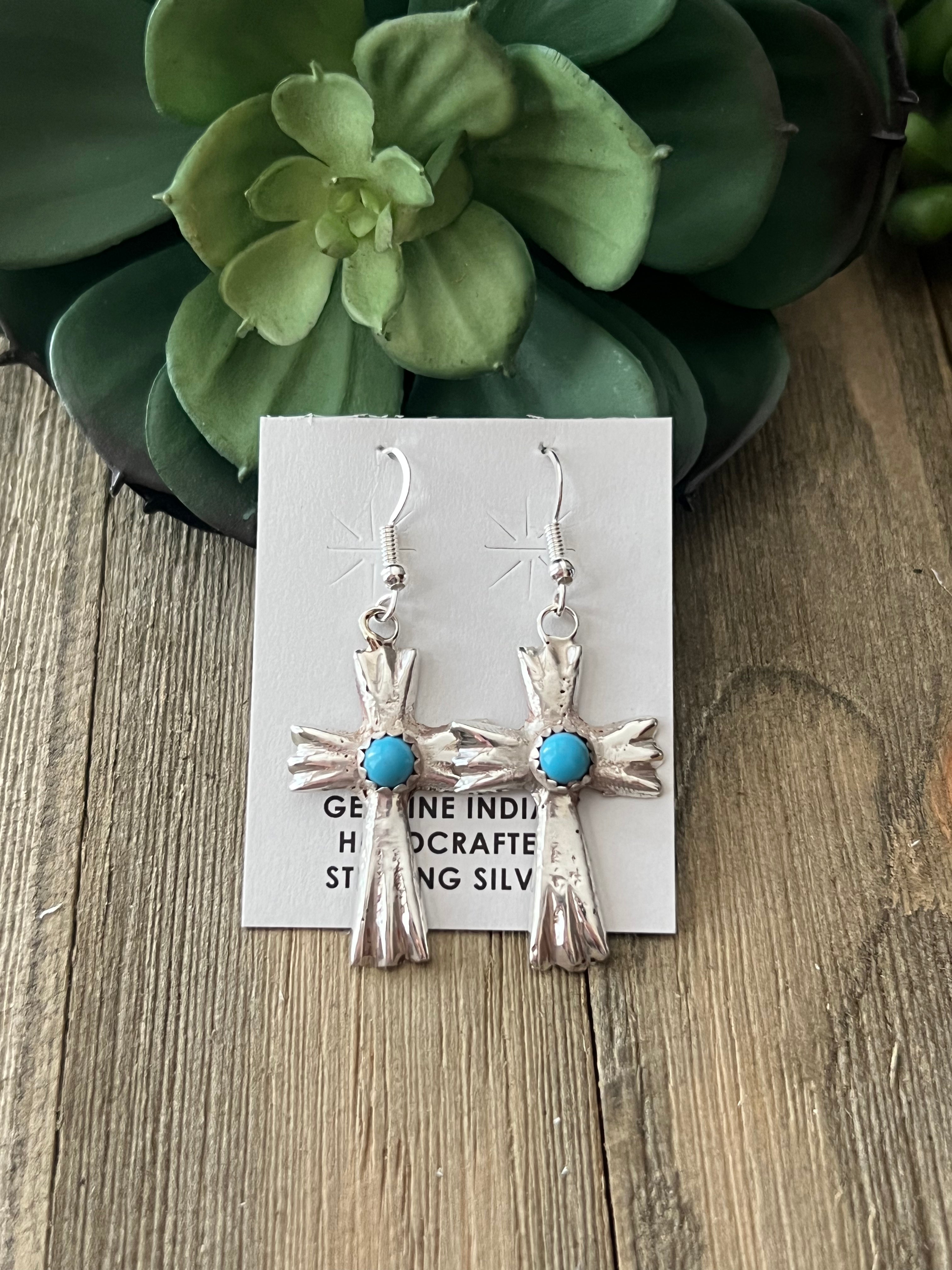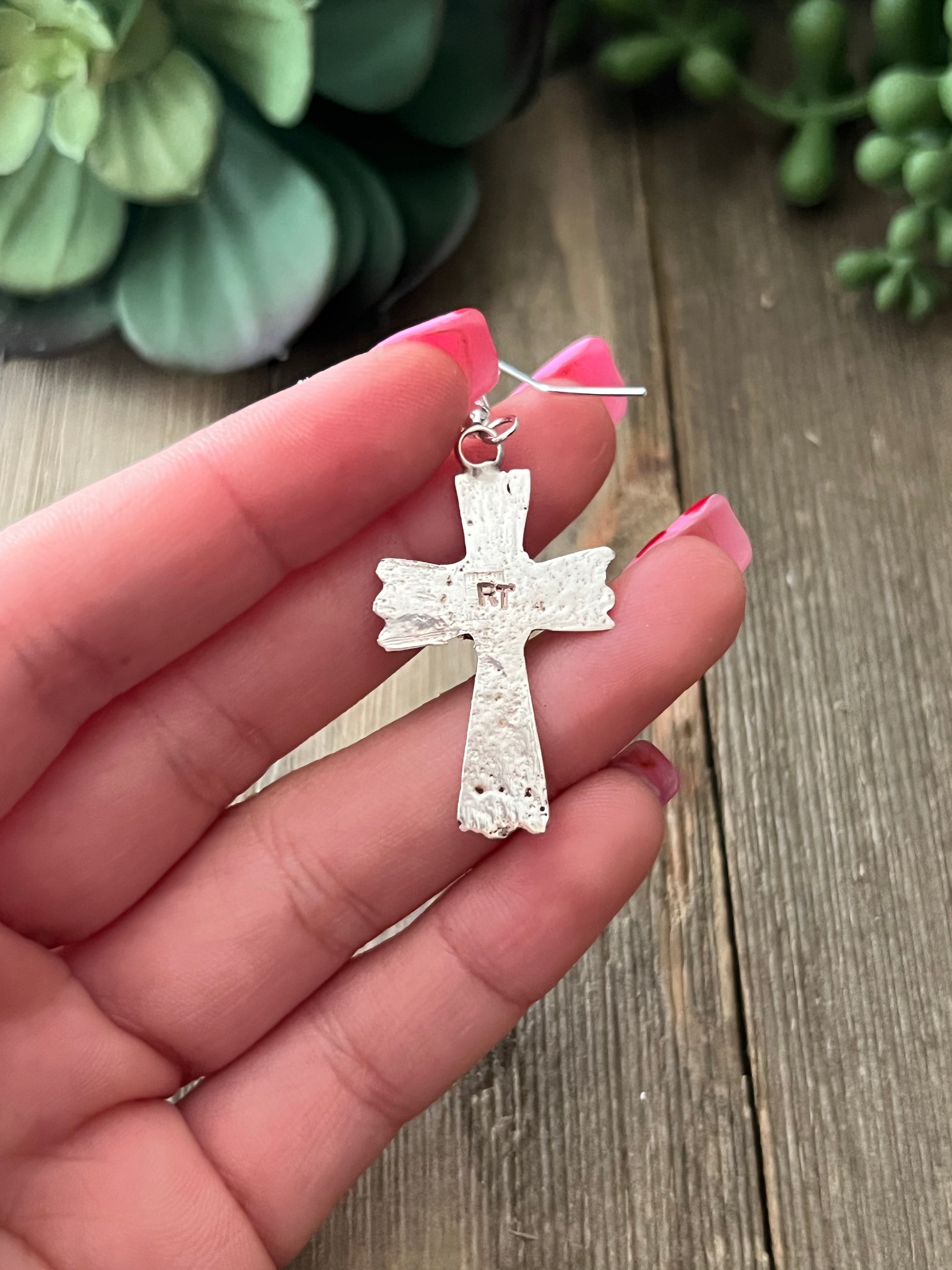 Navajo Made Sterling Silver Dangle Cross Earrings