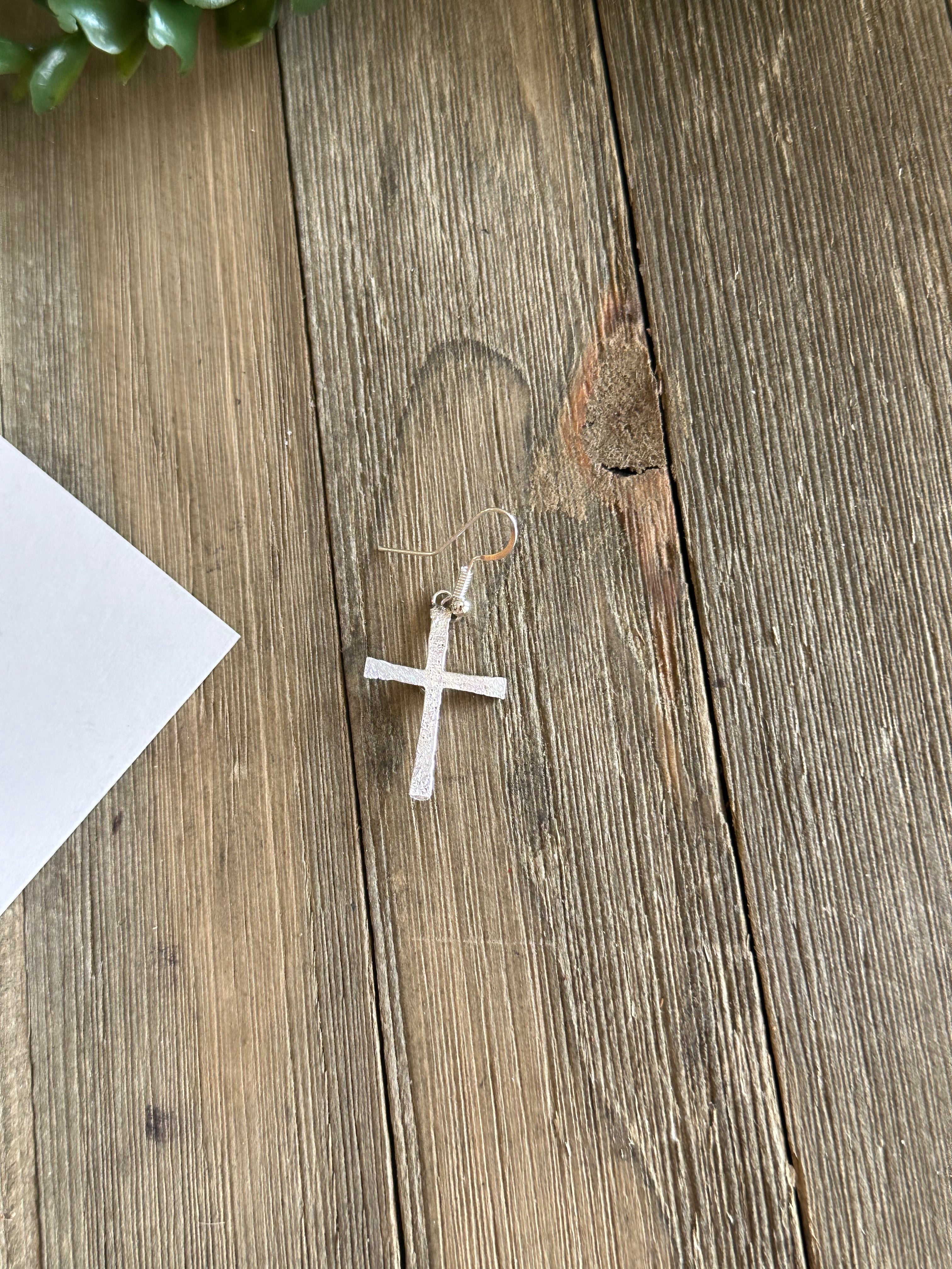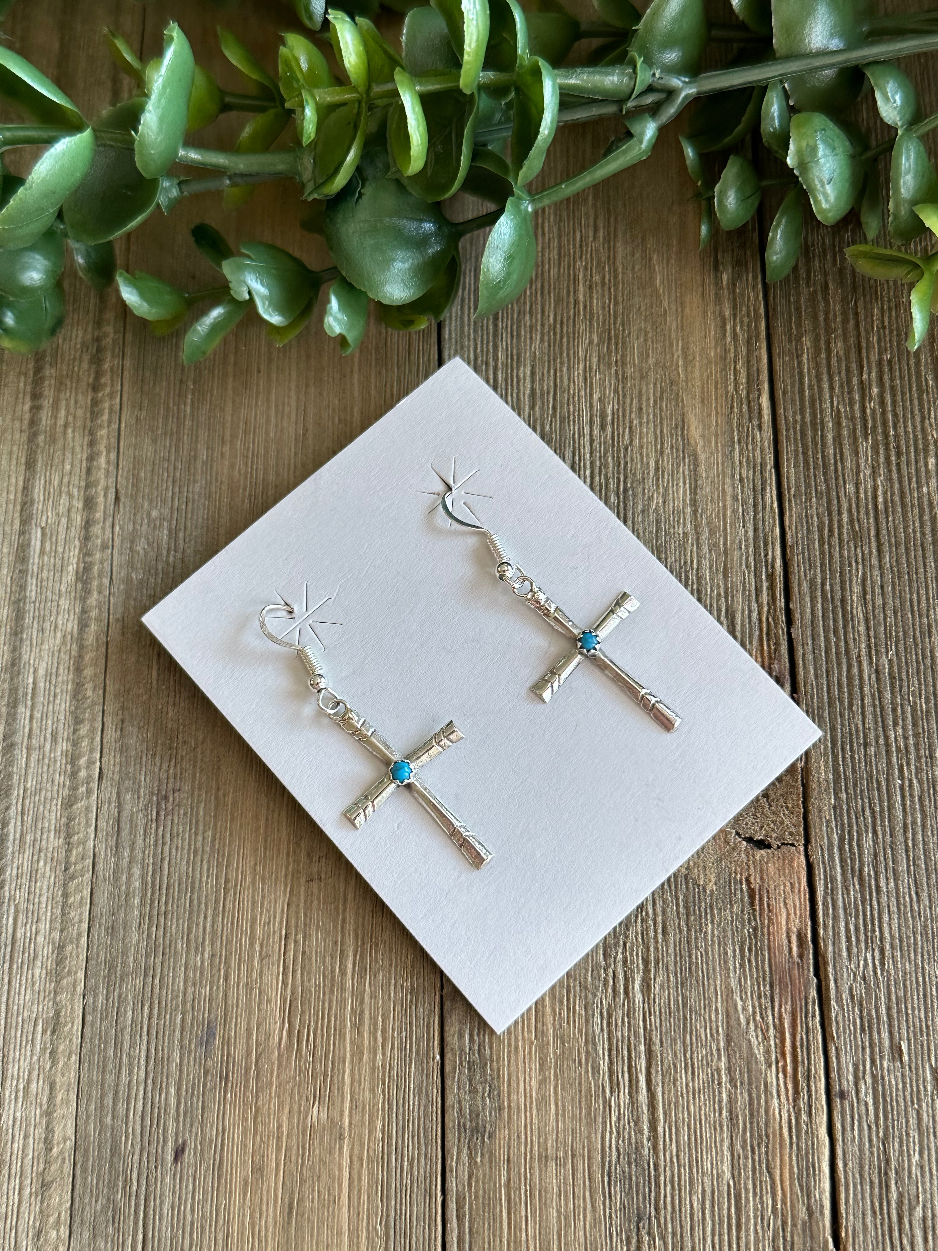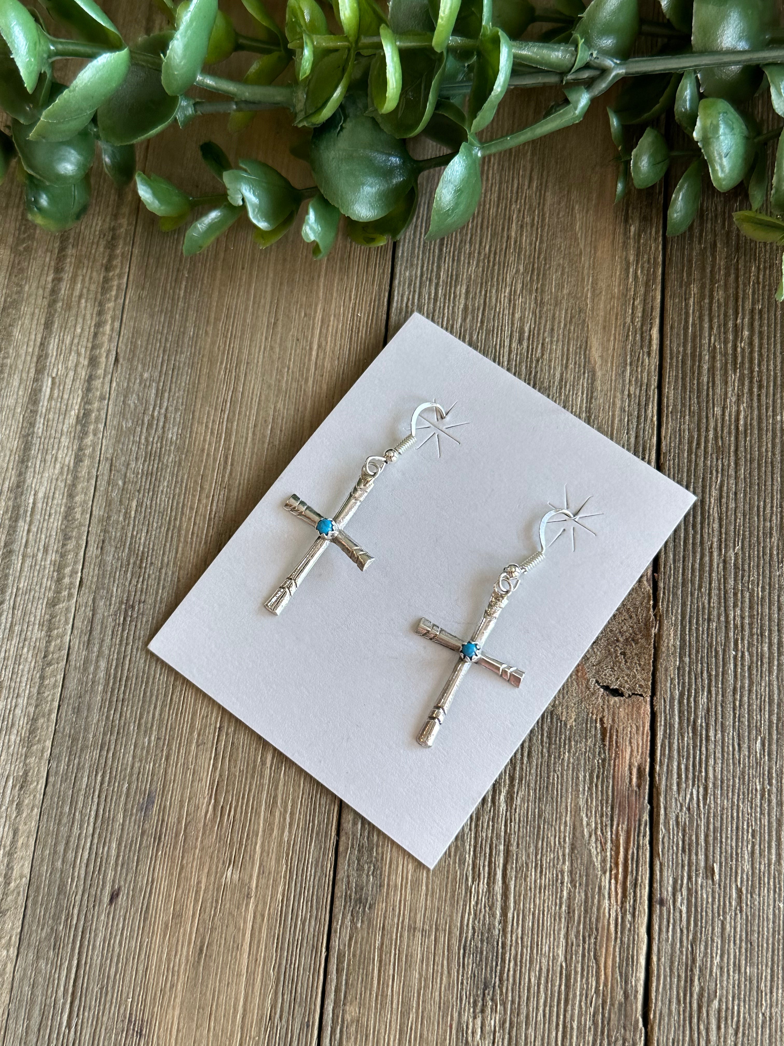 Navajo Made Sterling Silver Dangle Cross Earrings