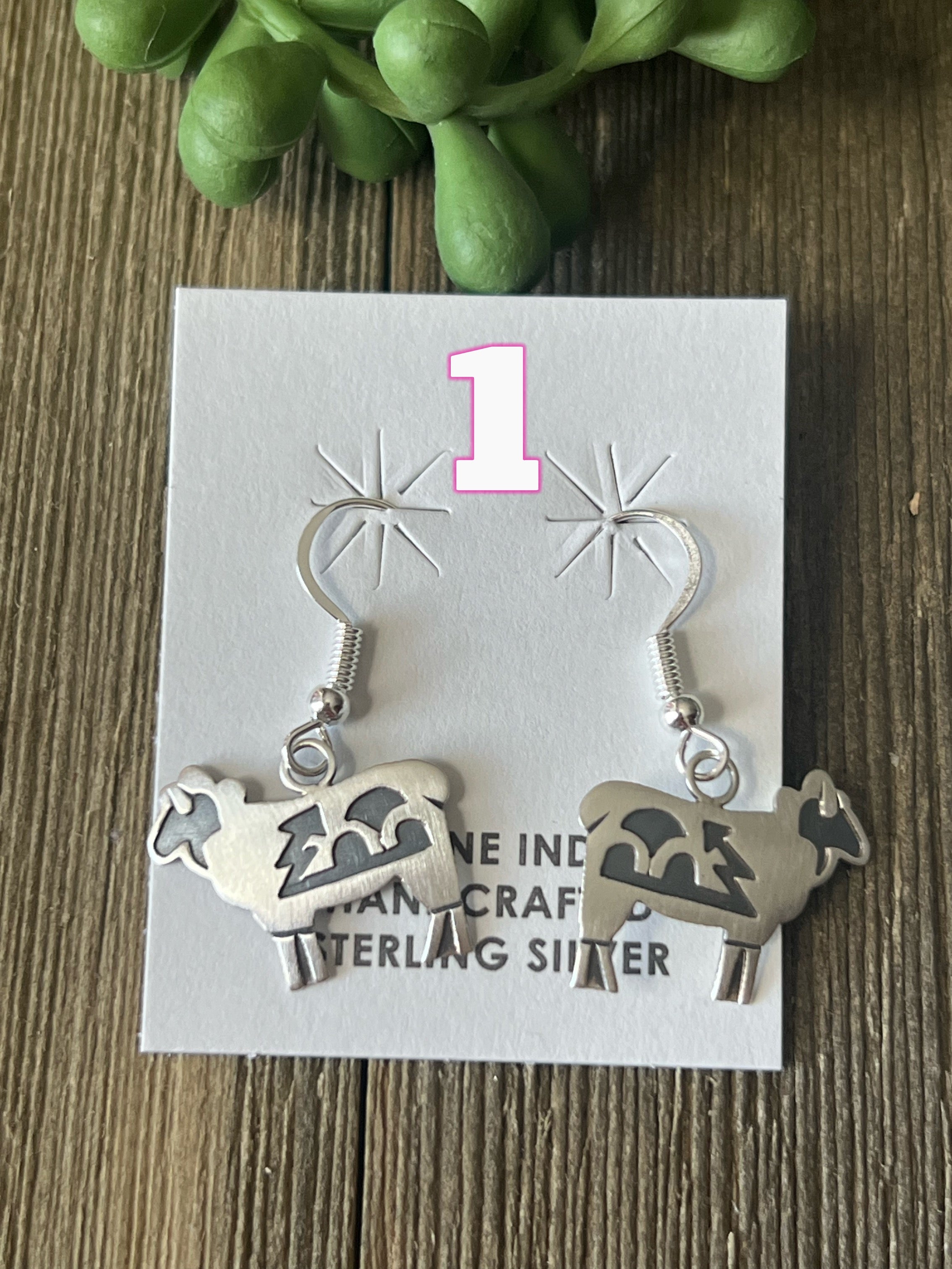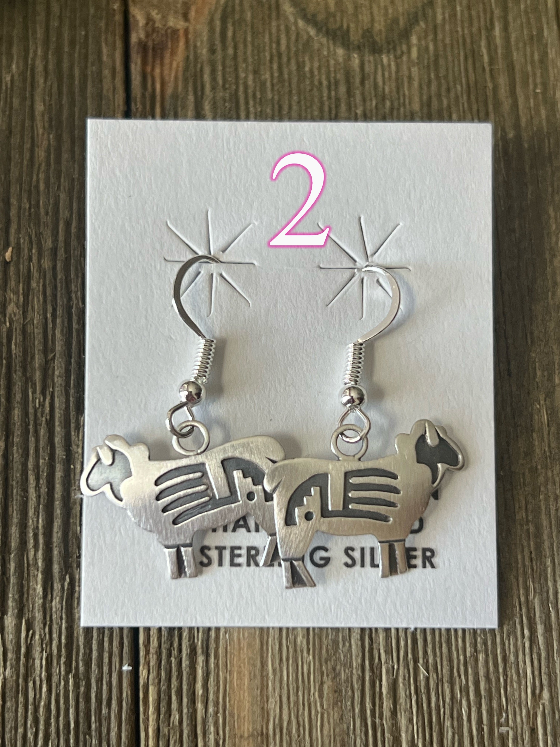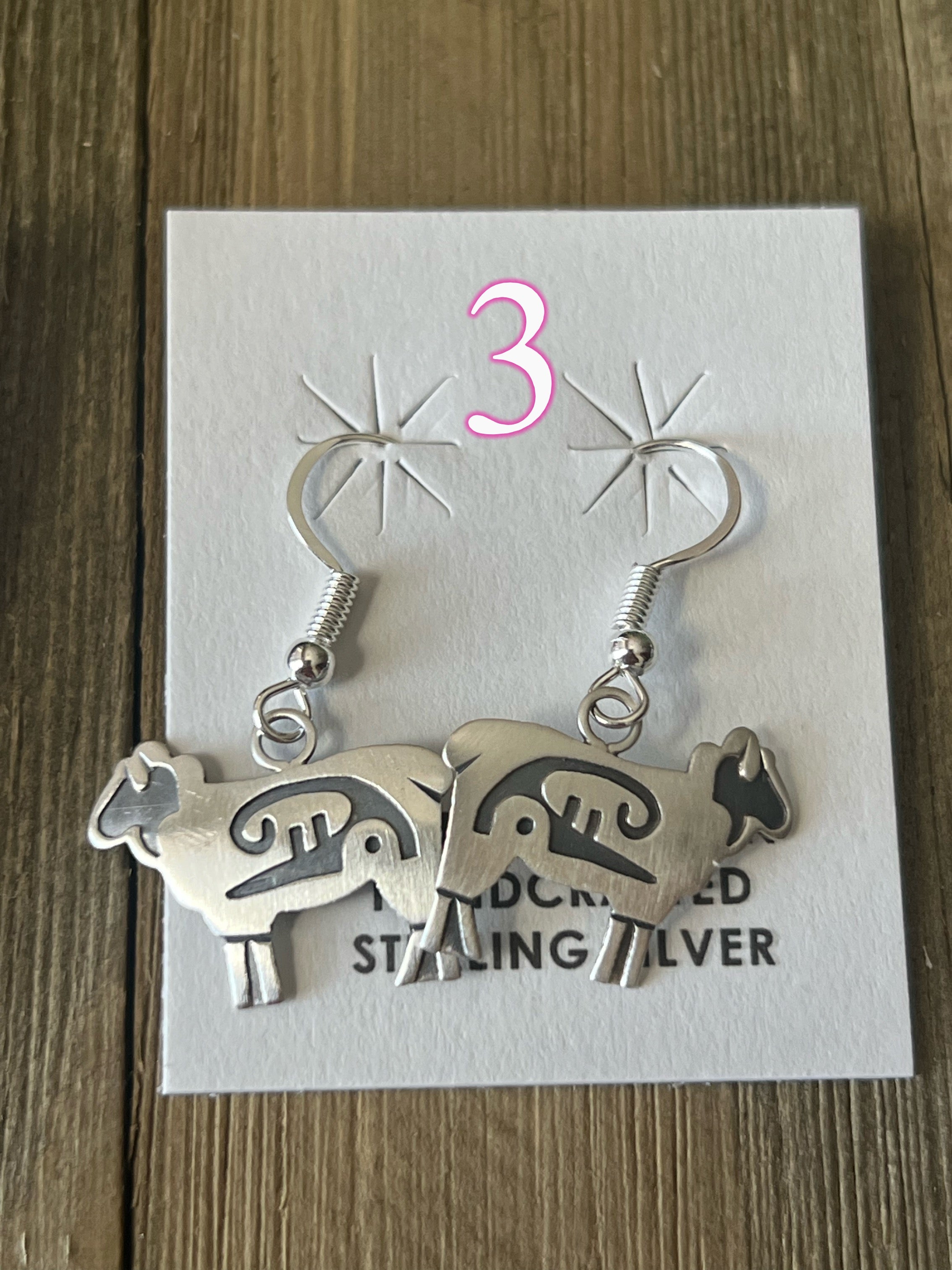 Navajo Made Sterling Silver Dangle Lamb Earrings