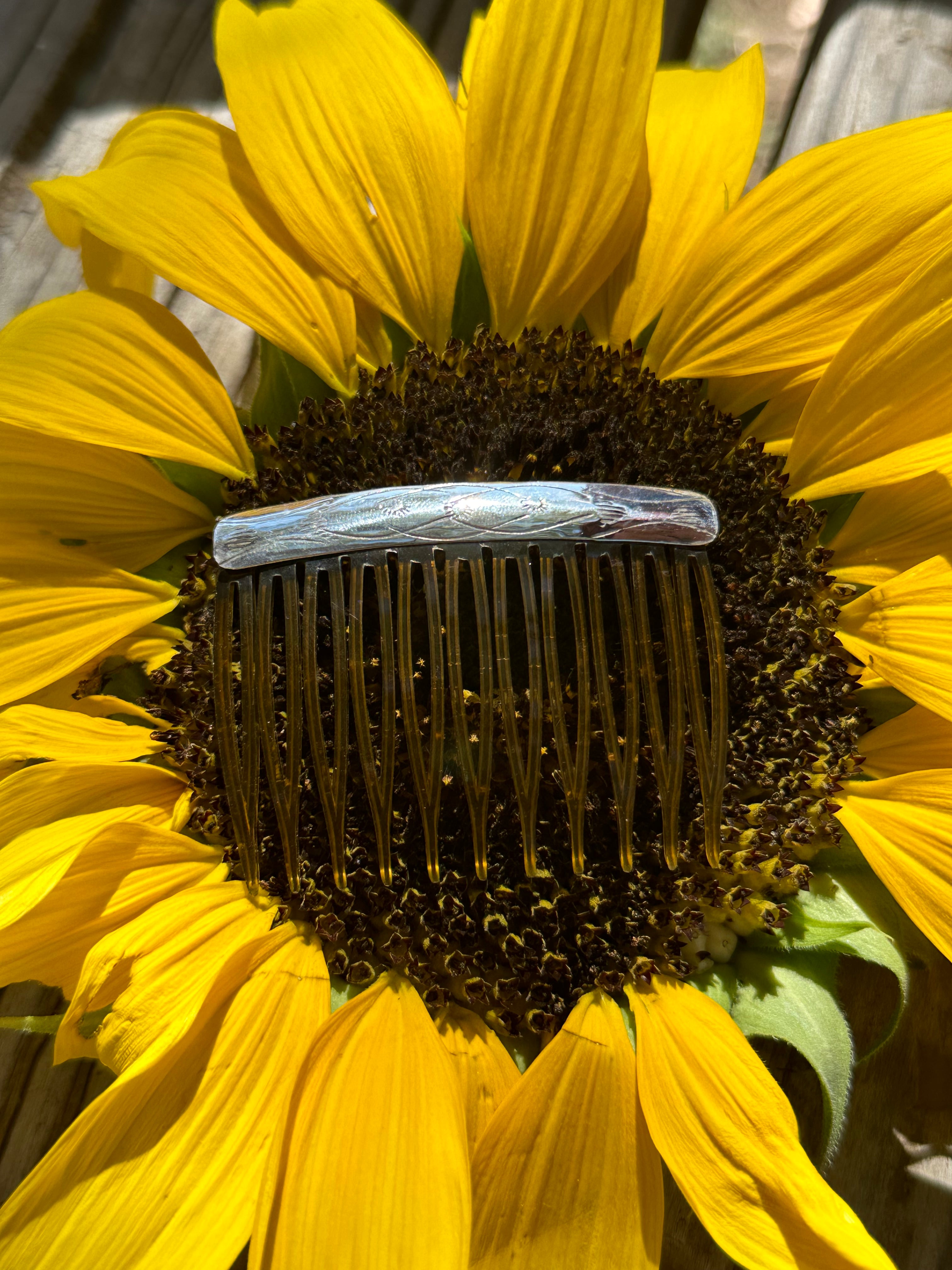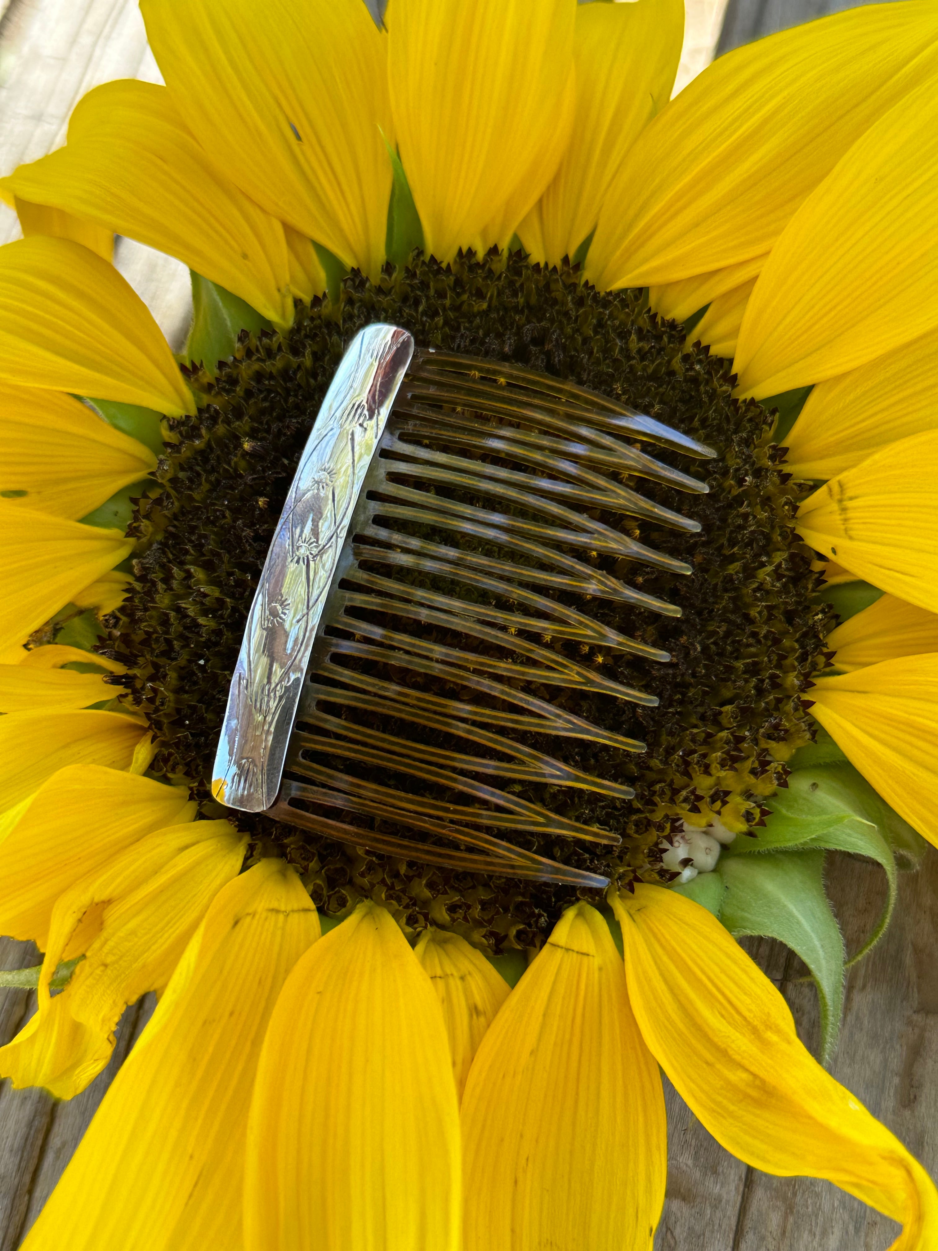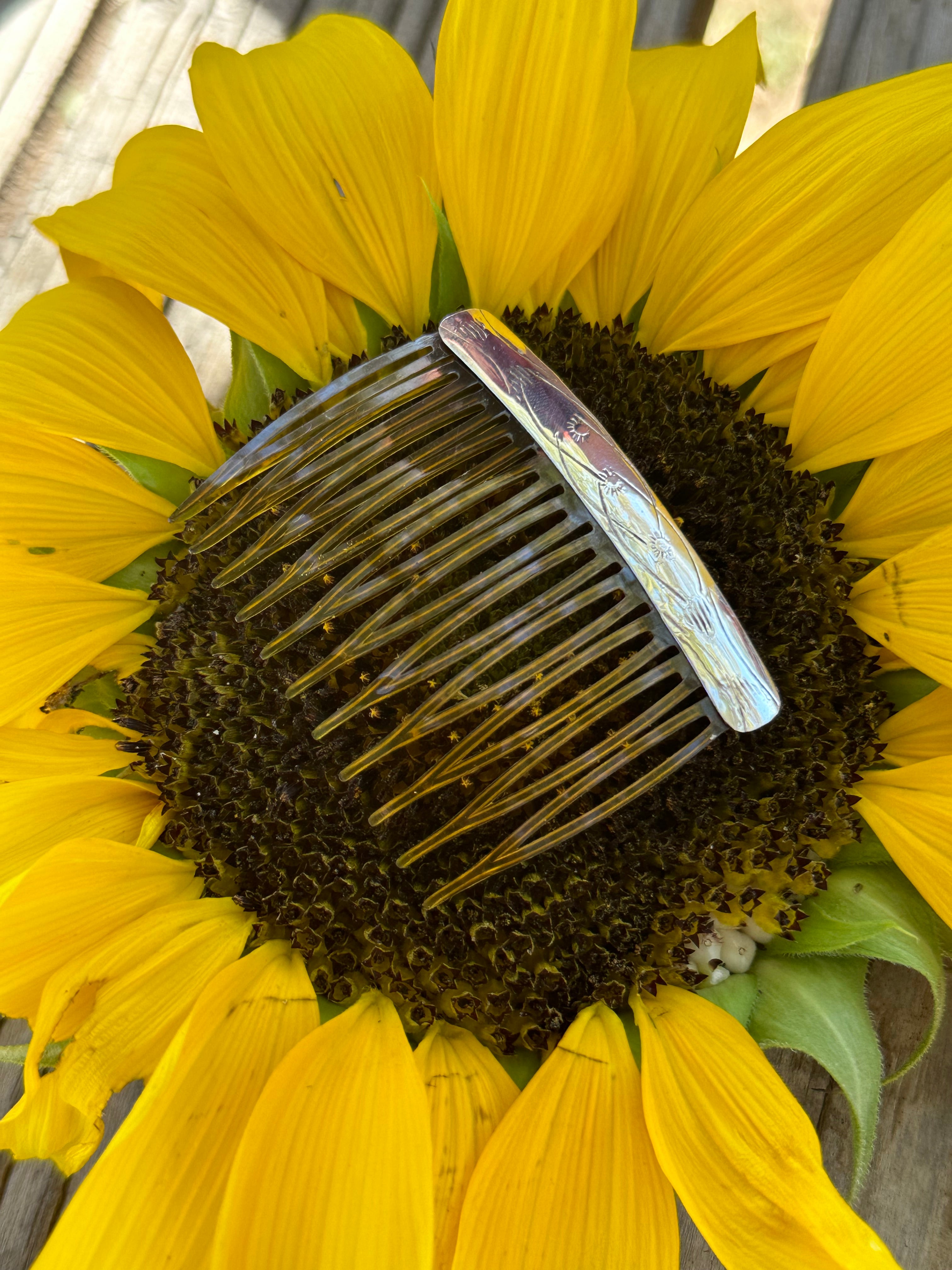 Navajo Made Sterling Silver Hair Combs. It measures 2 inches long and 2 1/4 inches wide.