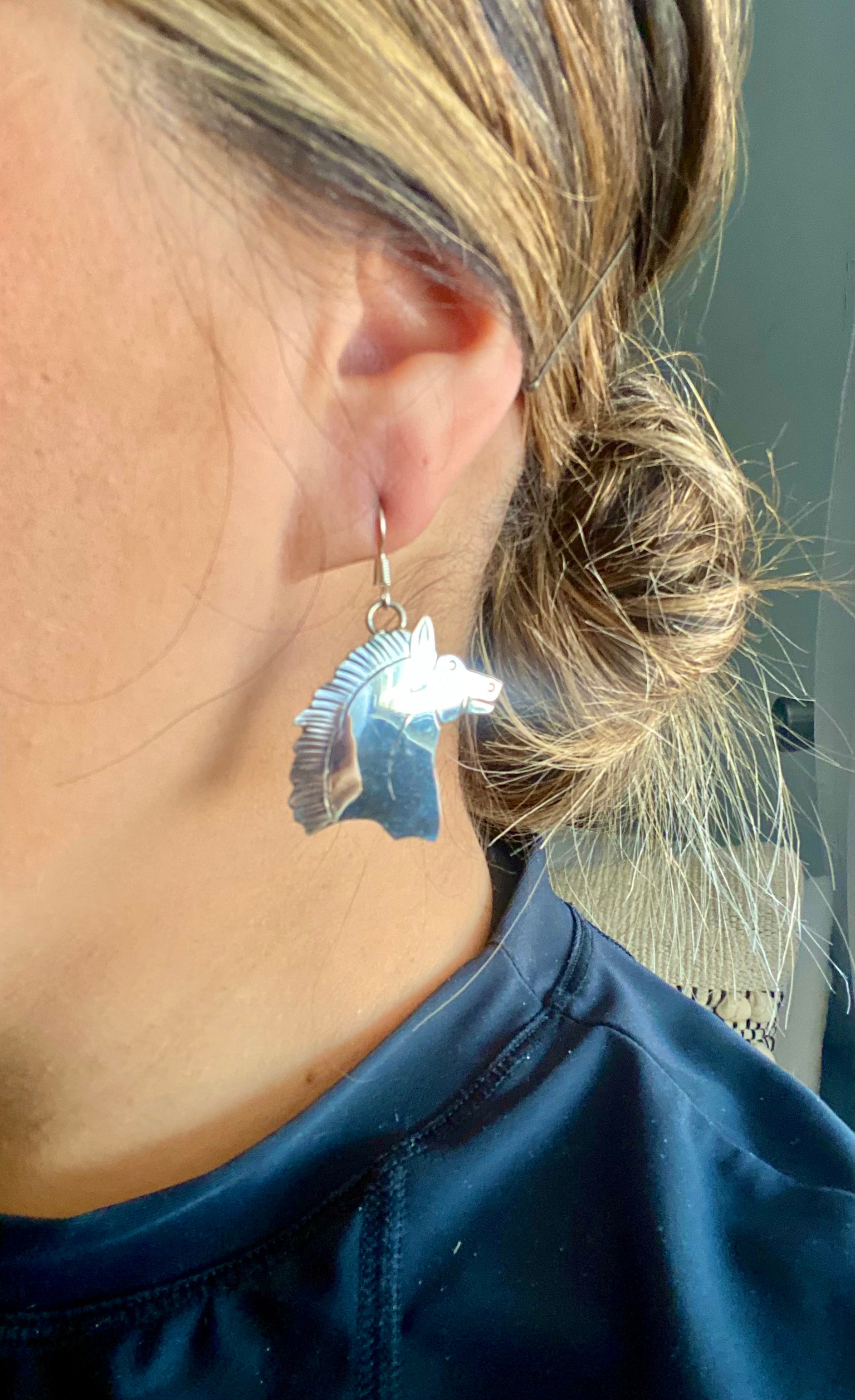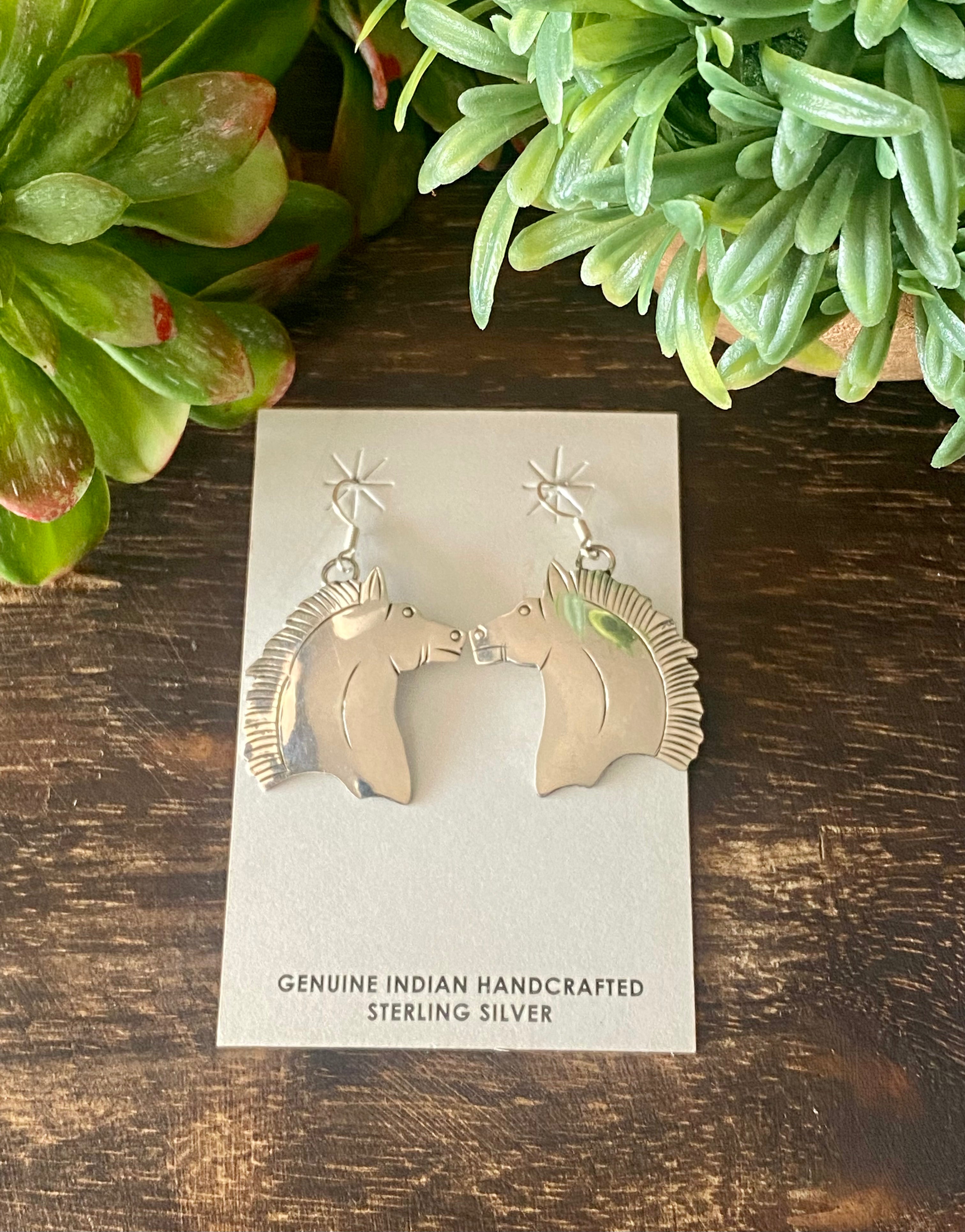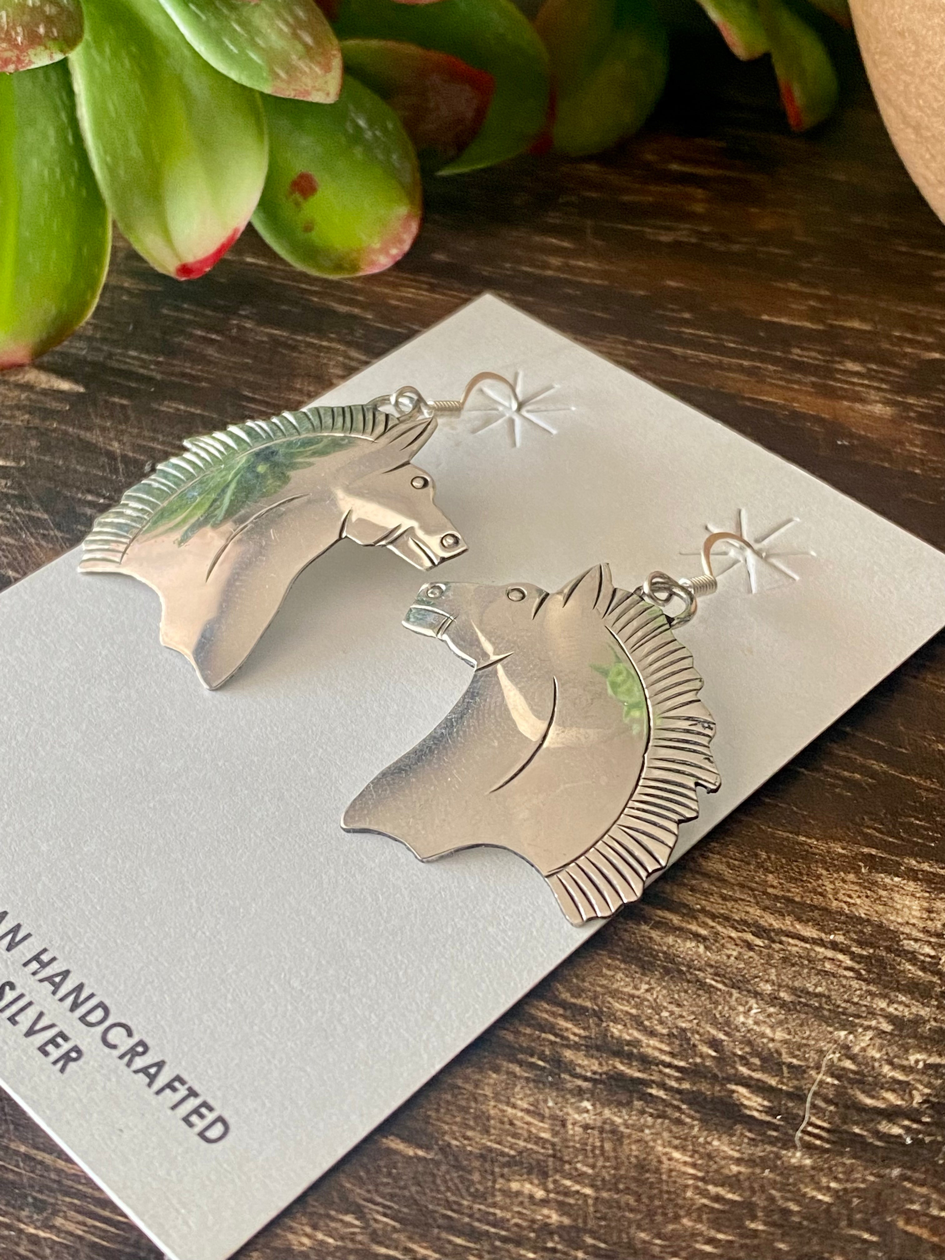 Navajo Made Sterling Silver Horse Dangle Earrings