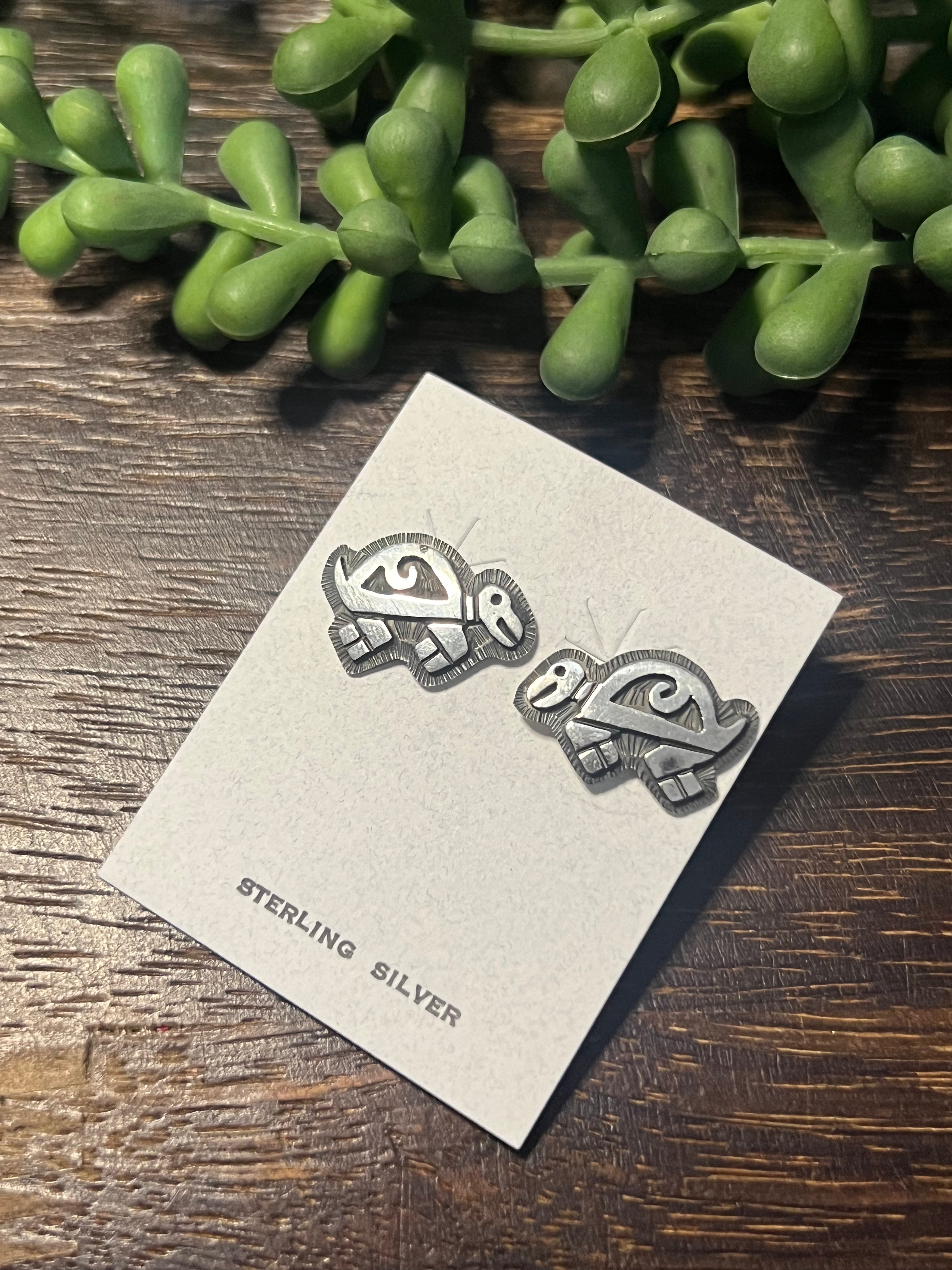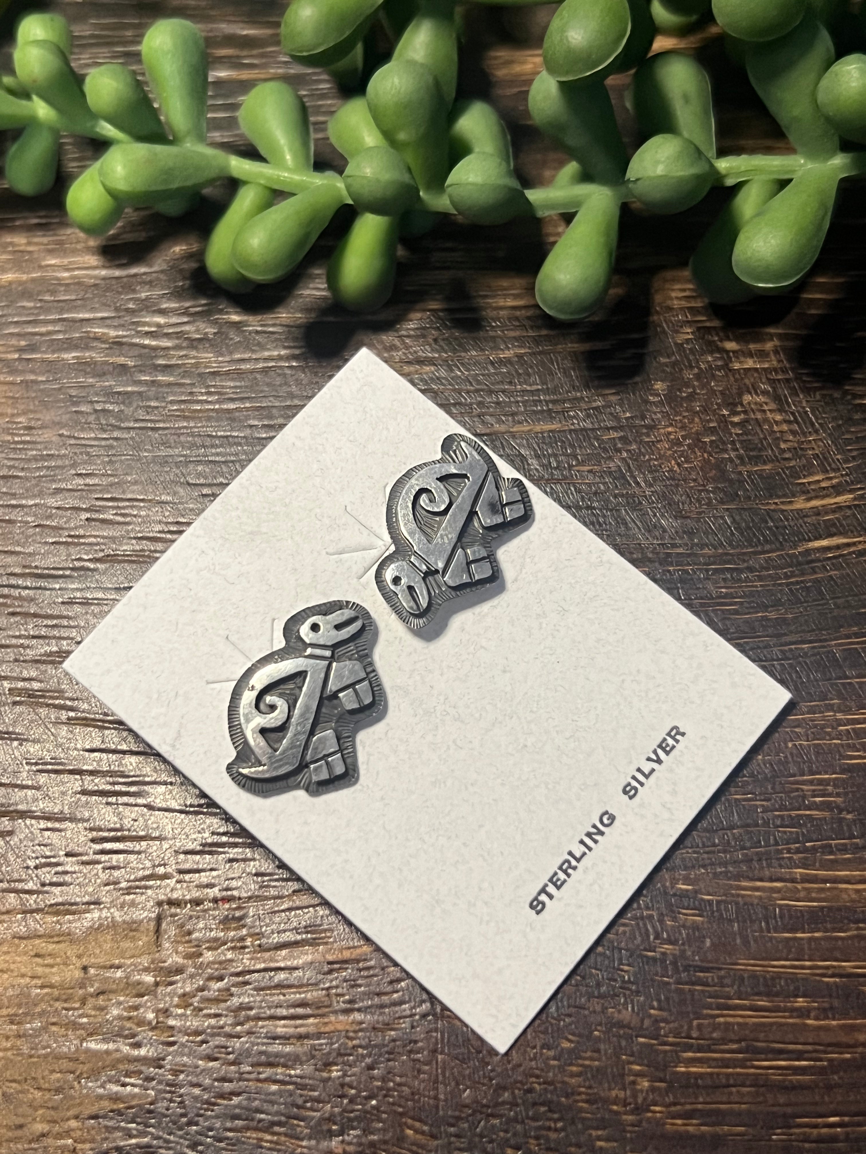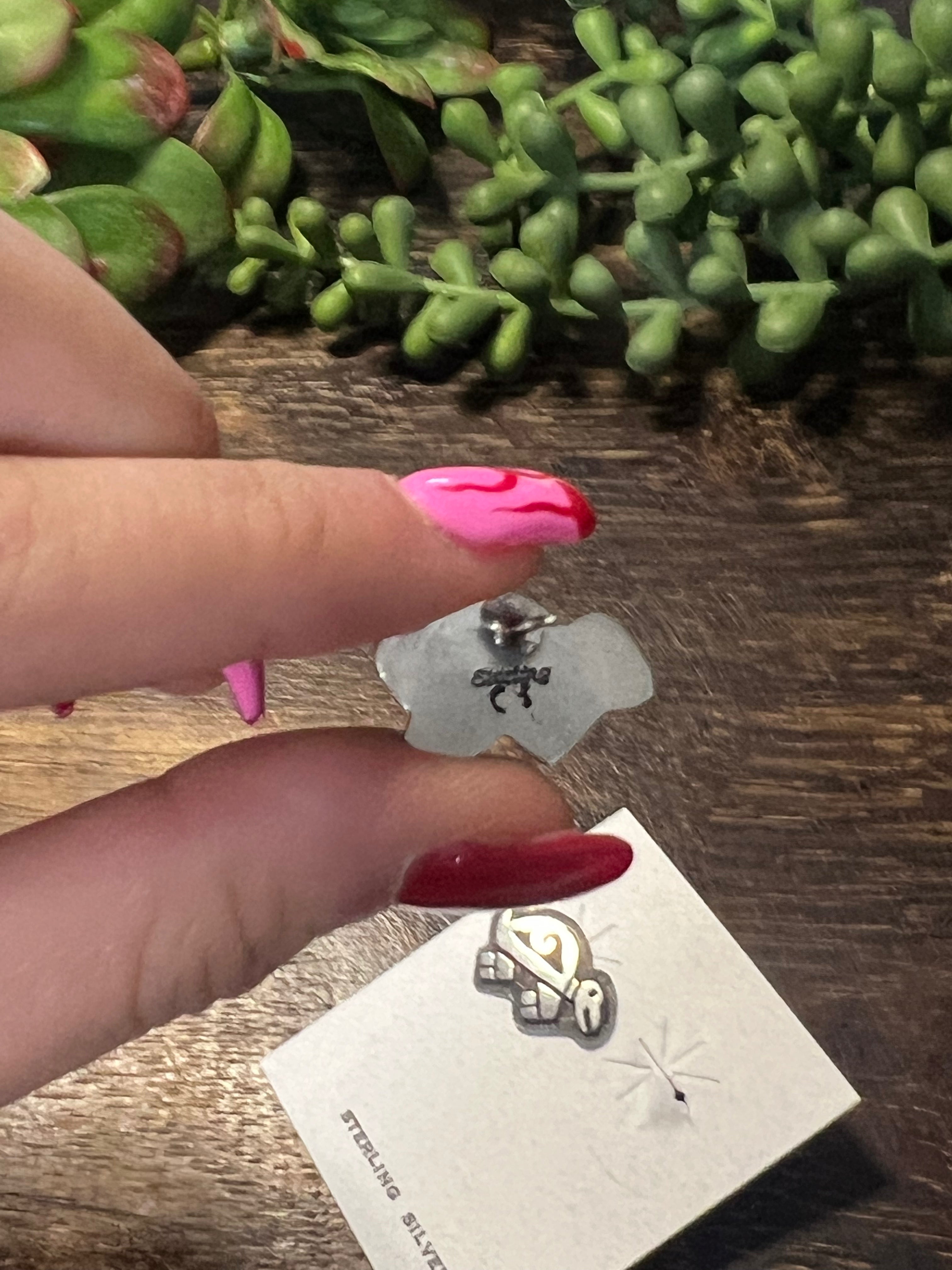 Navajo Made Sterling Silver Post Earrings. It measures 1/2 of an inch long and just over 3/4 of an inch wide. Signed by artist and stamped sterling silver.