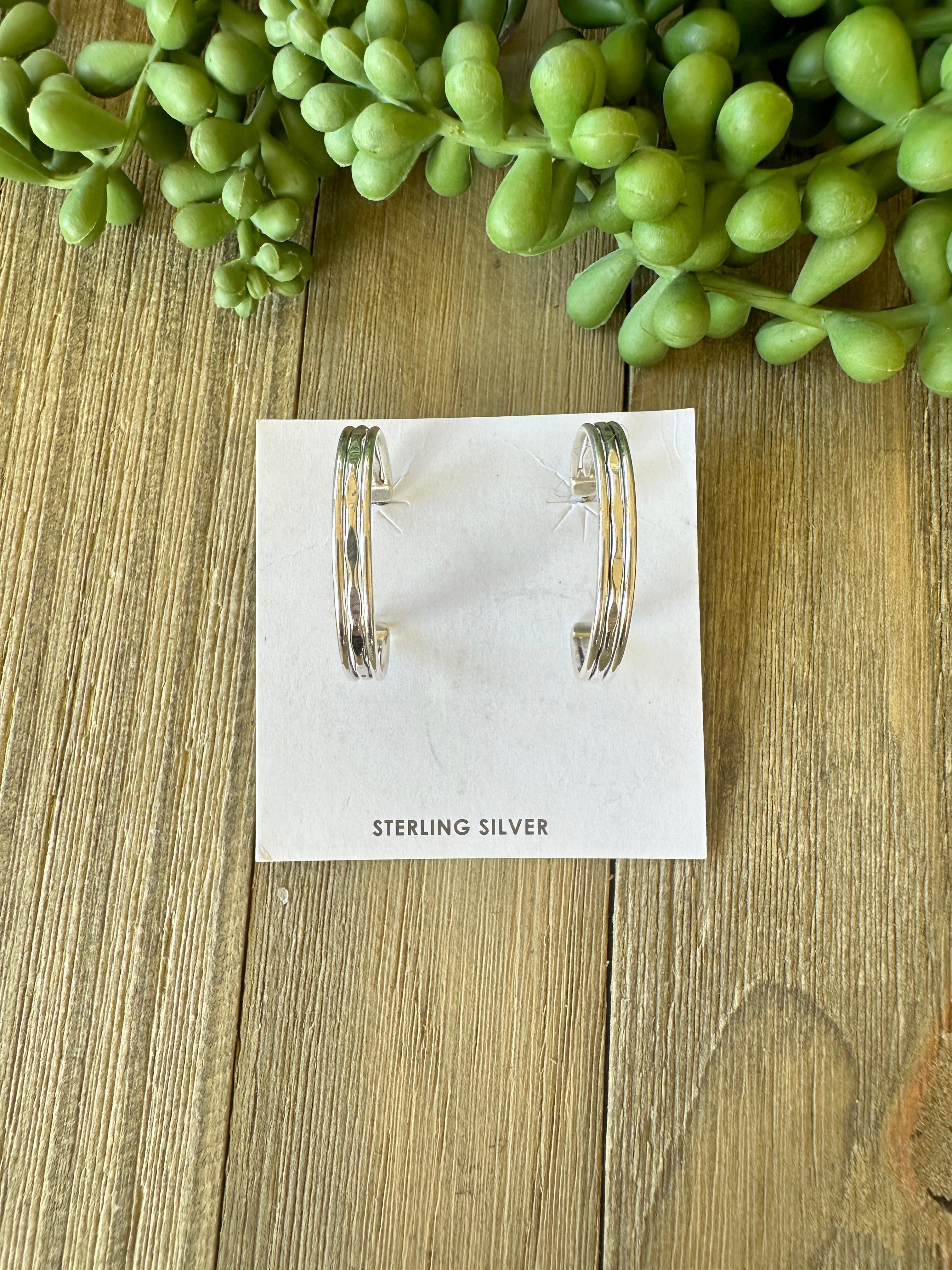 Navajo Made& Sterling Silver Post Hoop Earrings