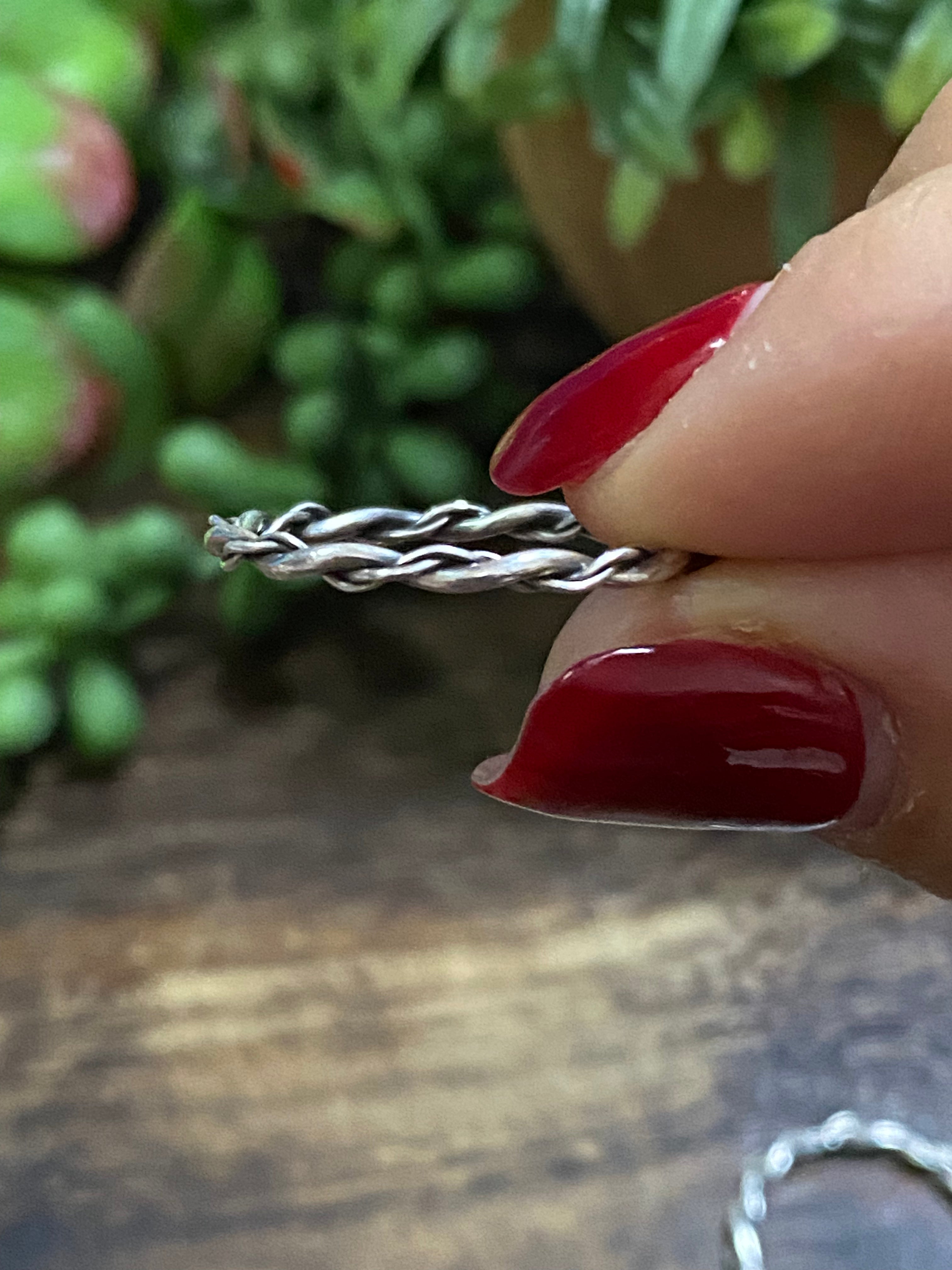 Navajo Made Sterling Silver Rings. It measures just under 1/8 of an inch long and 5/8 of an inch wide.