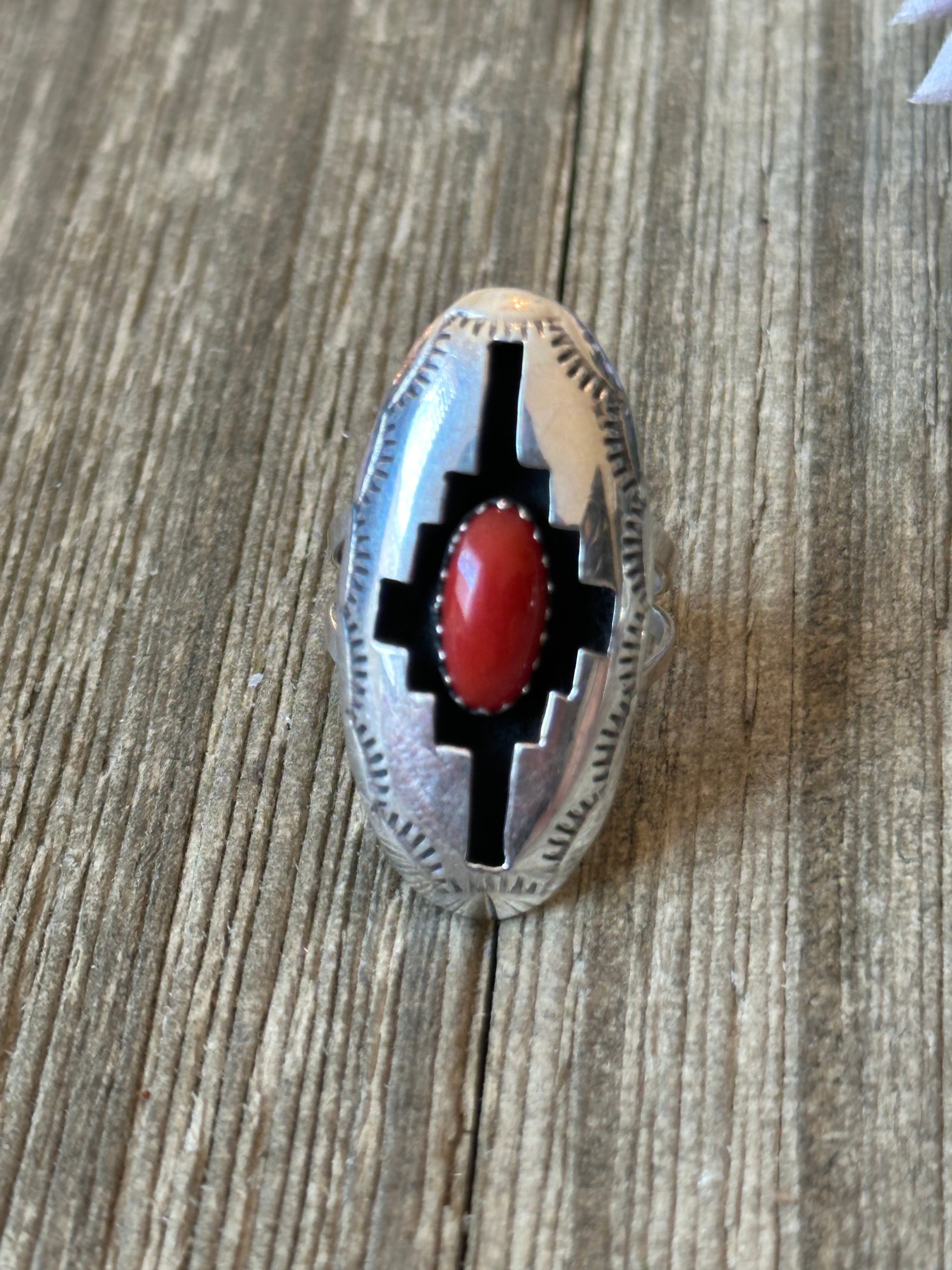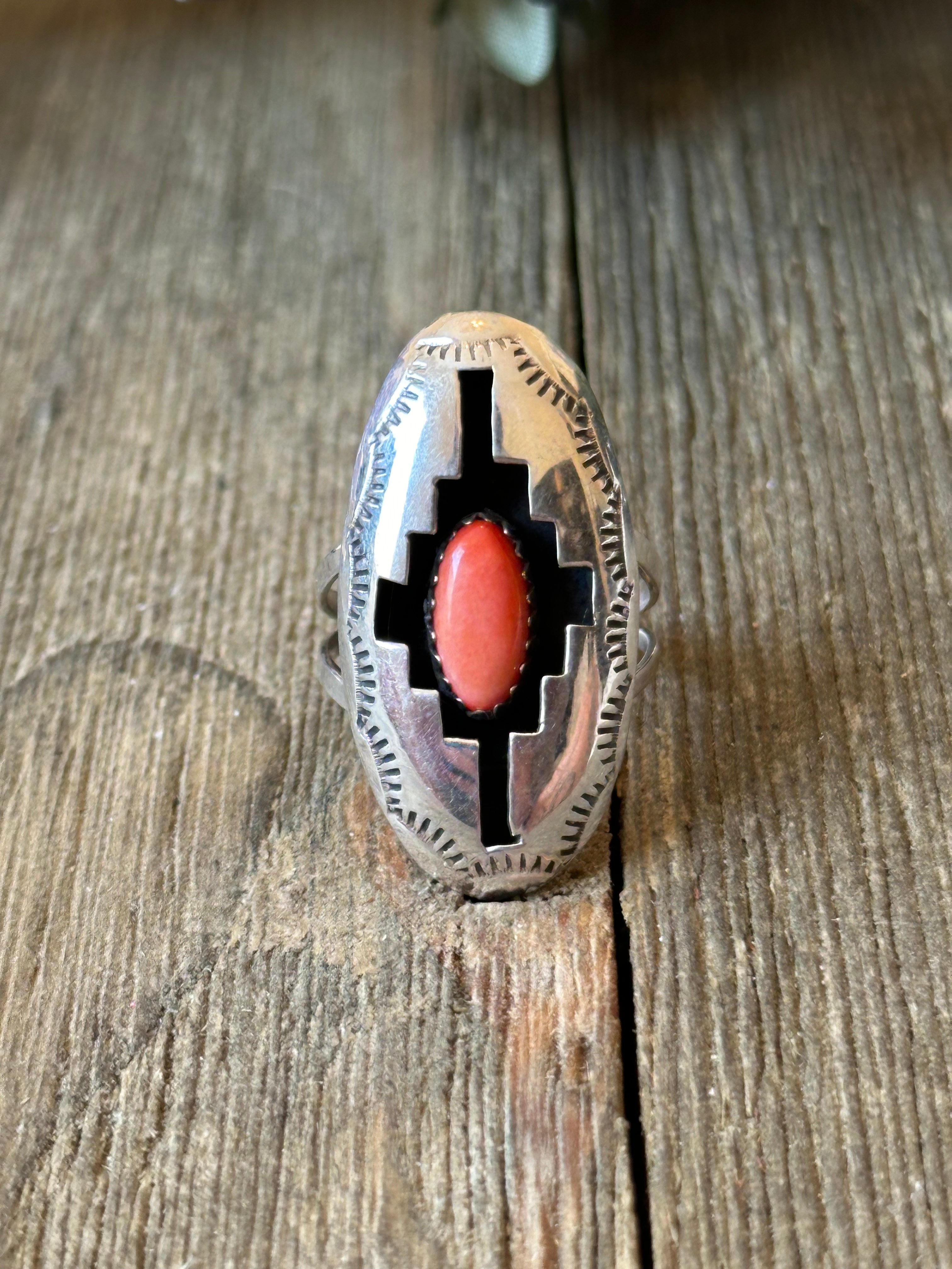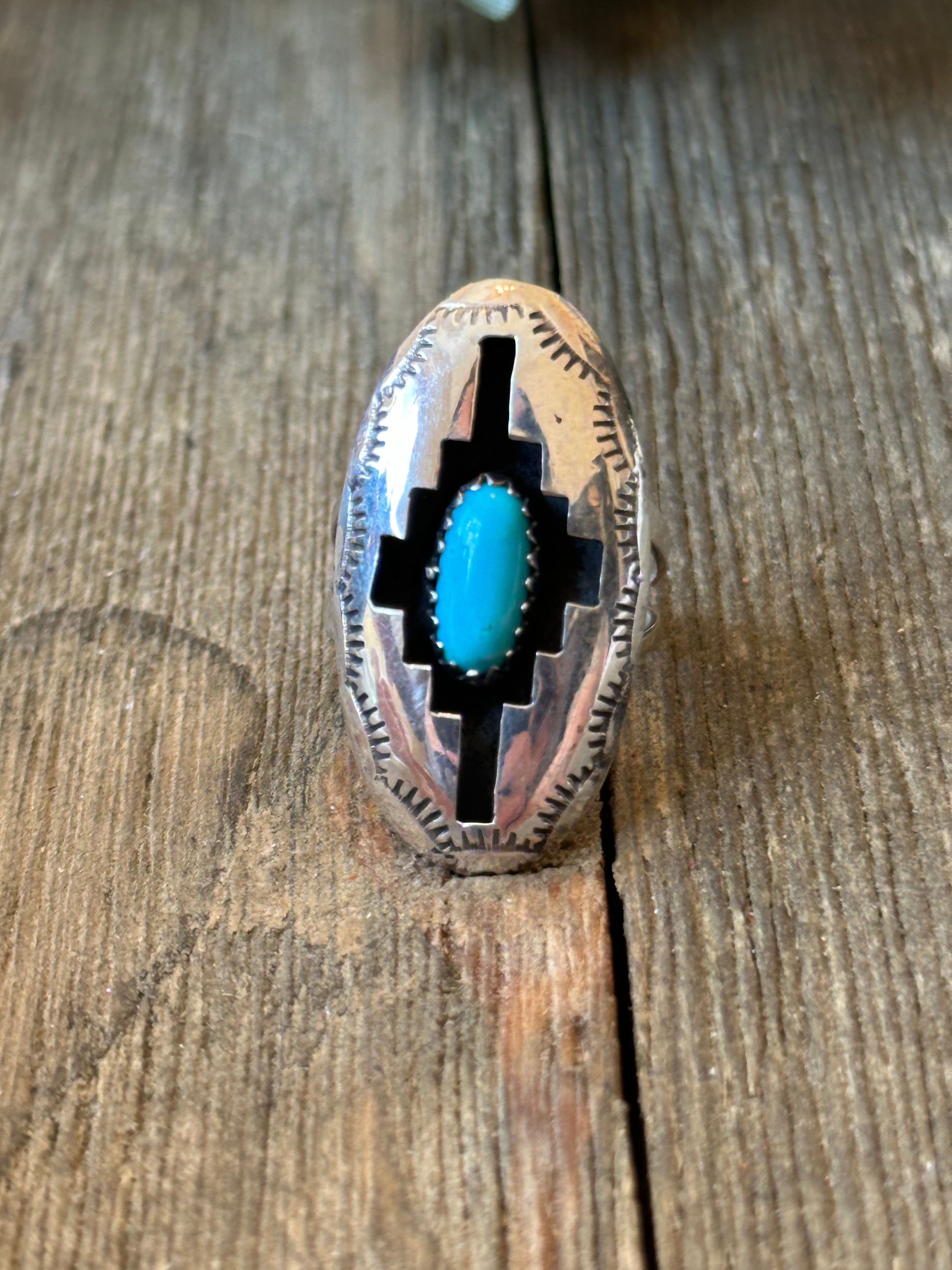 Gorgeous pendant, very well made. Navajo Made Sterling Silver Shadow Box Ring. It measures just over 1 1/4 inches long and 5/8 of an inch wide.