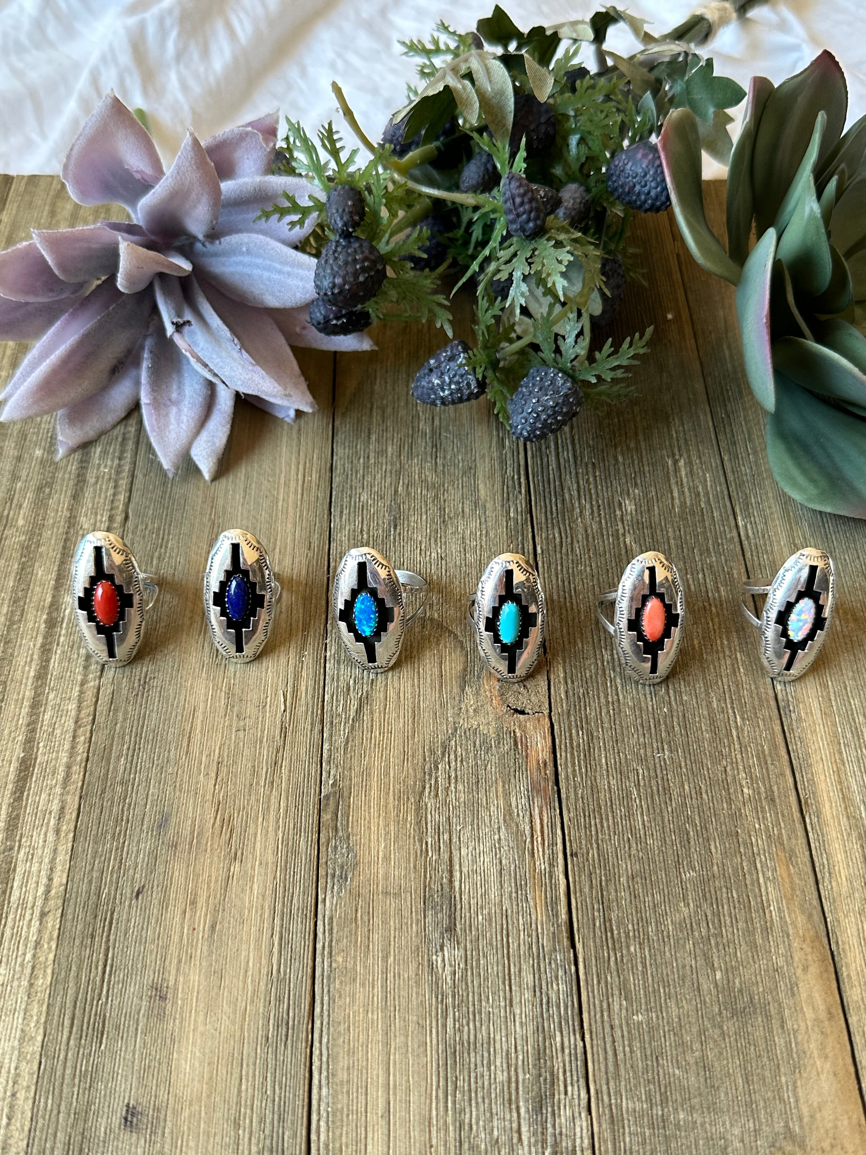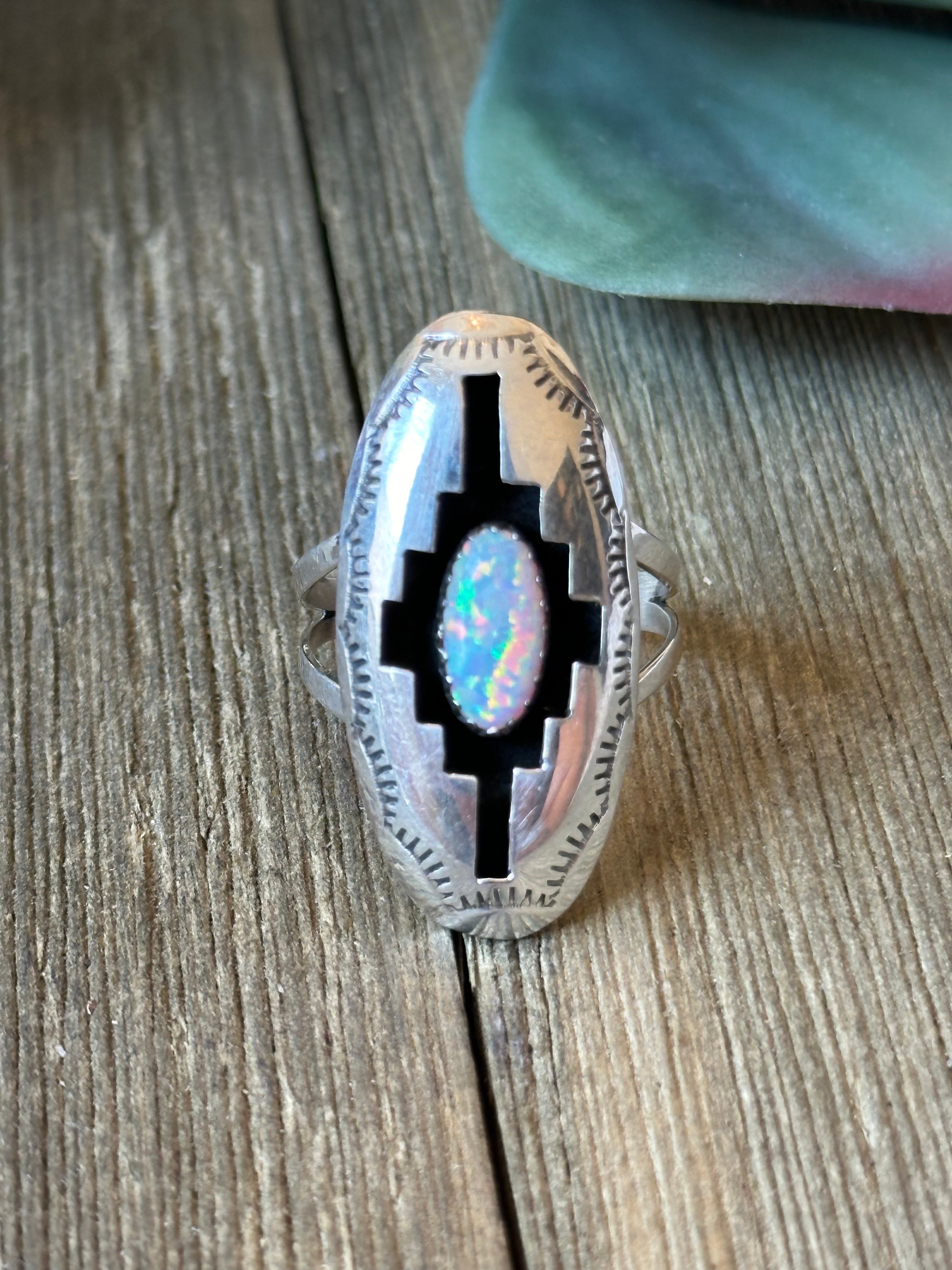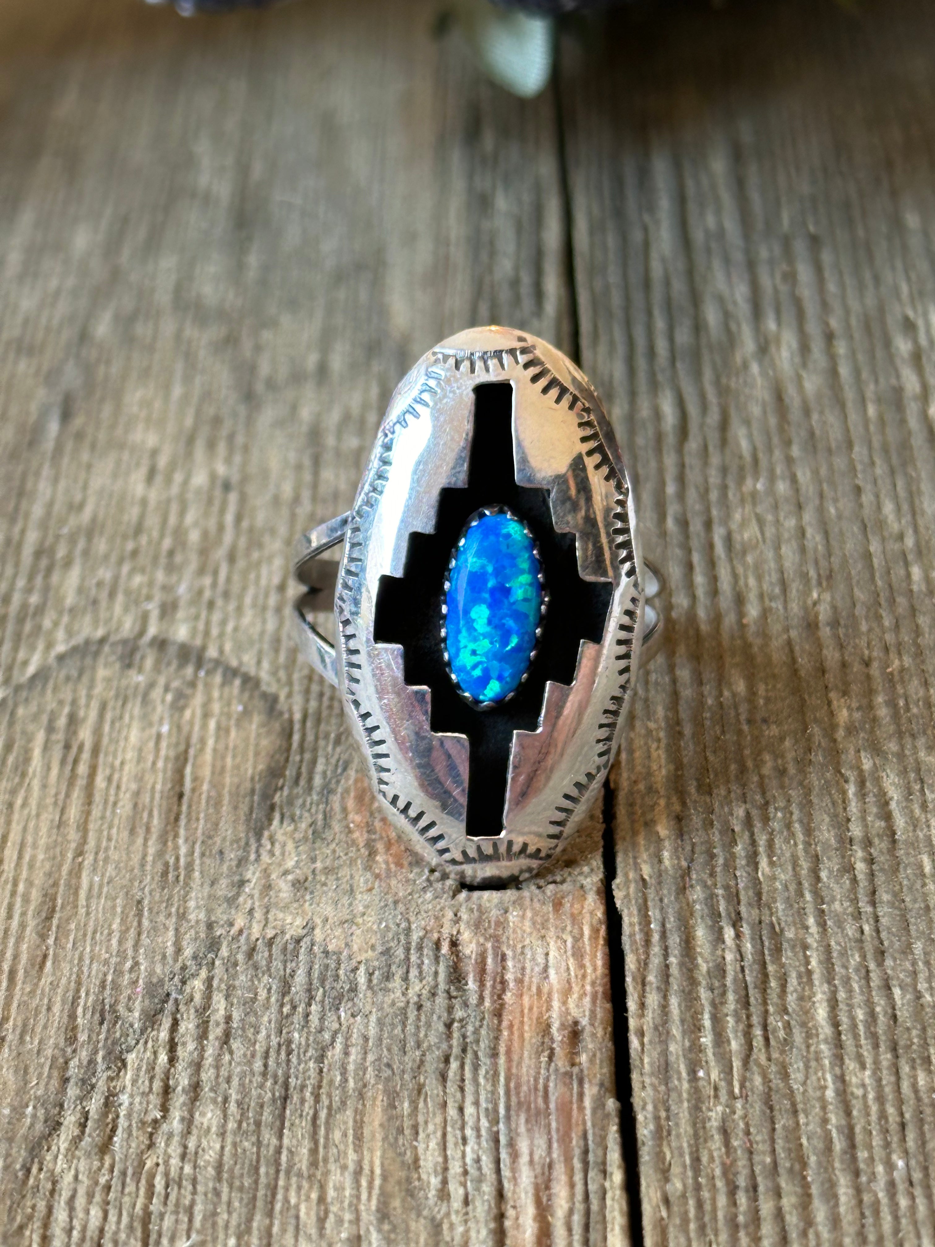 Gorgeous pendant, very well made. Navajo Made Sterling Silver Shadow Box Ring. It measures just over 1 1/4 inches long and 5/8 of an inch wide.