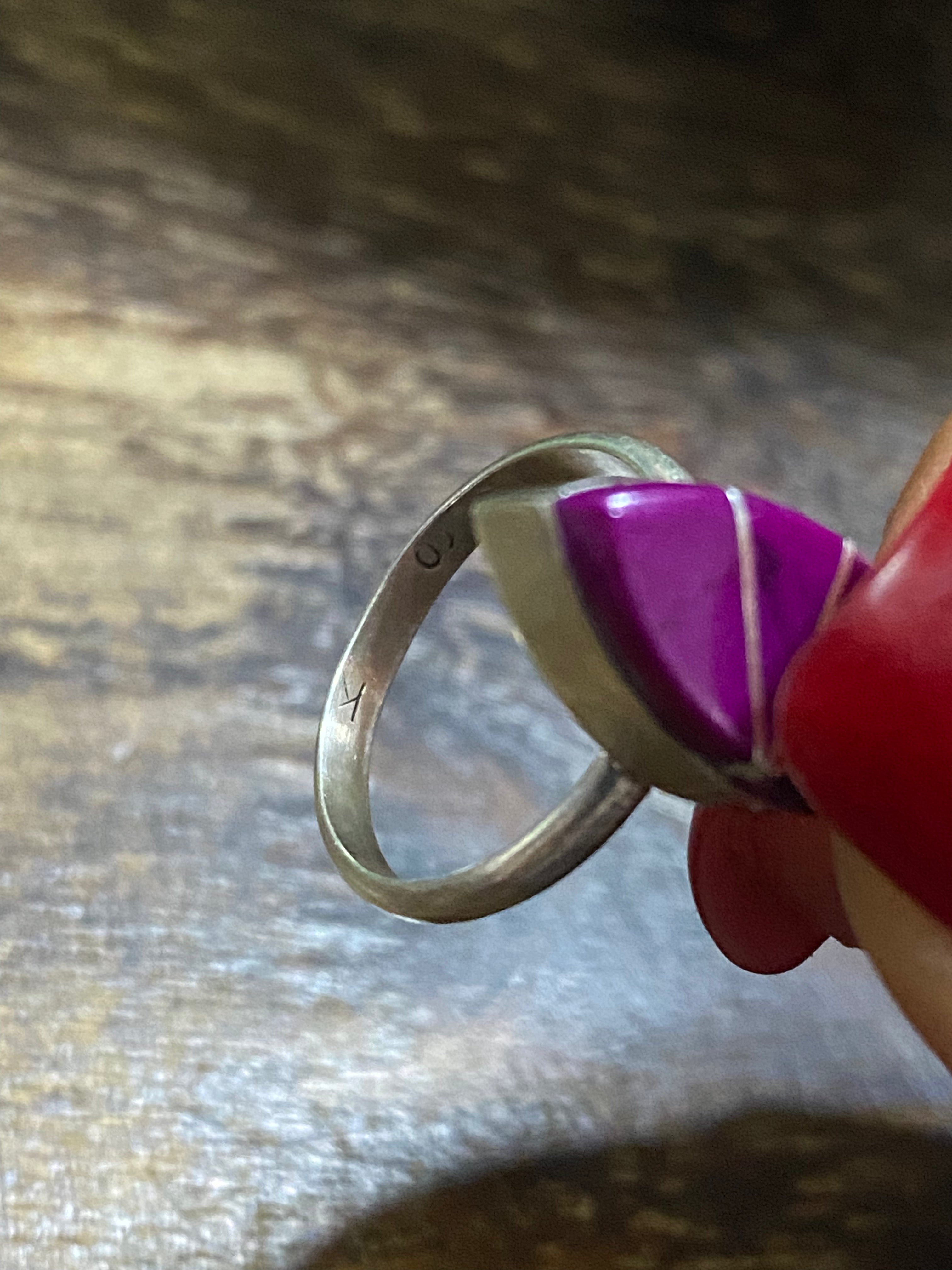 Navajo Made Suglite & Sterling Silver Inlay Ring Size 5.5
