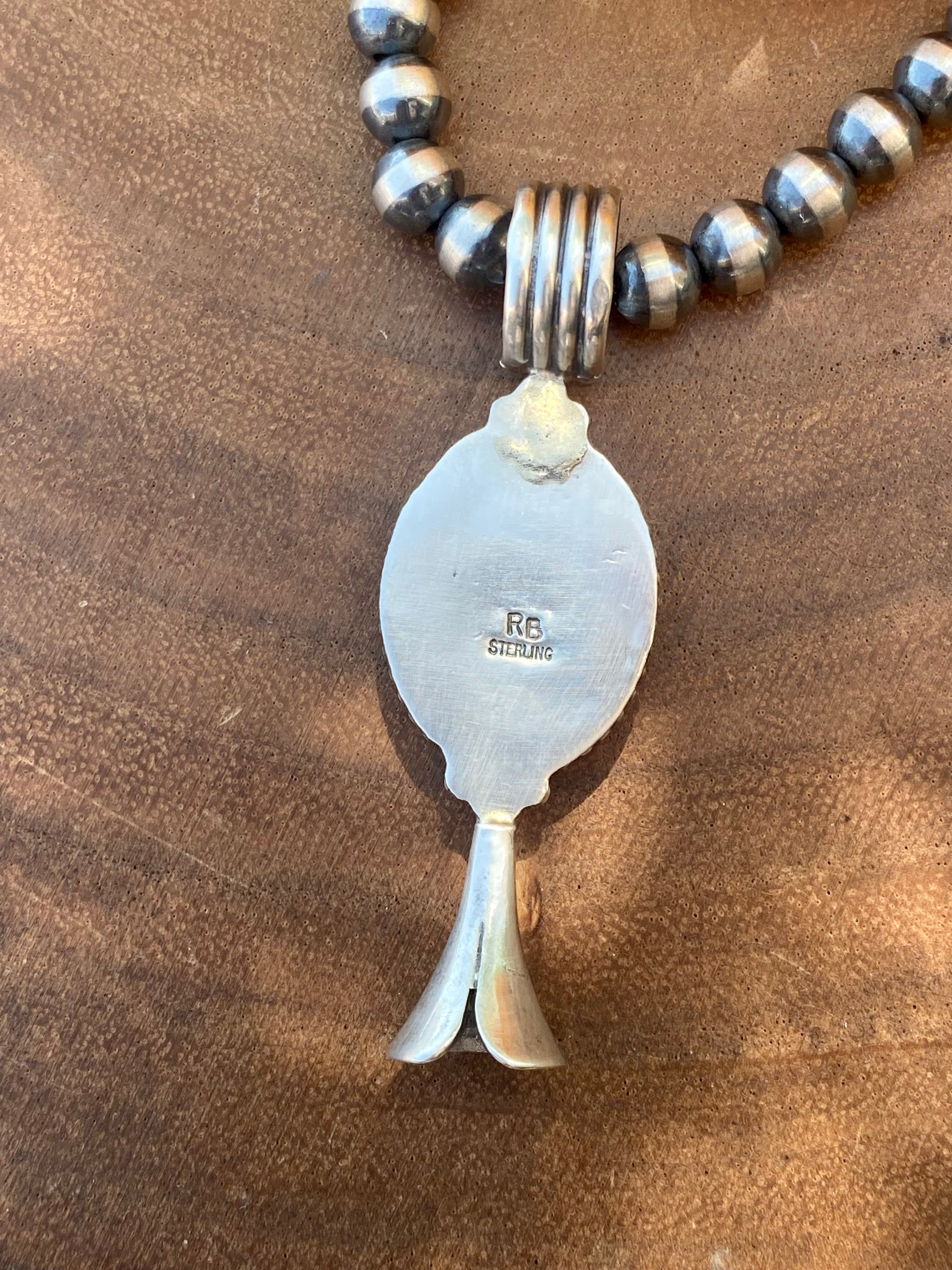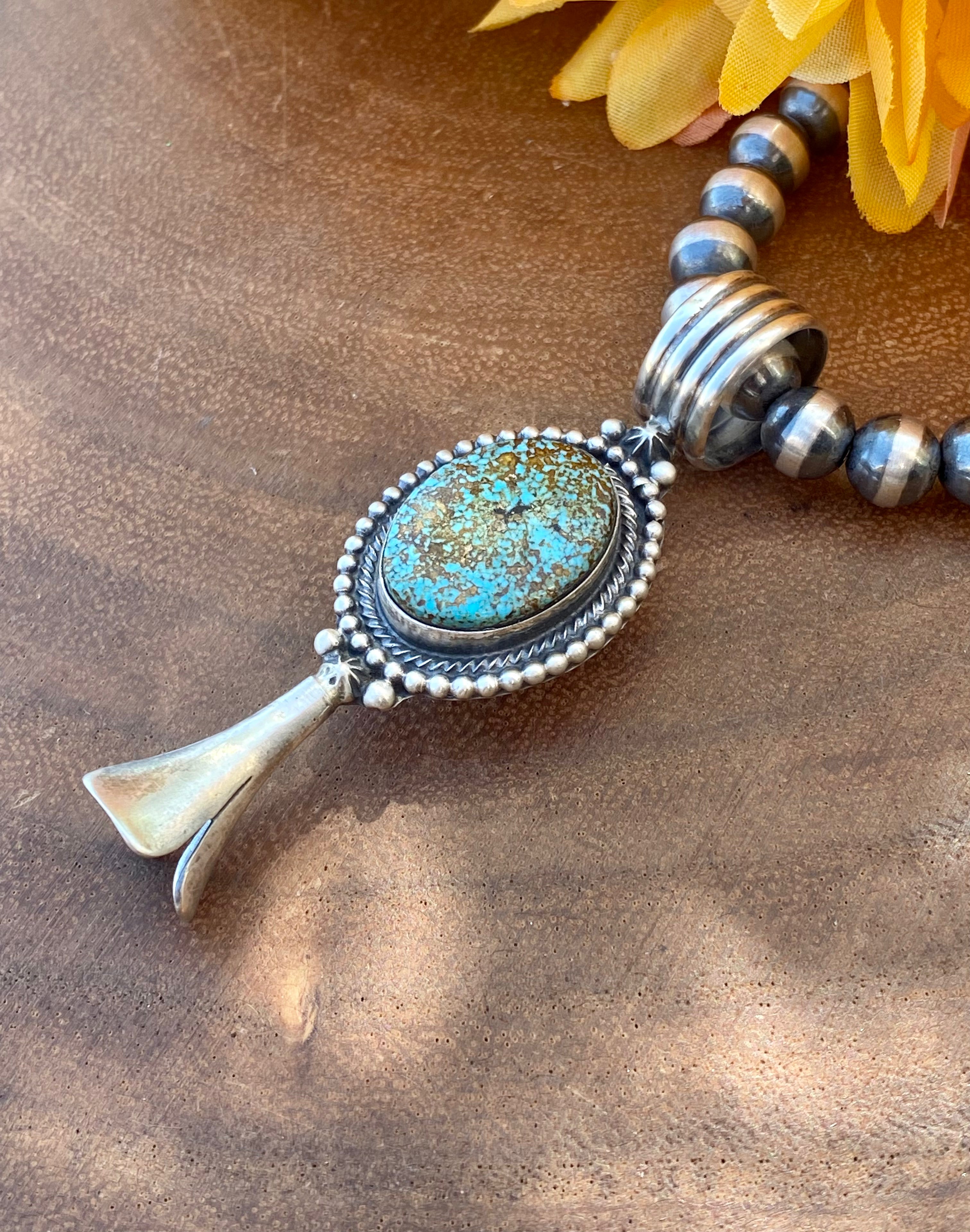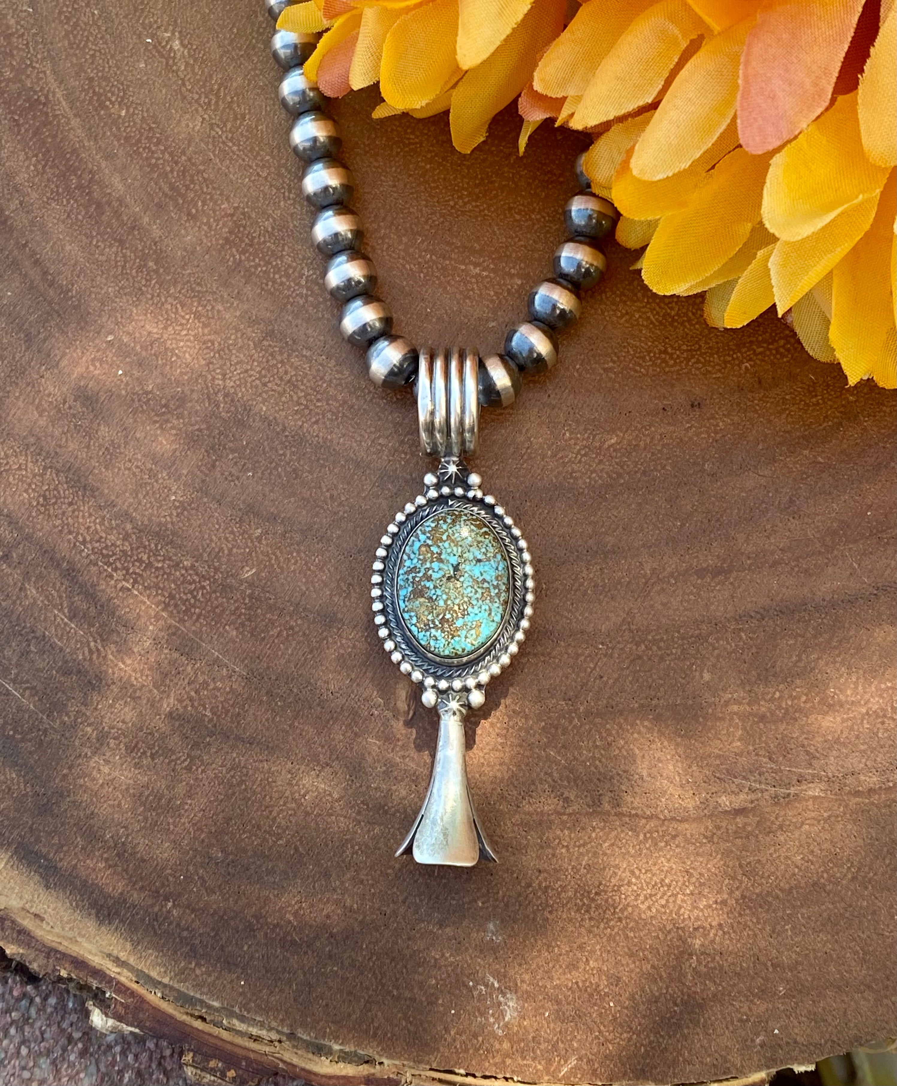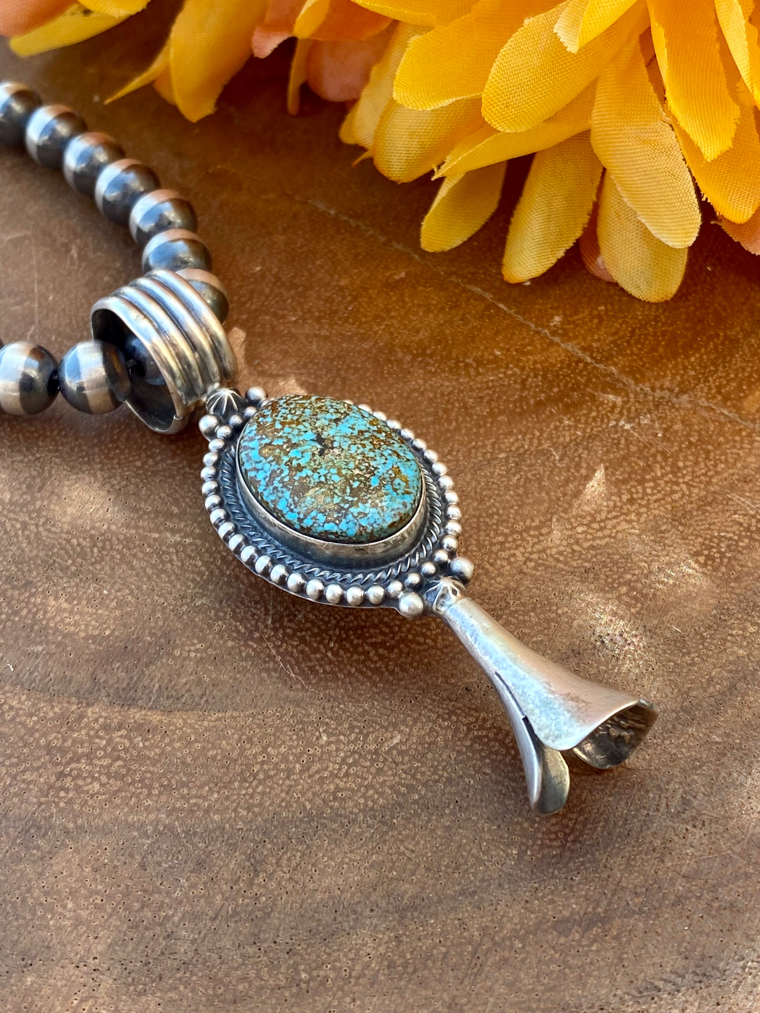 Navajo Made Turquoise Mountain Spiderweb Turquoise & Sterling Silver Blossom Pendant