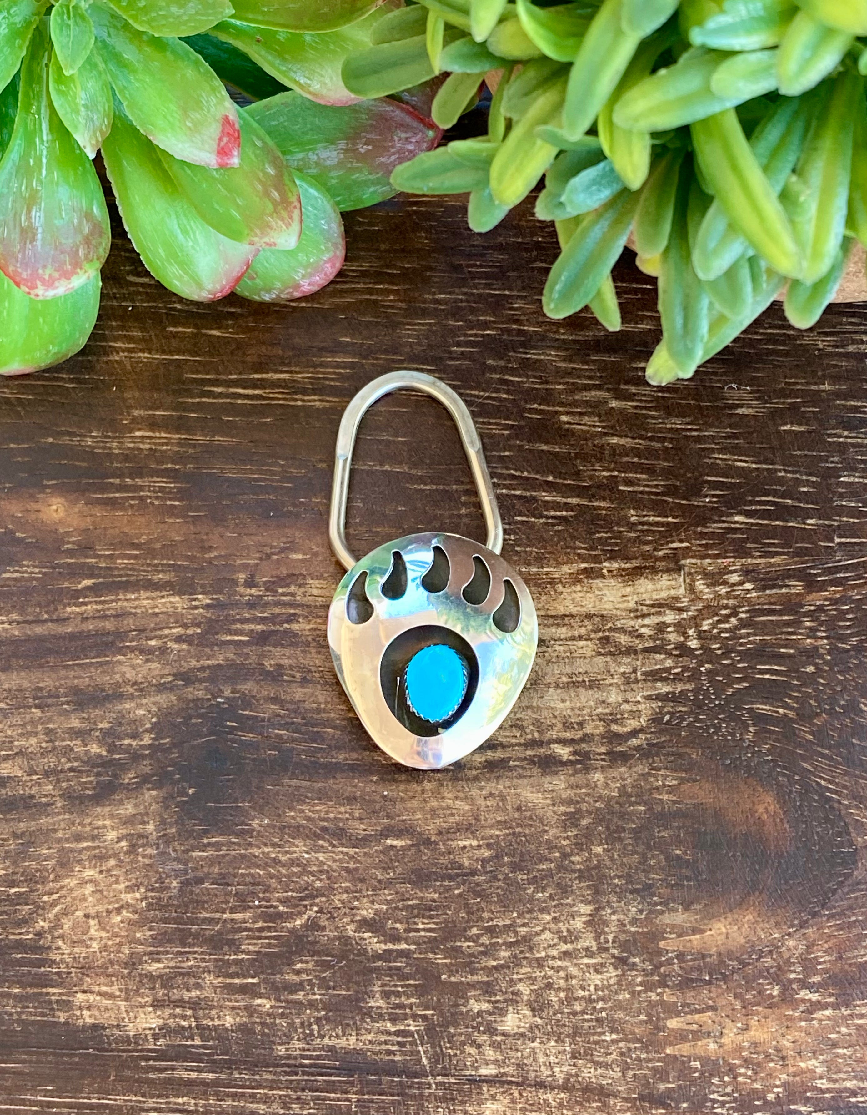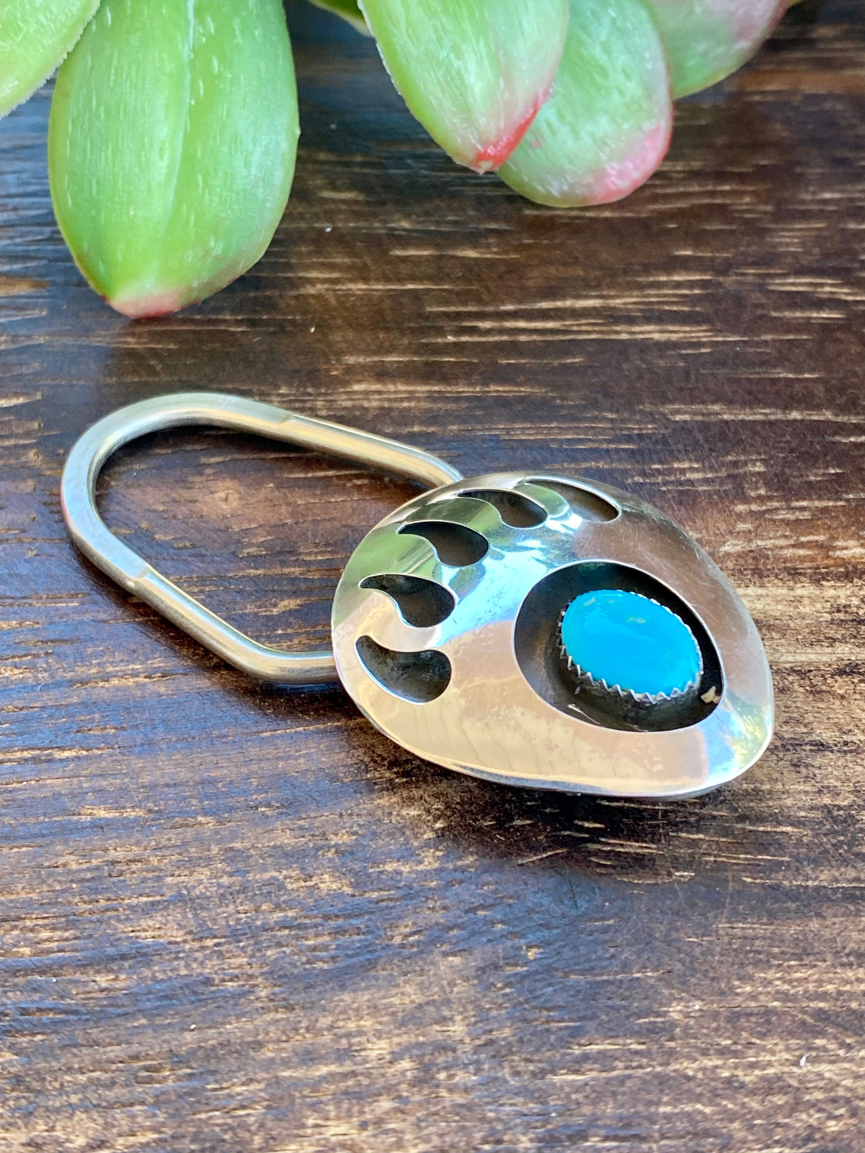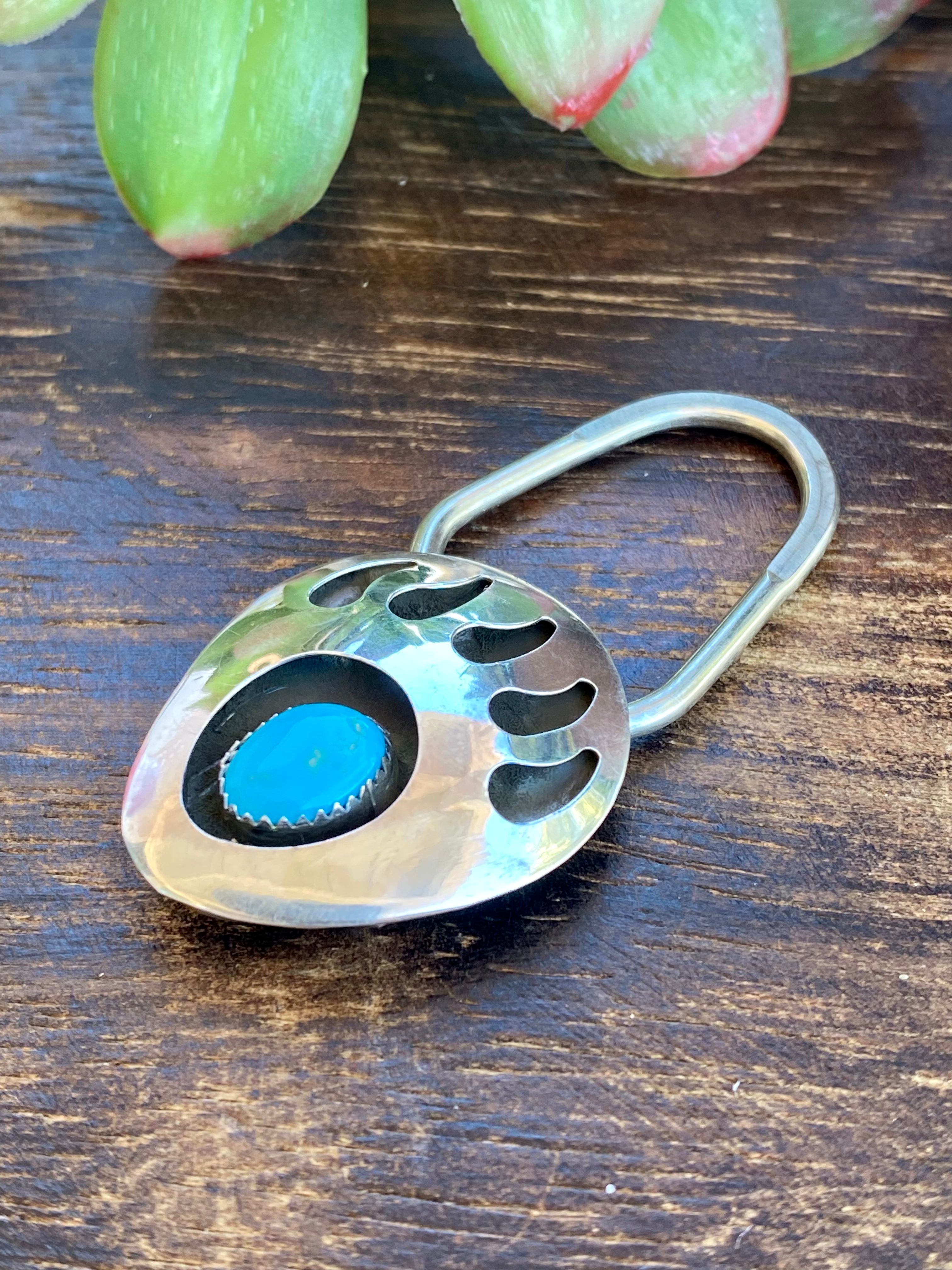 Navajo Made Turquoise & Sterling Silver Bear Claw Keychain