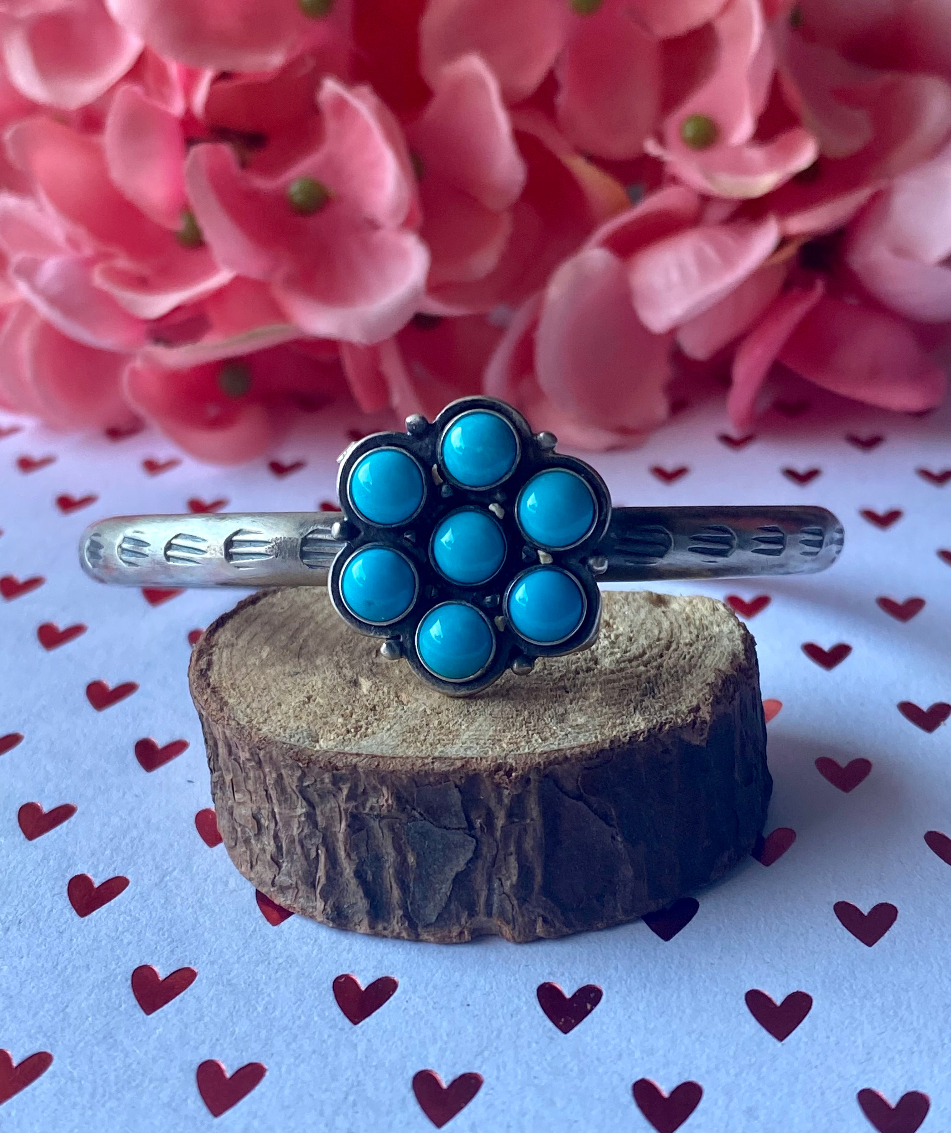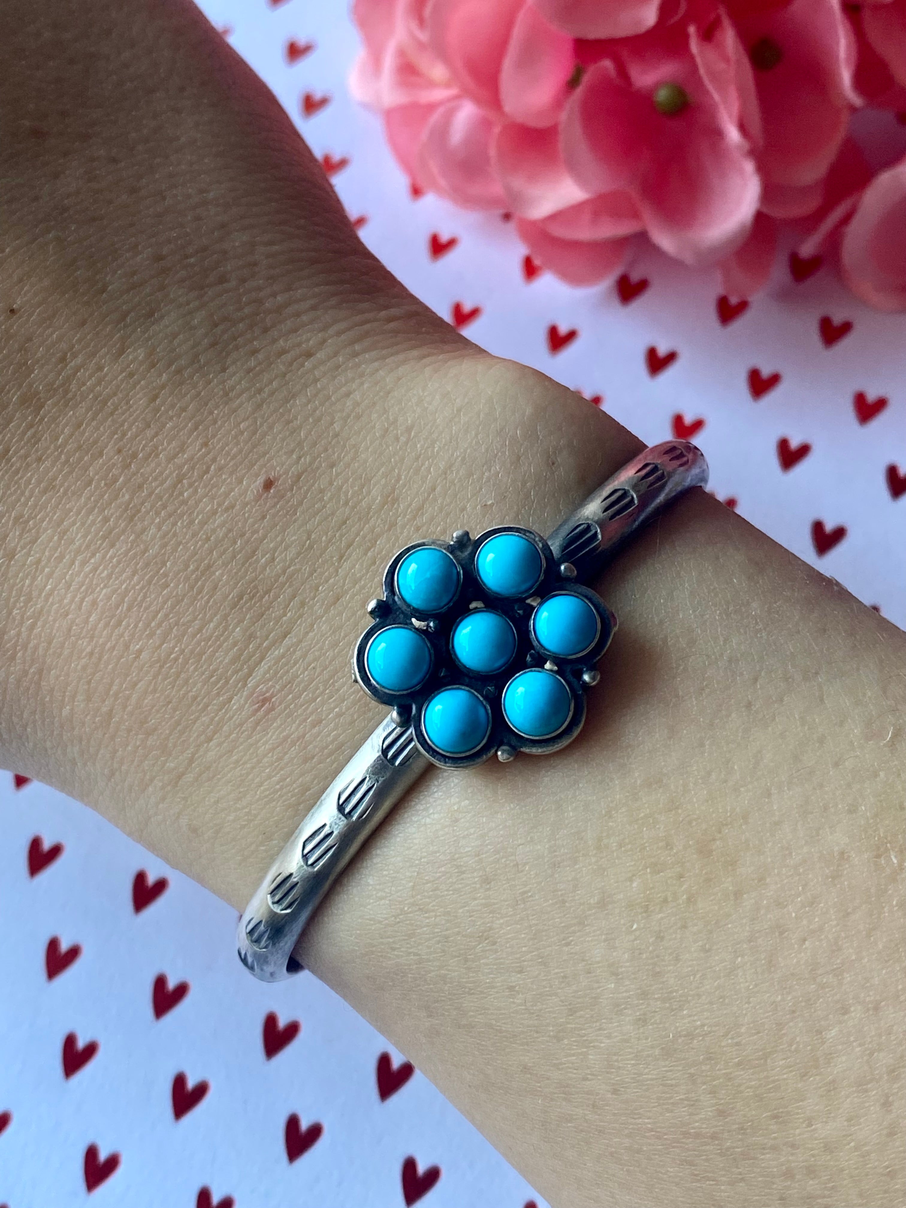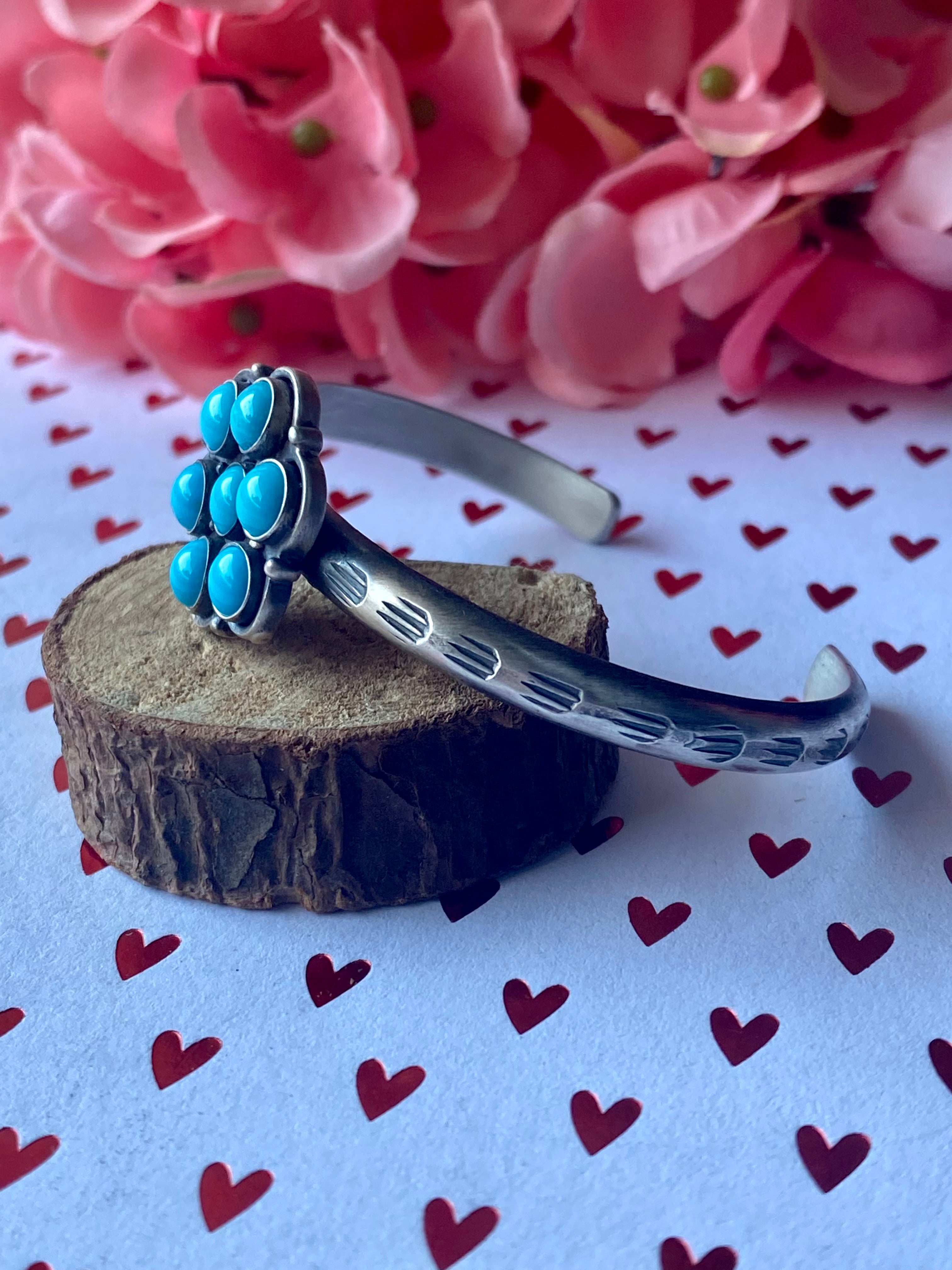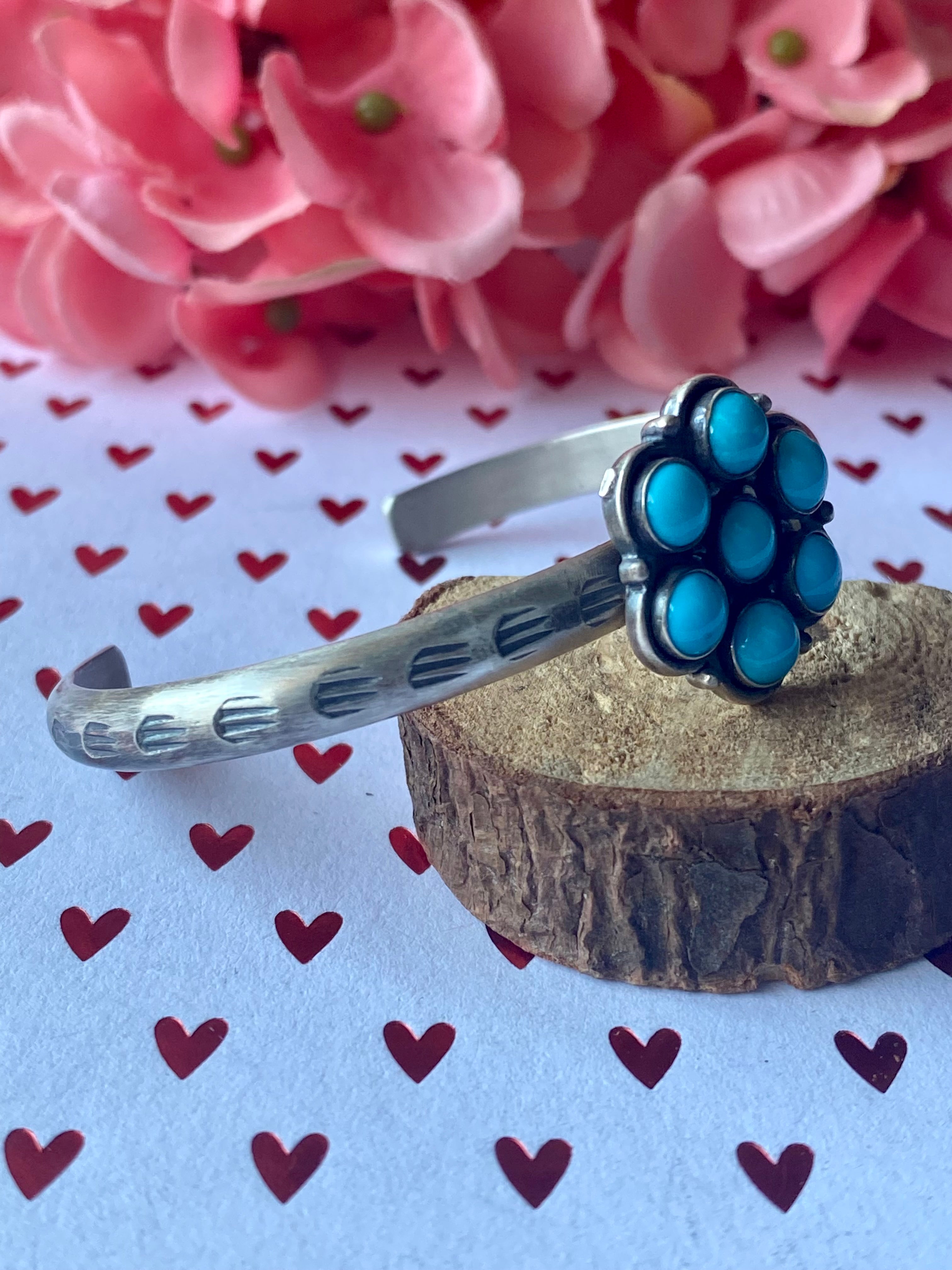 Navajo Made Turquoise & Sterling Silver Cluster Cuff Bracelet