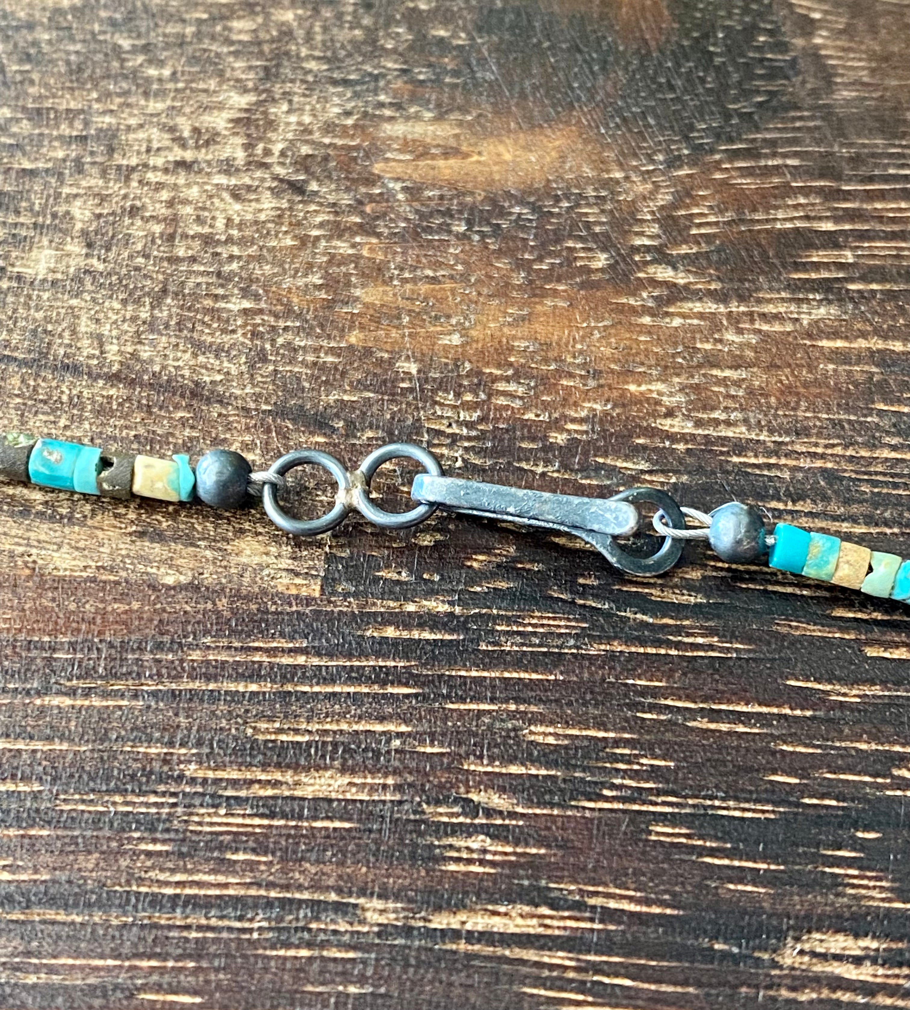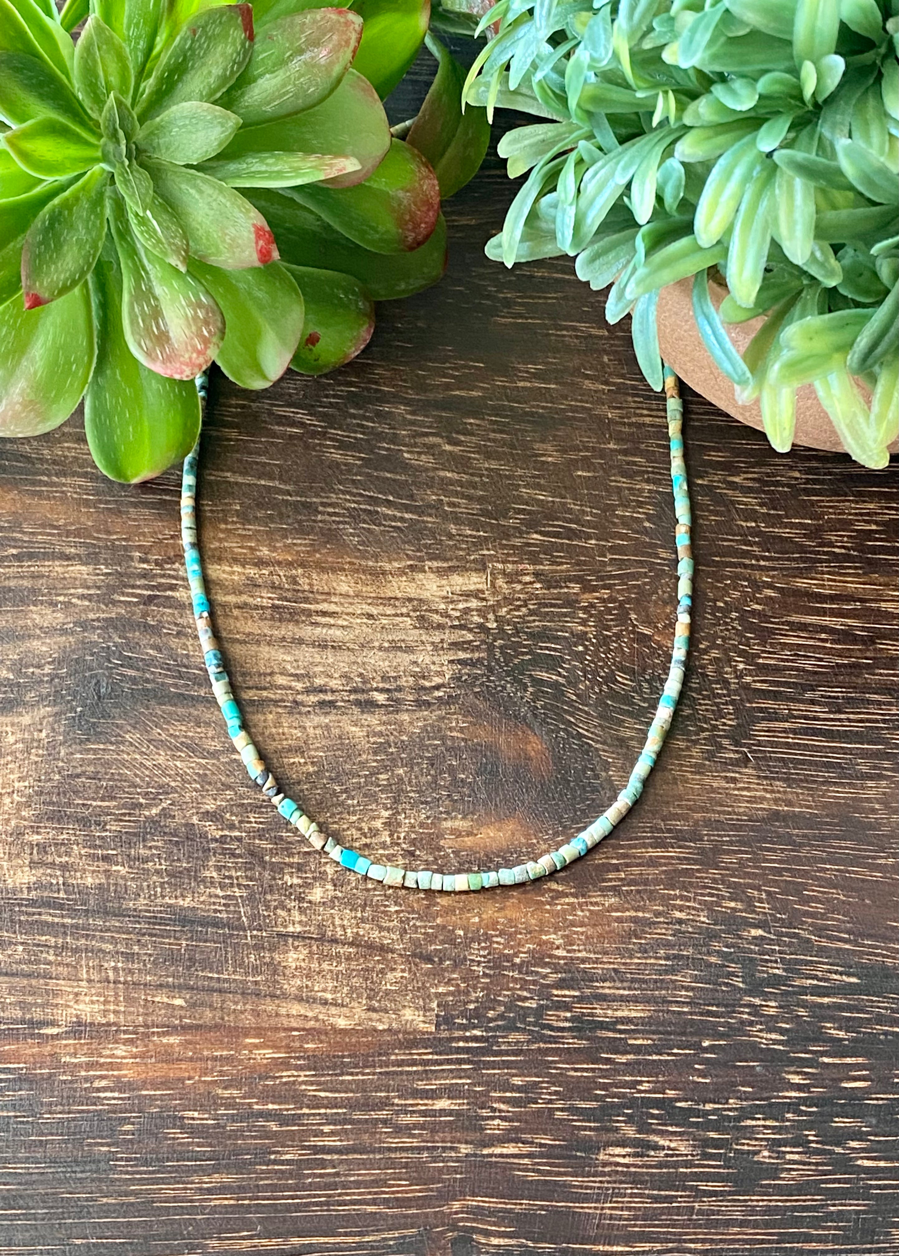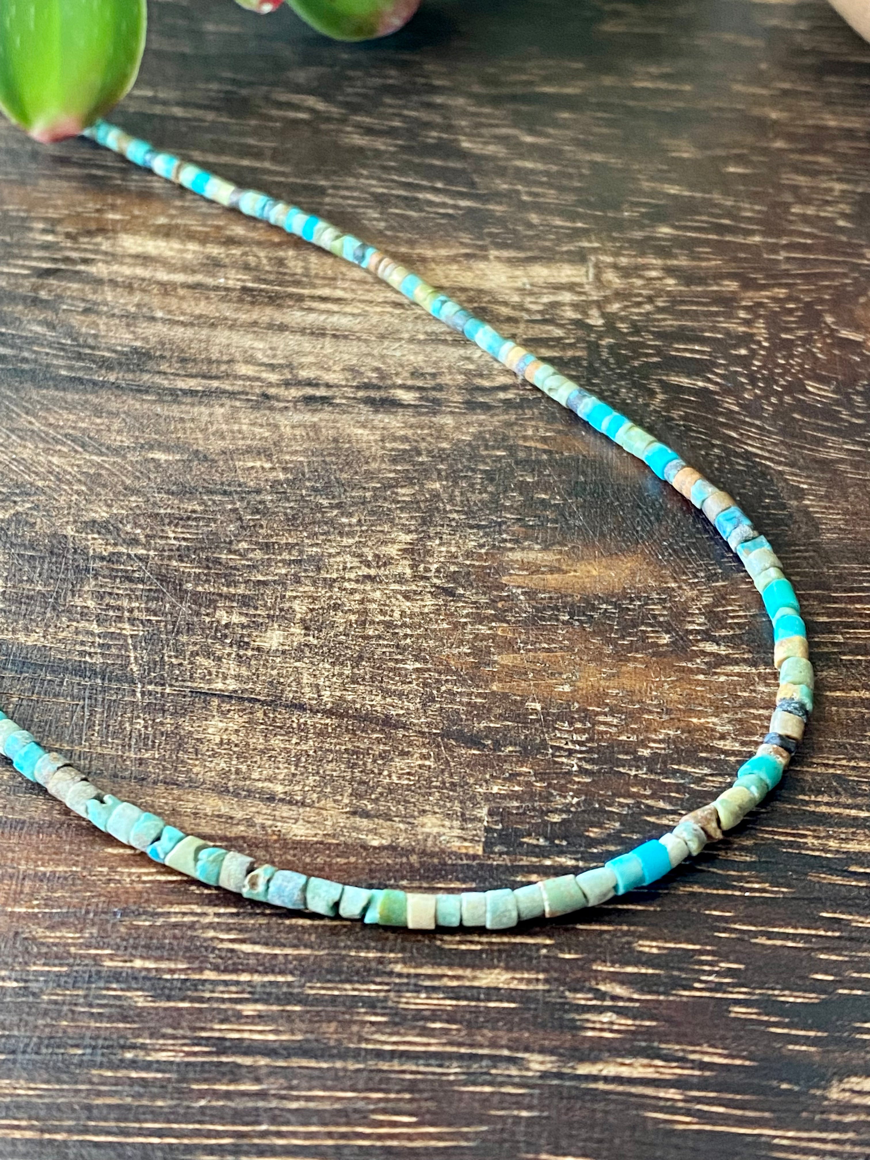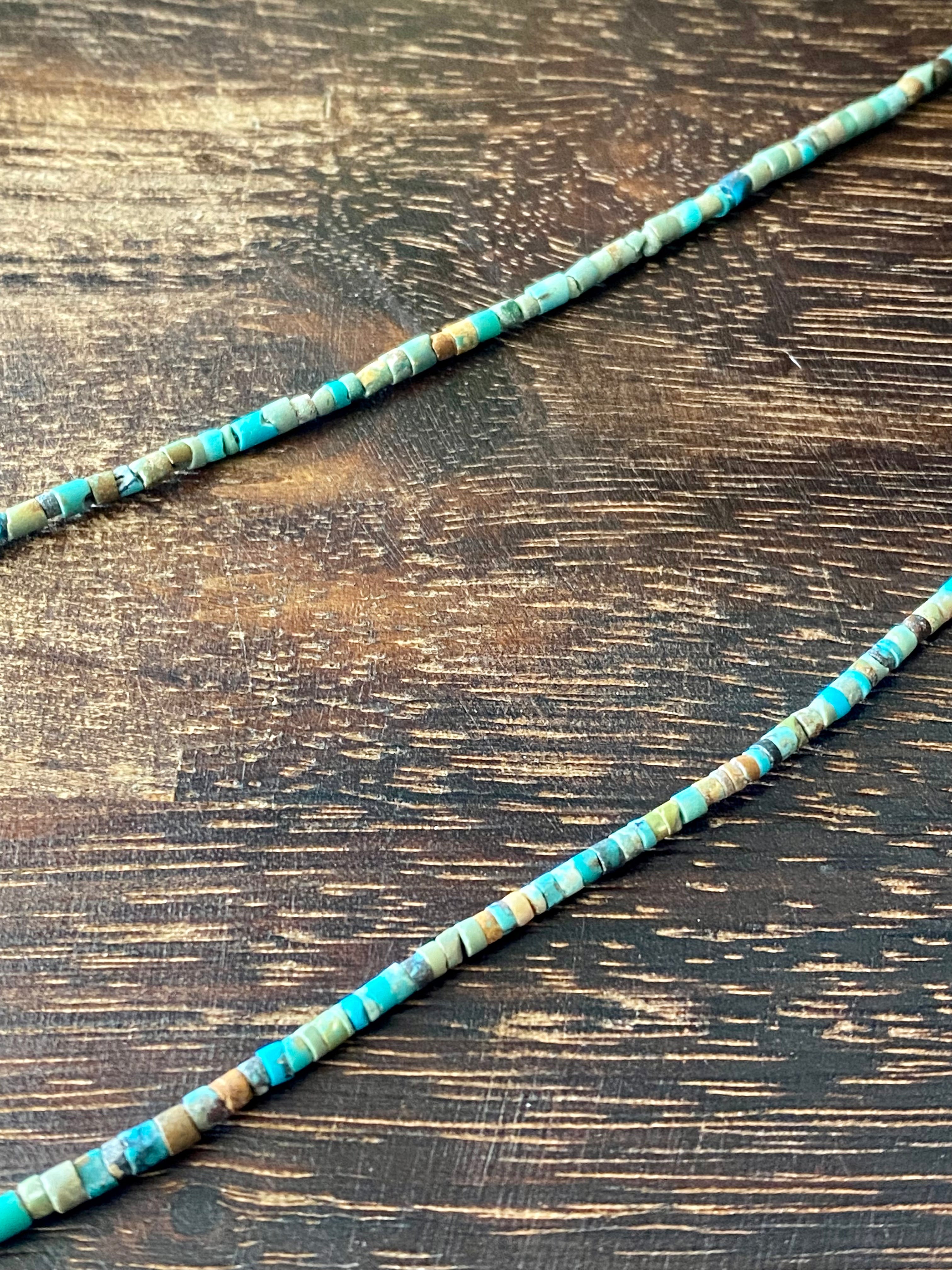 Navajo Made Turquoise & Sterling Silver Heishi Necklaces. They measure 14 inches long. Stones will differ due to natural stones.