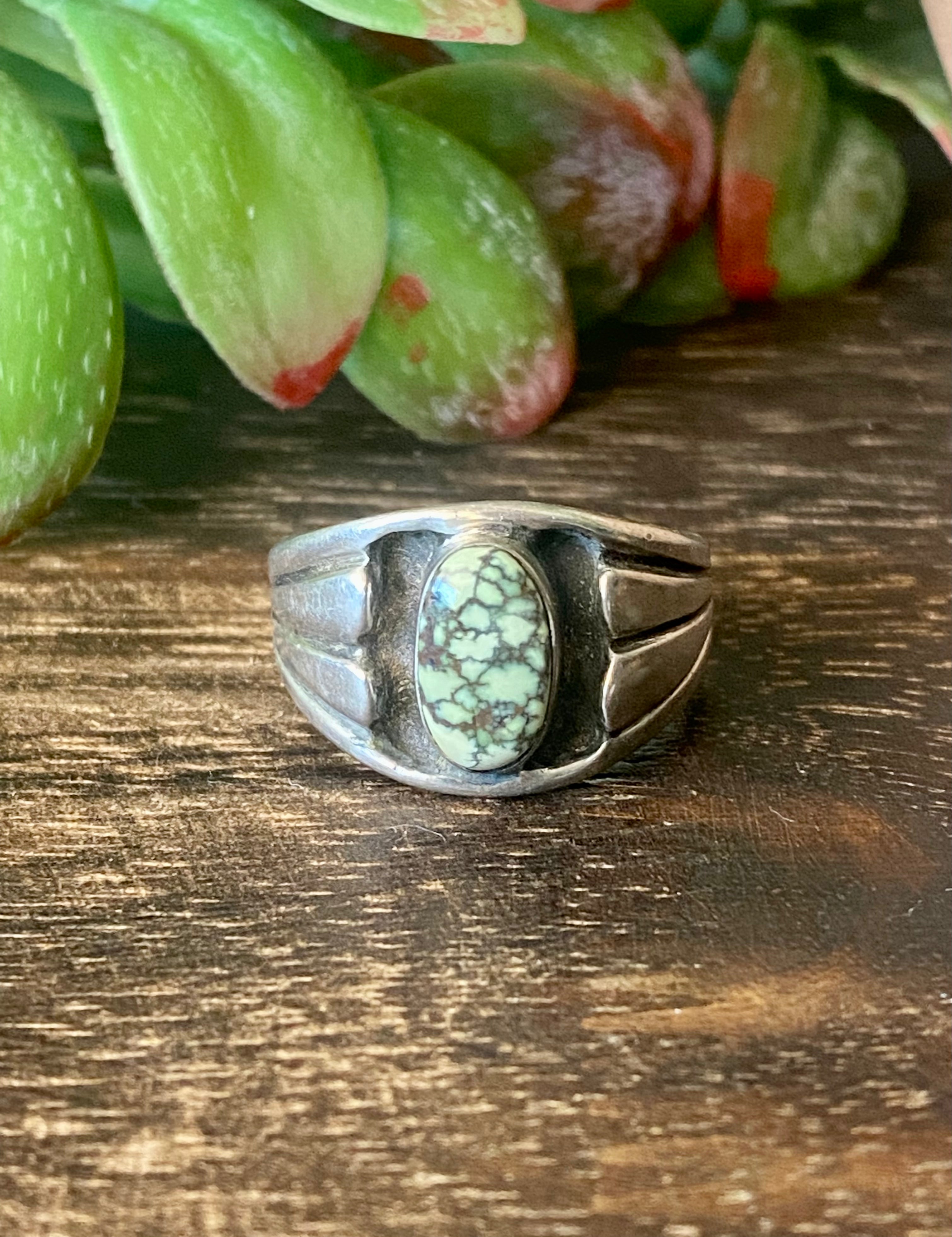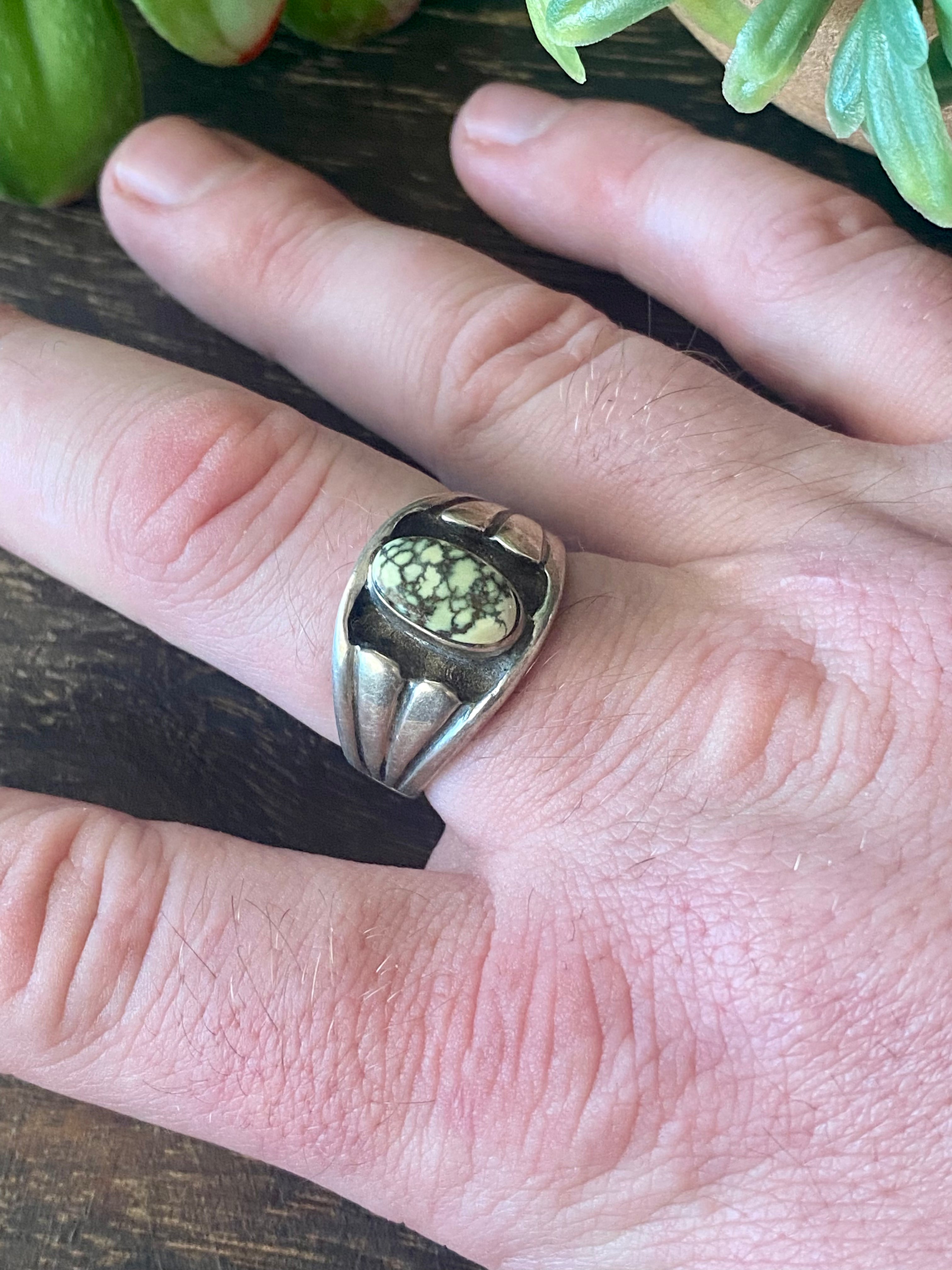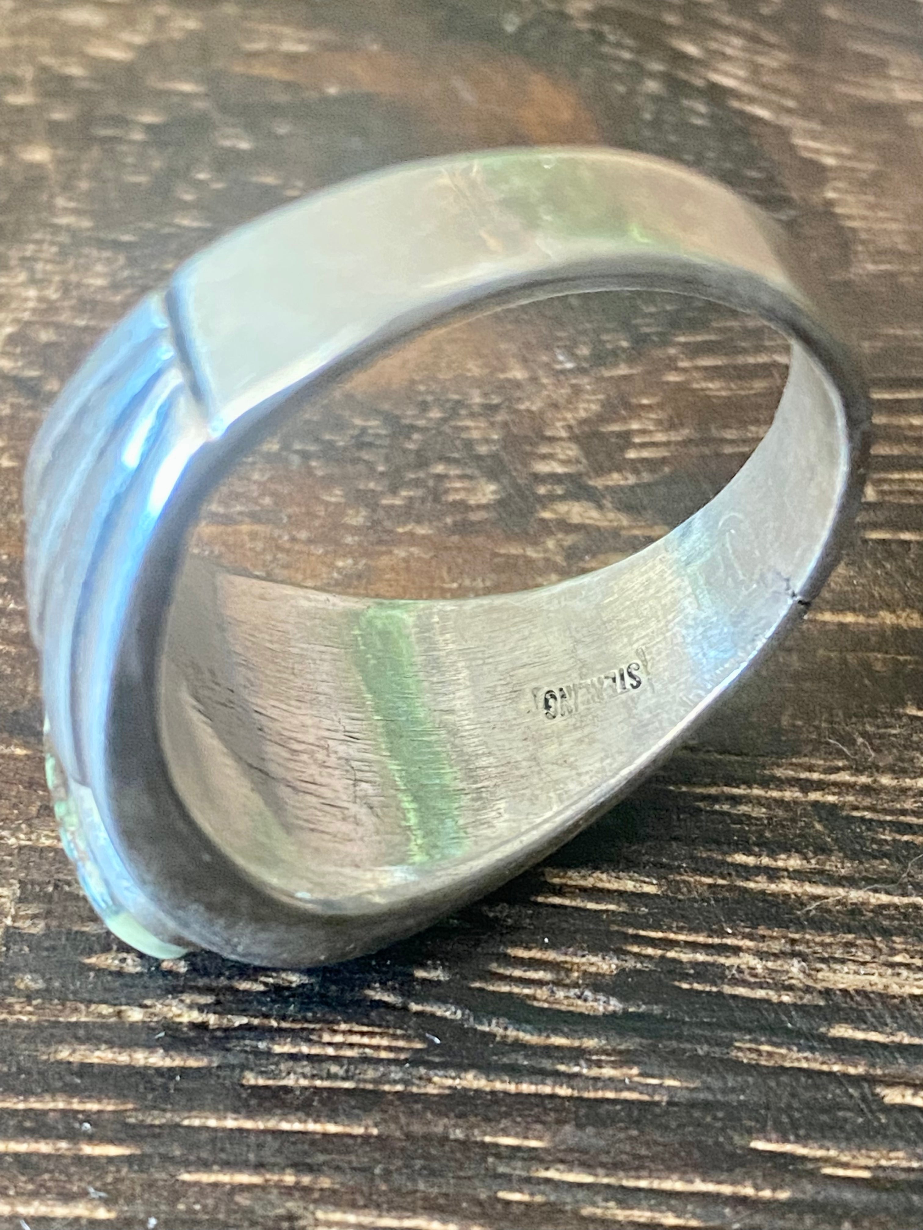 Navajo Made Turquoise & Sterling Silver Inlay Ring Size 11.5