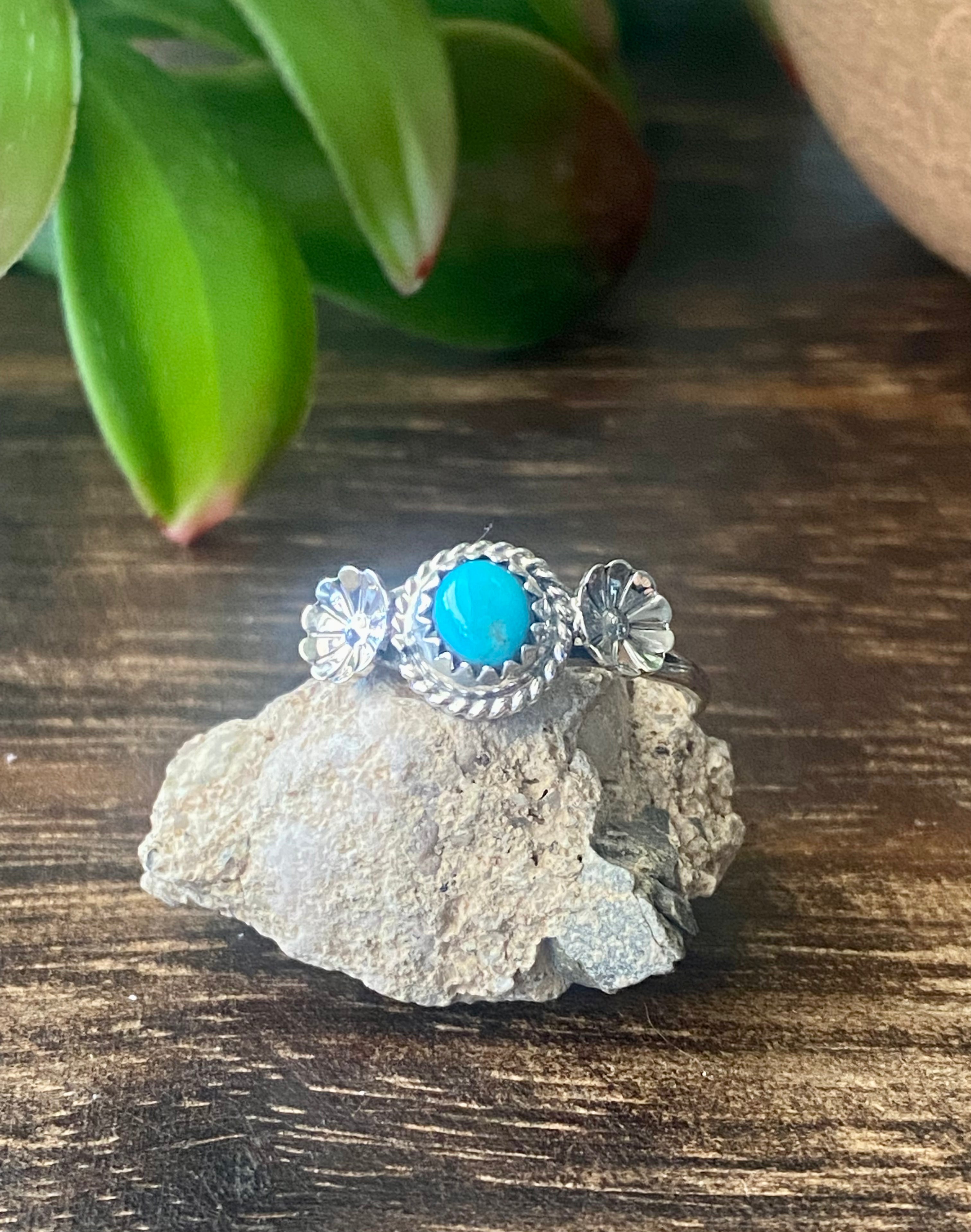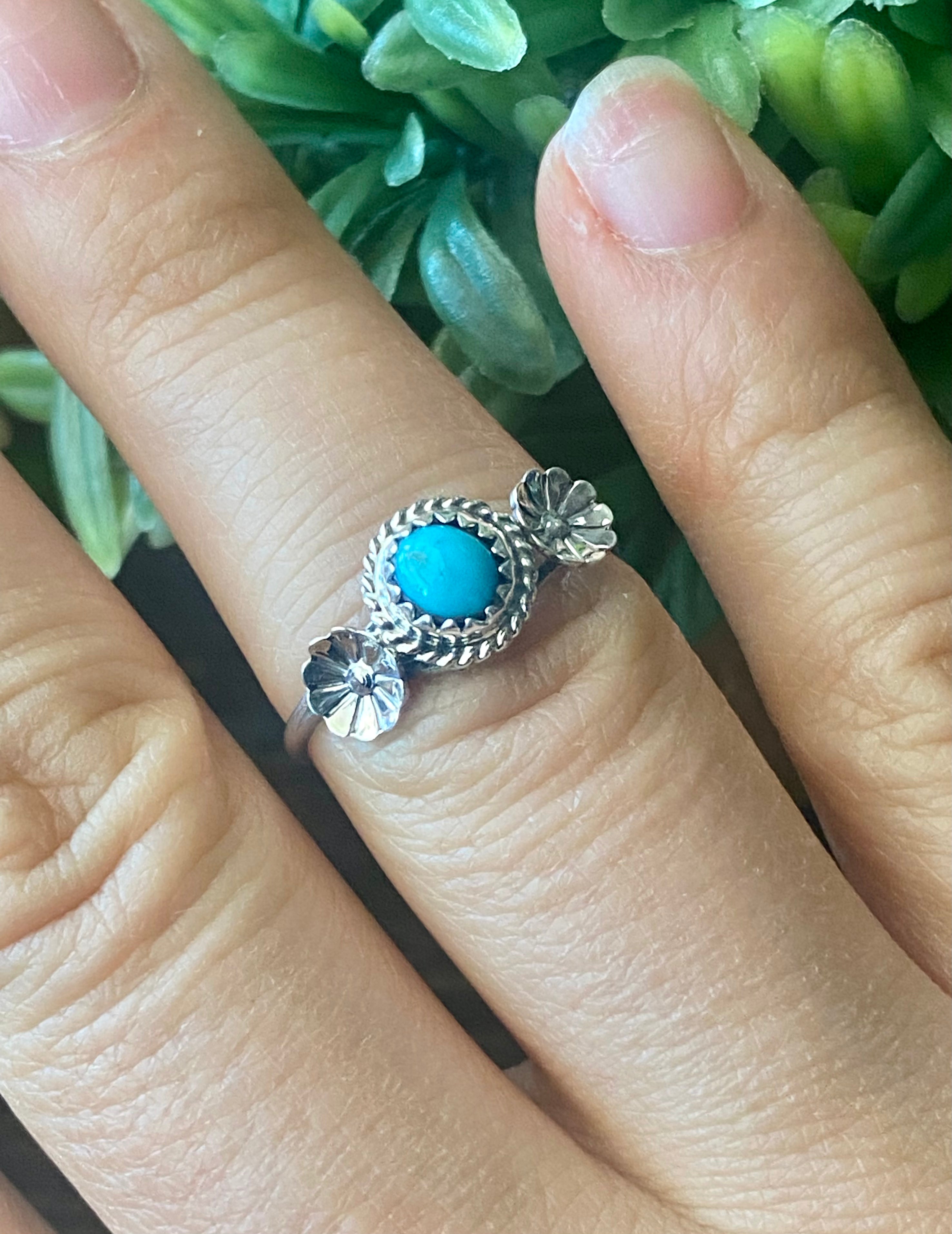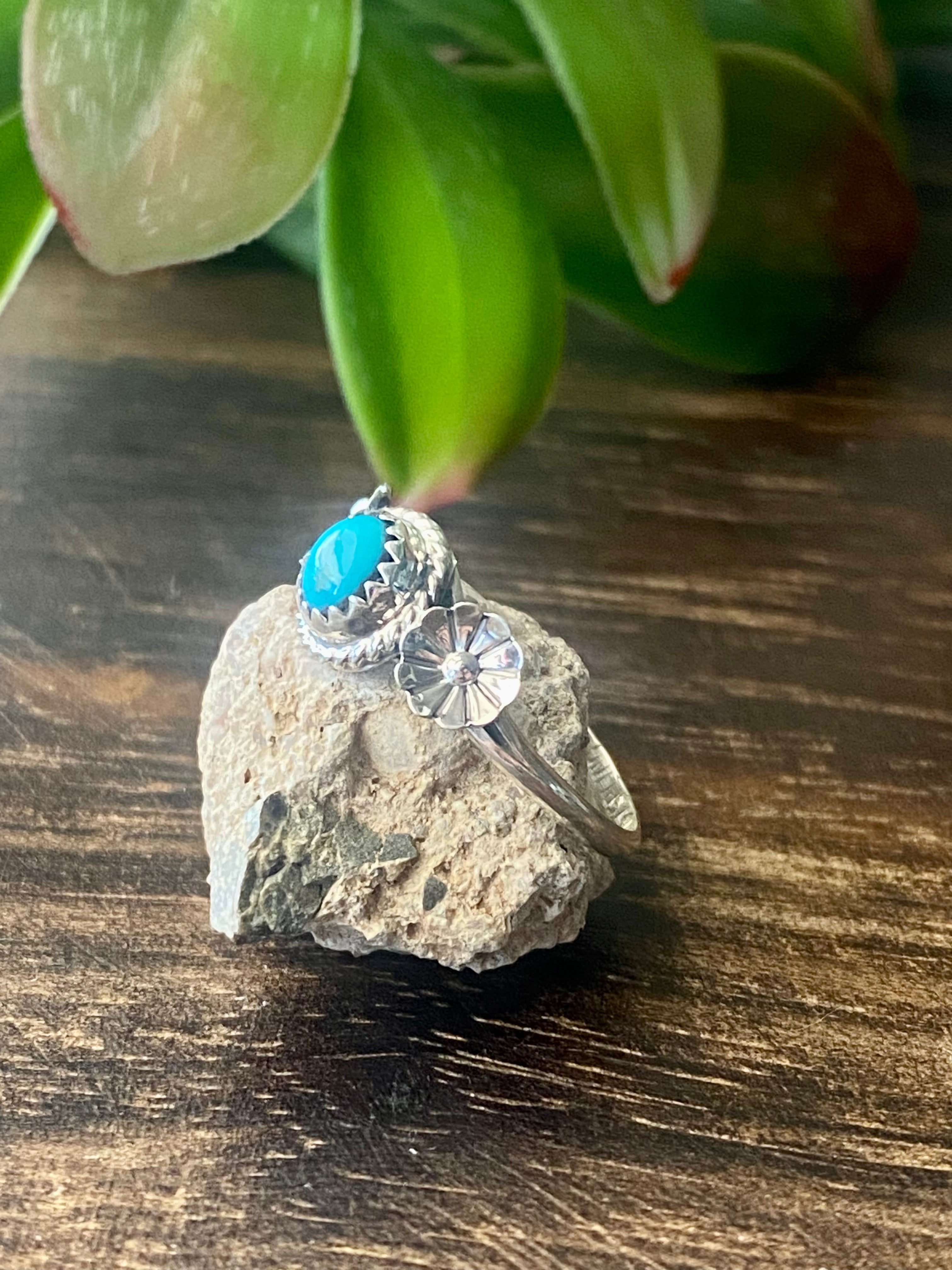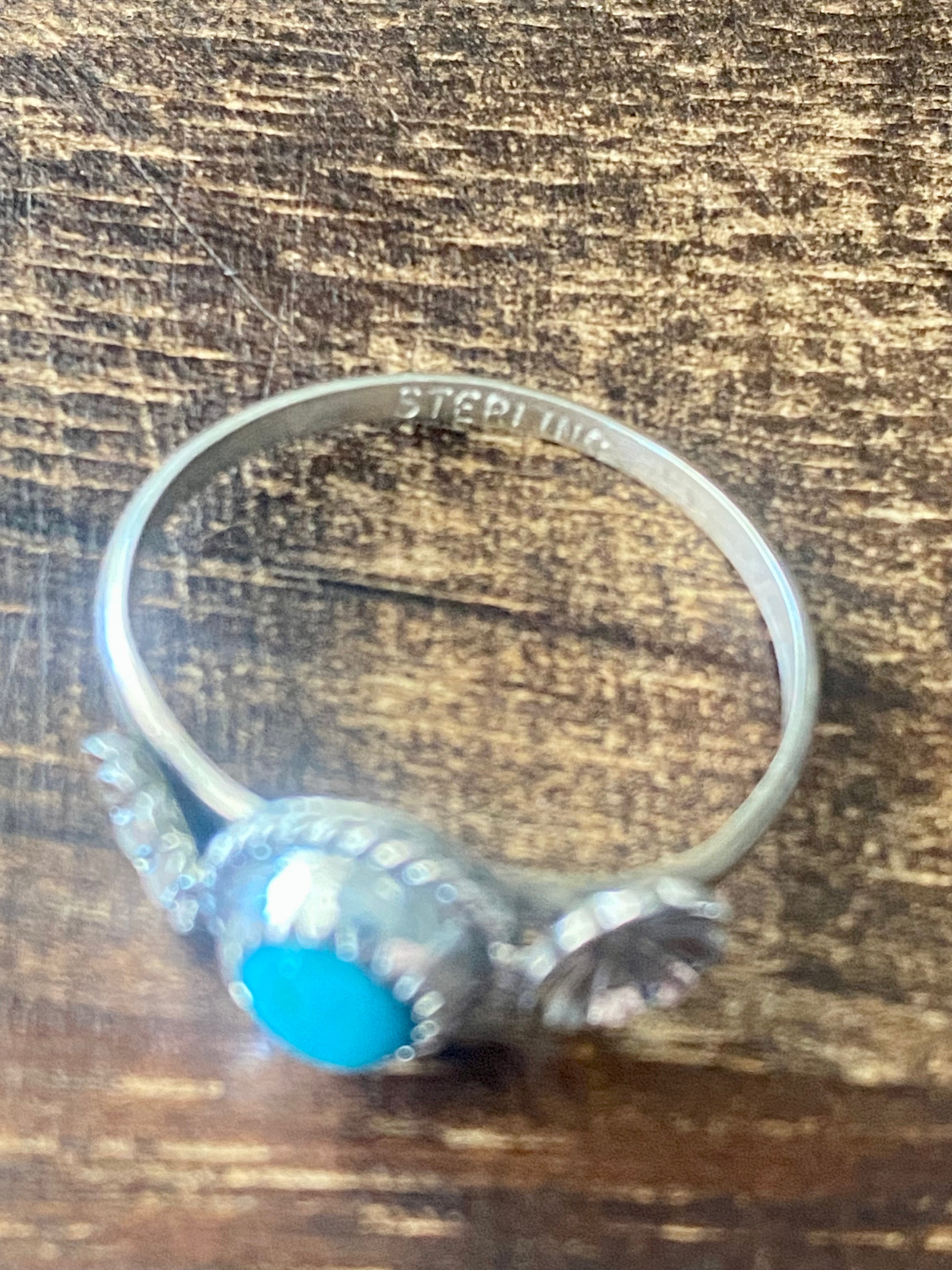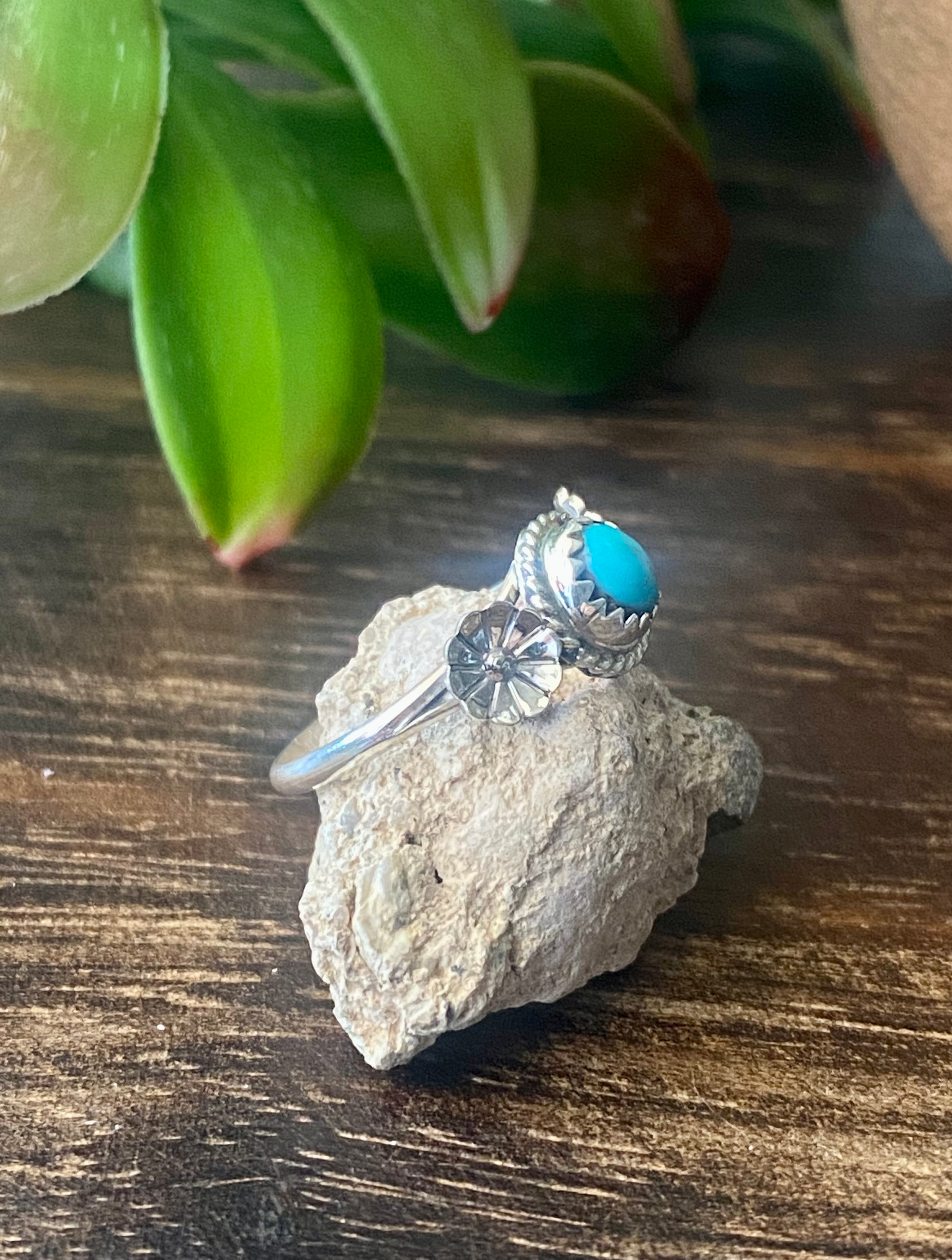 Navajo Made Turquoise & Sterling Silver Ring Size 8