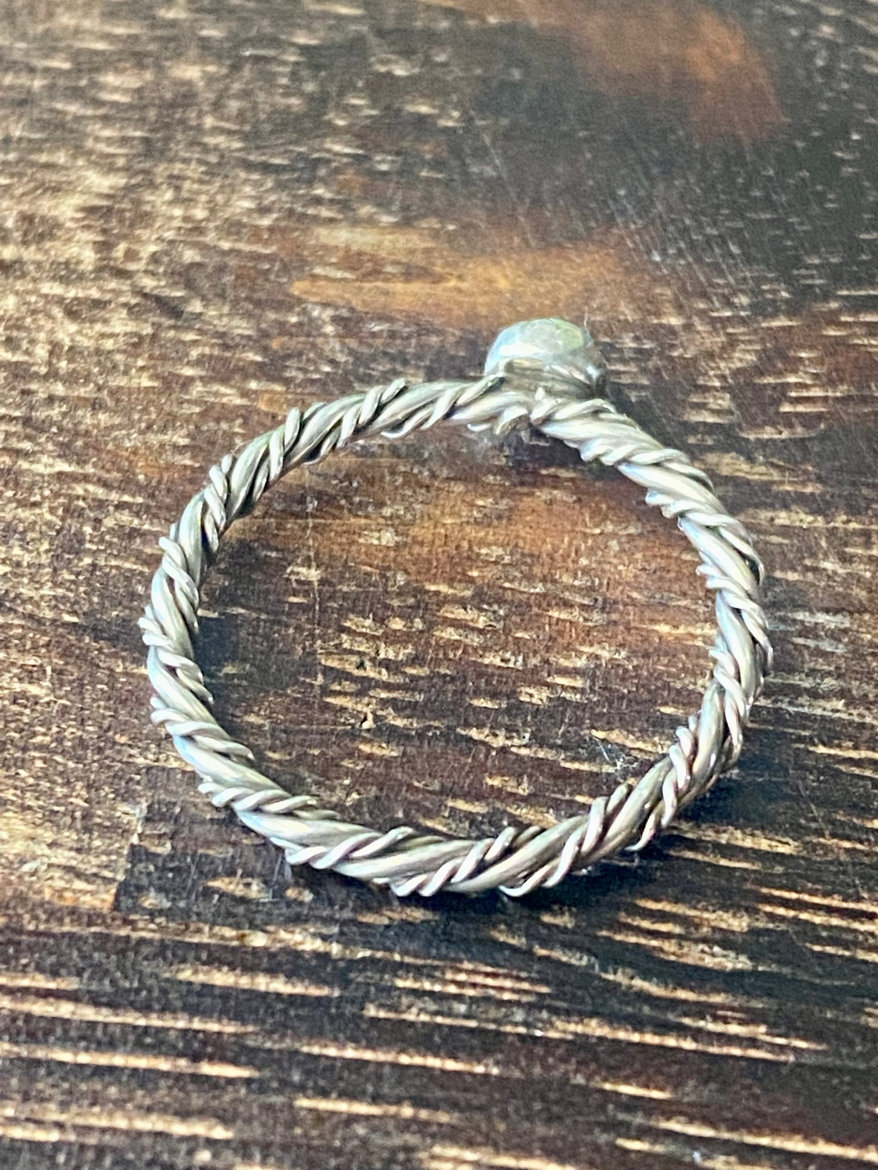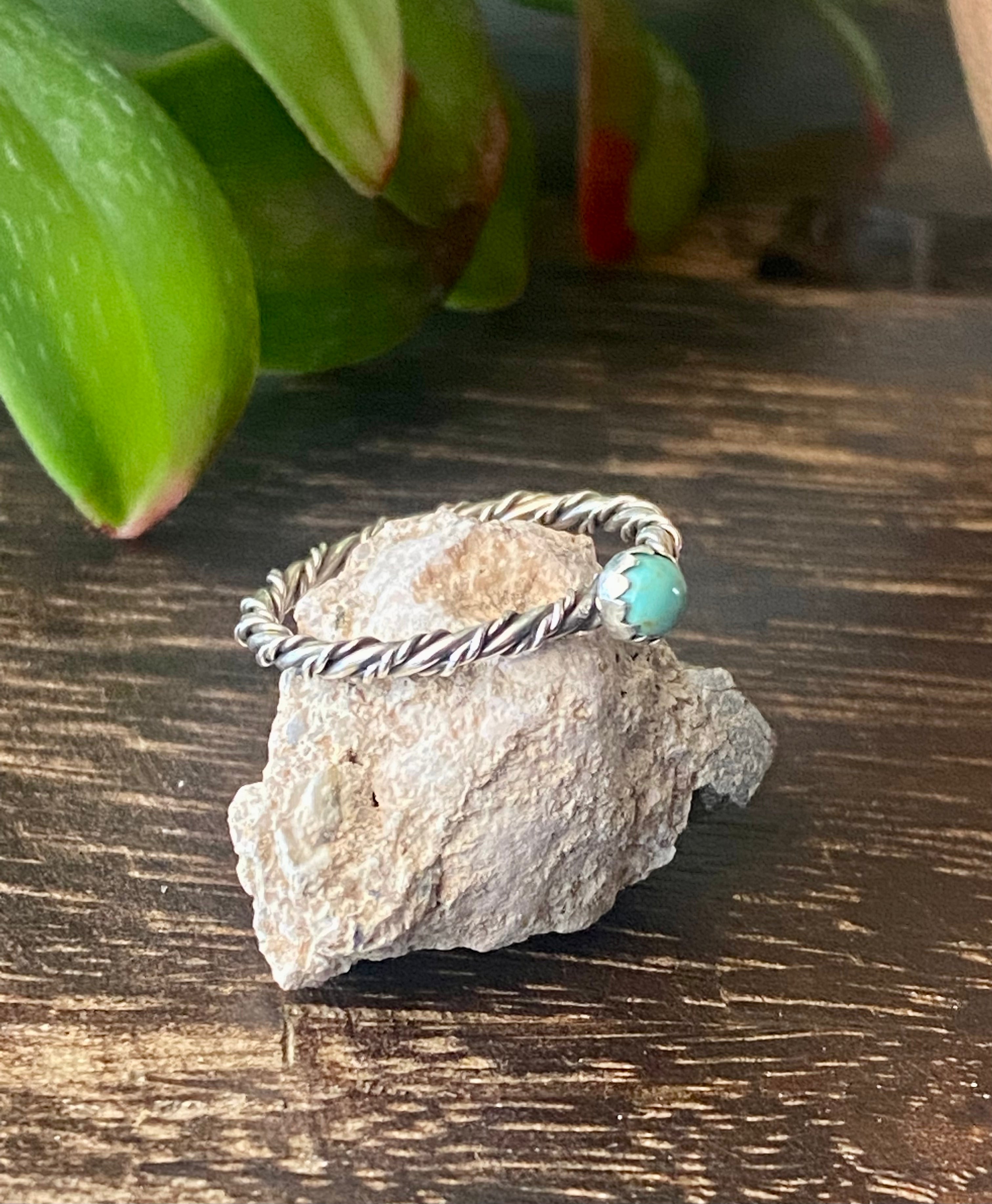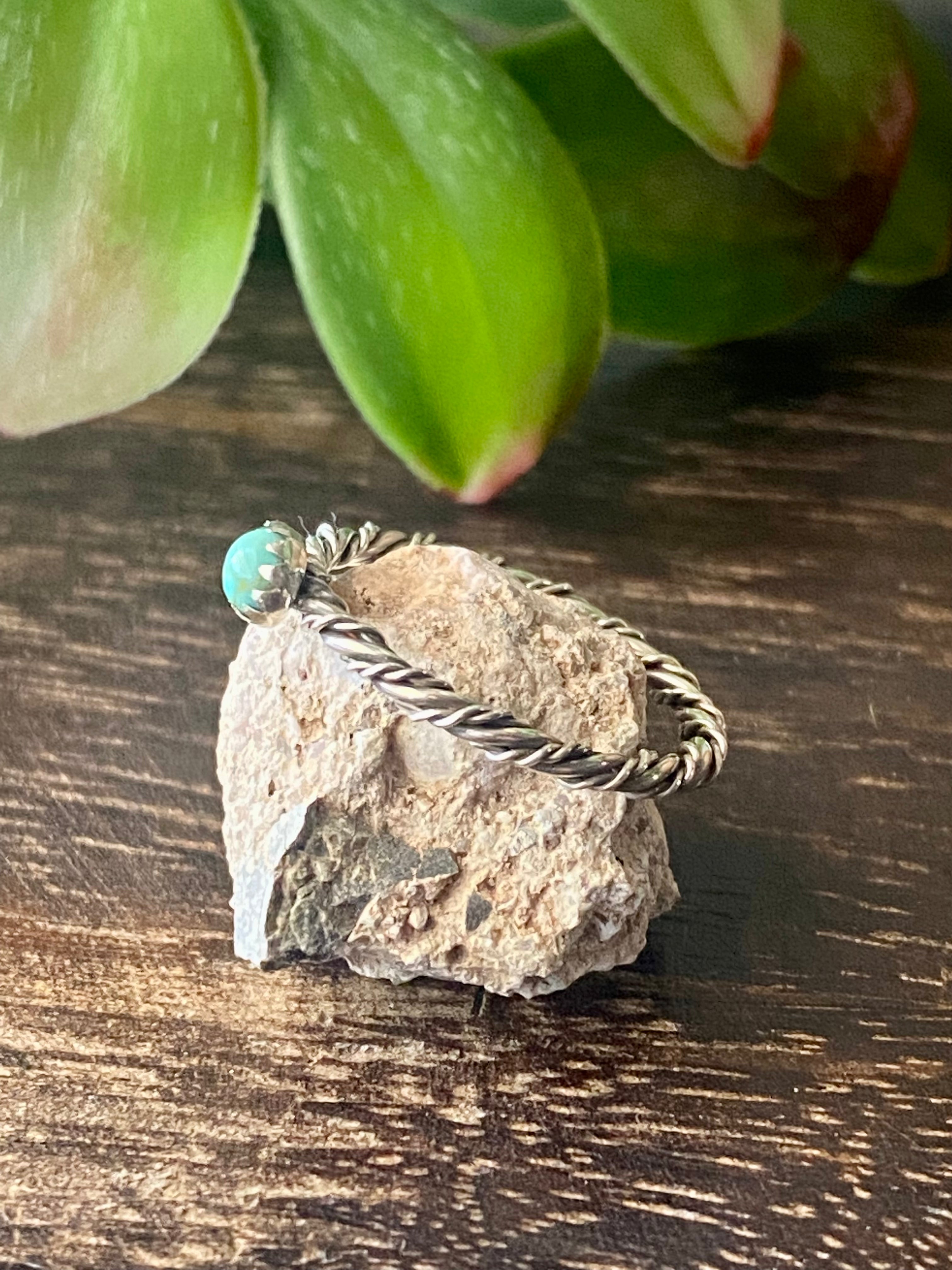 Navajo Made Turquoise & Sterling Silver Rope Ring Size 6.75