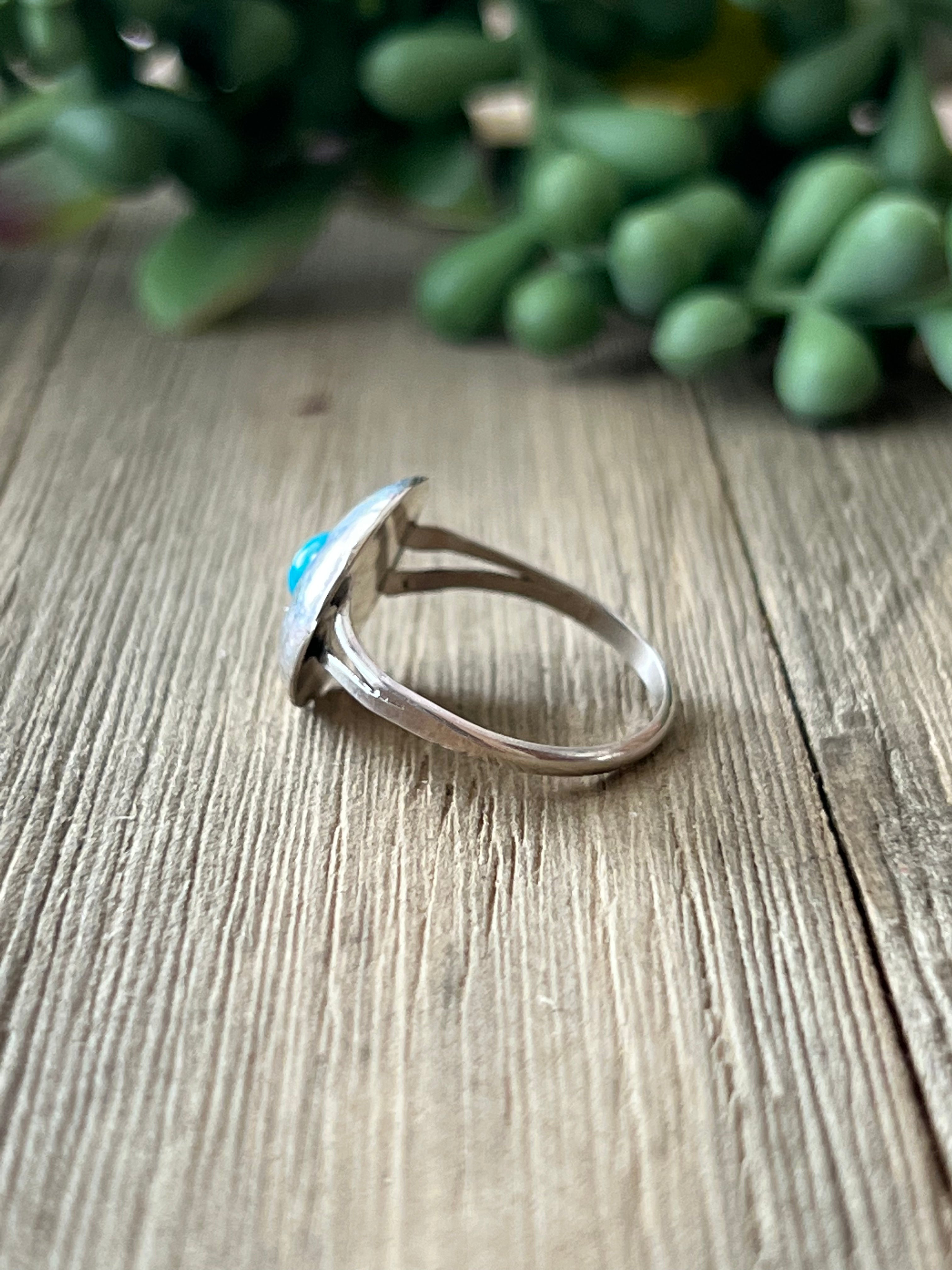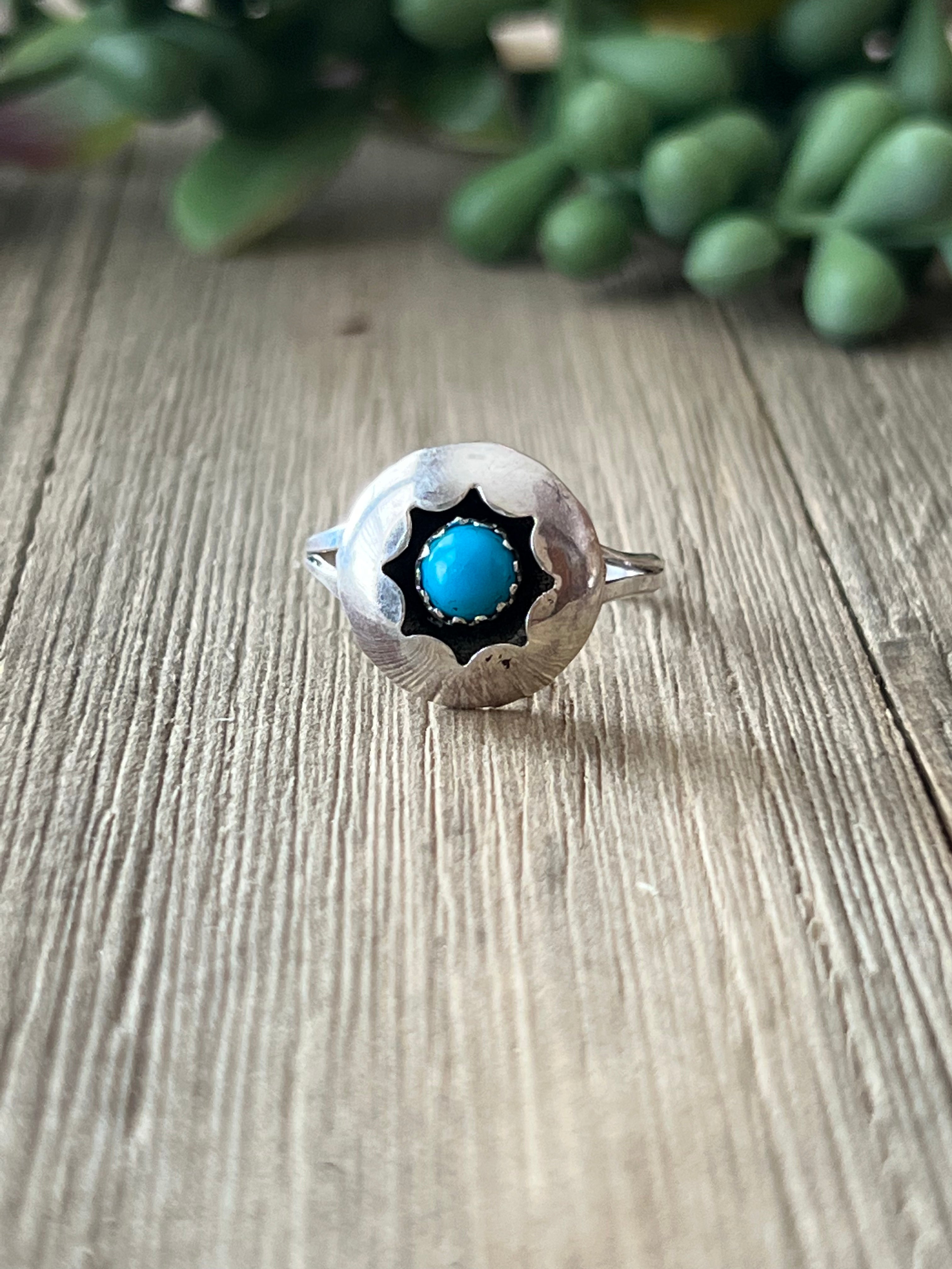 Navajo Made Turquoise & Sterling Silver Shadow Box Ring