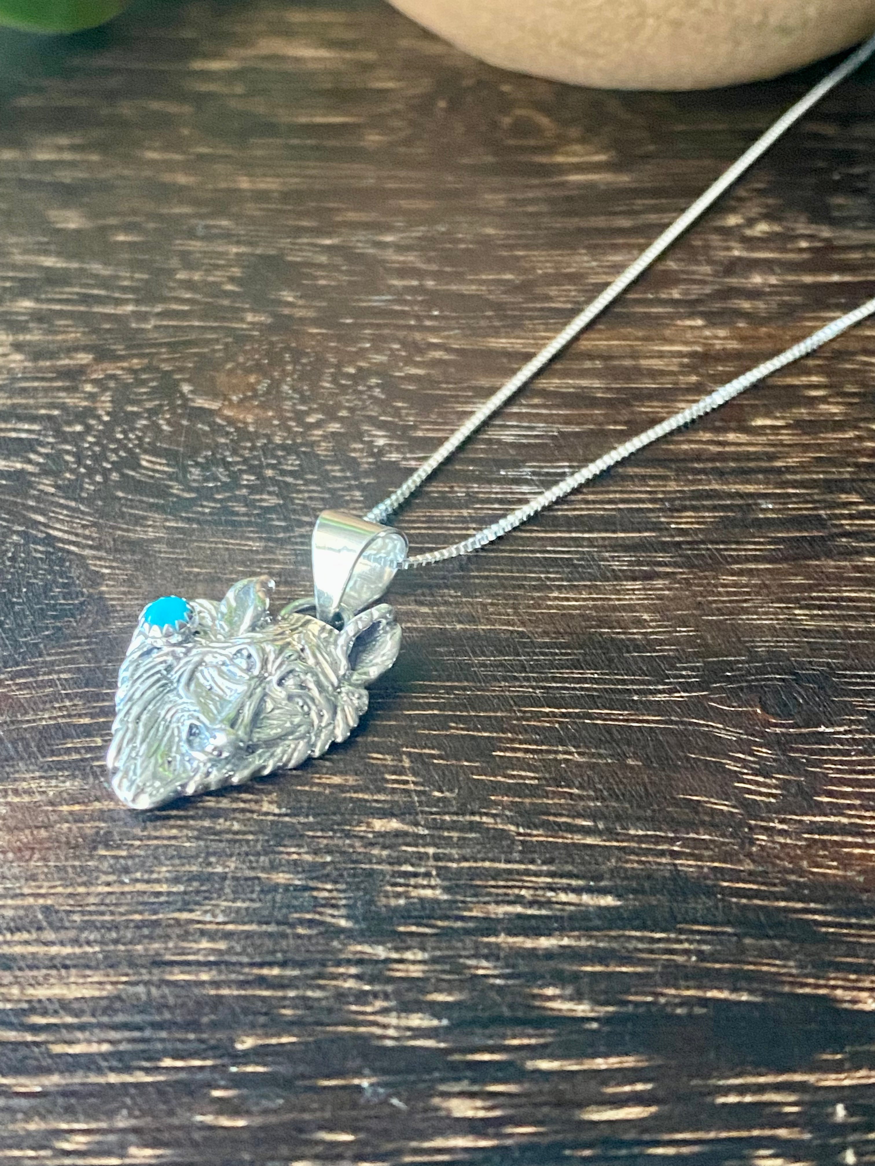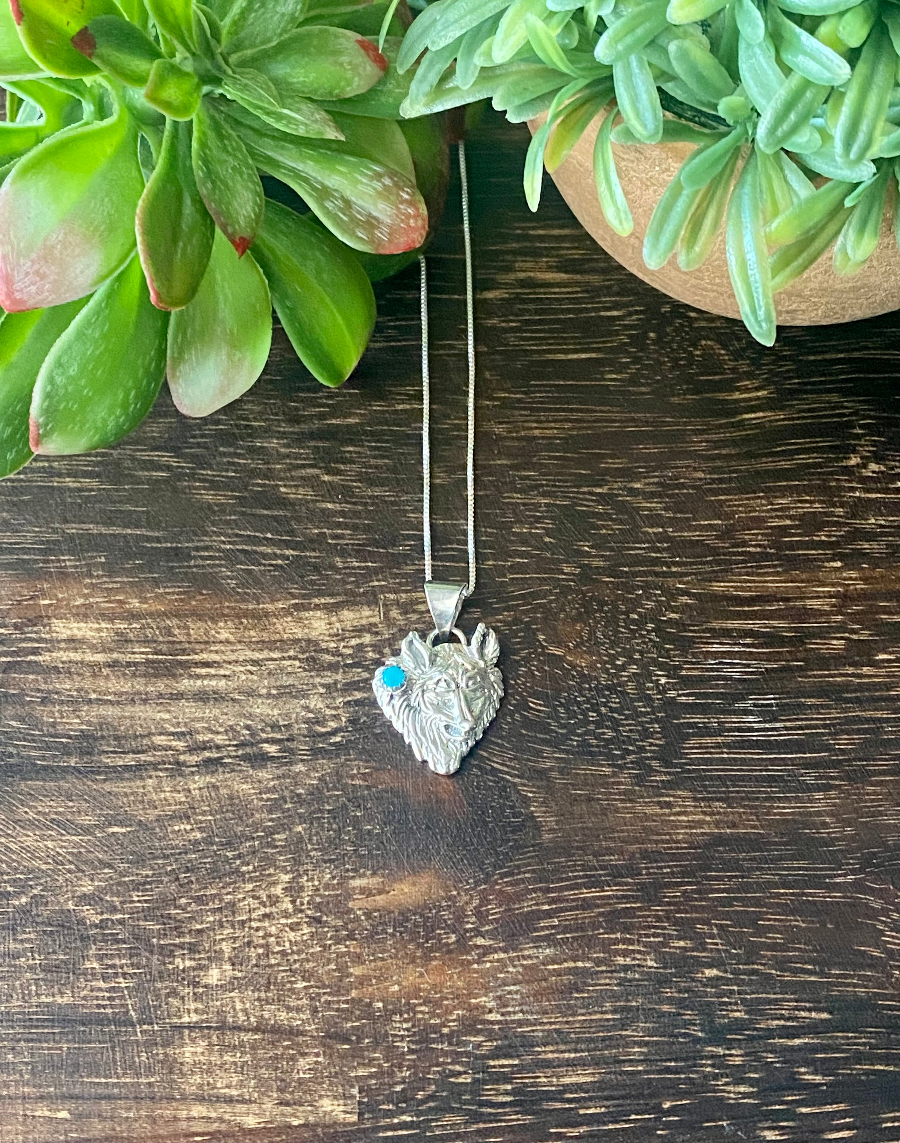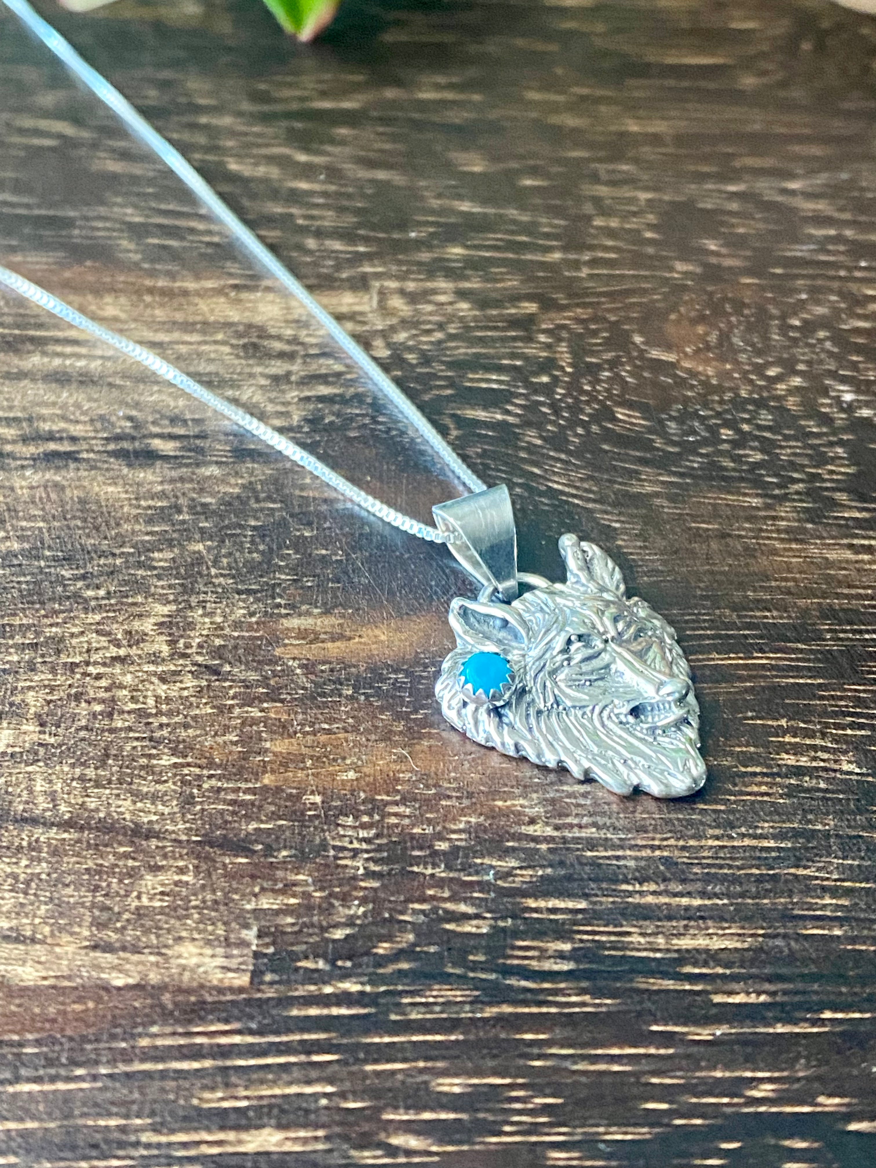 Navajo Made Turquoise & Sterling Silver Wolf Necklace