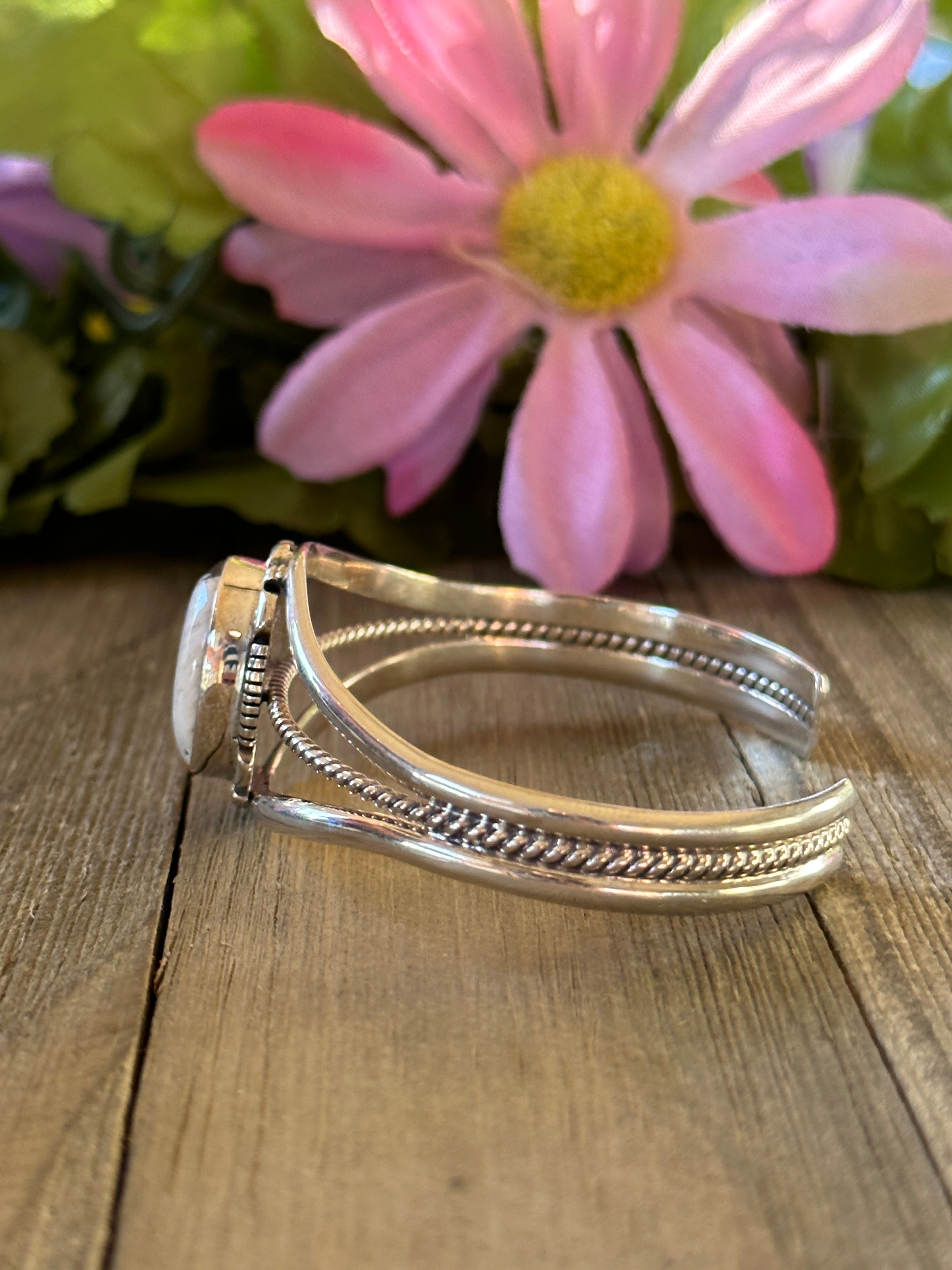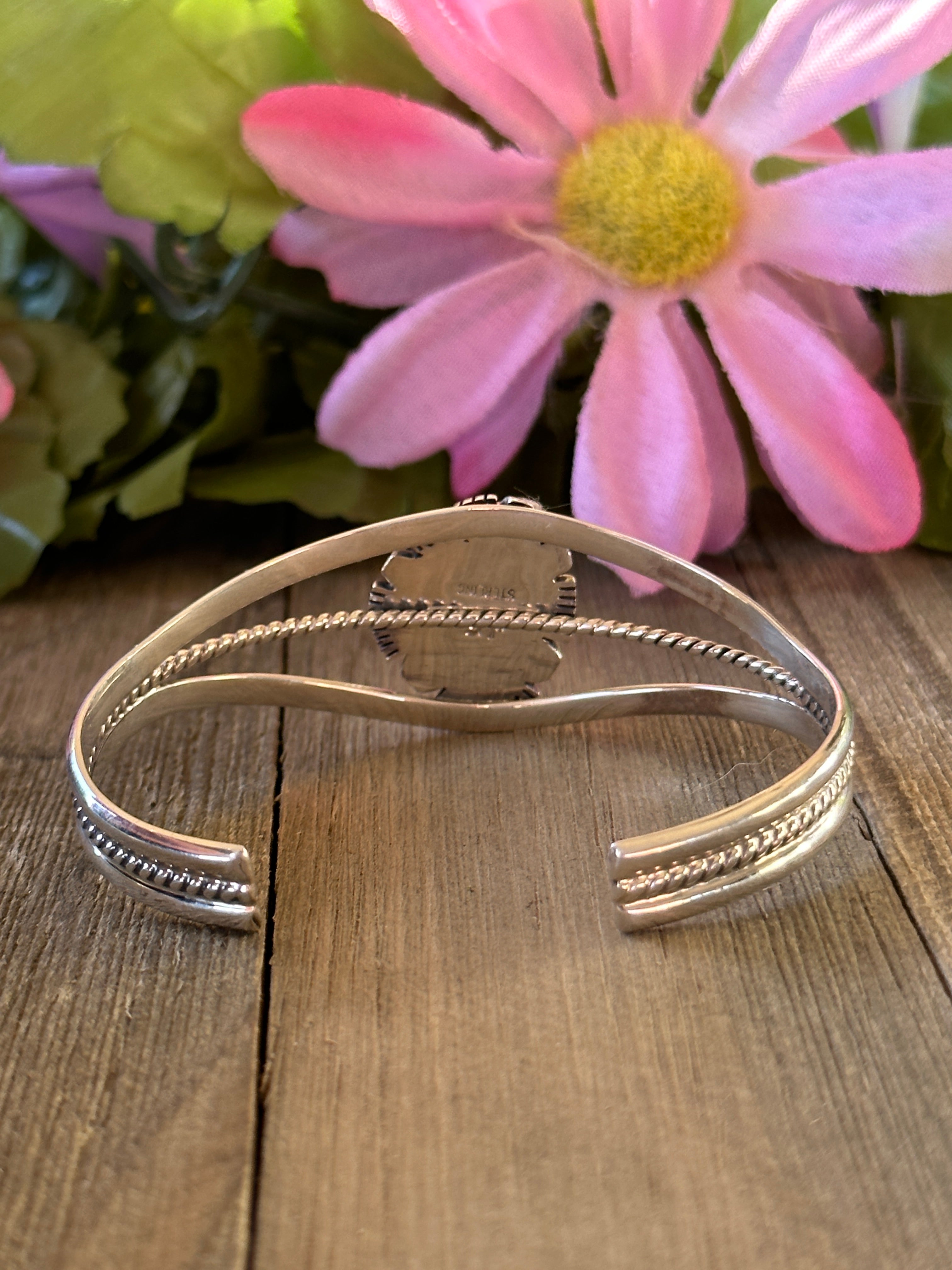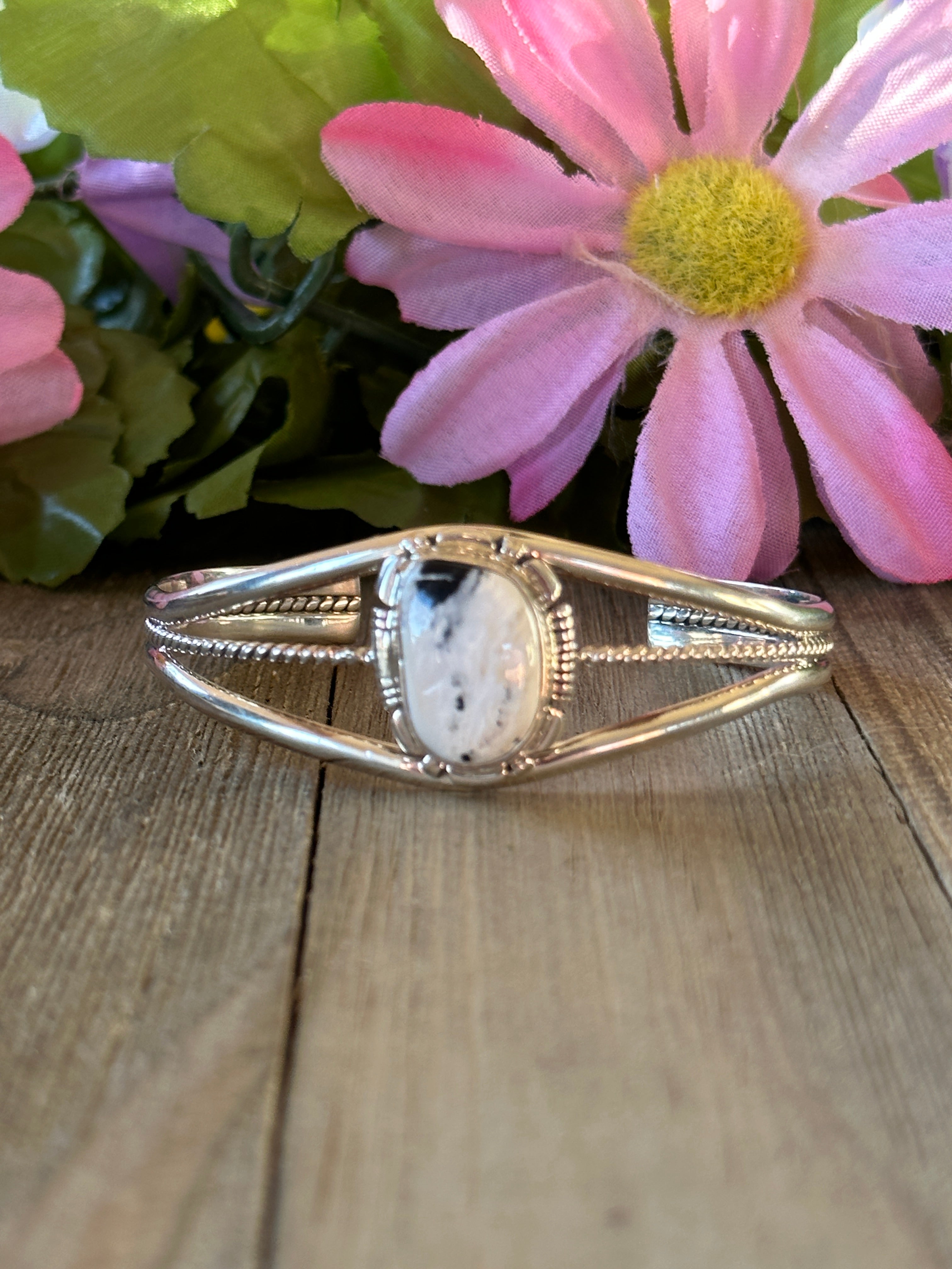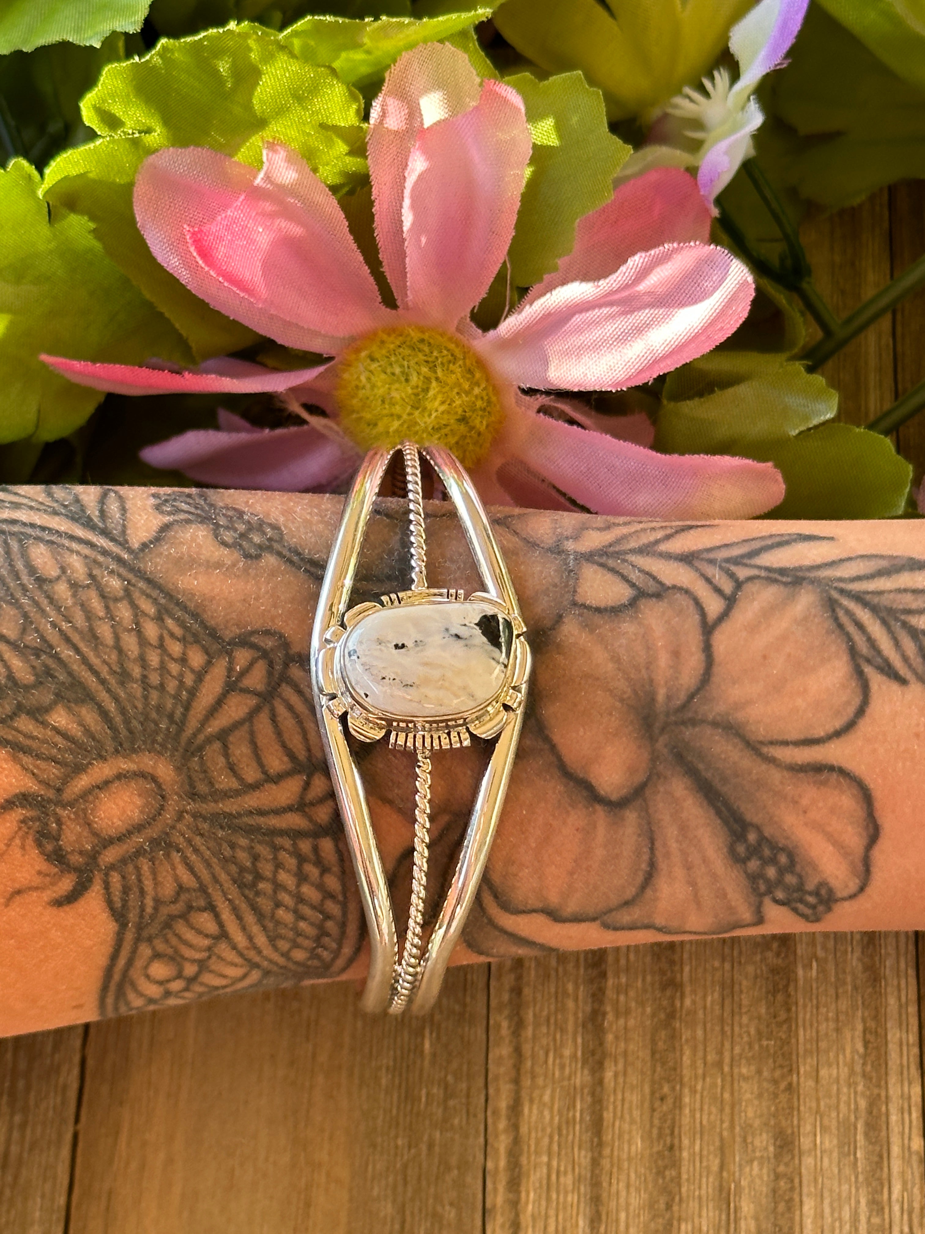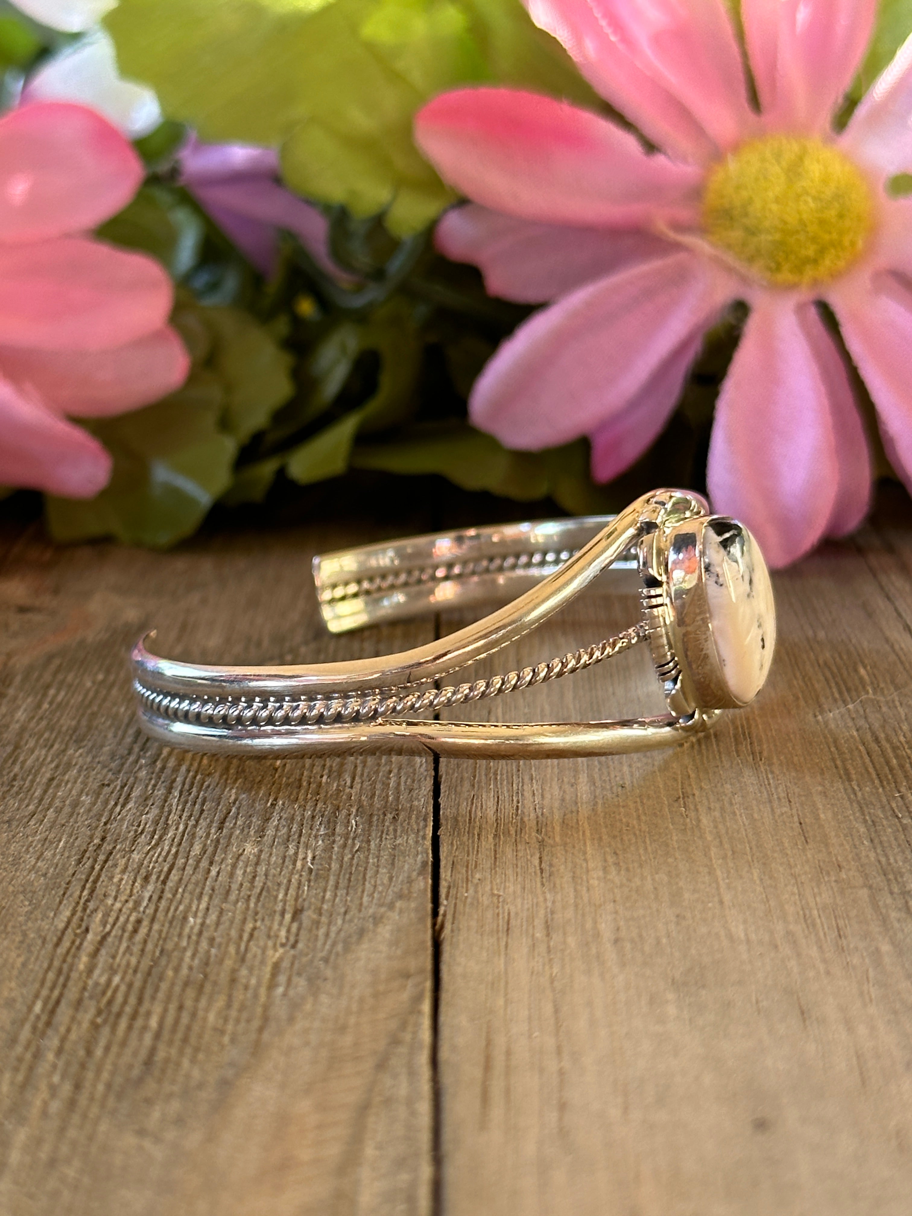 Navajo Made White Buffalo & Sterling Silver Cuff Bracelet