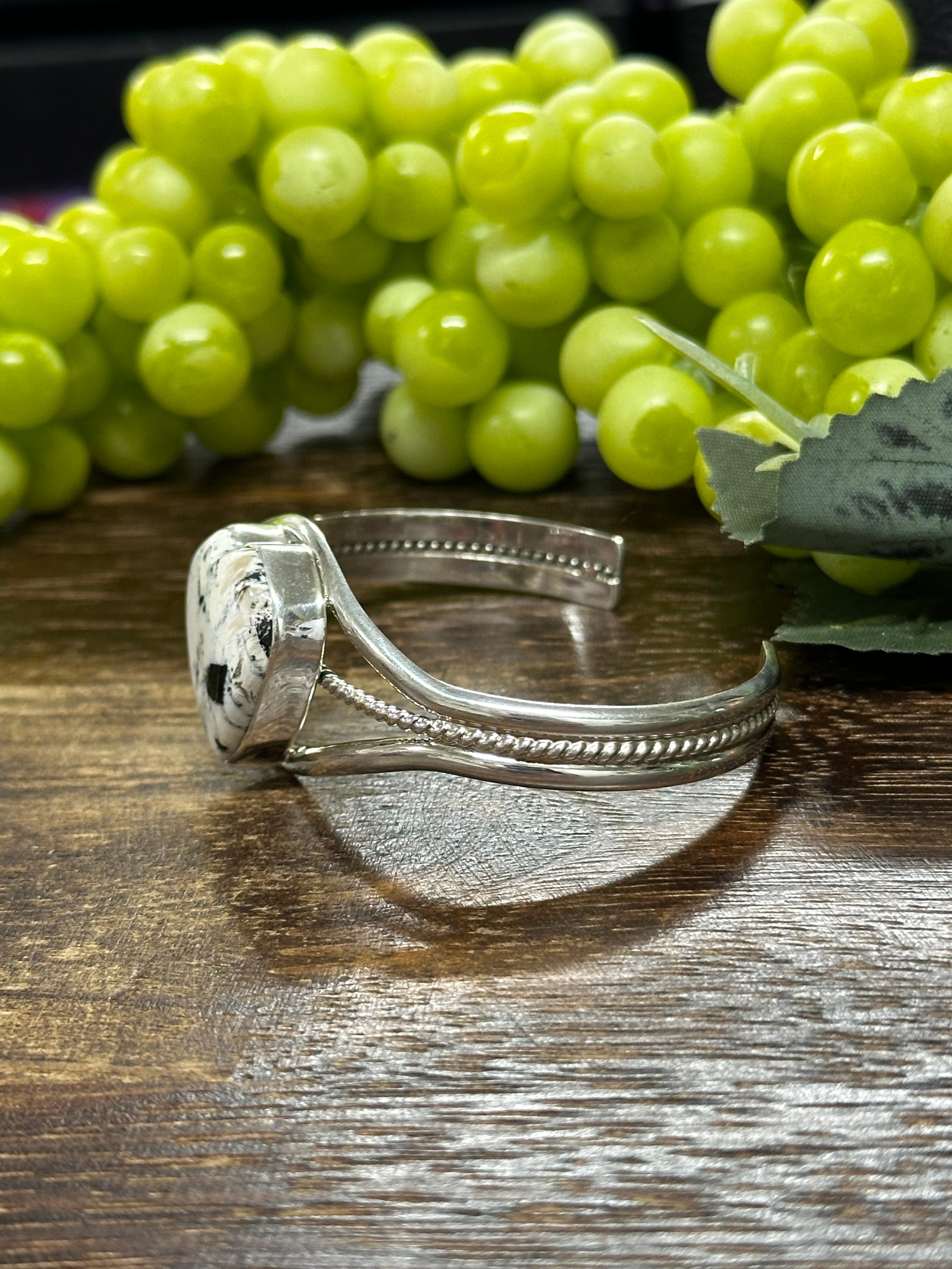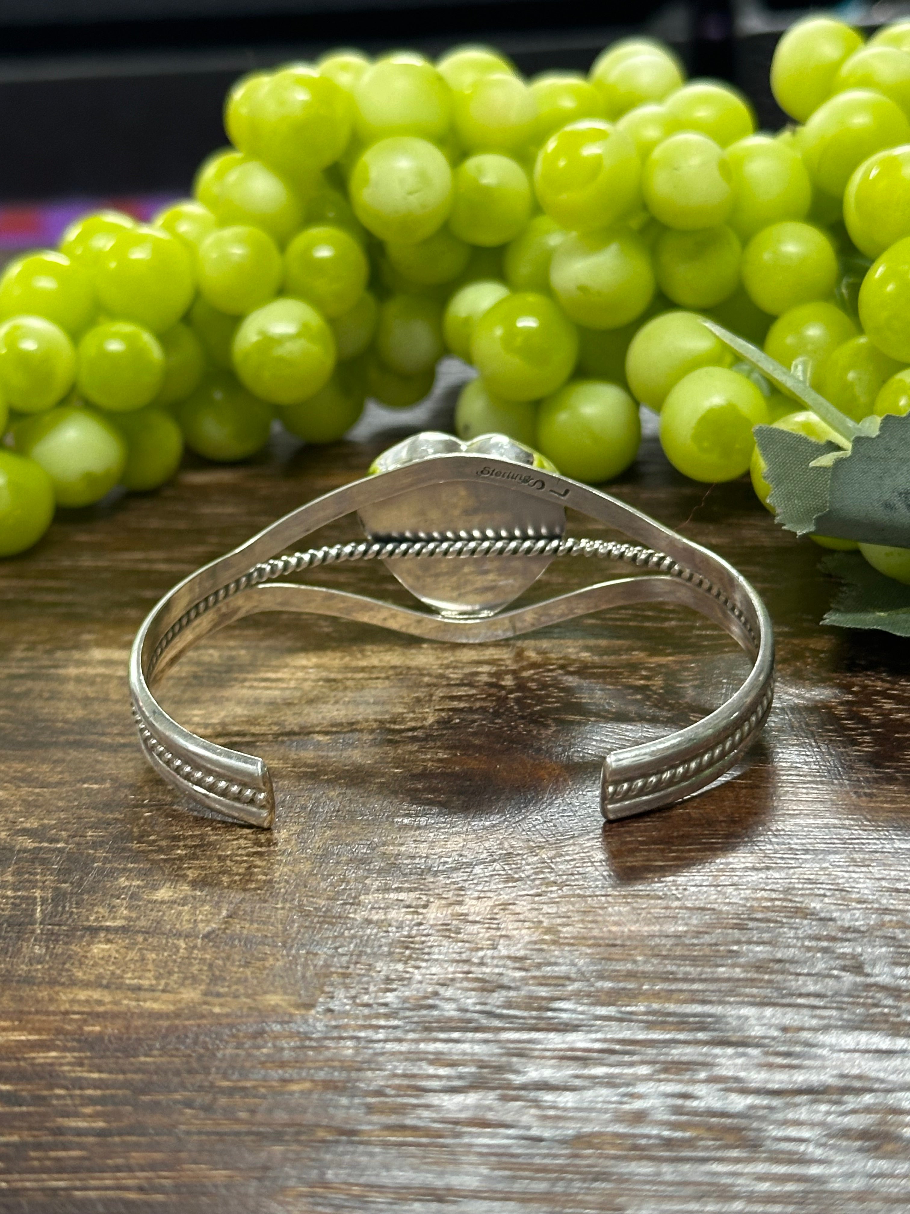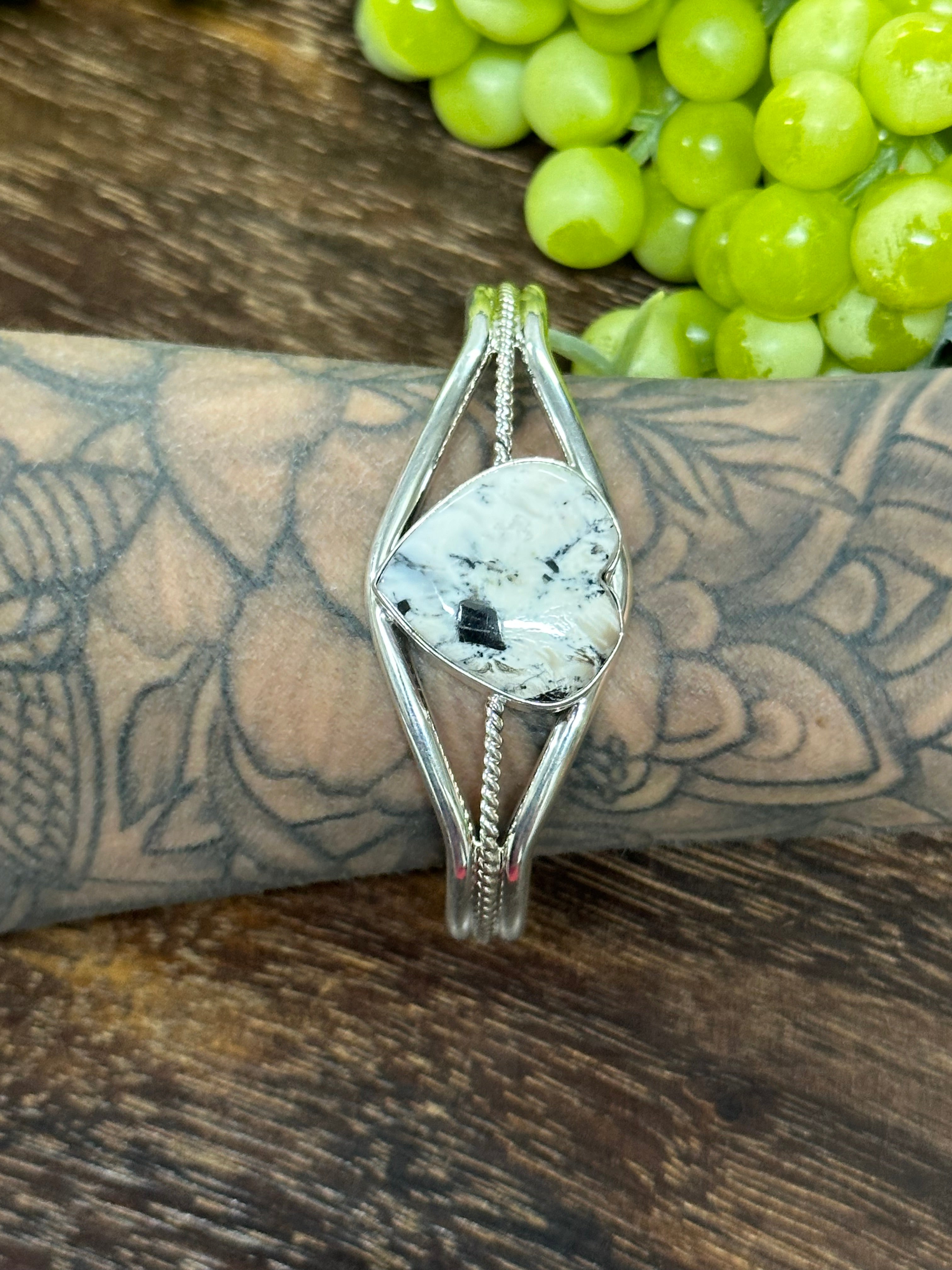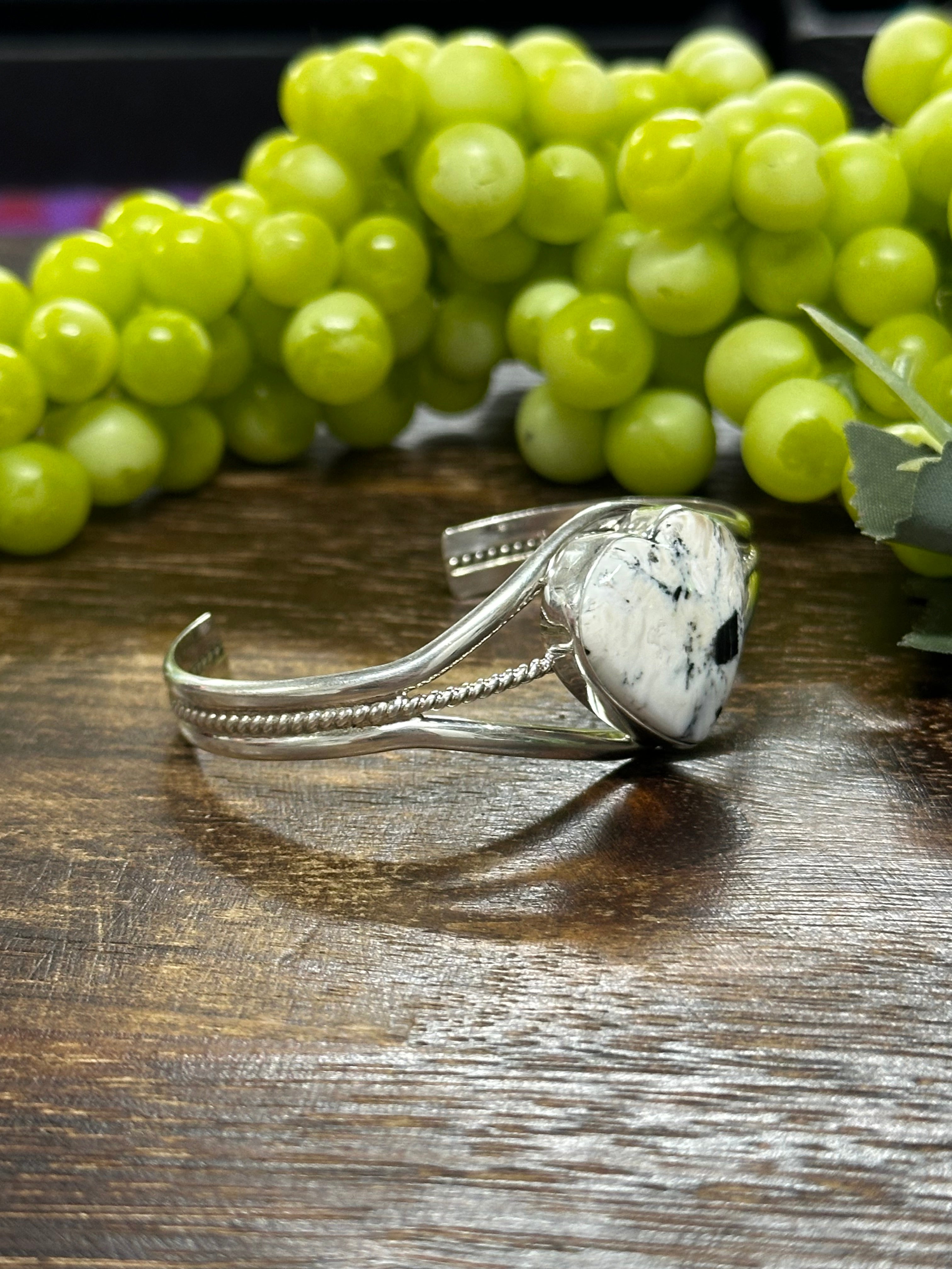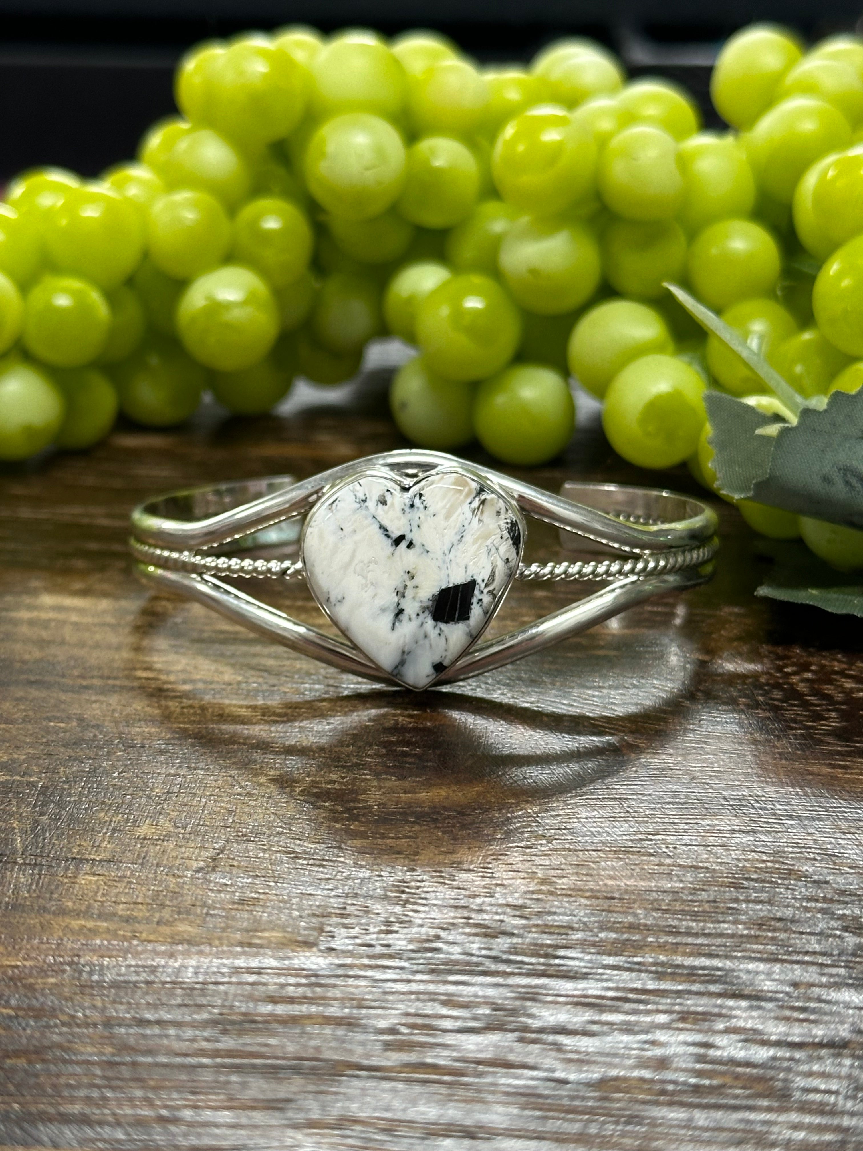 Navajo Made White Buffalo & Sterling Silver Heart Cuff Bracelet