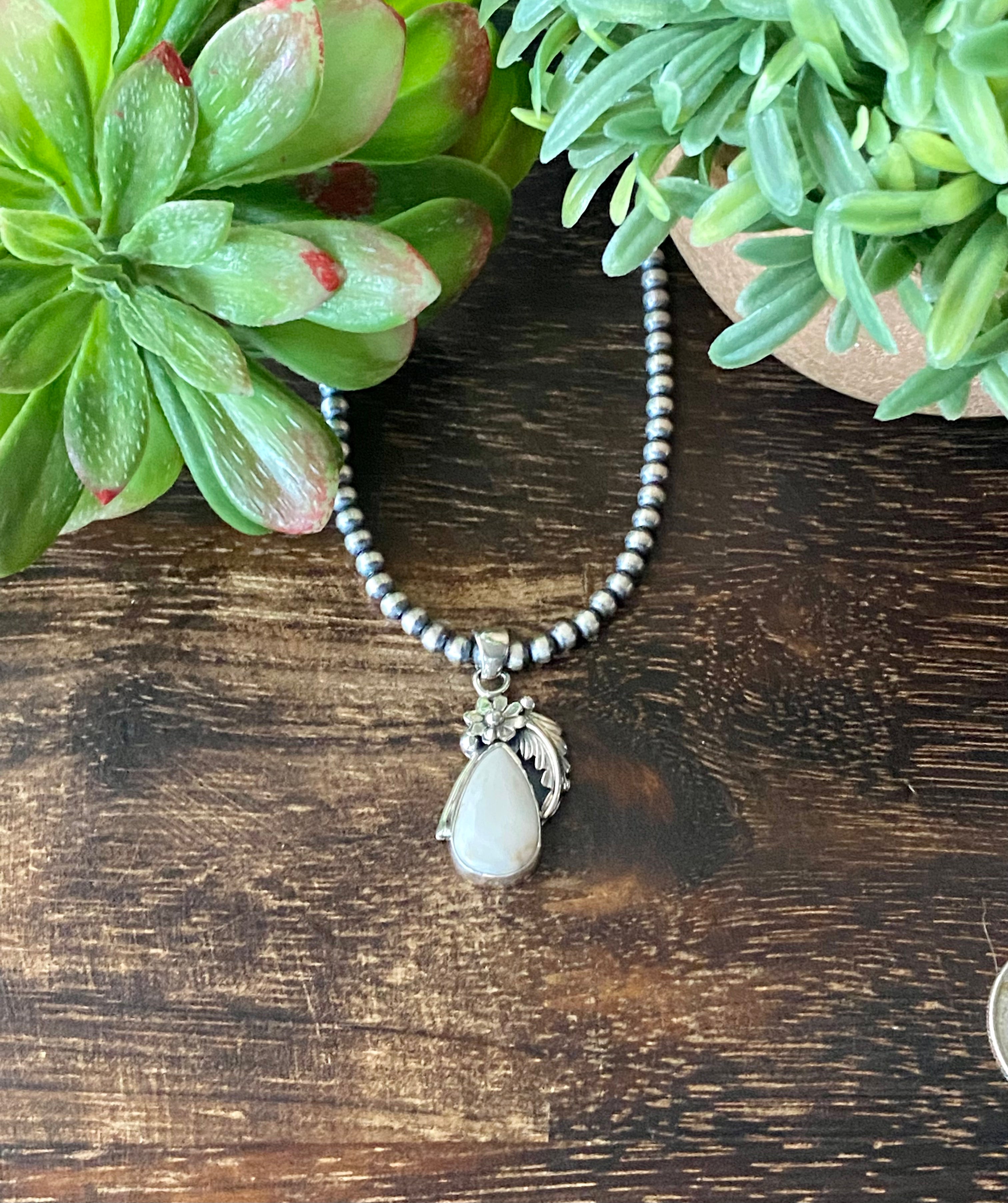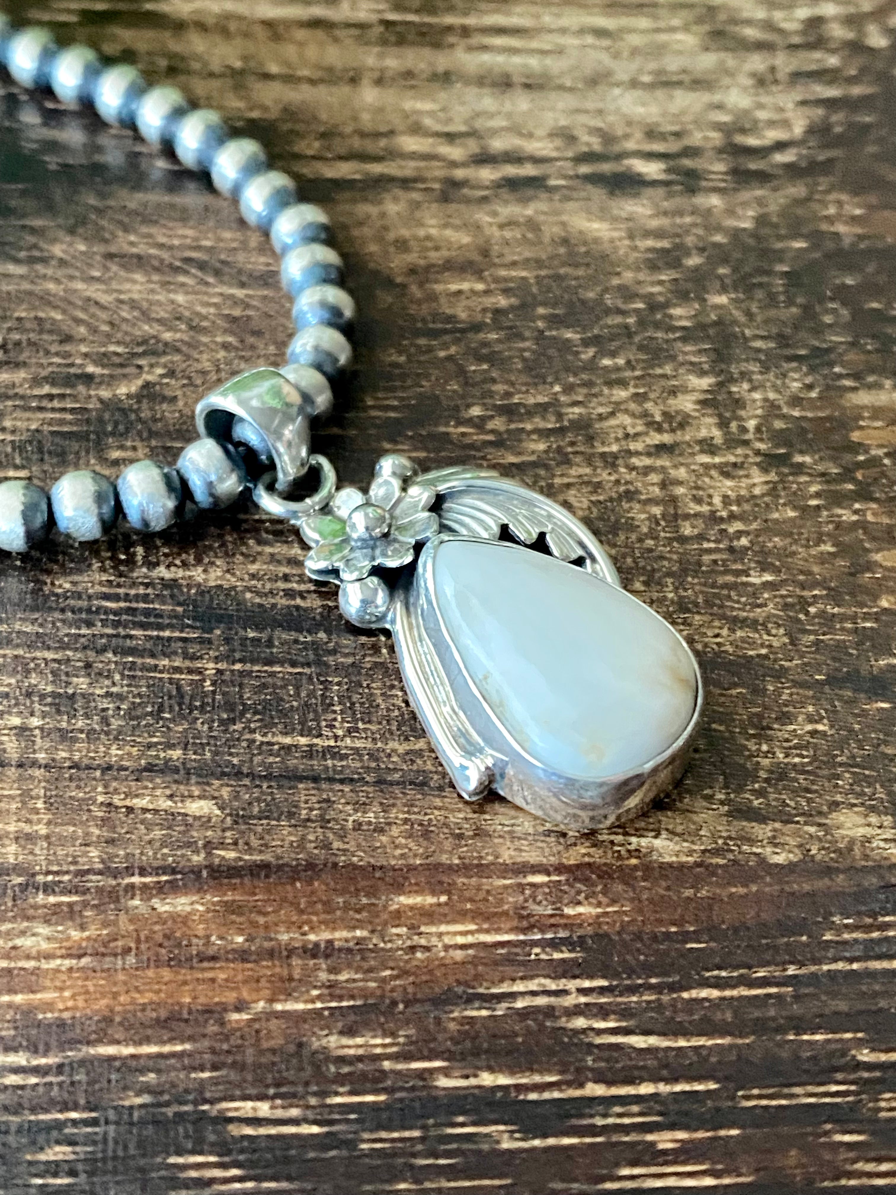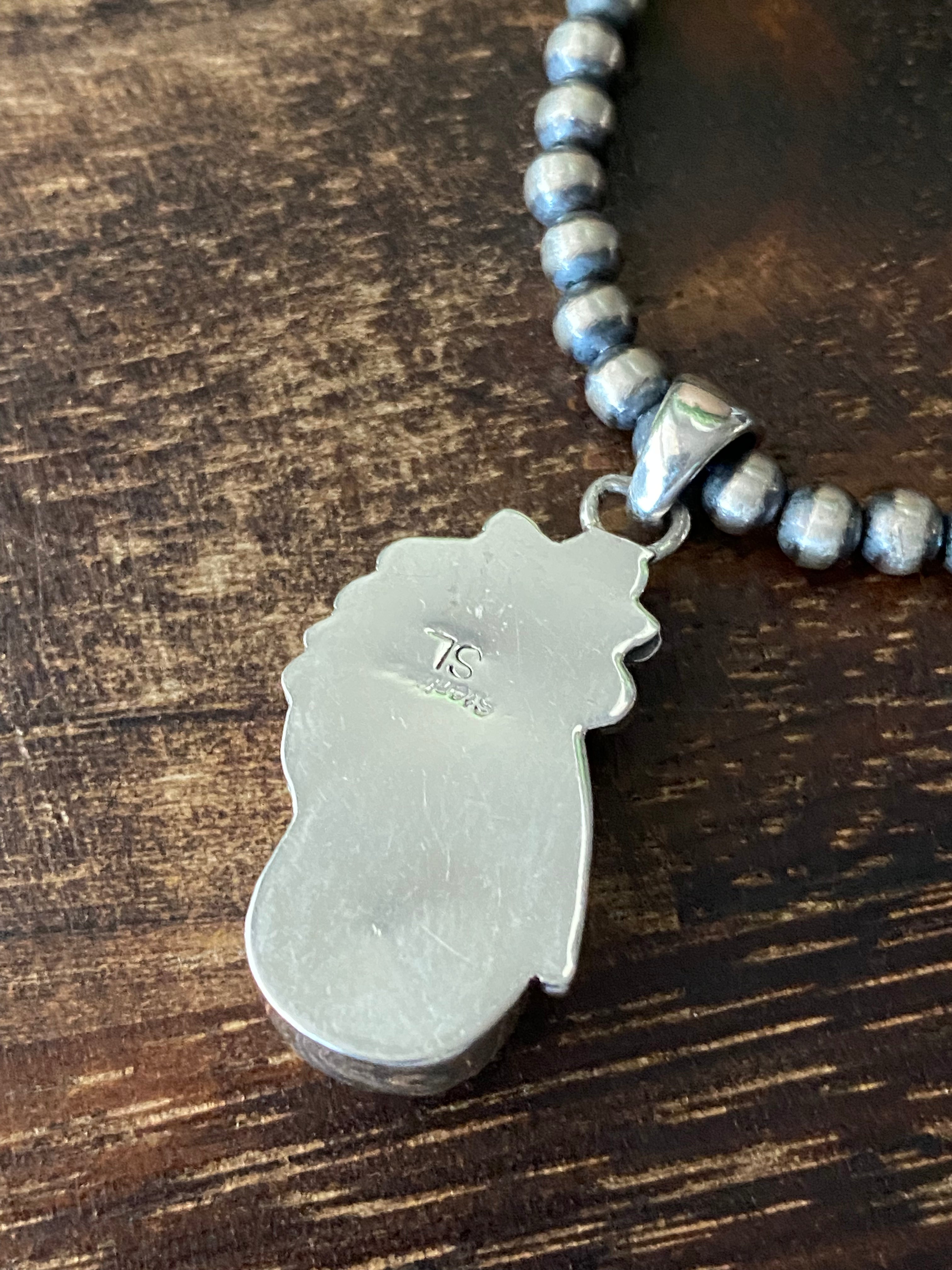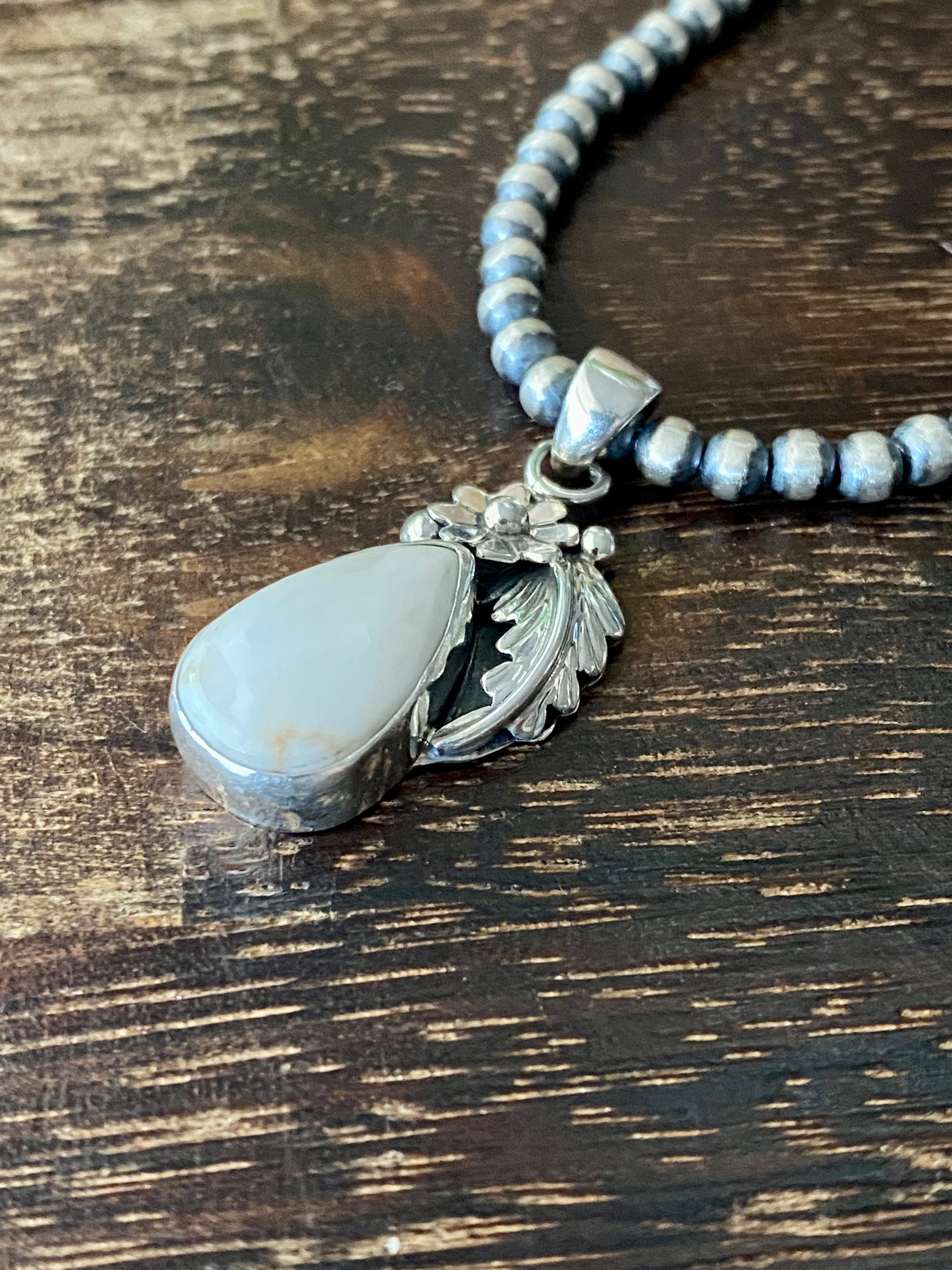 Navajo Made White Buffalo & Sterling Silver Pendant