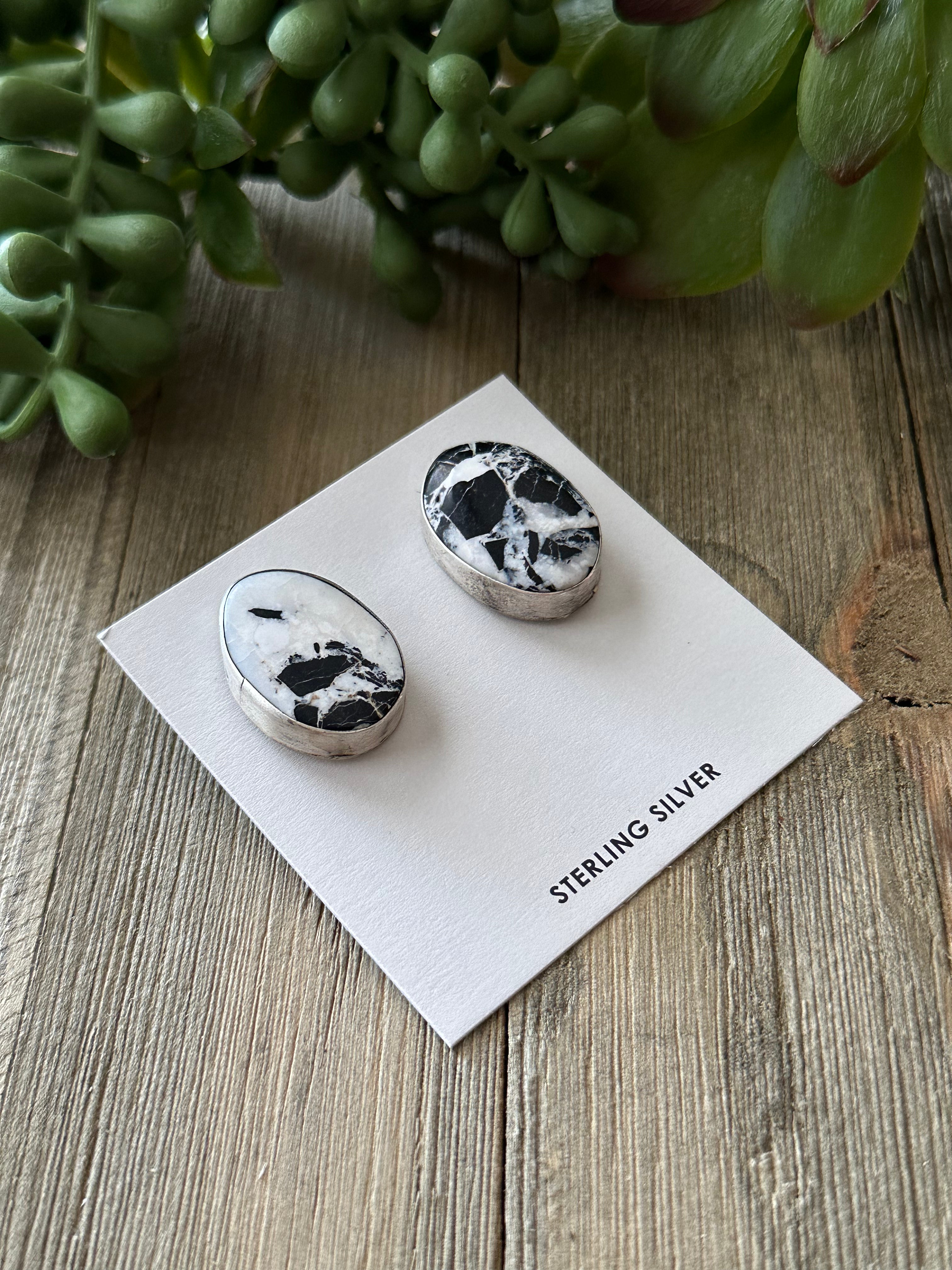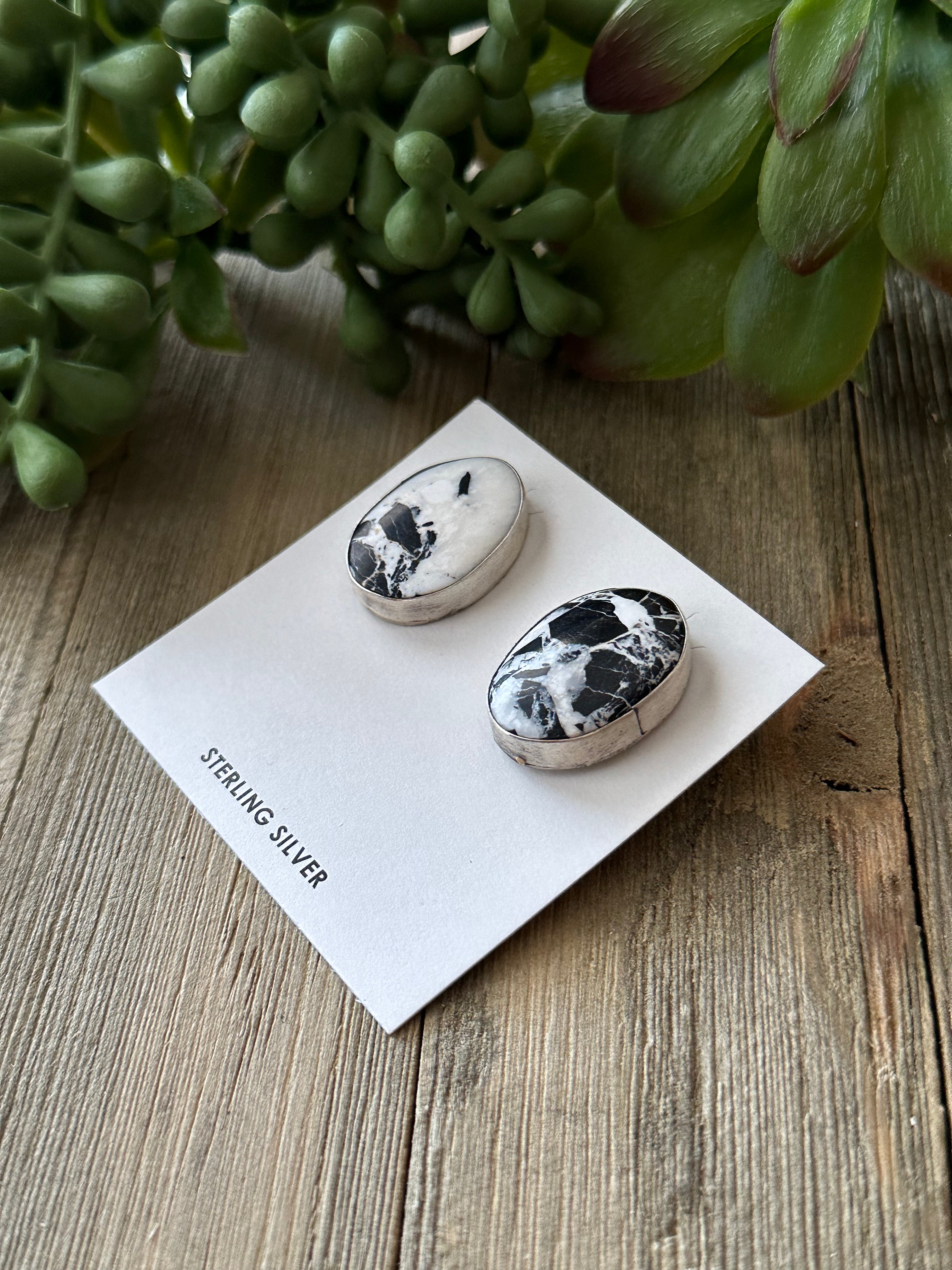 Navajo Made White Buffalo & Sterling Silver Post Earrings