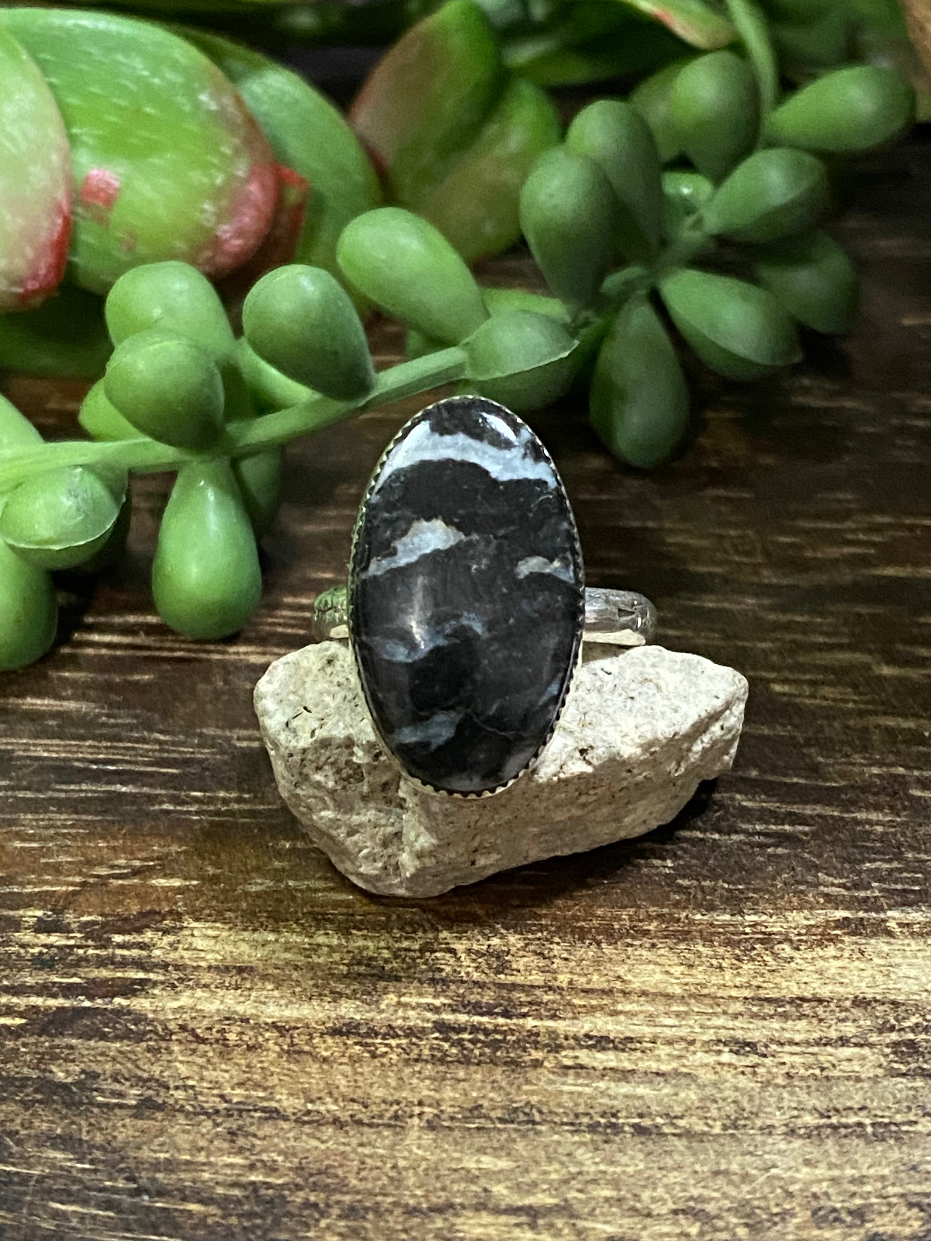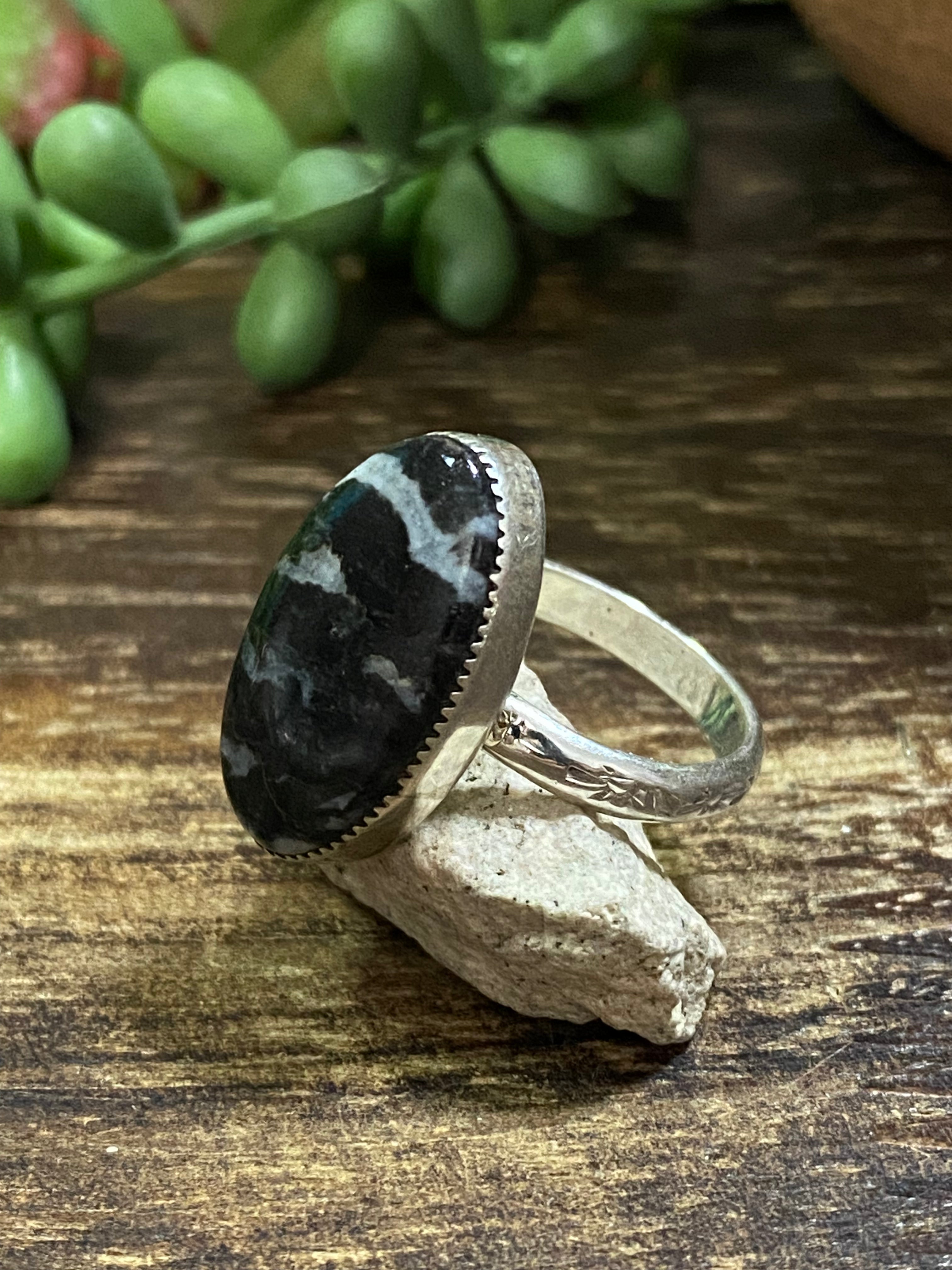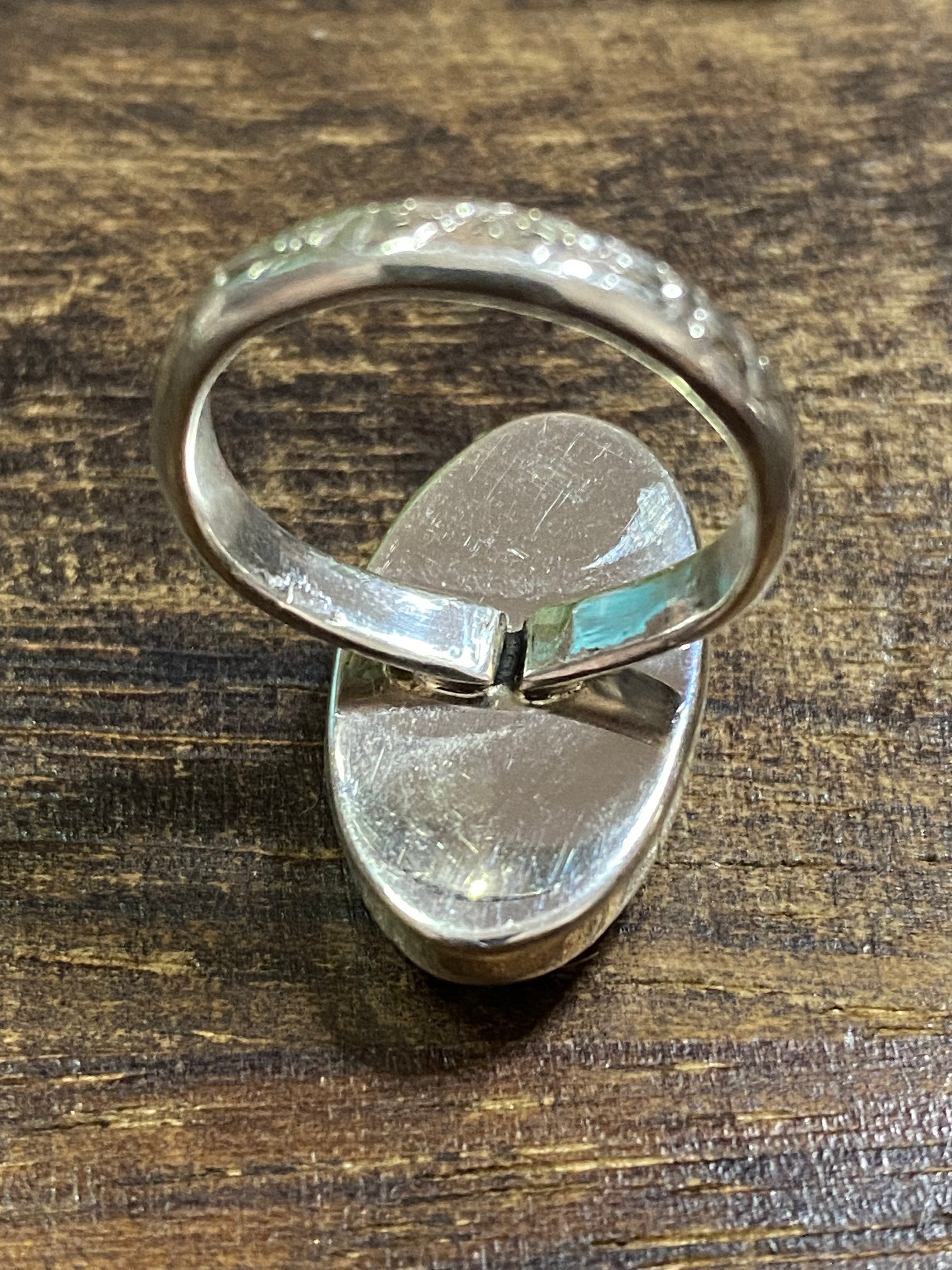 Navajo Made White Buffalo & Sterling Silver Ring Size 6.25