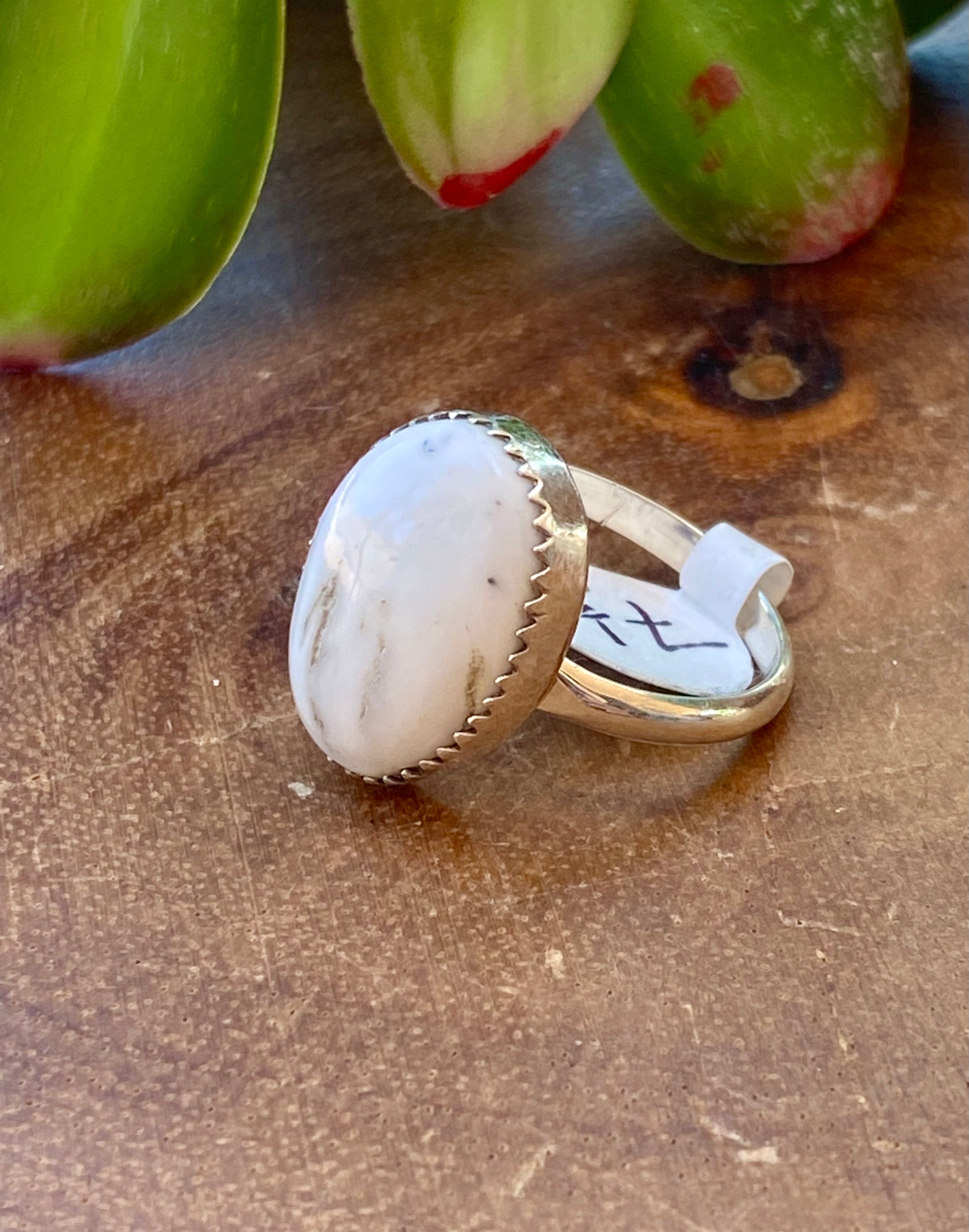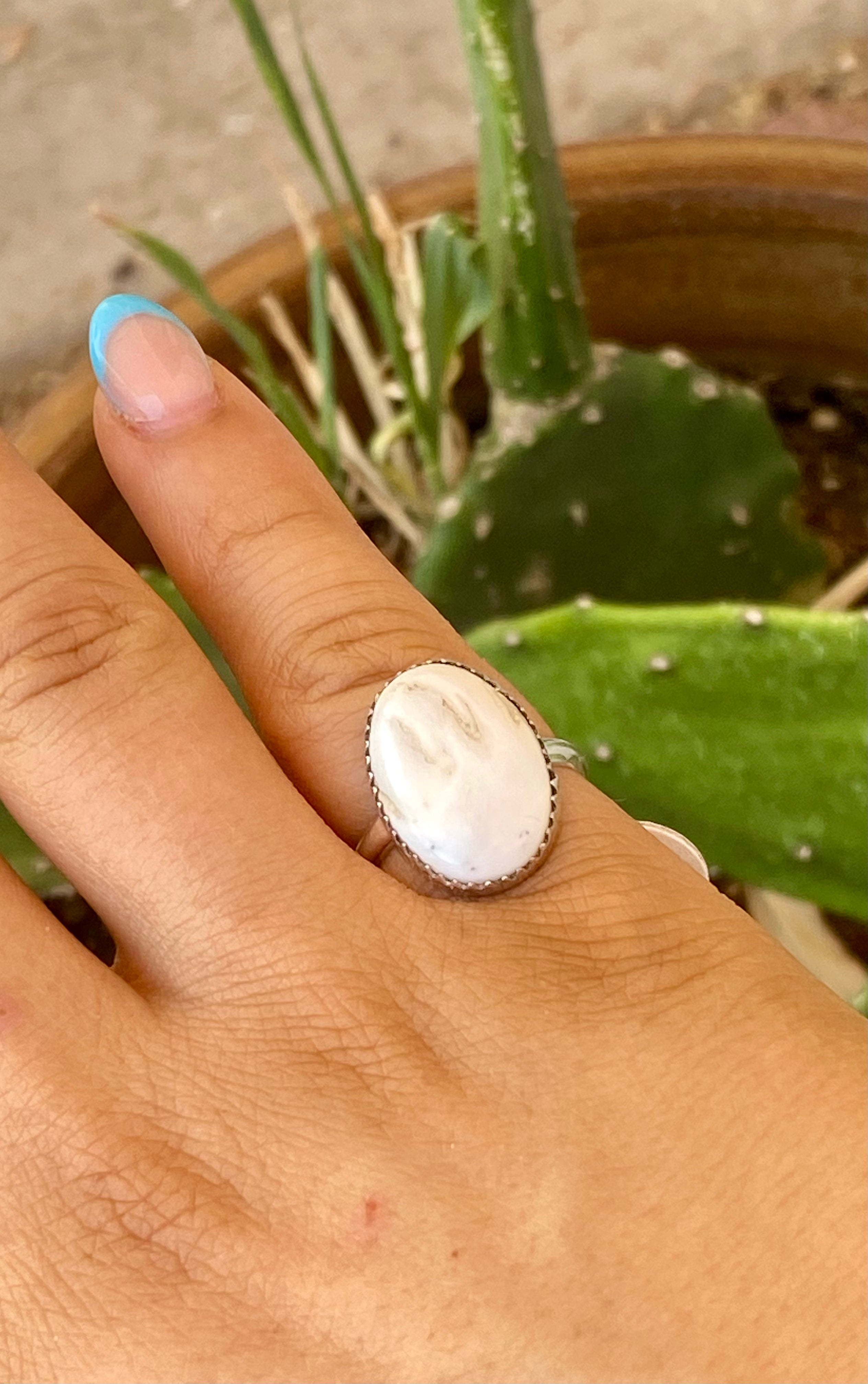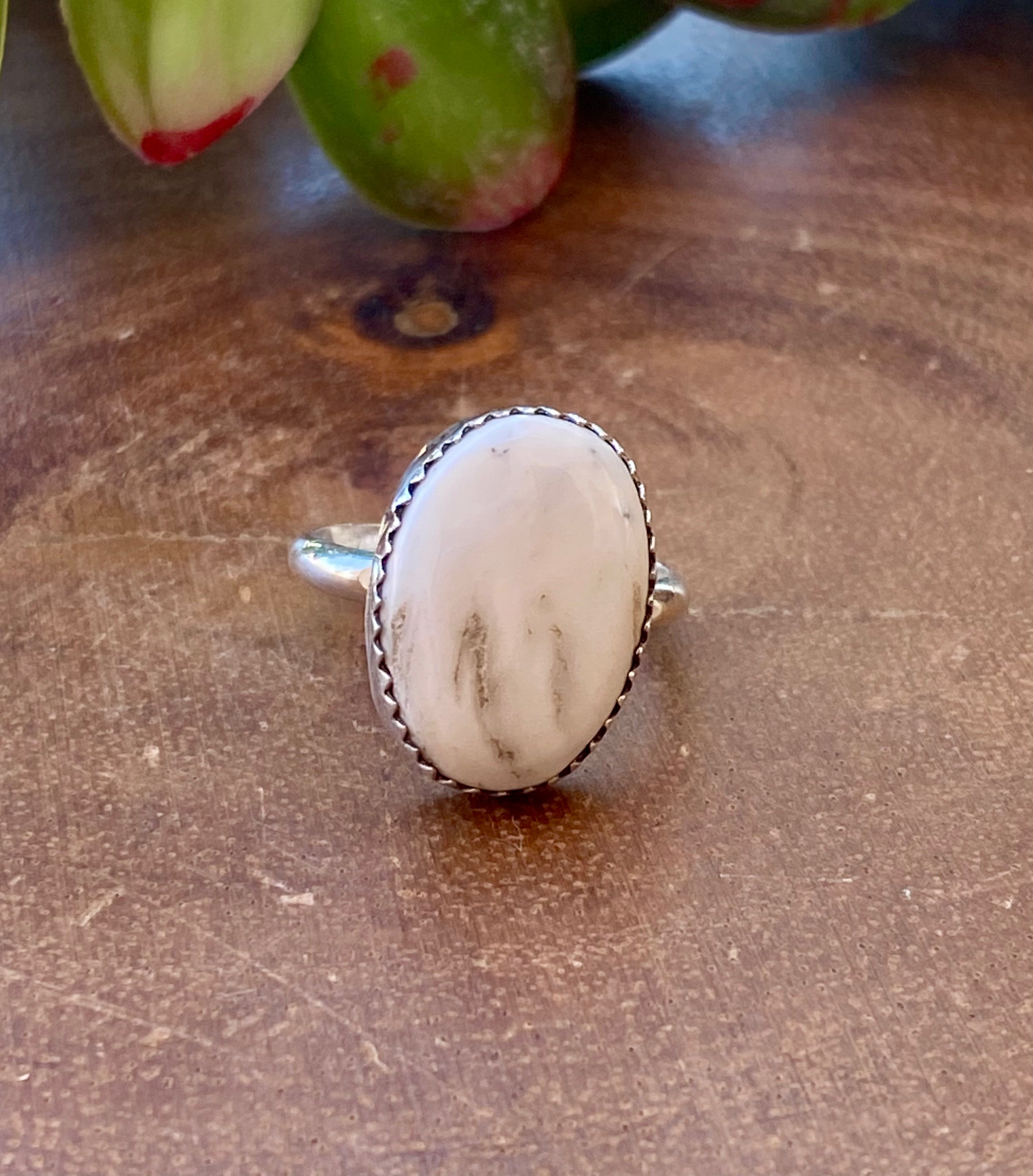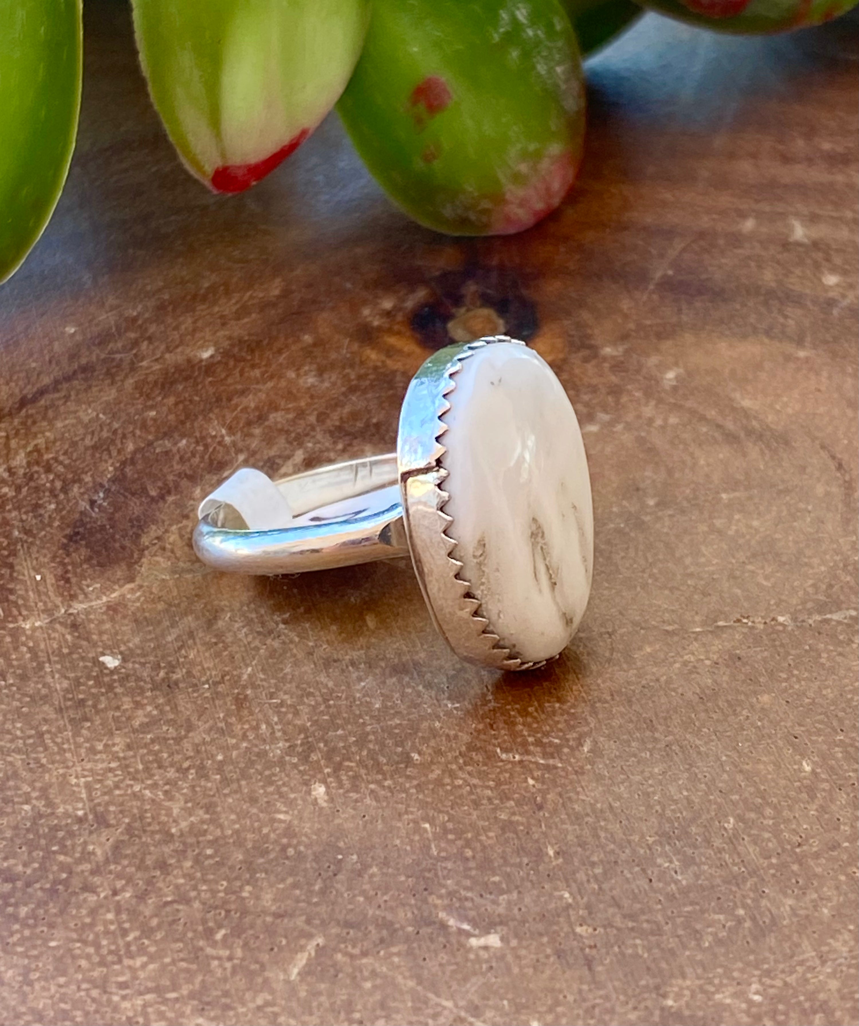 Navajo Made White Buffalo & Sterling Silver Ring Size 7.5