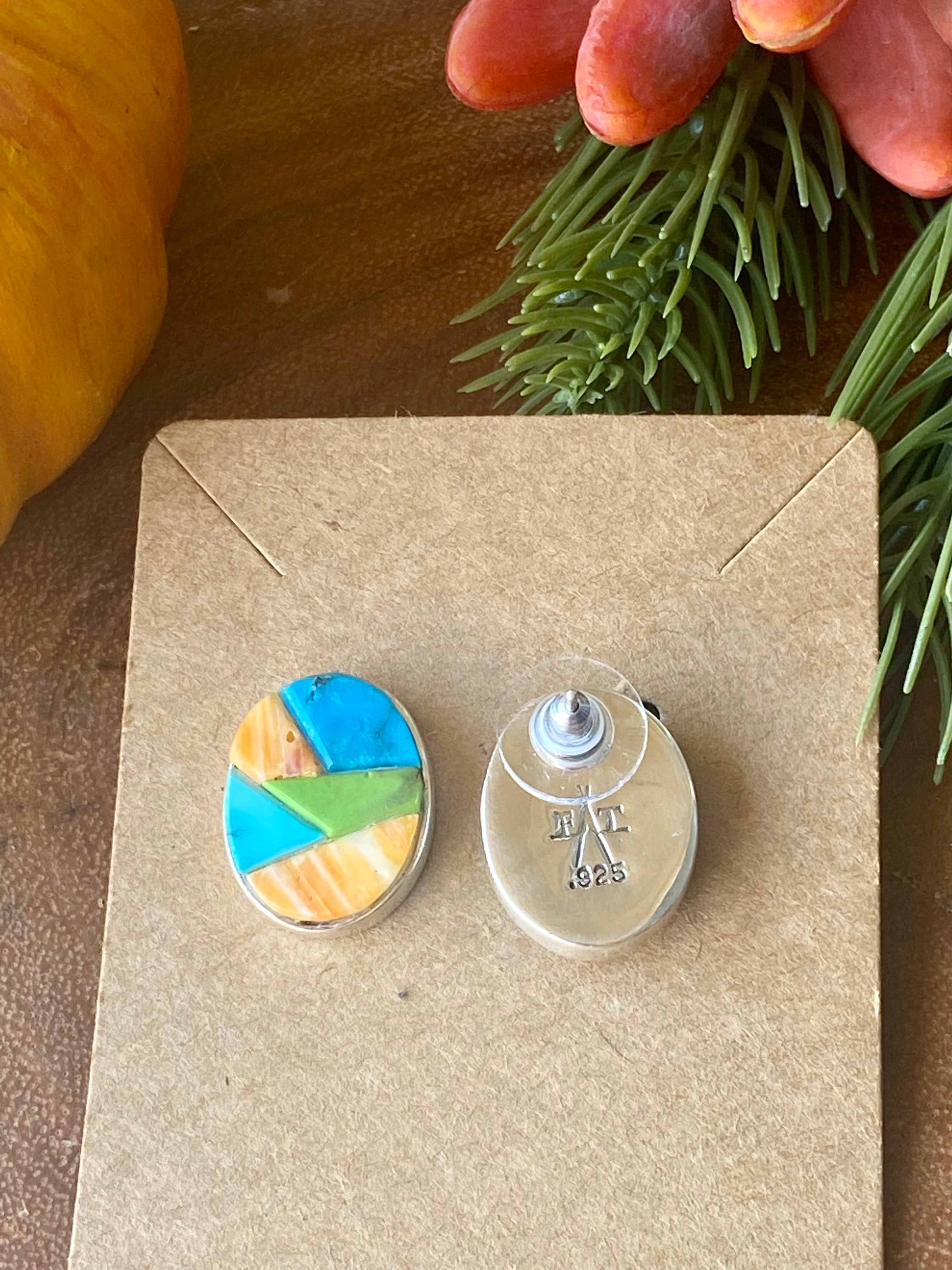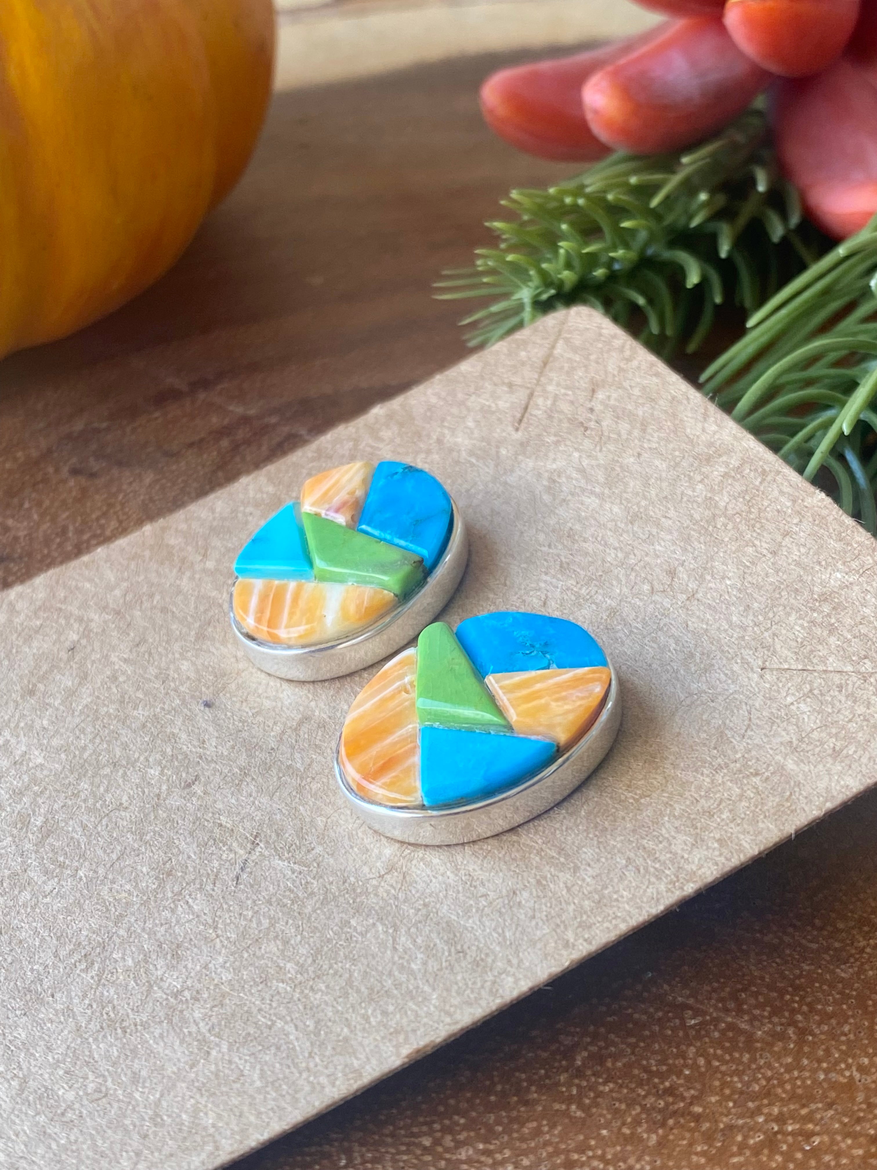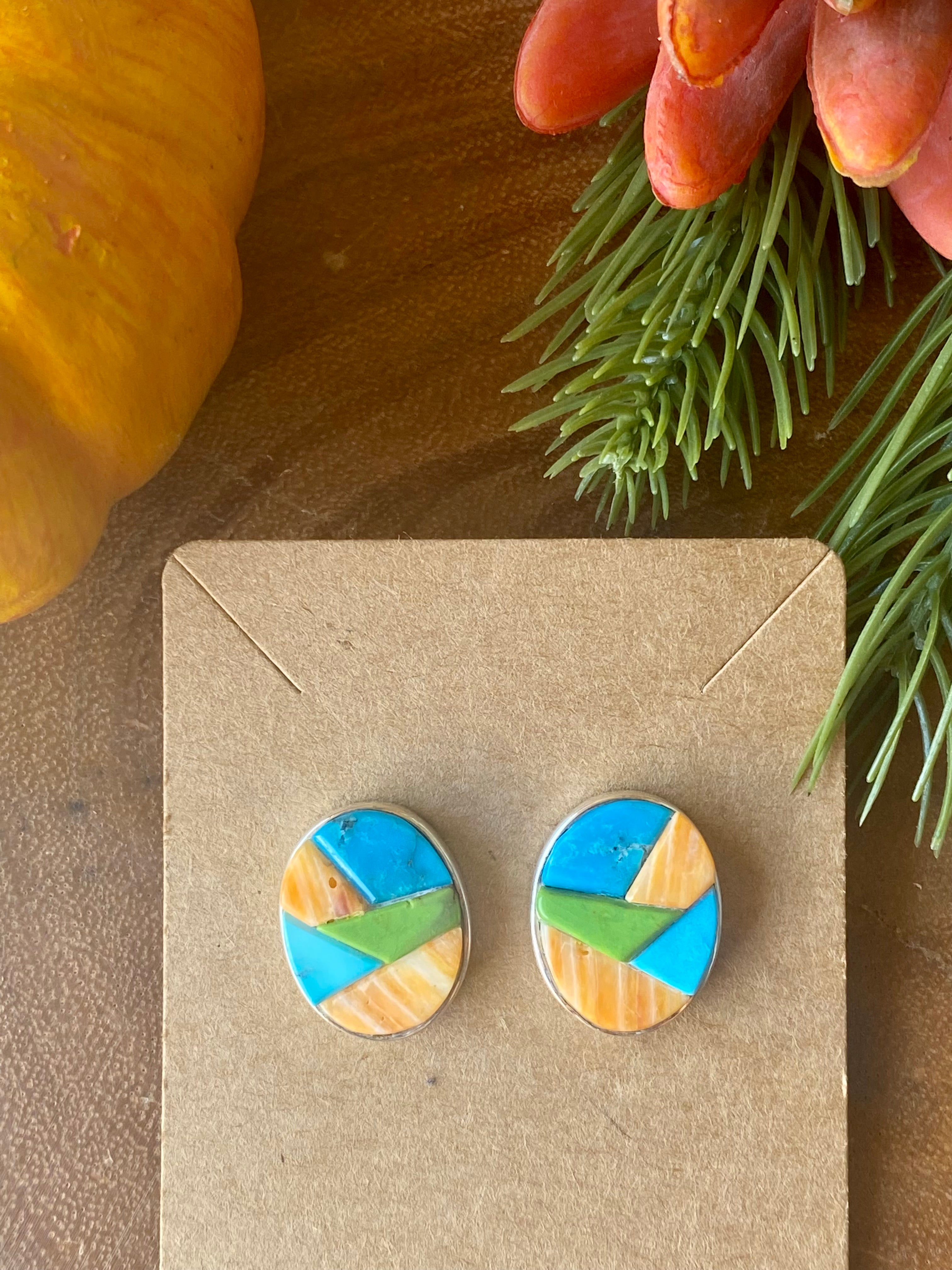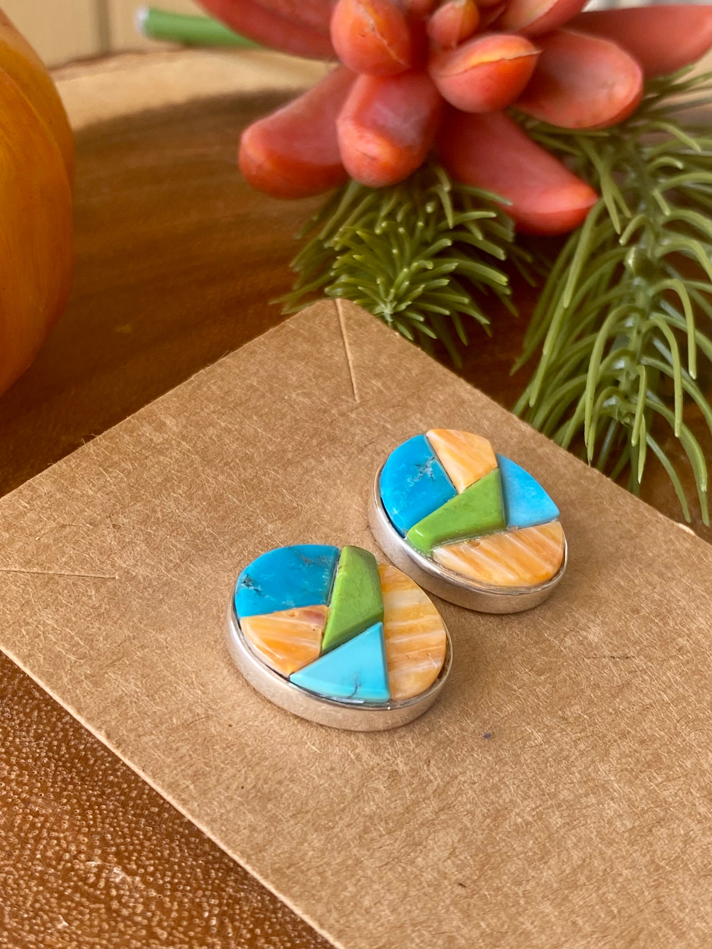 Navajo Multi Stone & Sterling Silver Inlay Post Earrings