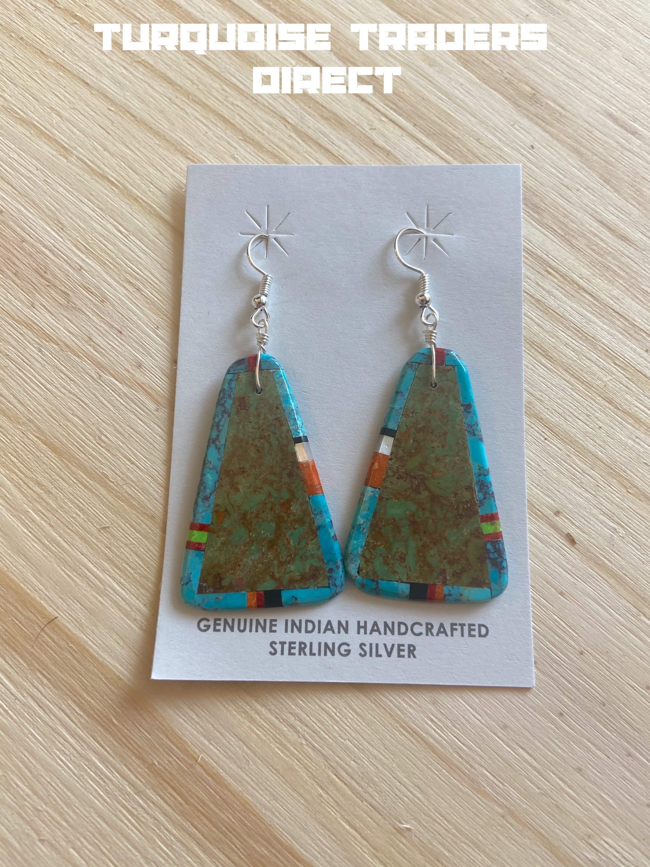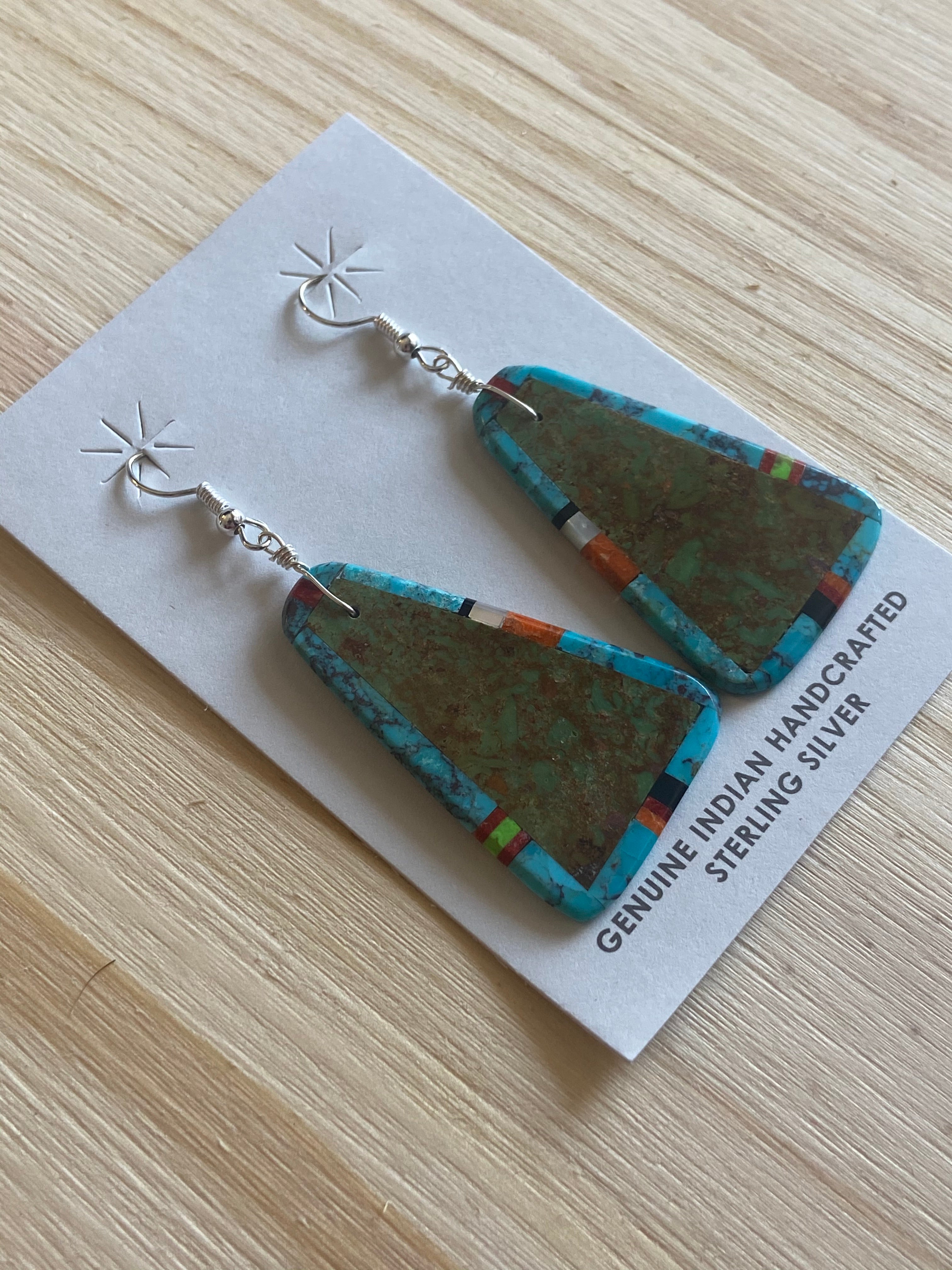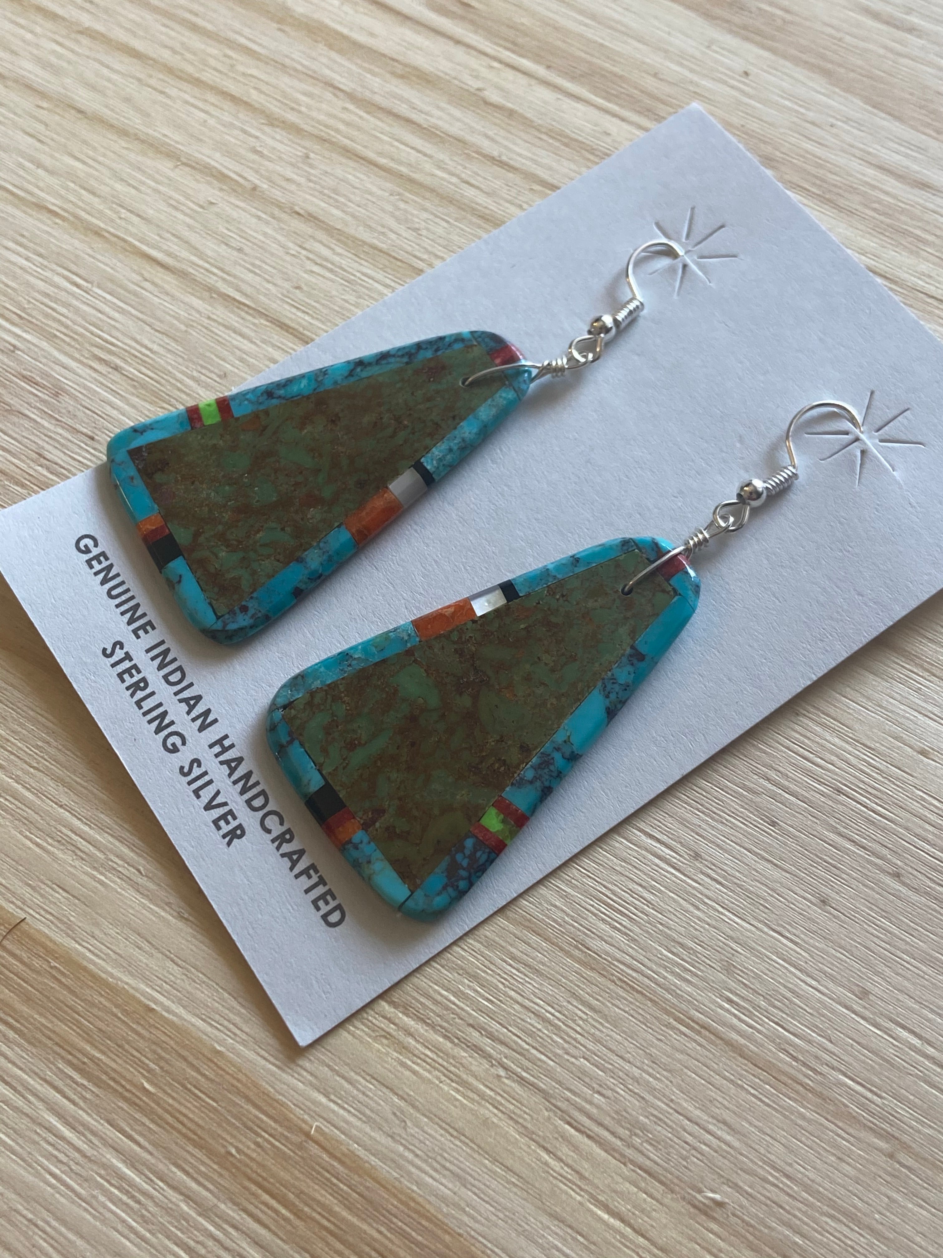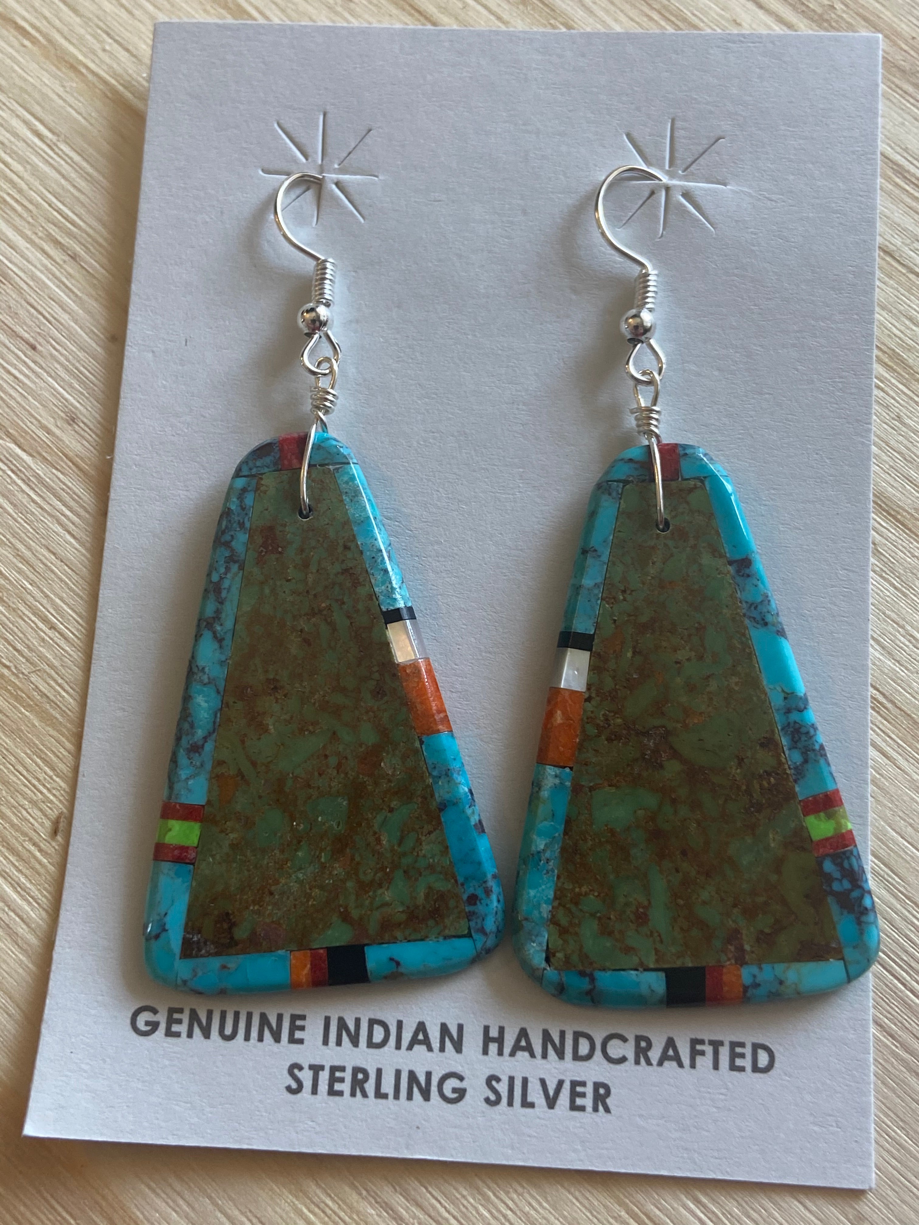 Navajo Multi Stone & Sterling Silver Slab Dangles