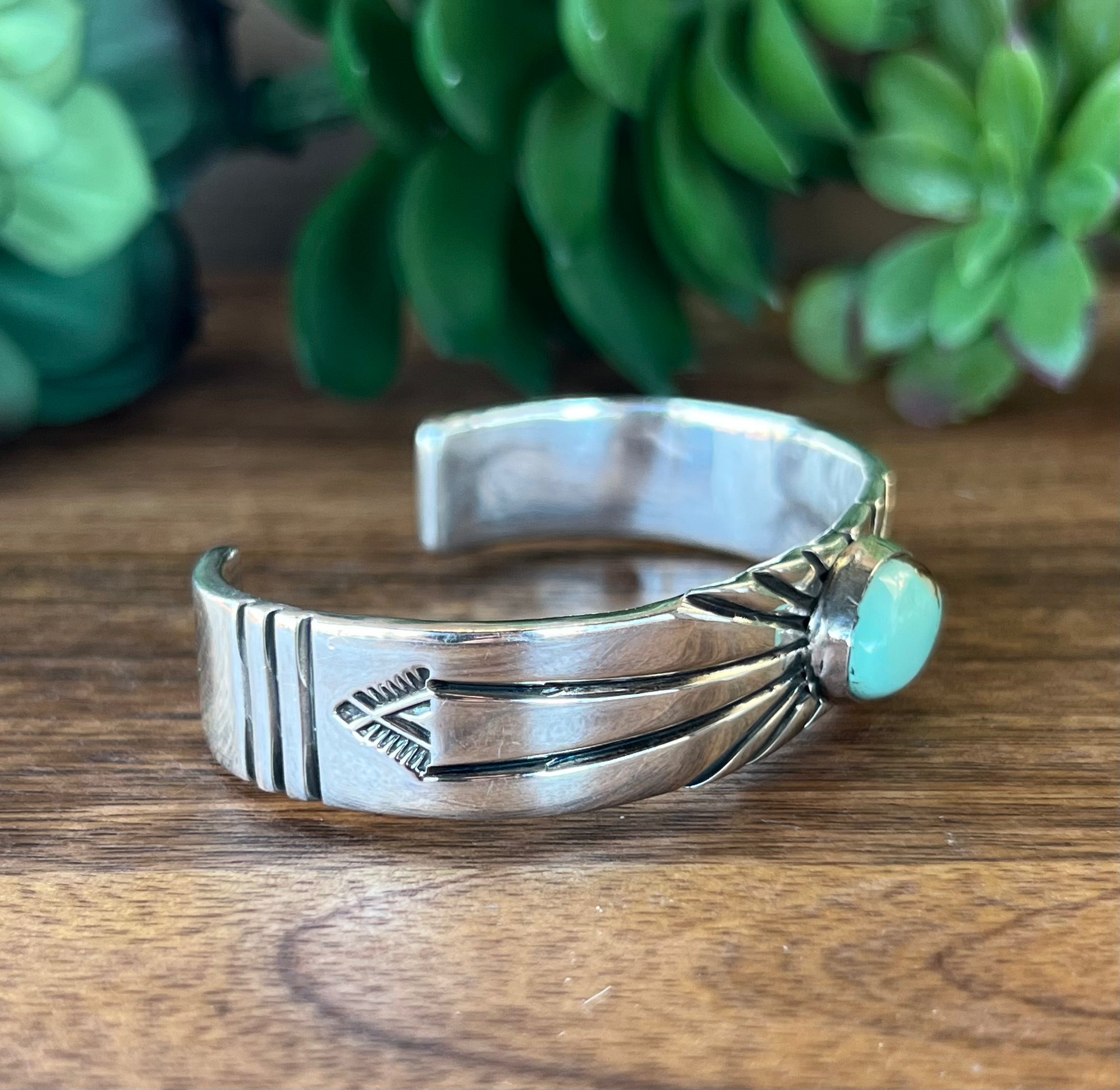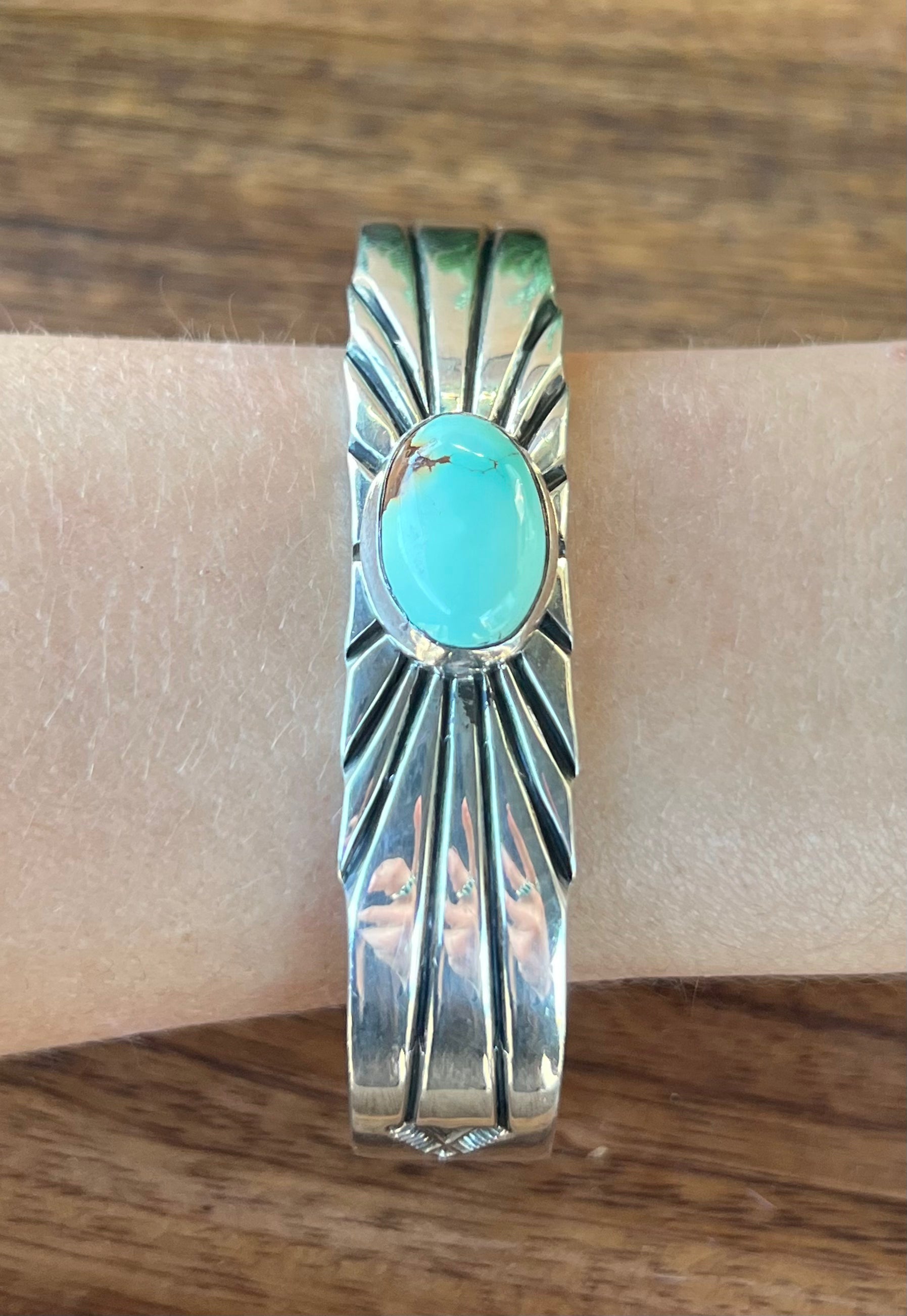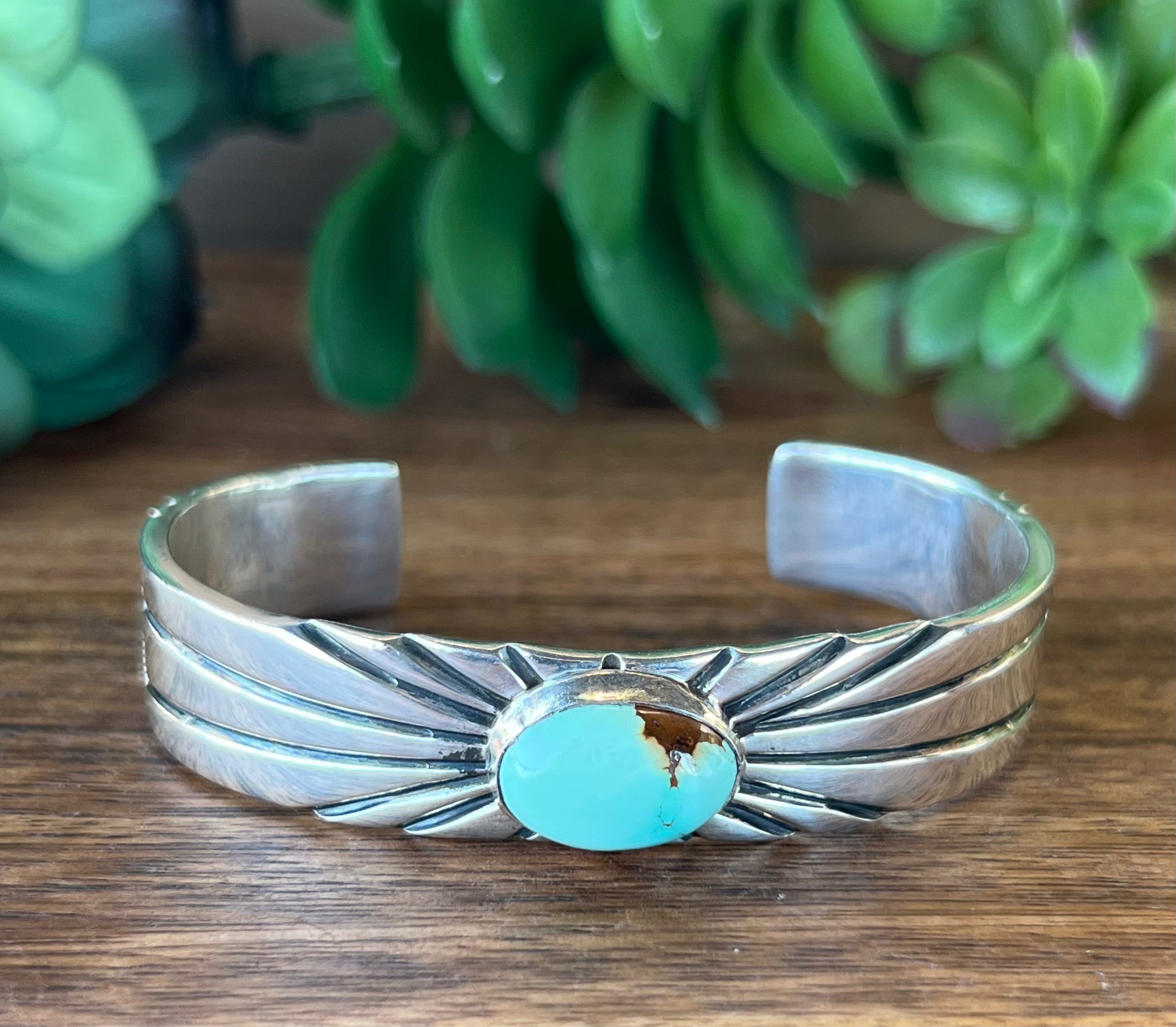 Navajo Natural Royston Turquoise & Sterling Silver Cuff Bracelet