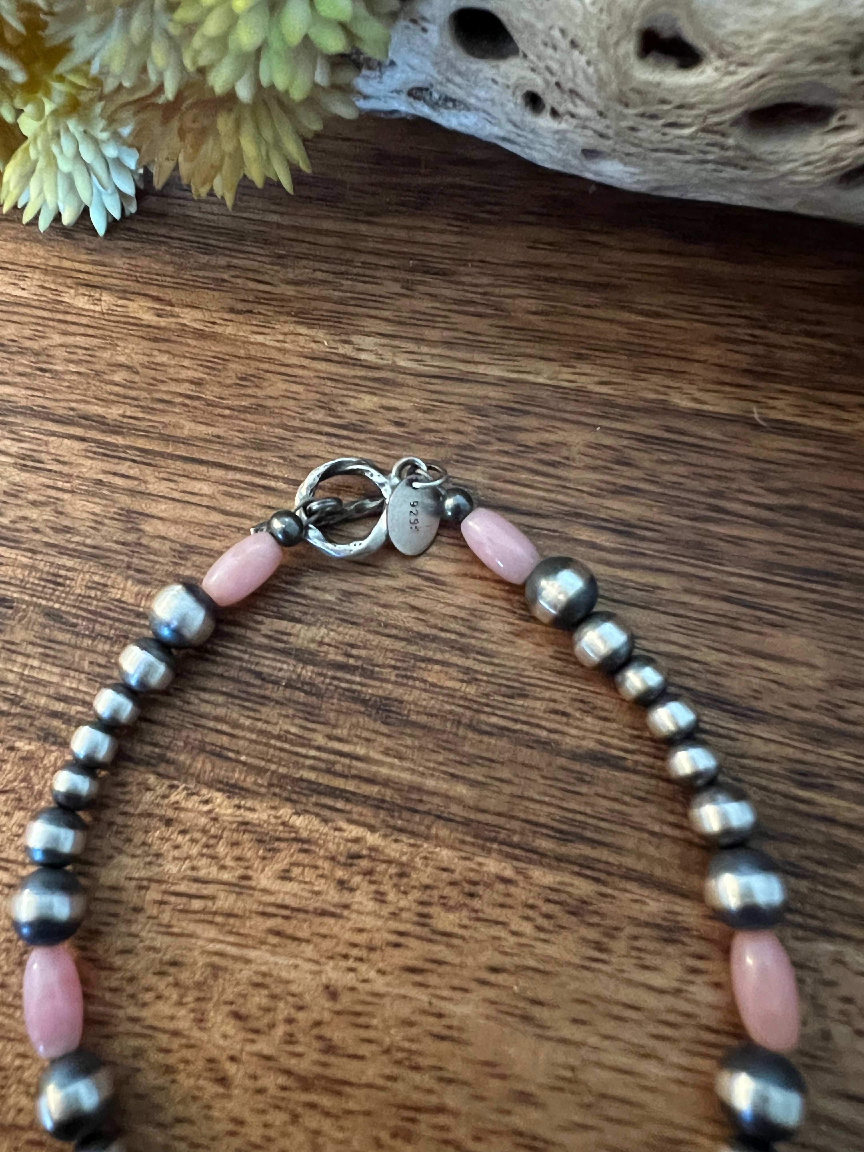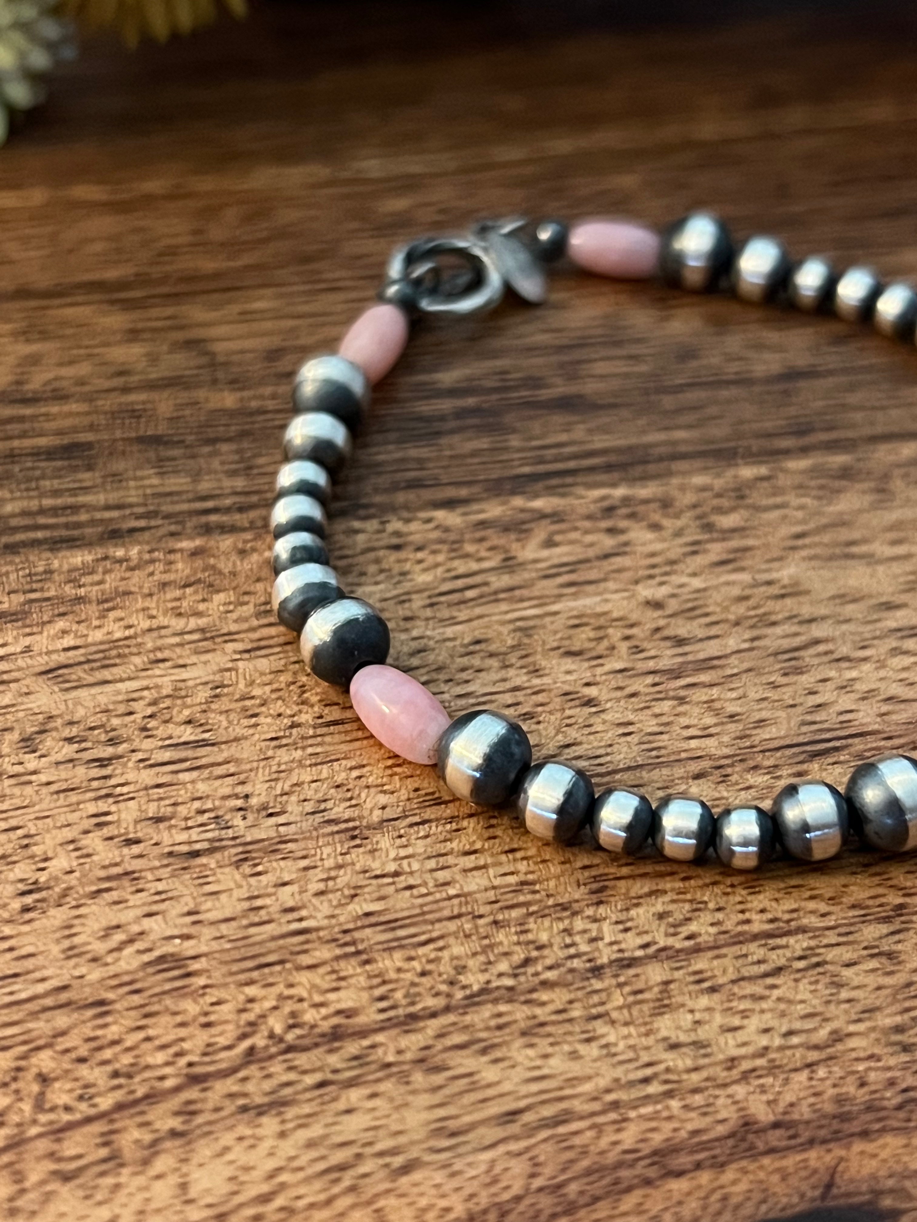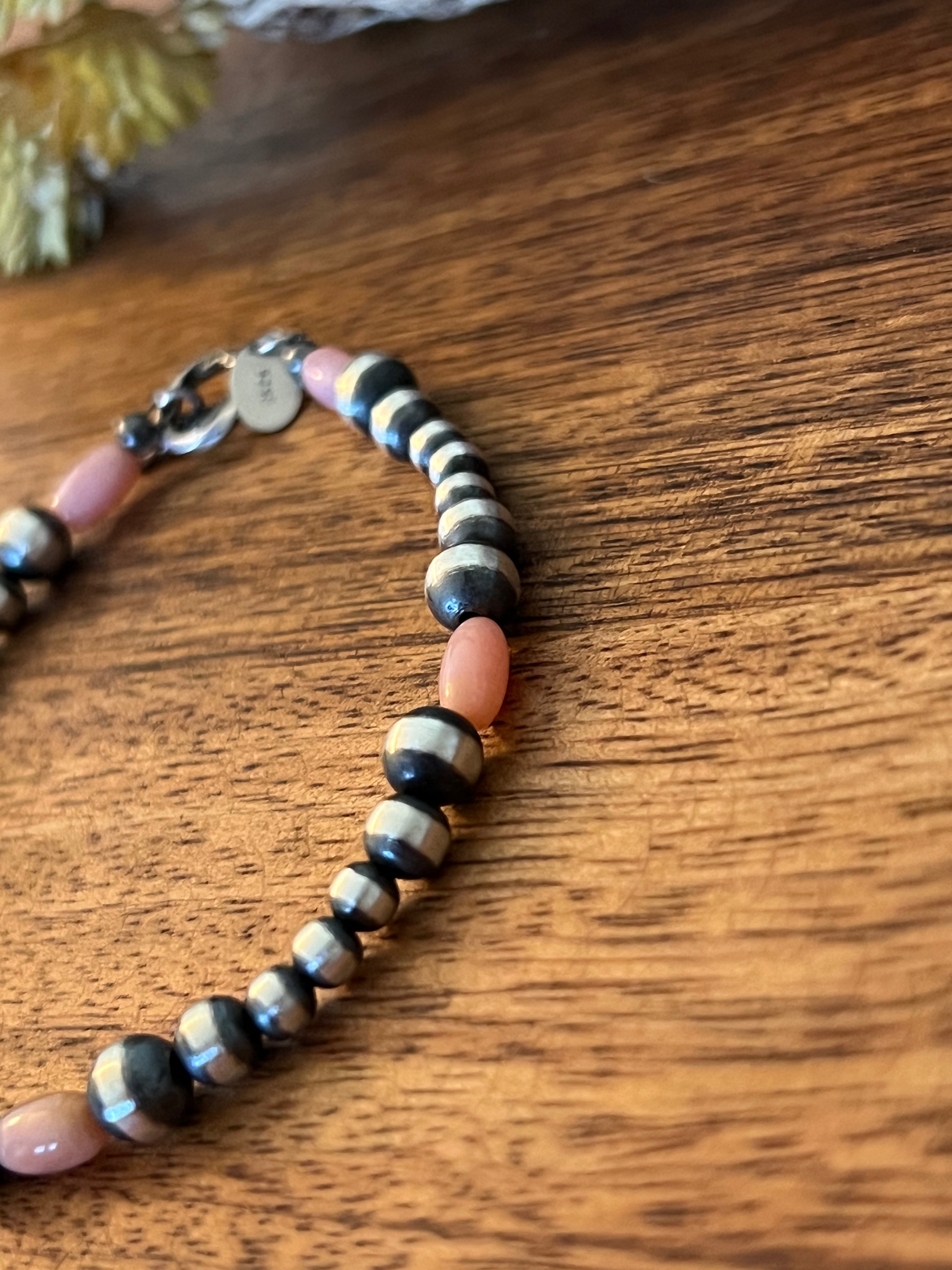 Navajo Strung Pink Coral & Sterling Silver Graduated Pearl Bracelet
