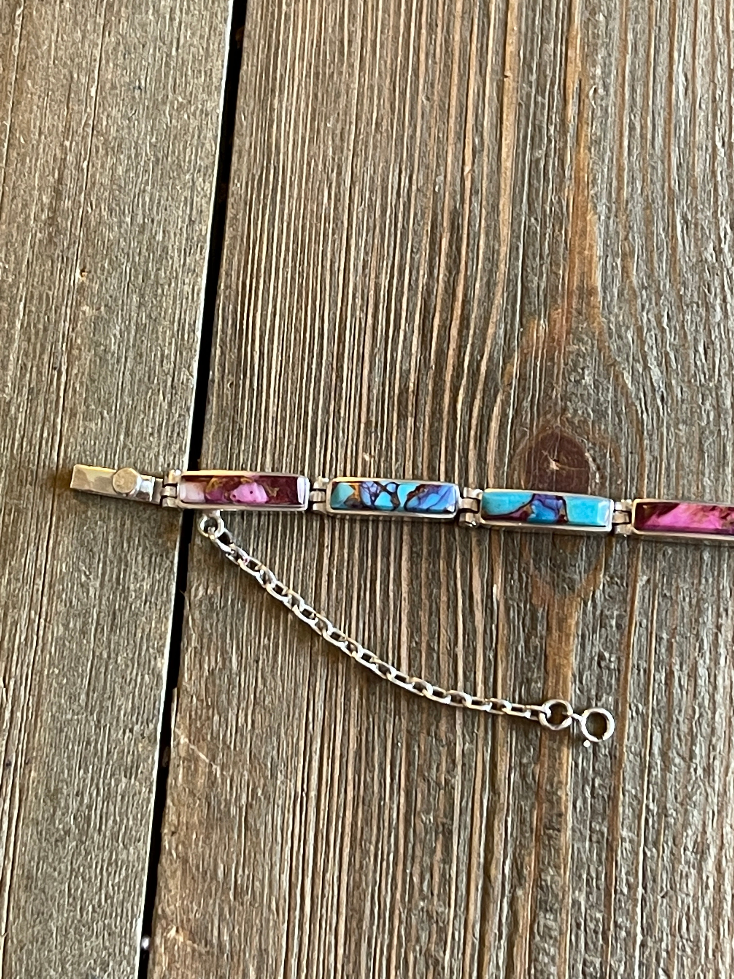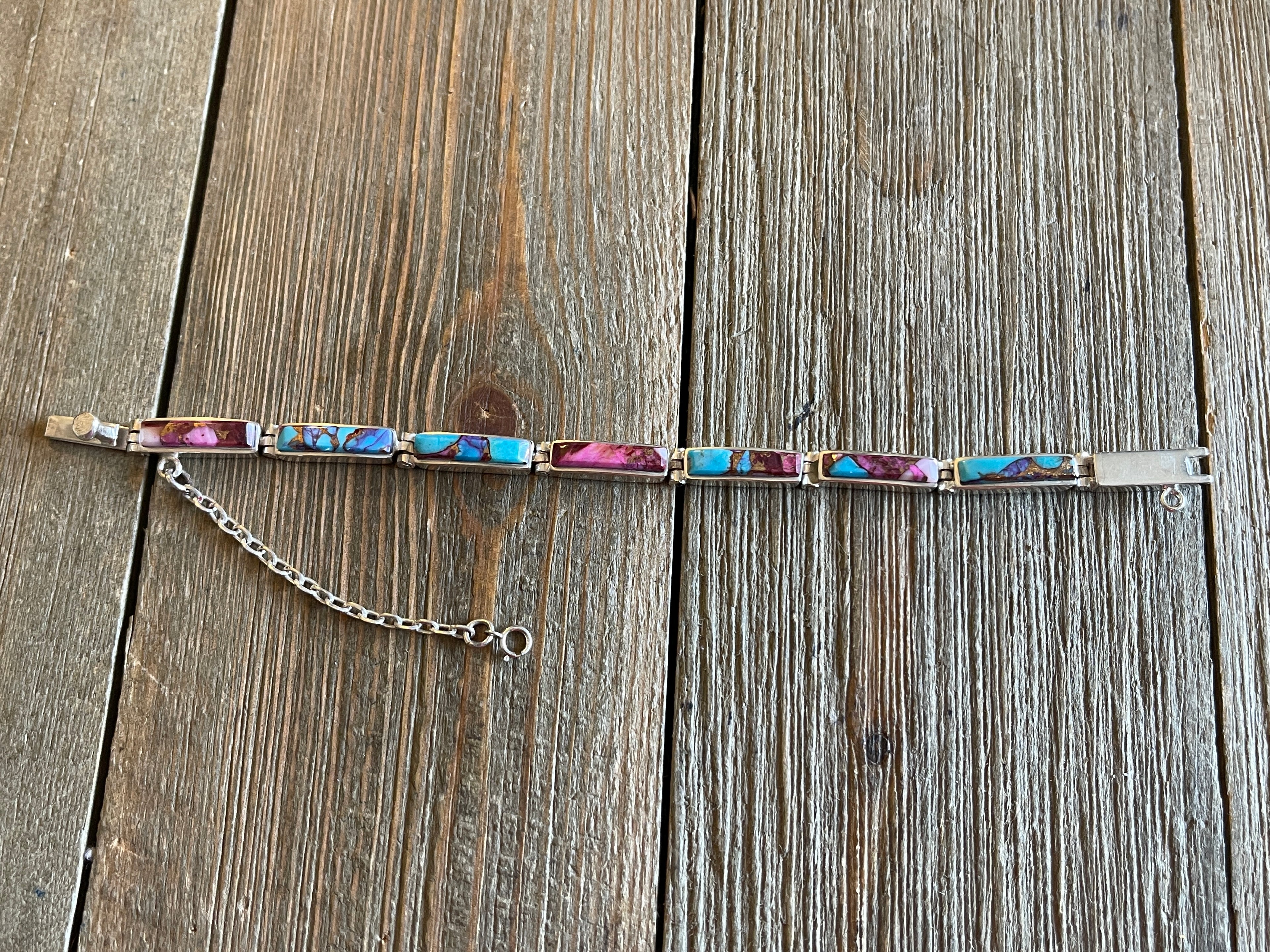 Navajo Pink Dream Mohave Turquoise & Sterling Silver Link Bracelet