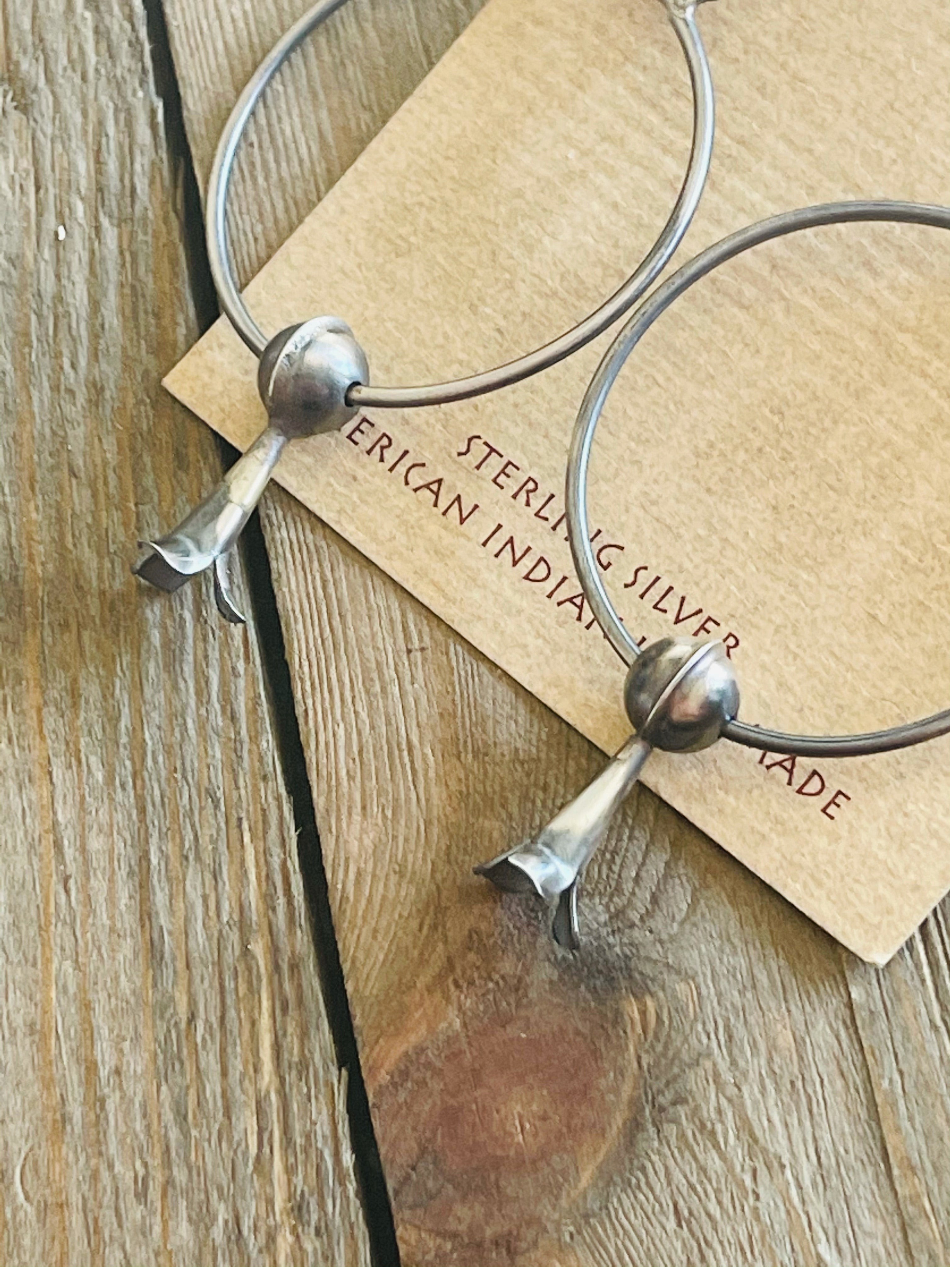Navajo Sterling Silver Blossom Dangles. They measure 2 3/4 inches long and 1 1/4 inches wide.