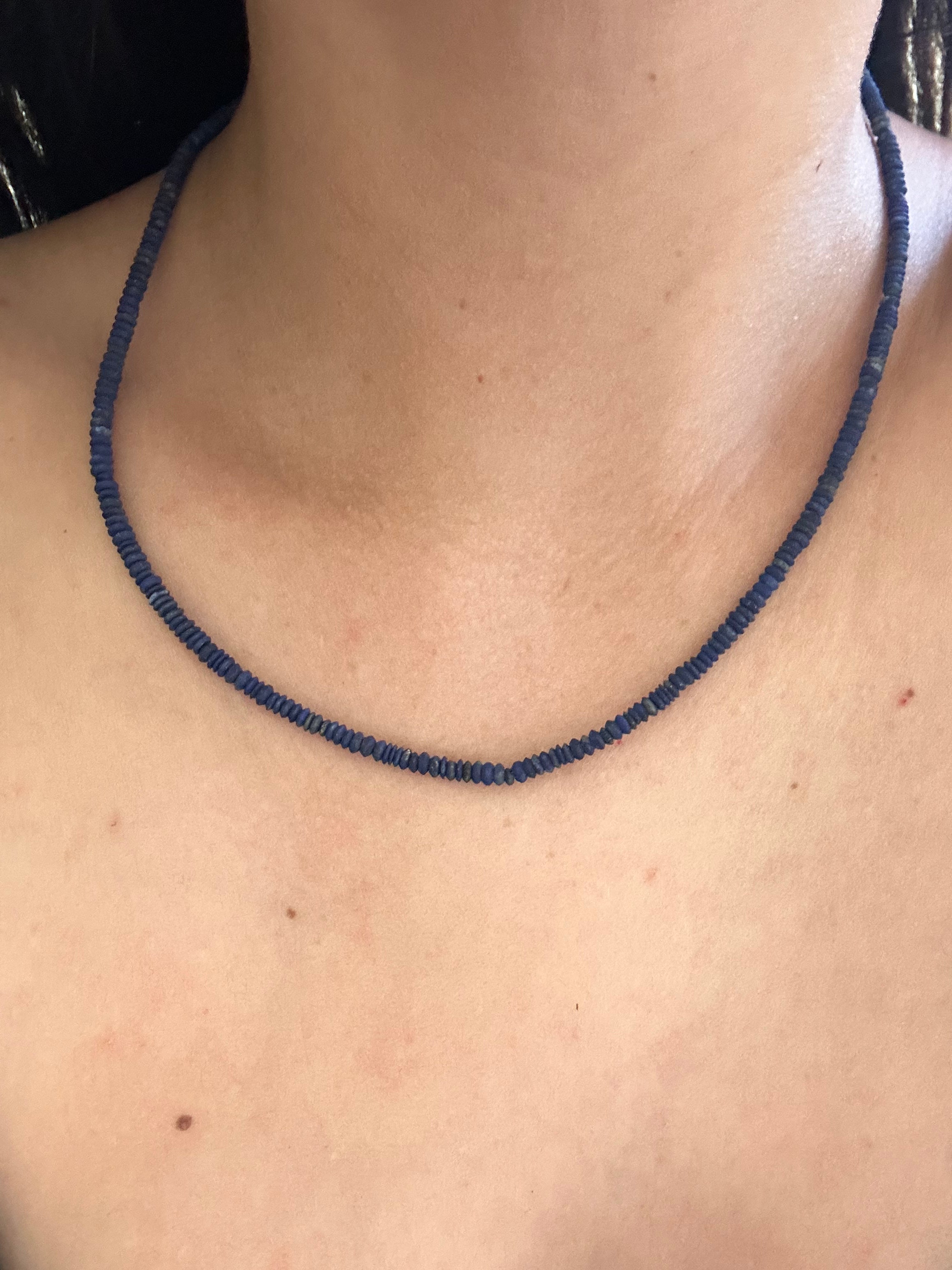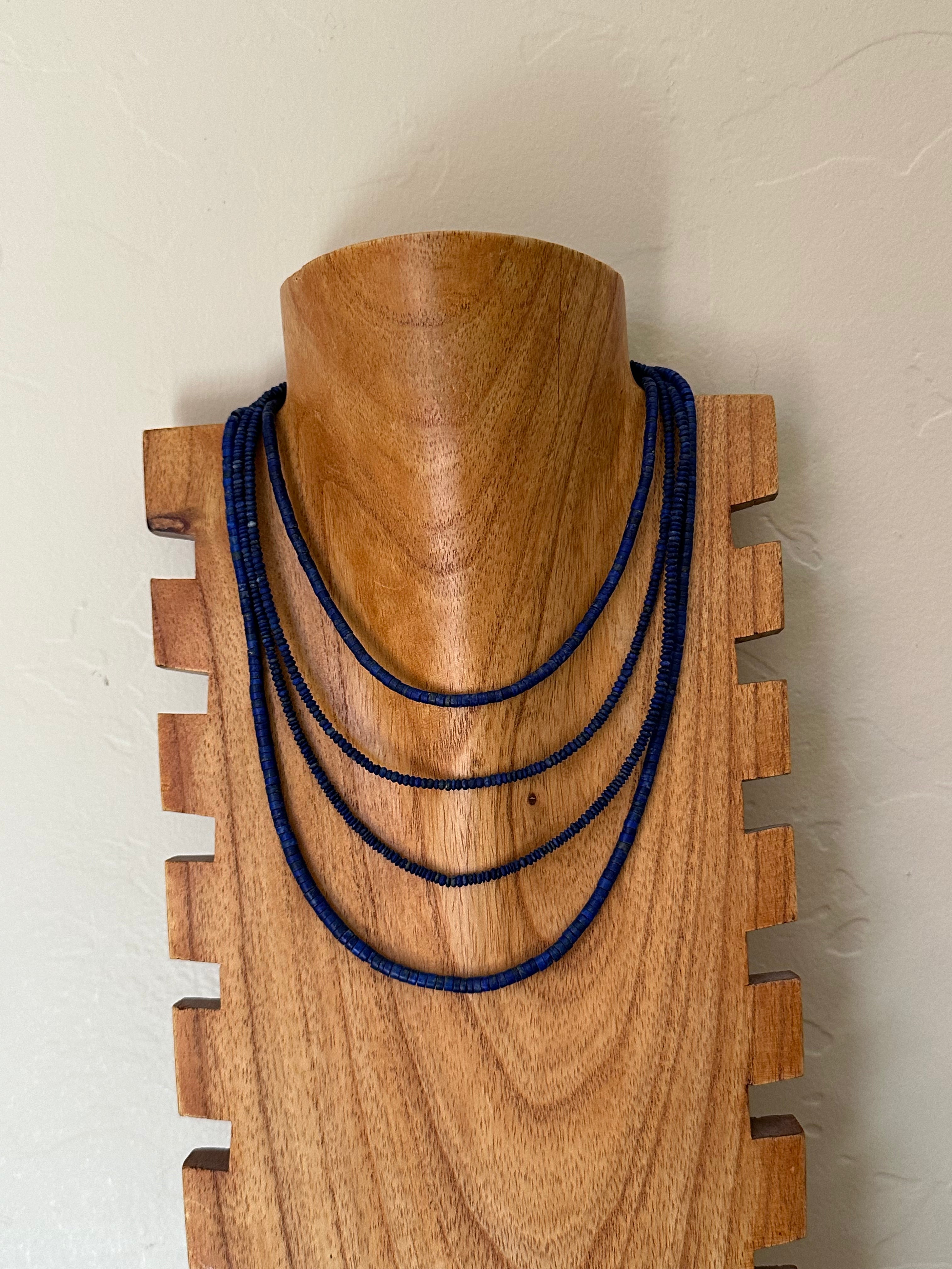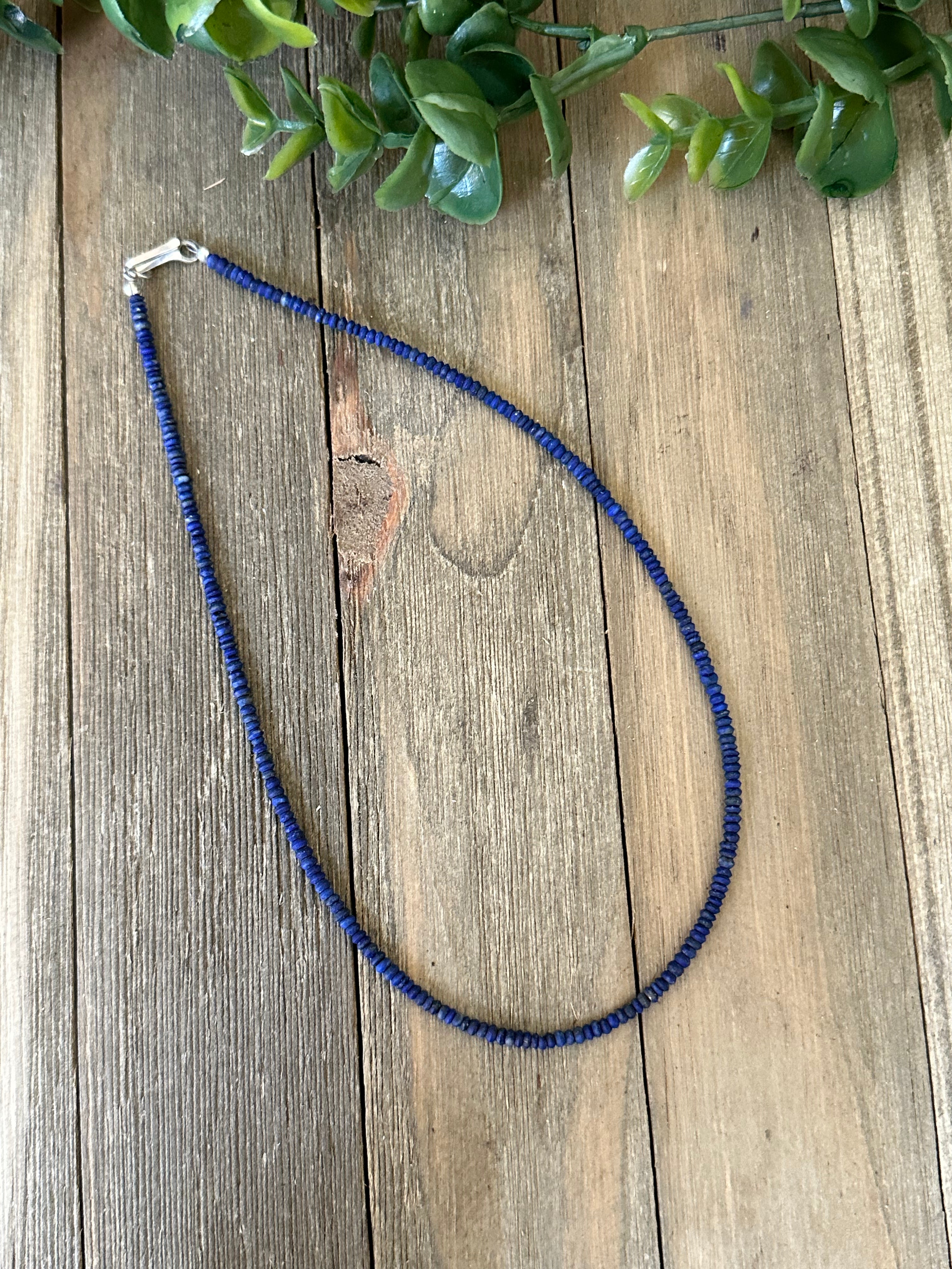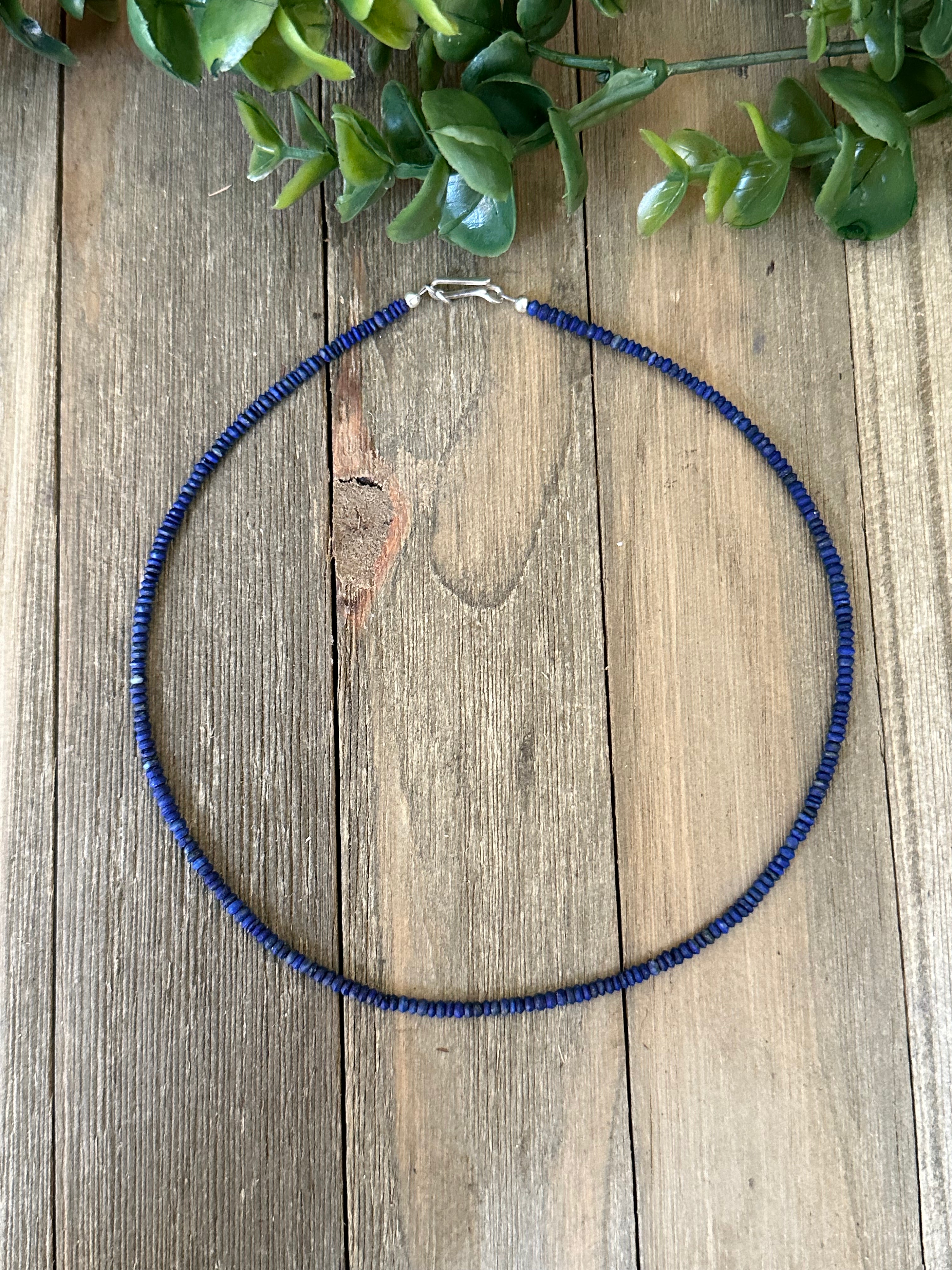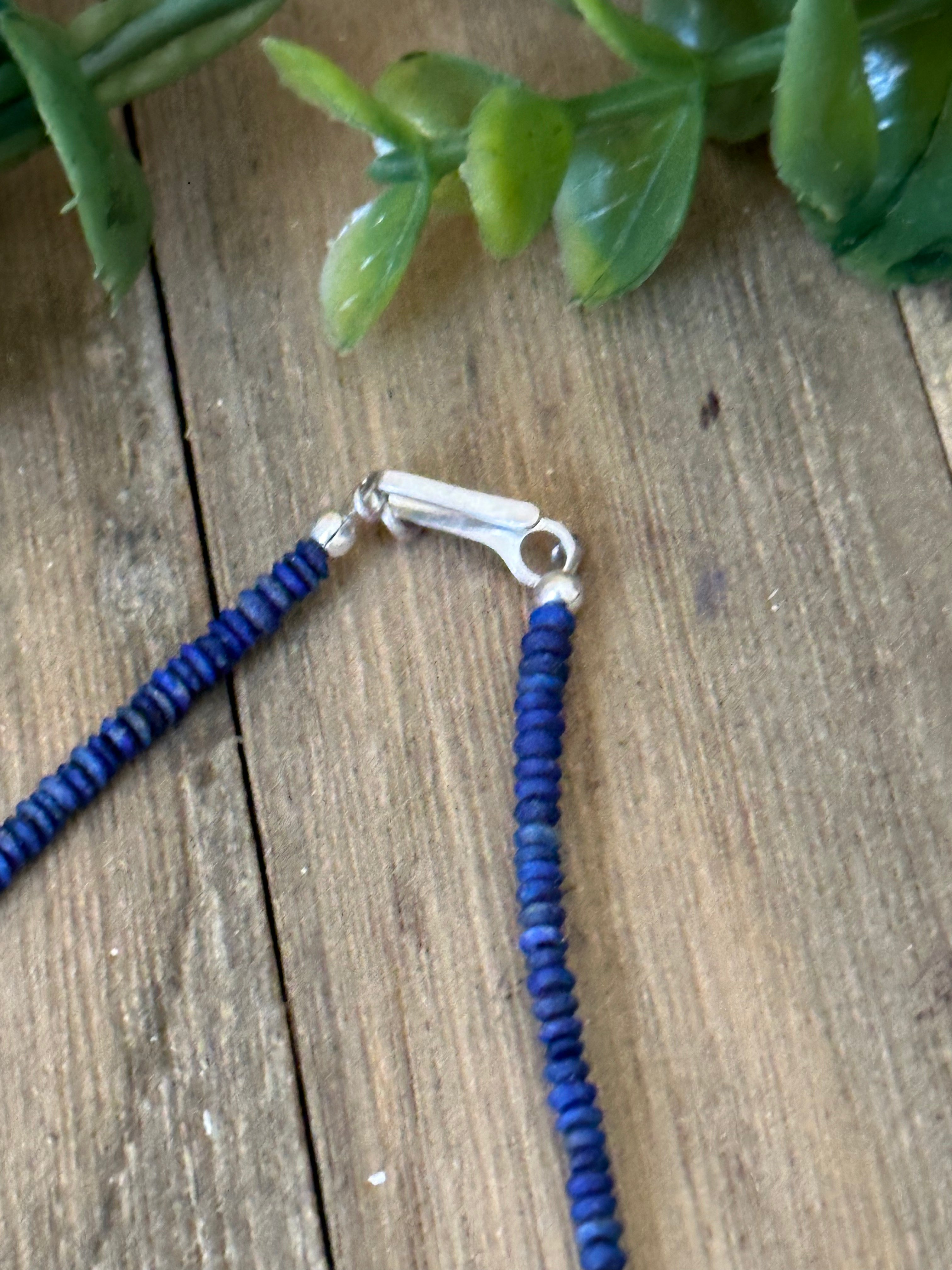 Navajo Strung Lapis & Sterling Silver Pearls Beaded Necklace