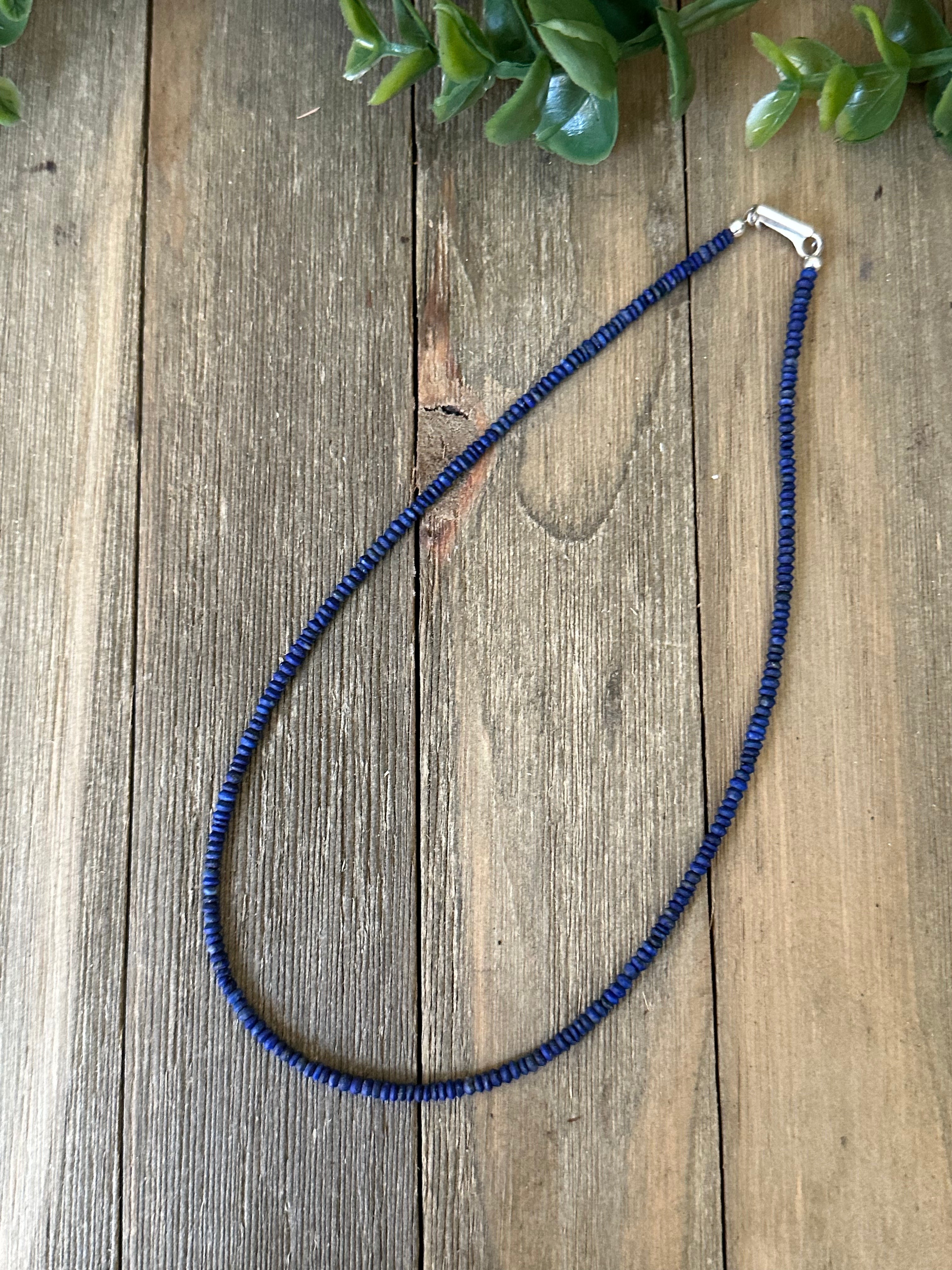 Navajo Strung Lapis & Sterling Silver Pearls Beaded Necklace. It measures 18 inches long.