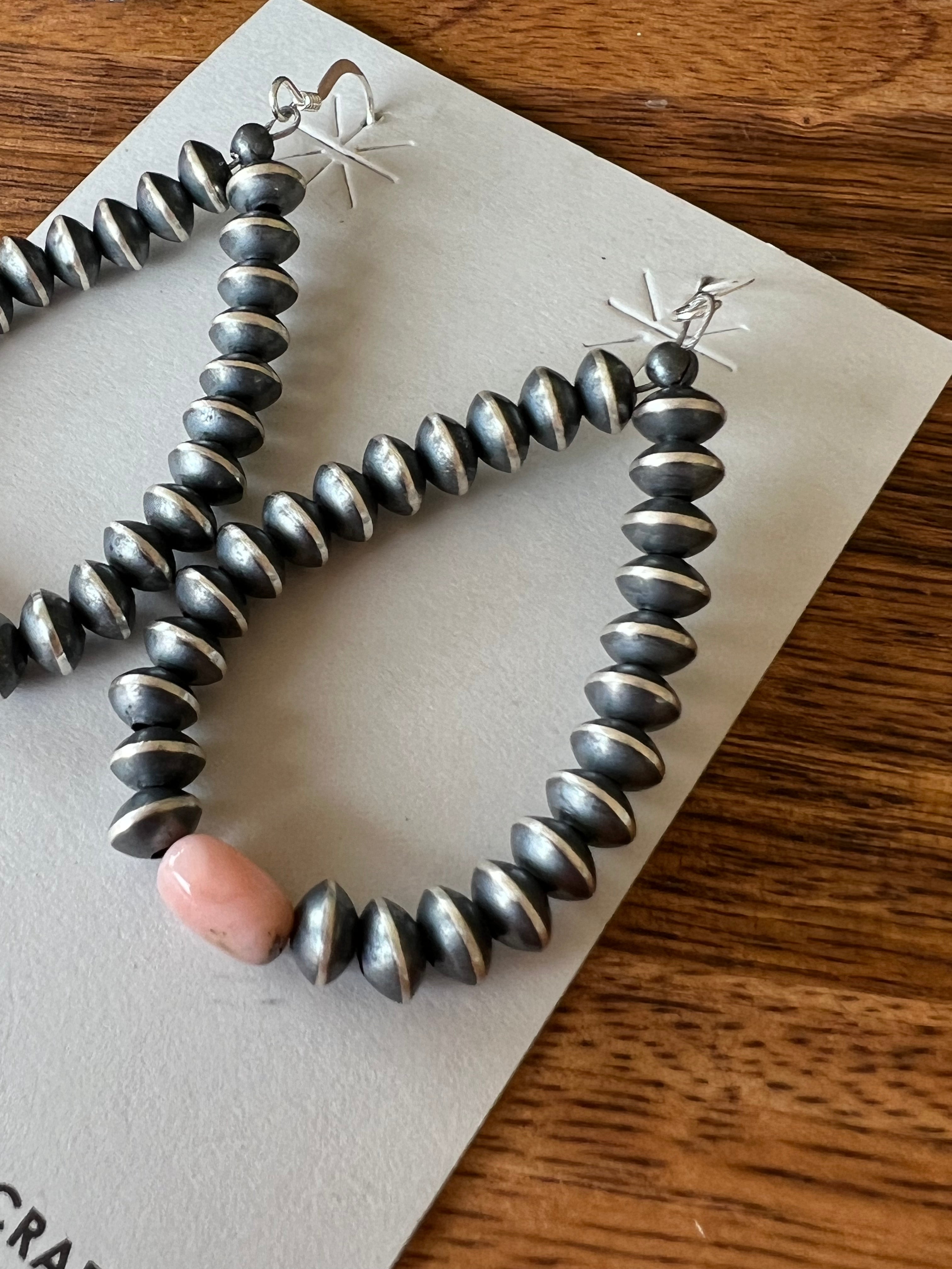 Navajo Strung Pink Peruvian Opal & Sterling Silver Pearl Dangles