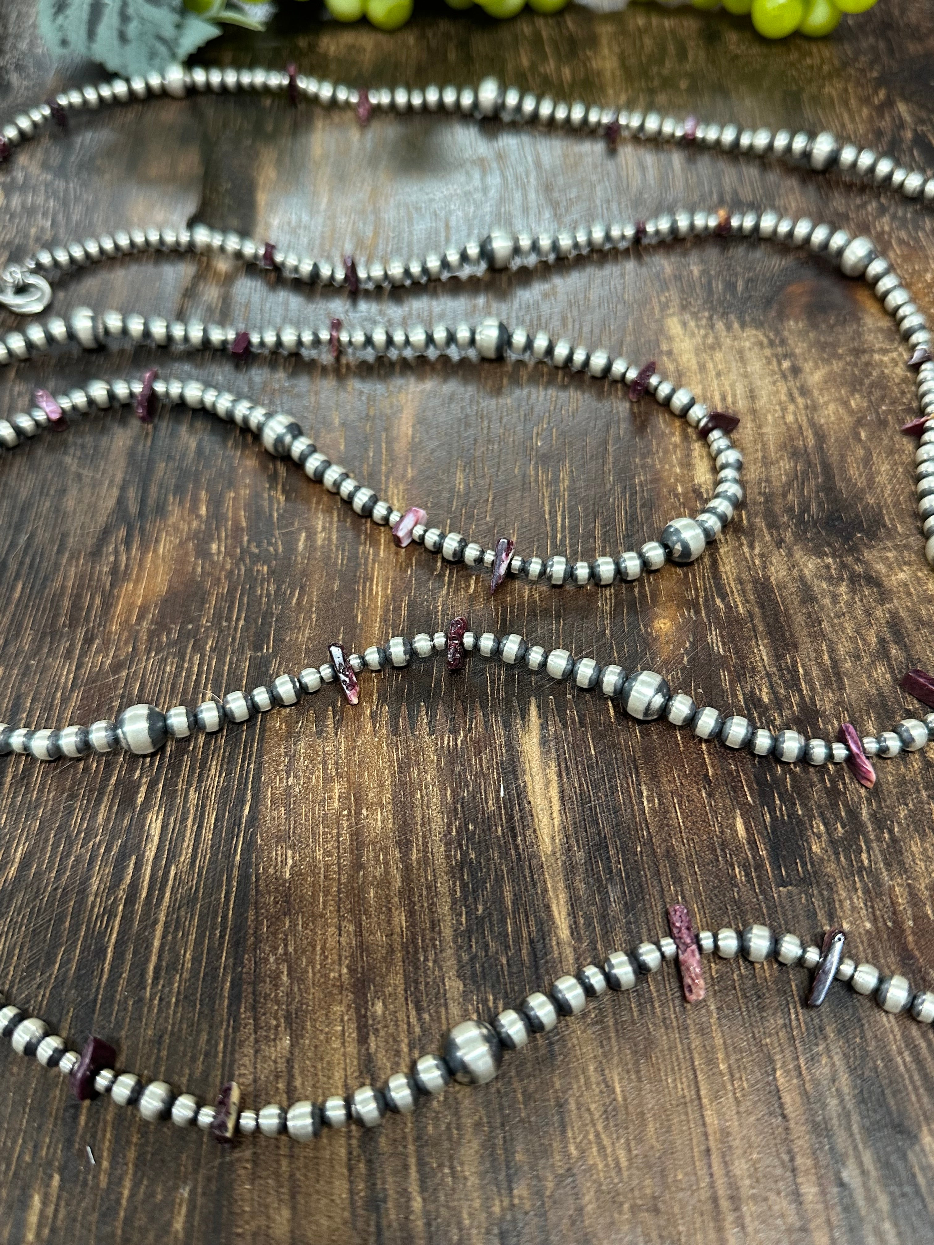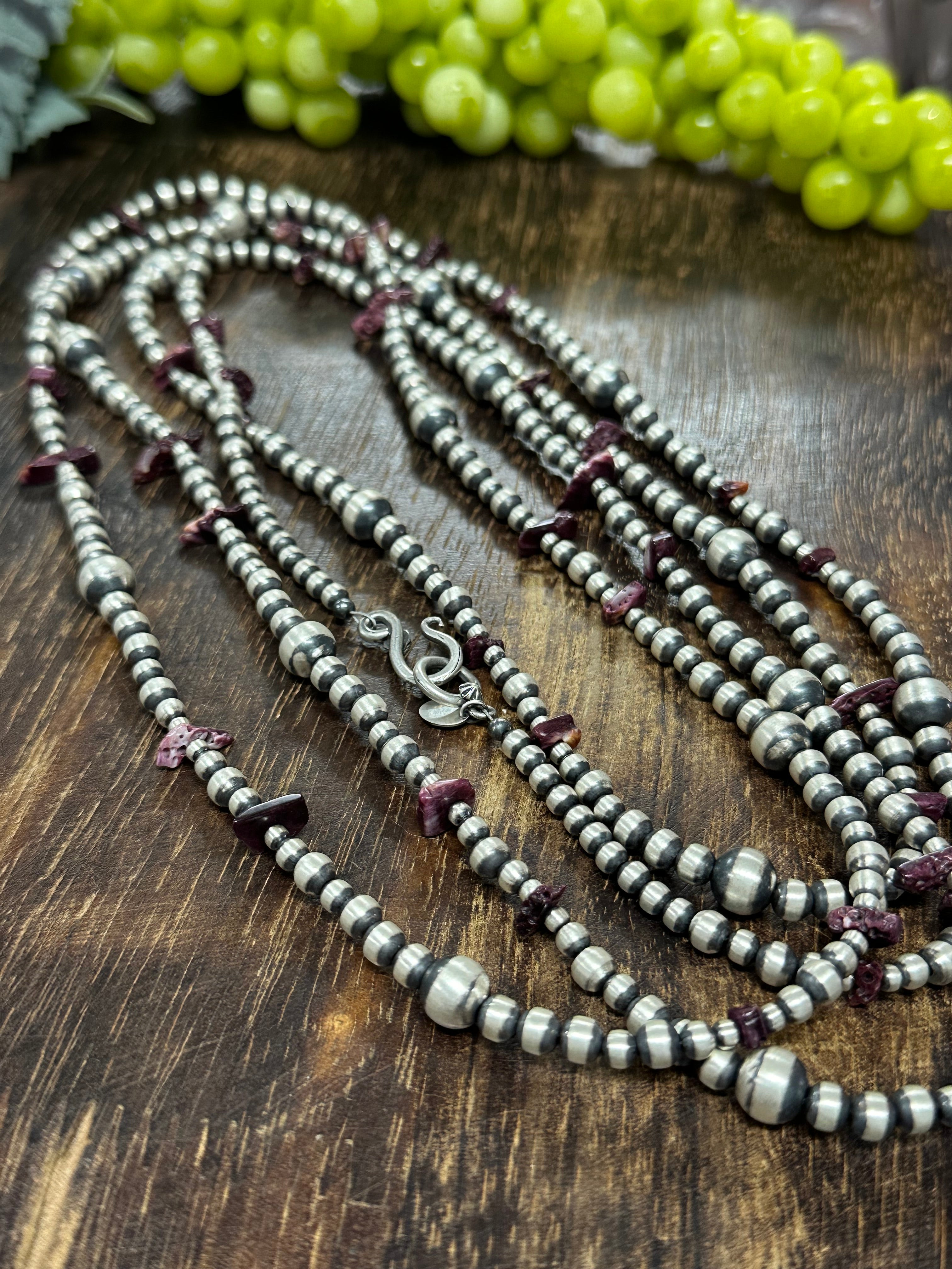 Navajo Strung Purple Spiny Oyster & Sterling Silver Pearls Beaded Necklace