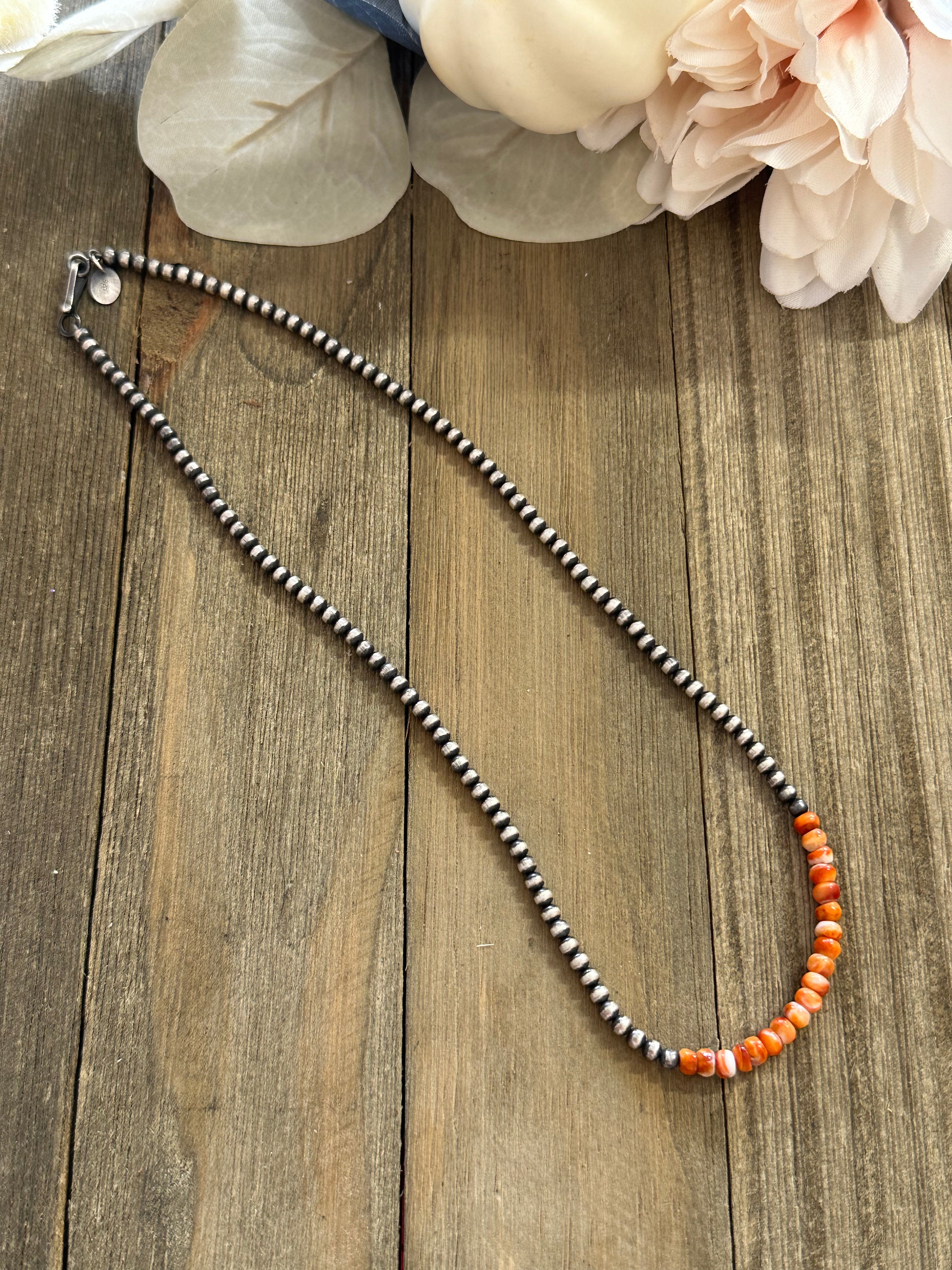Navajo Strung Spiny Oyster & Sterling Silver Graduated Pearls Beaded Necklace