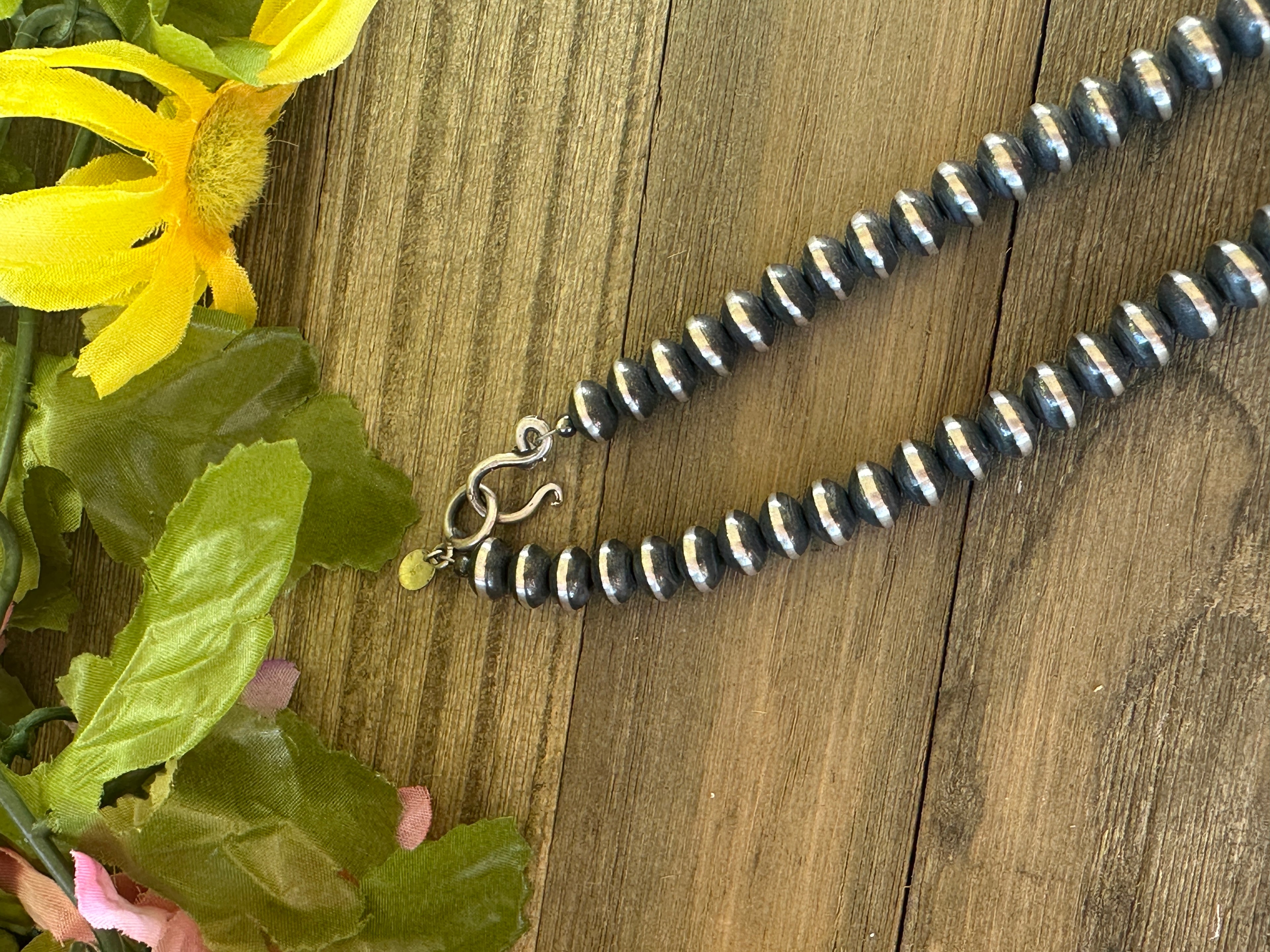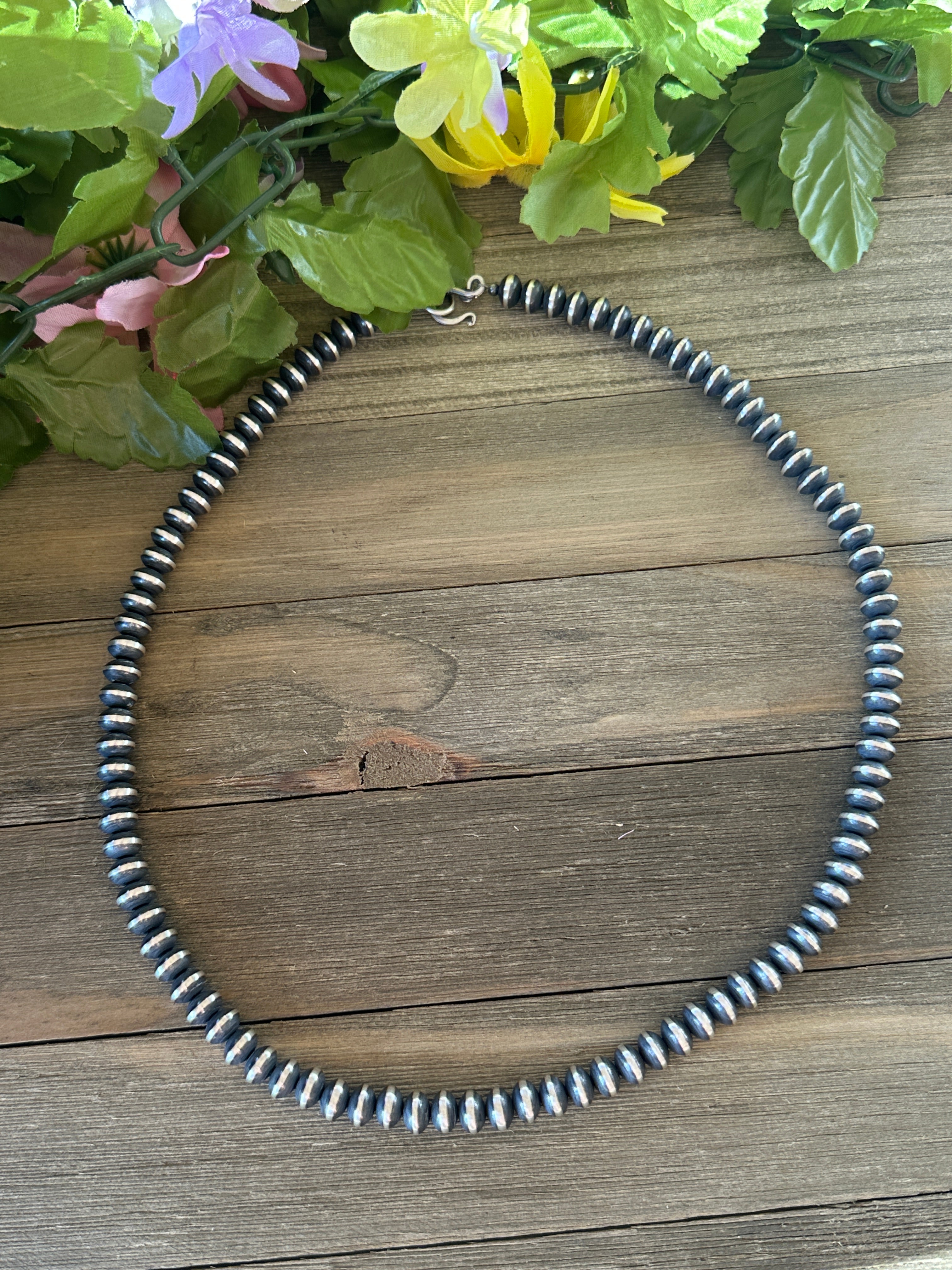 Navajo Strung Sterling Silver 9 MM Saucer Pearl Necklace