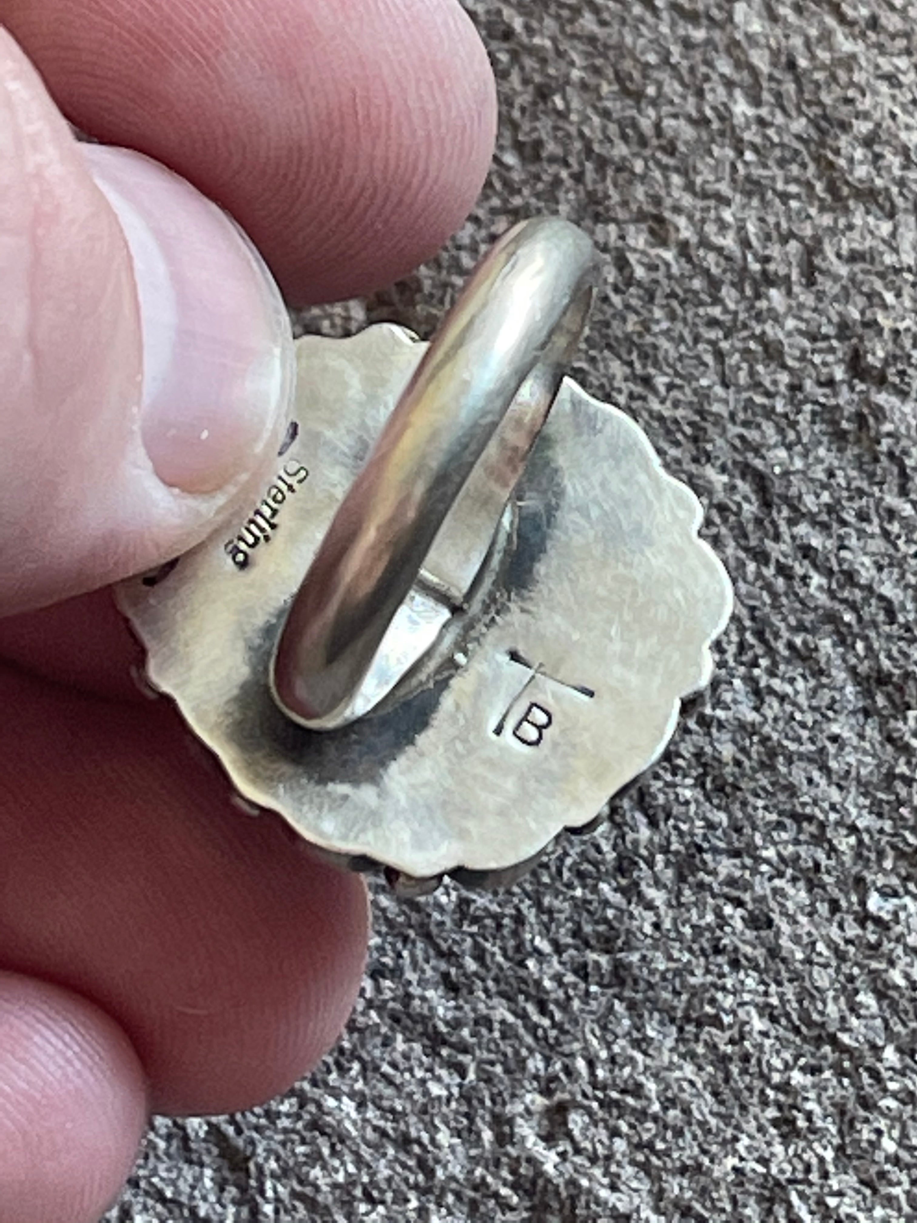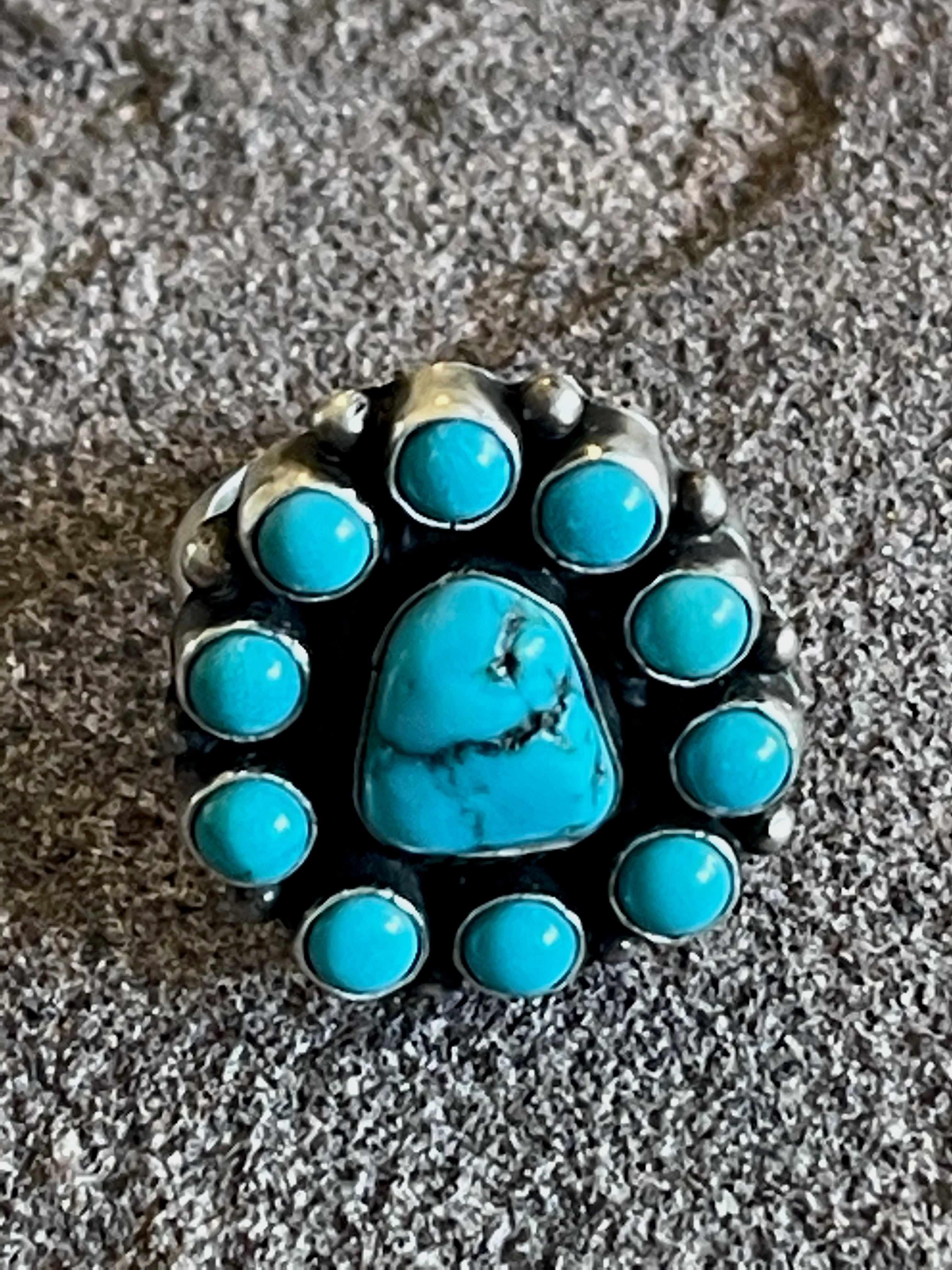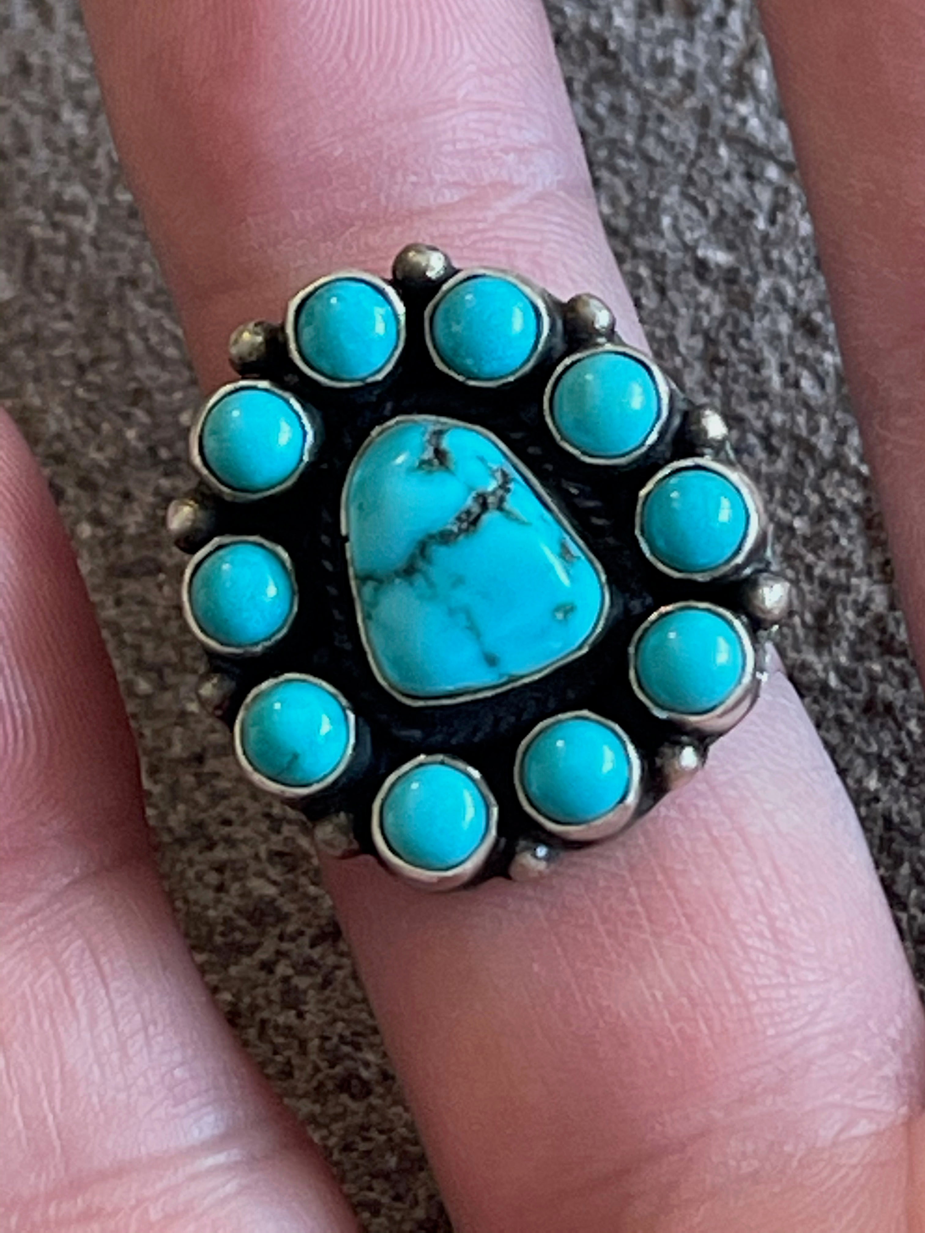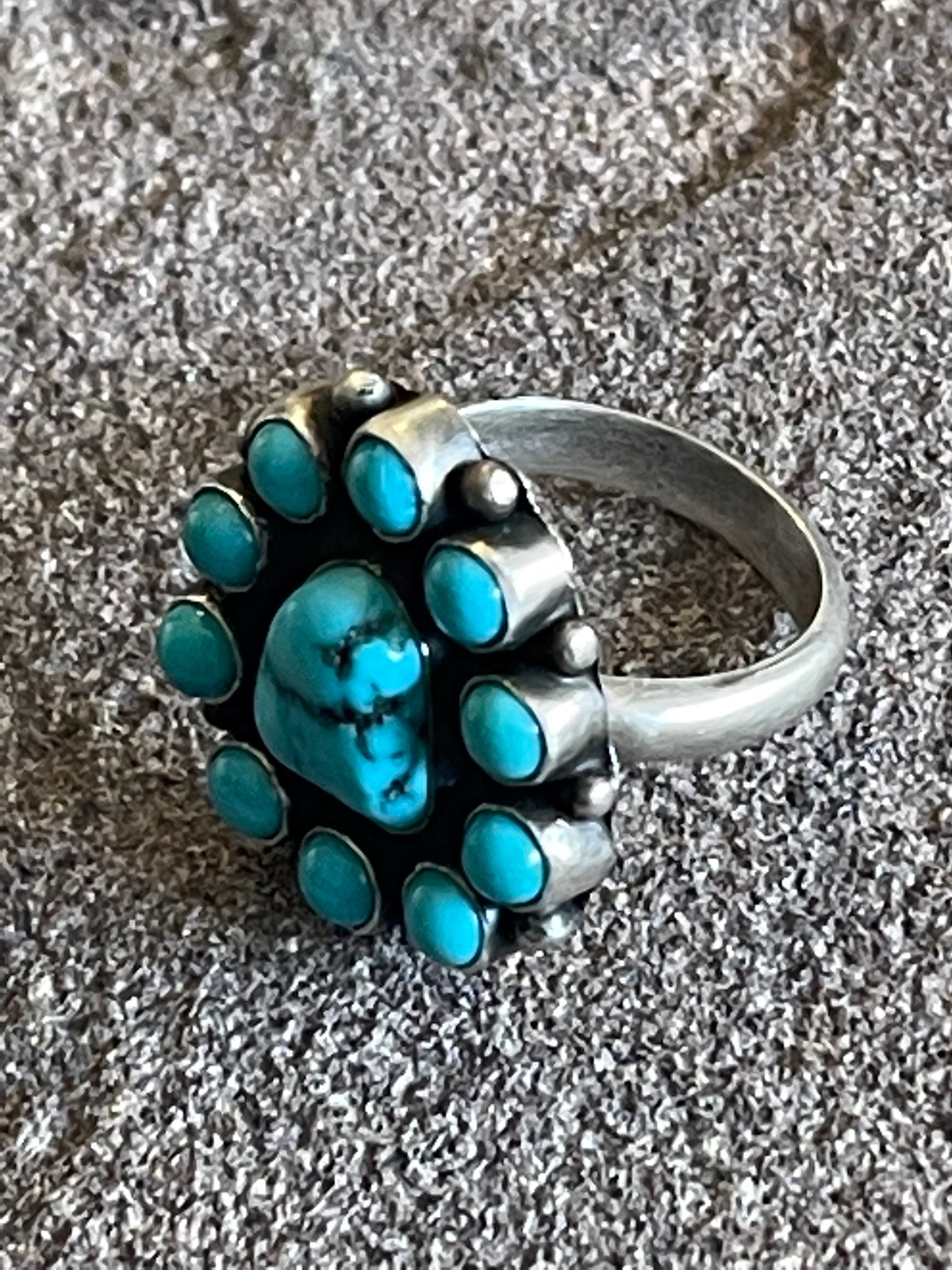 Navajo Turquoise & Sterling Silver Cluster Ring Size 8
