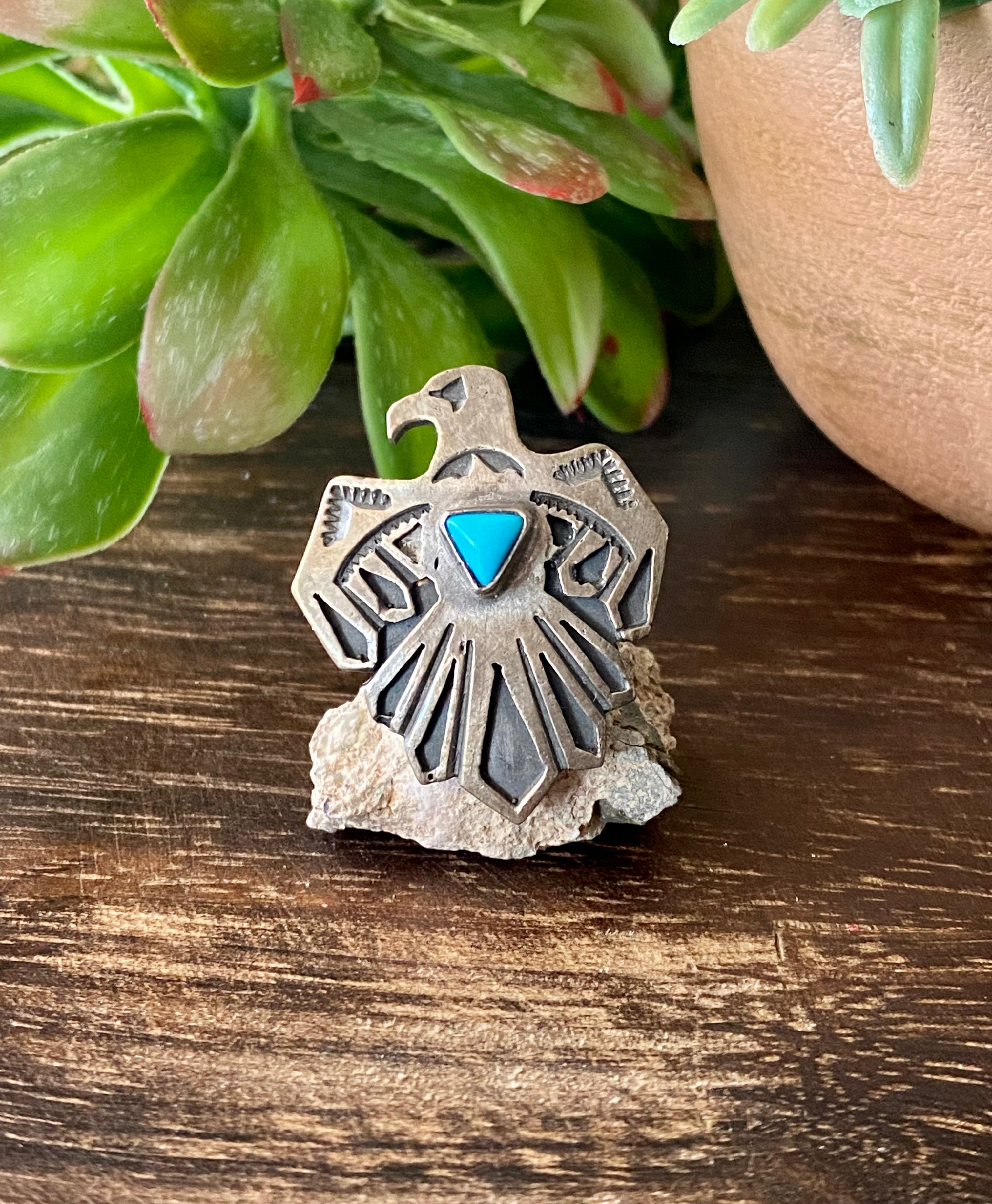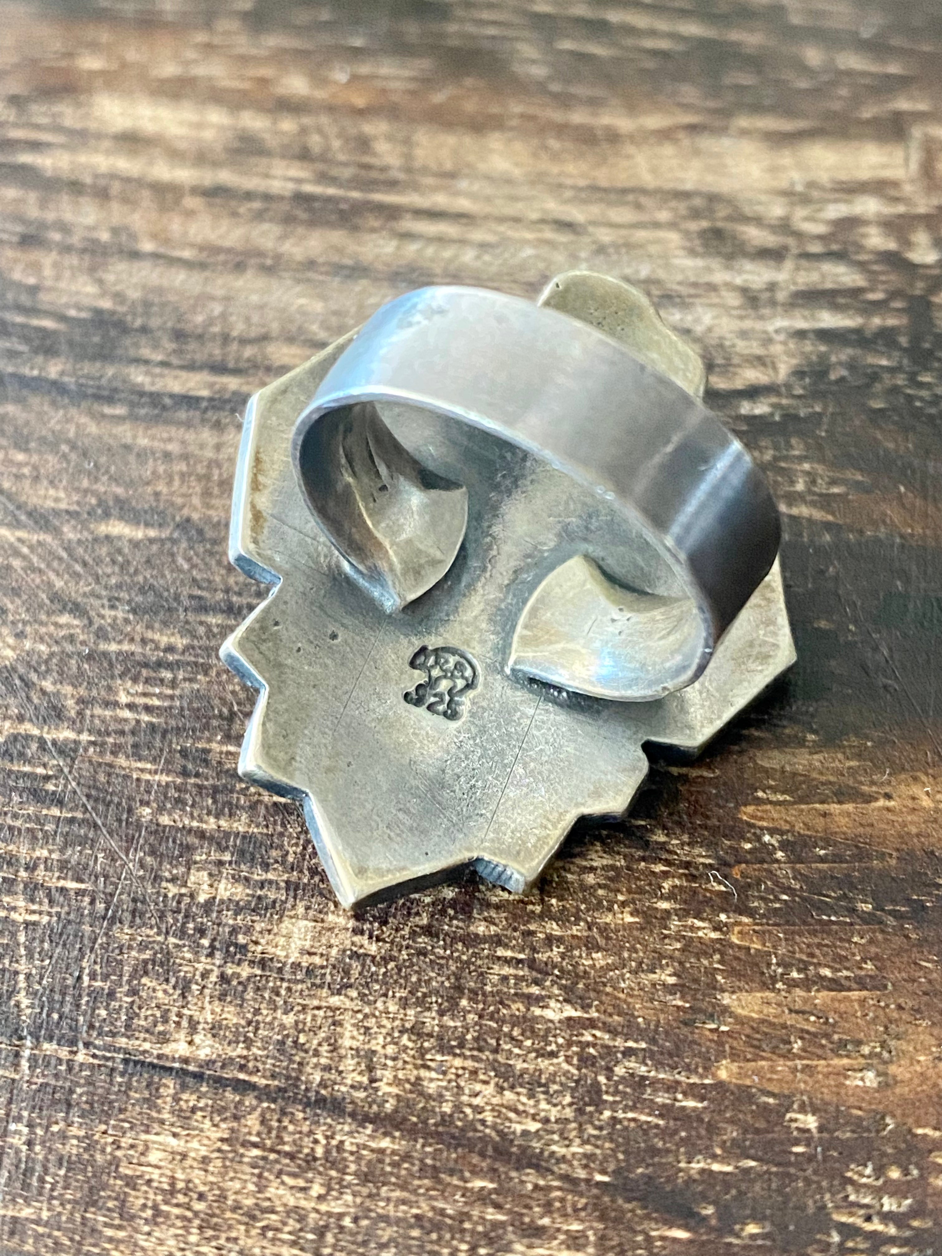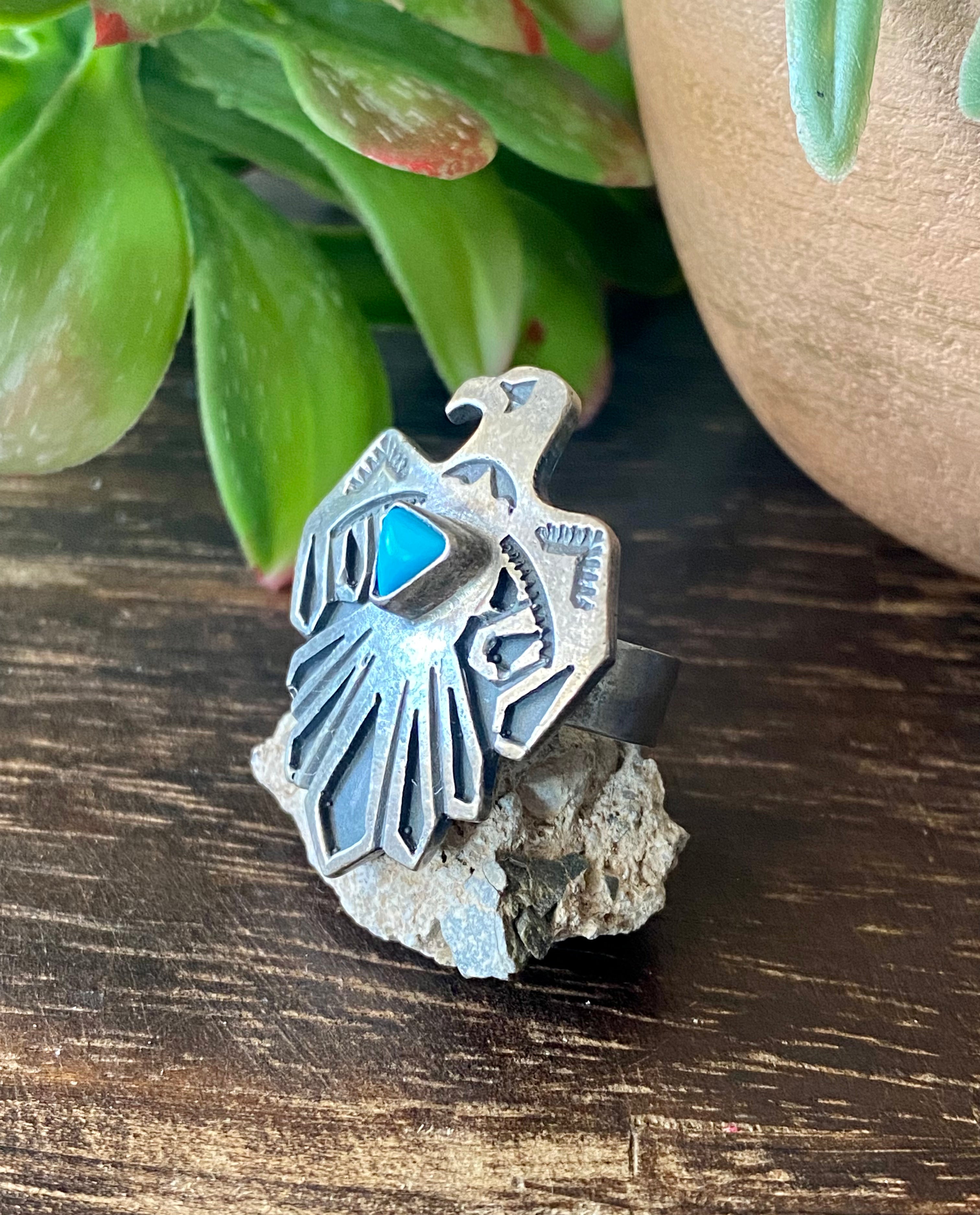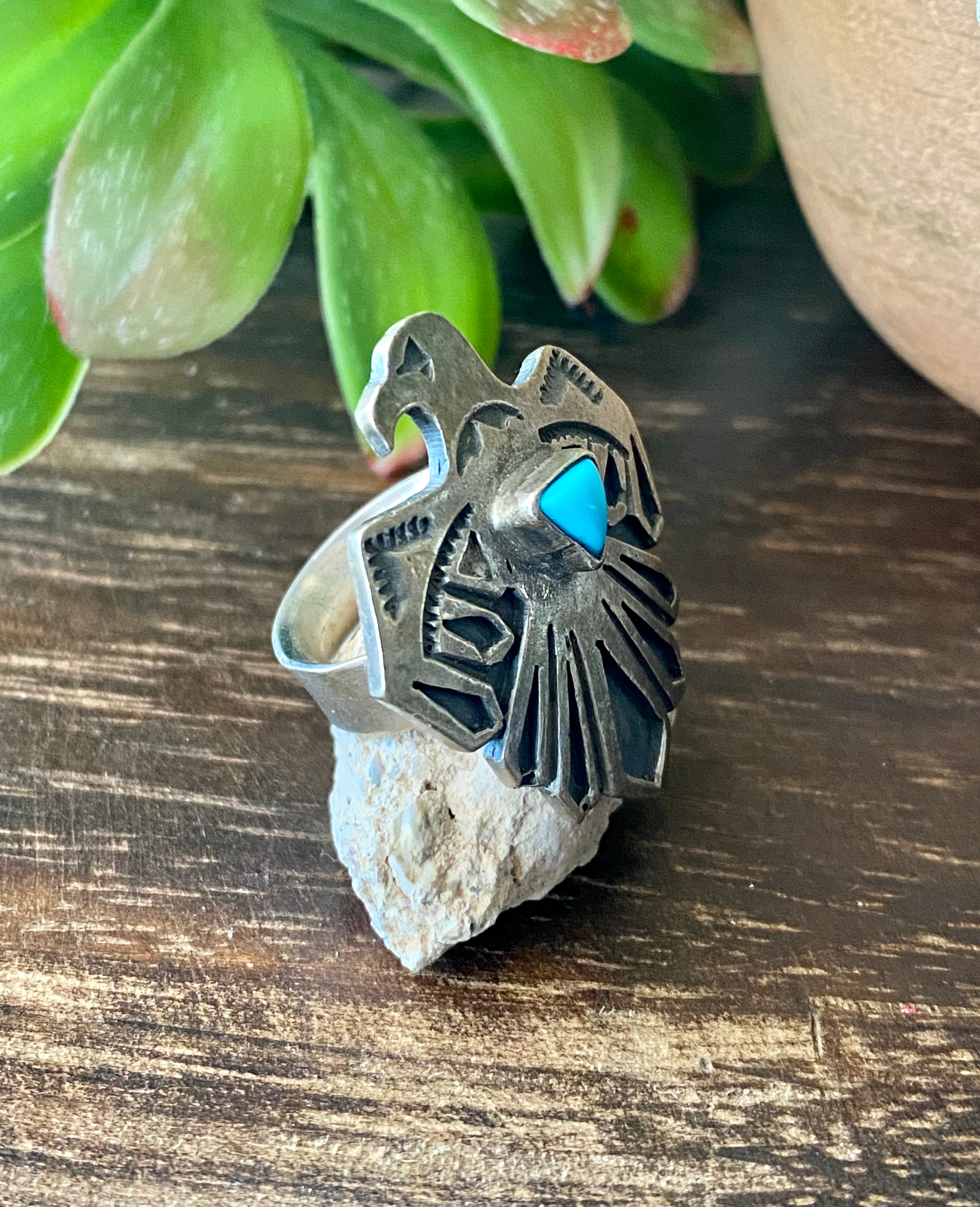 Navajo Turquoise & Sterling Silver Thunderbird Ring Size 5.5