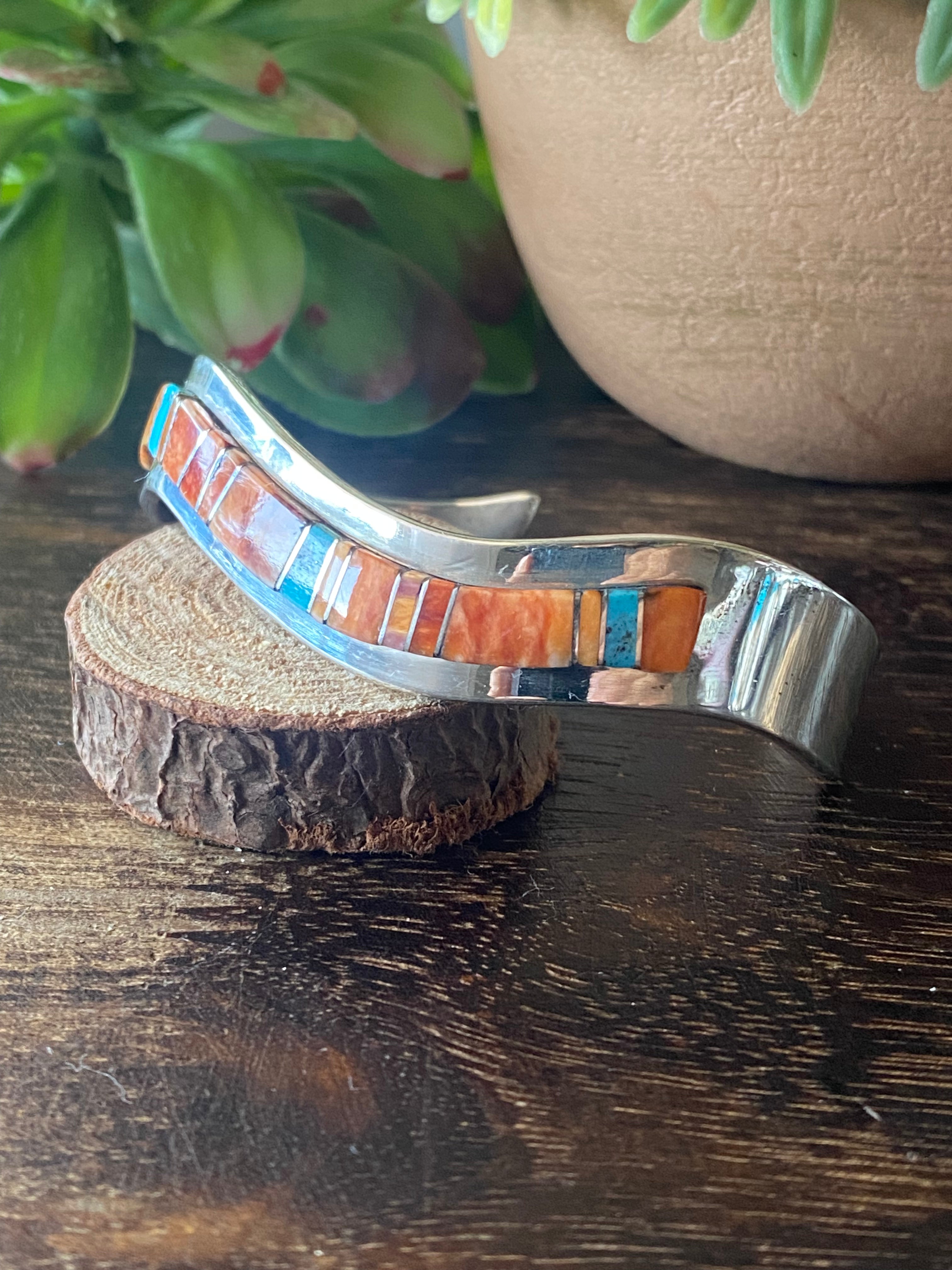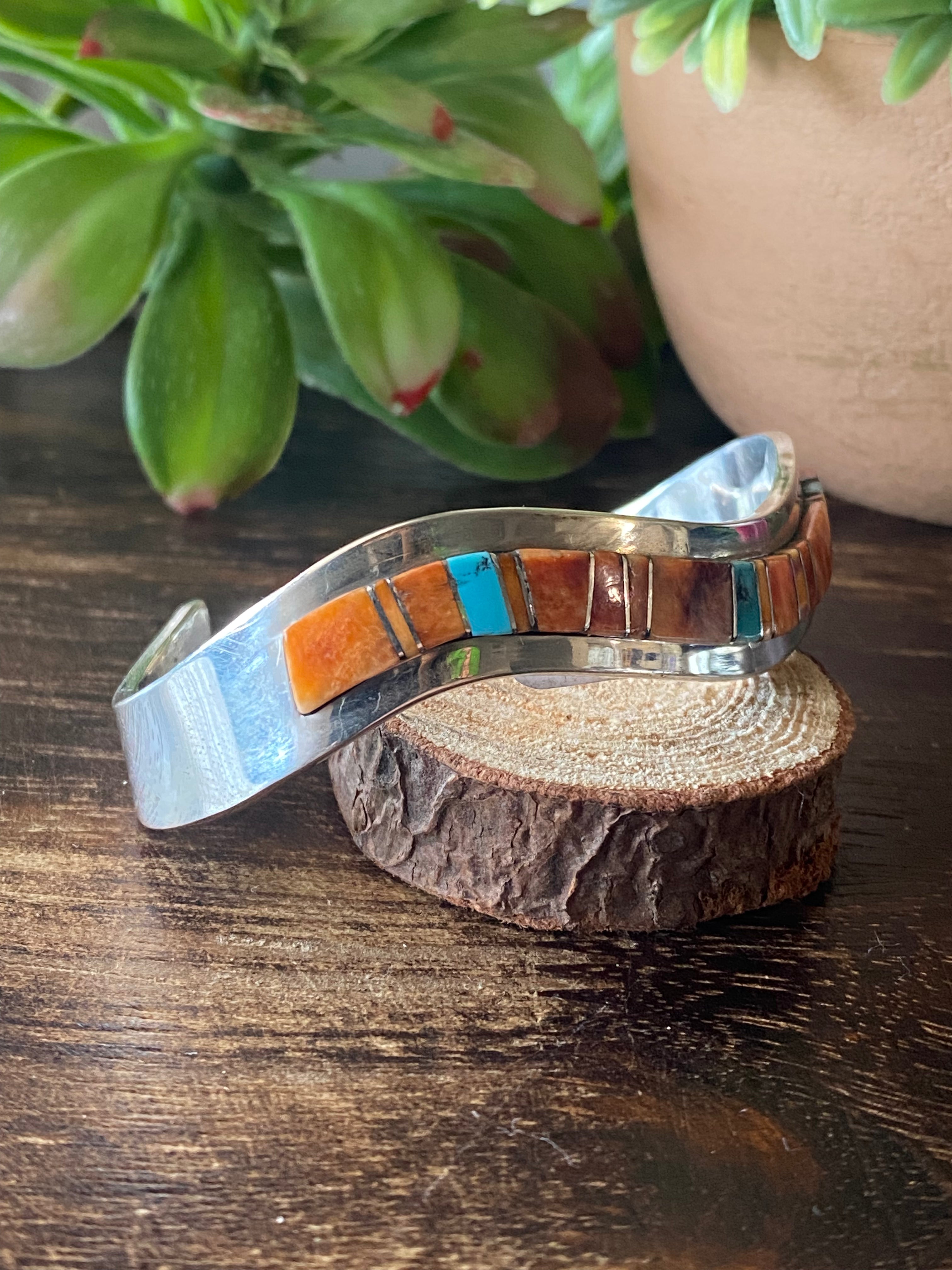 Patricia Ed Becenti Multi Stone & Sterling Silver Inlay Cuff Bracelet