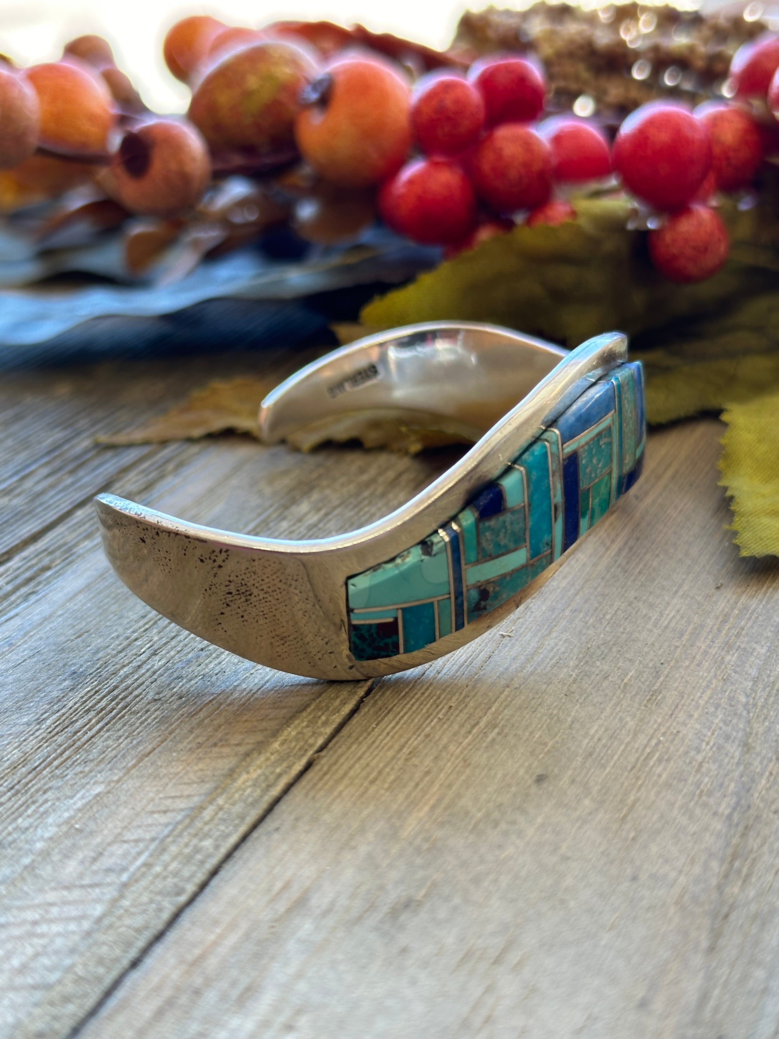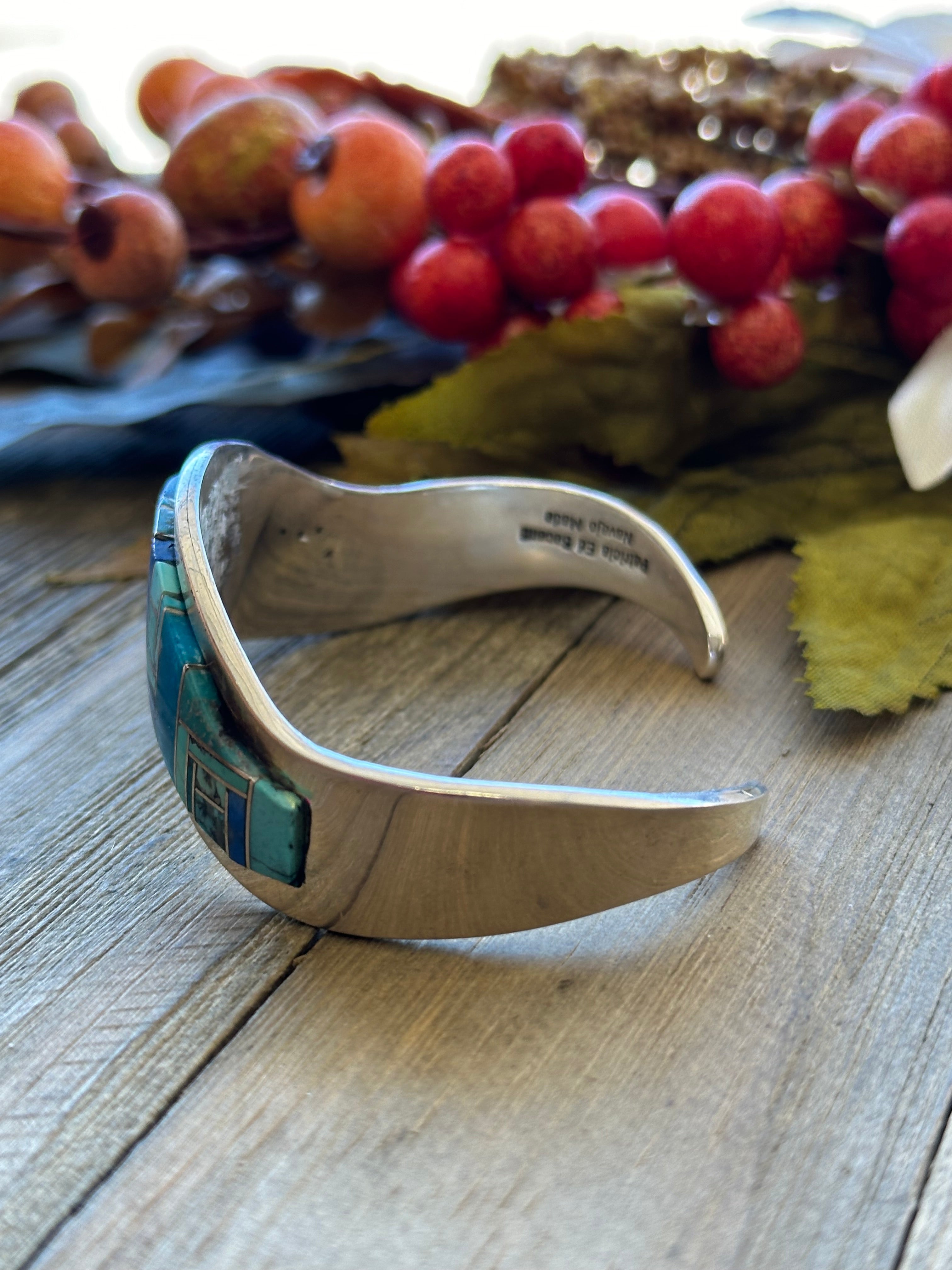 Patricia & Ed Becenti Multi Stone & Sterling Silver Inlay Cuff Bracelet