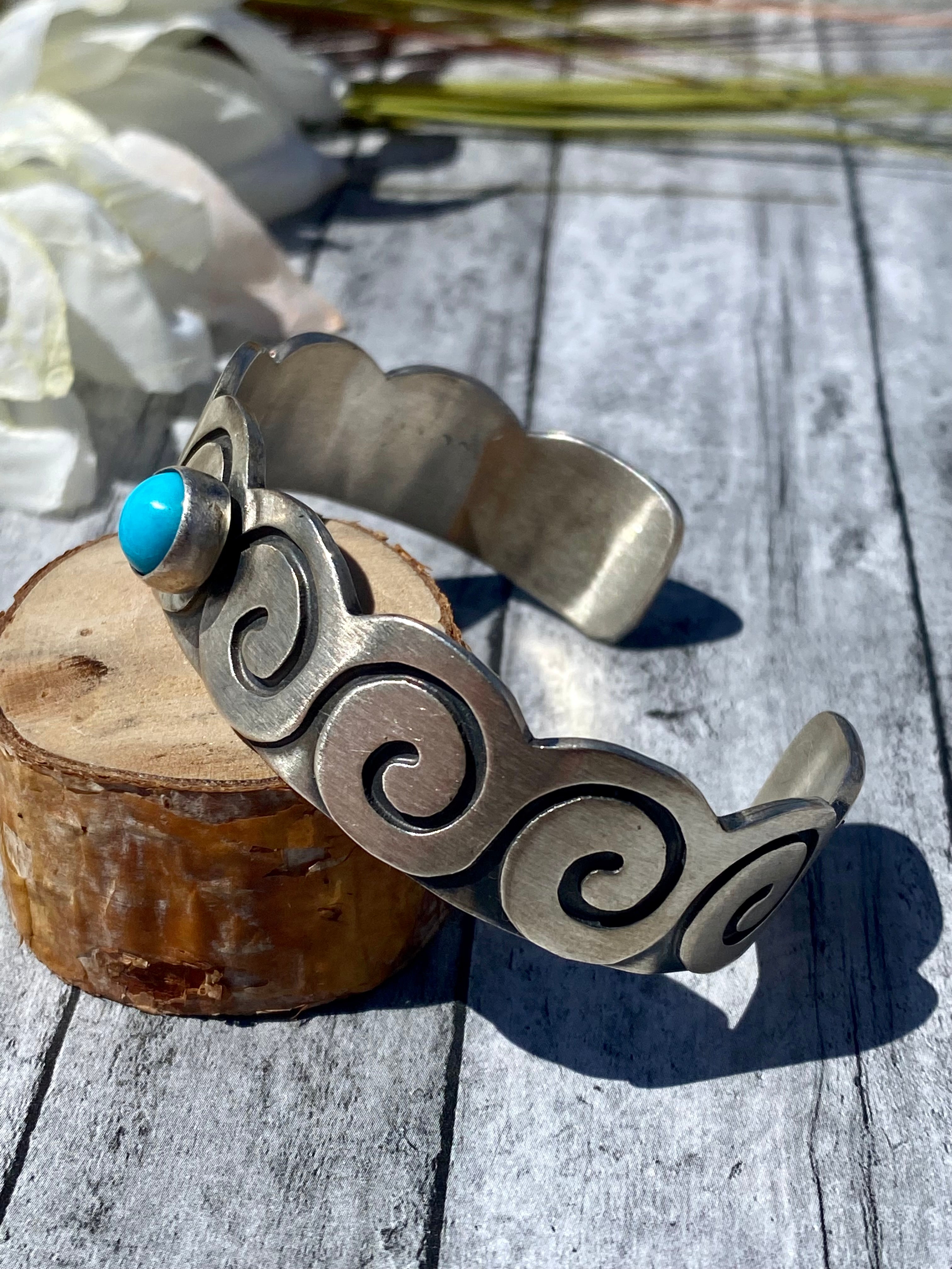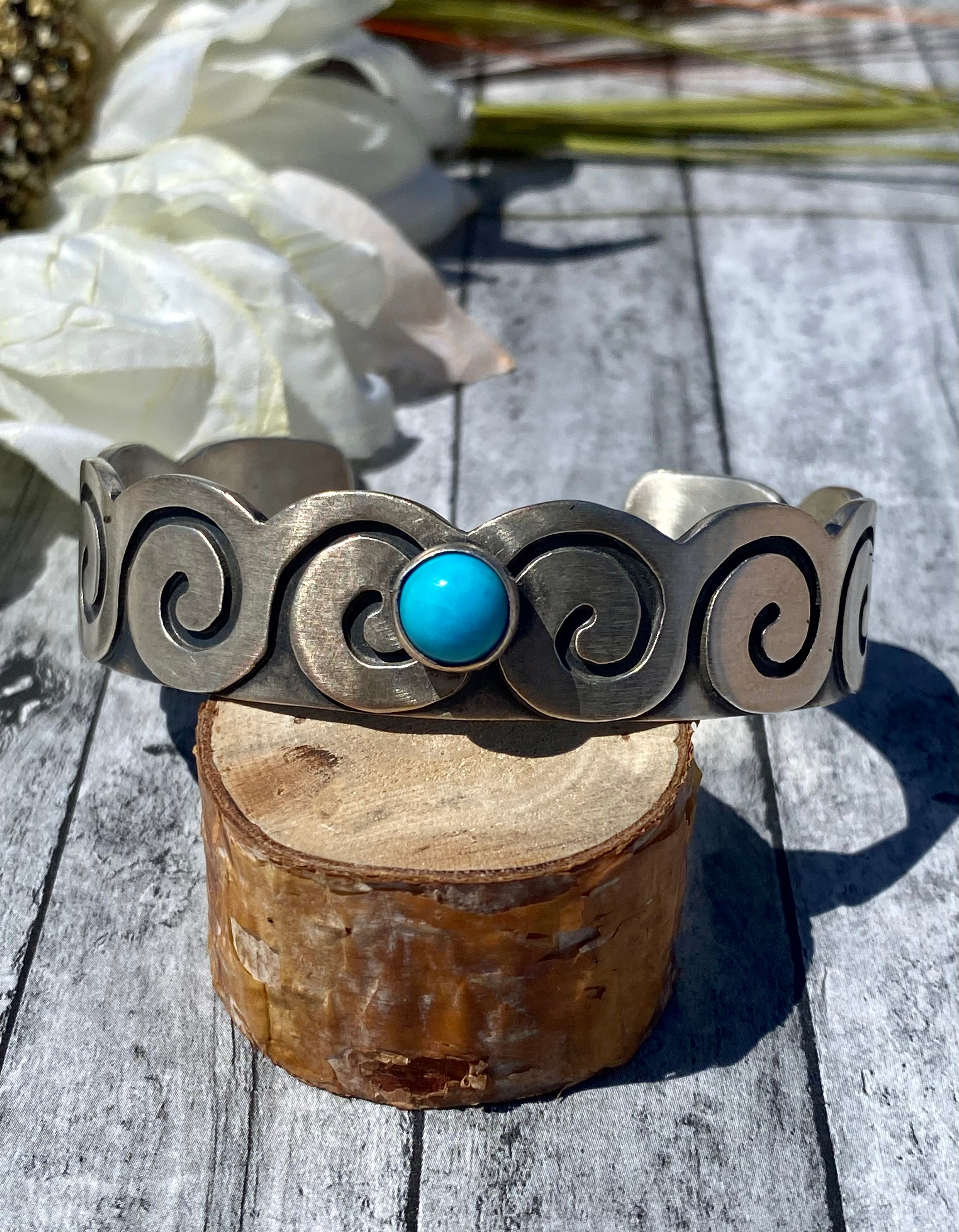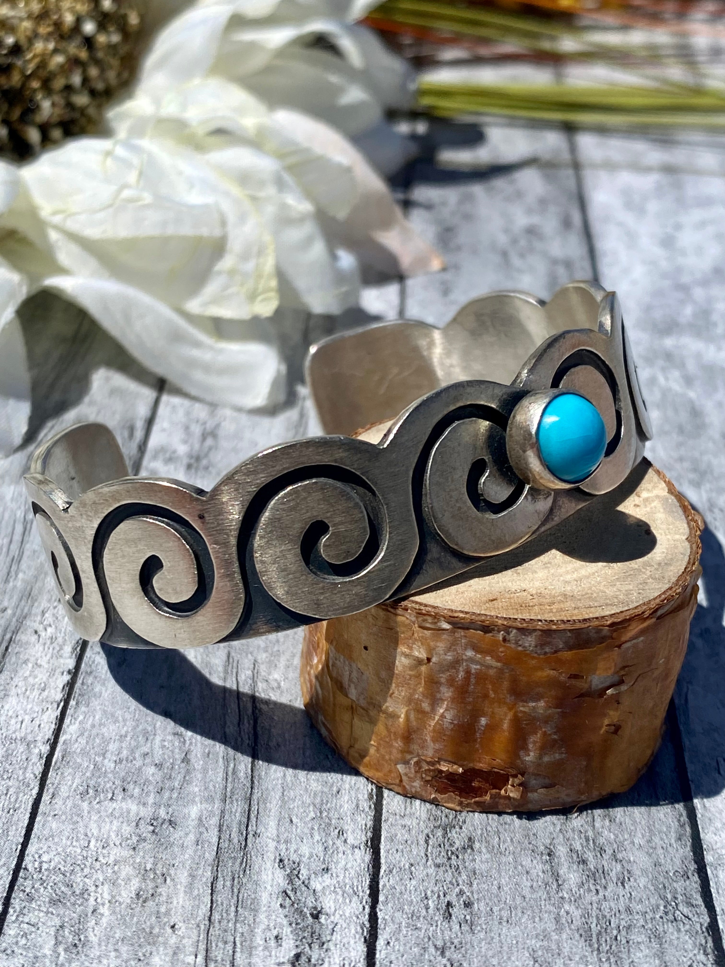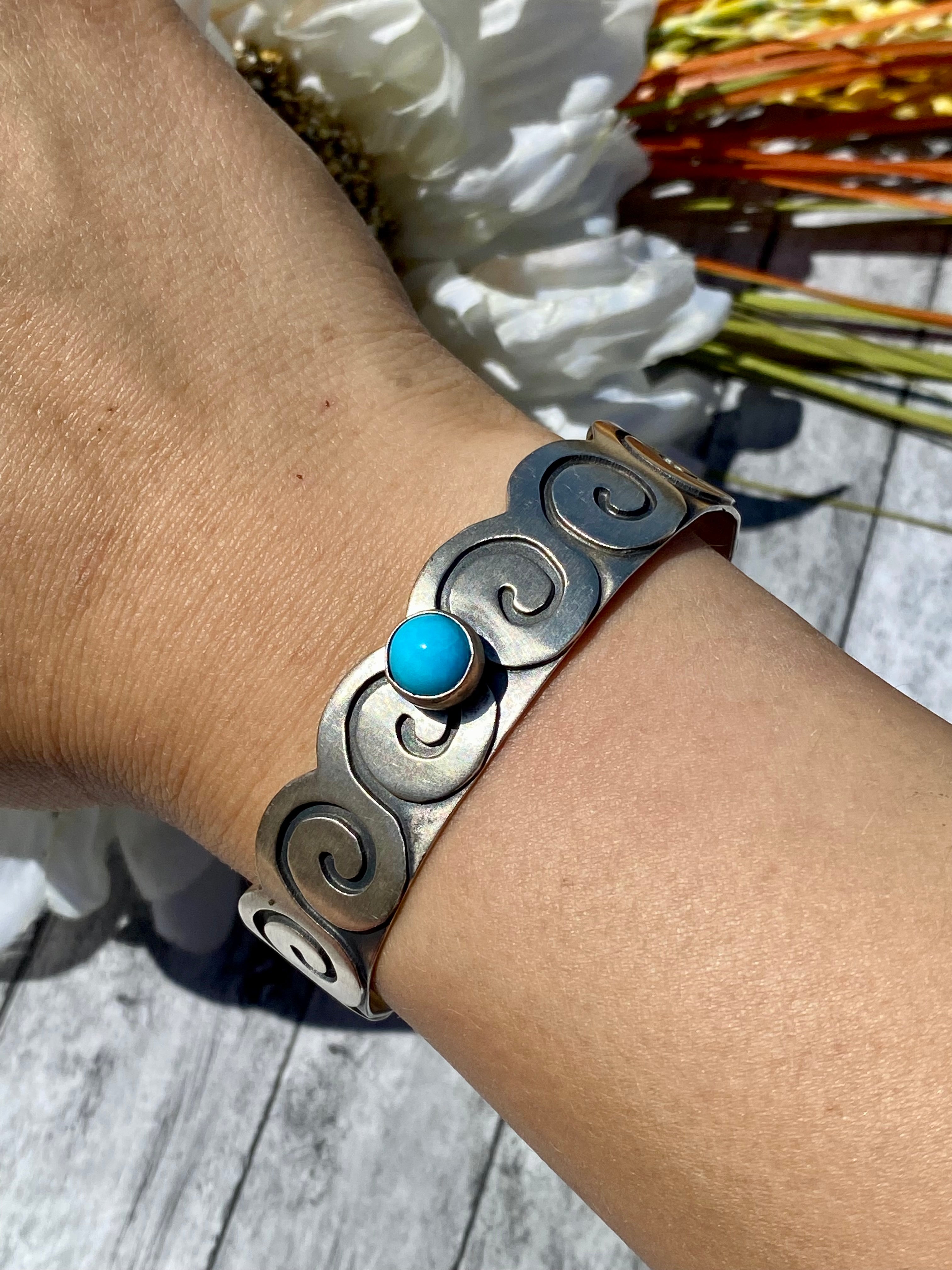 Paul Livingston Navajo Made Sleeping Beauty Turquoise & Sterling Silver Cuff Bracelet