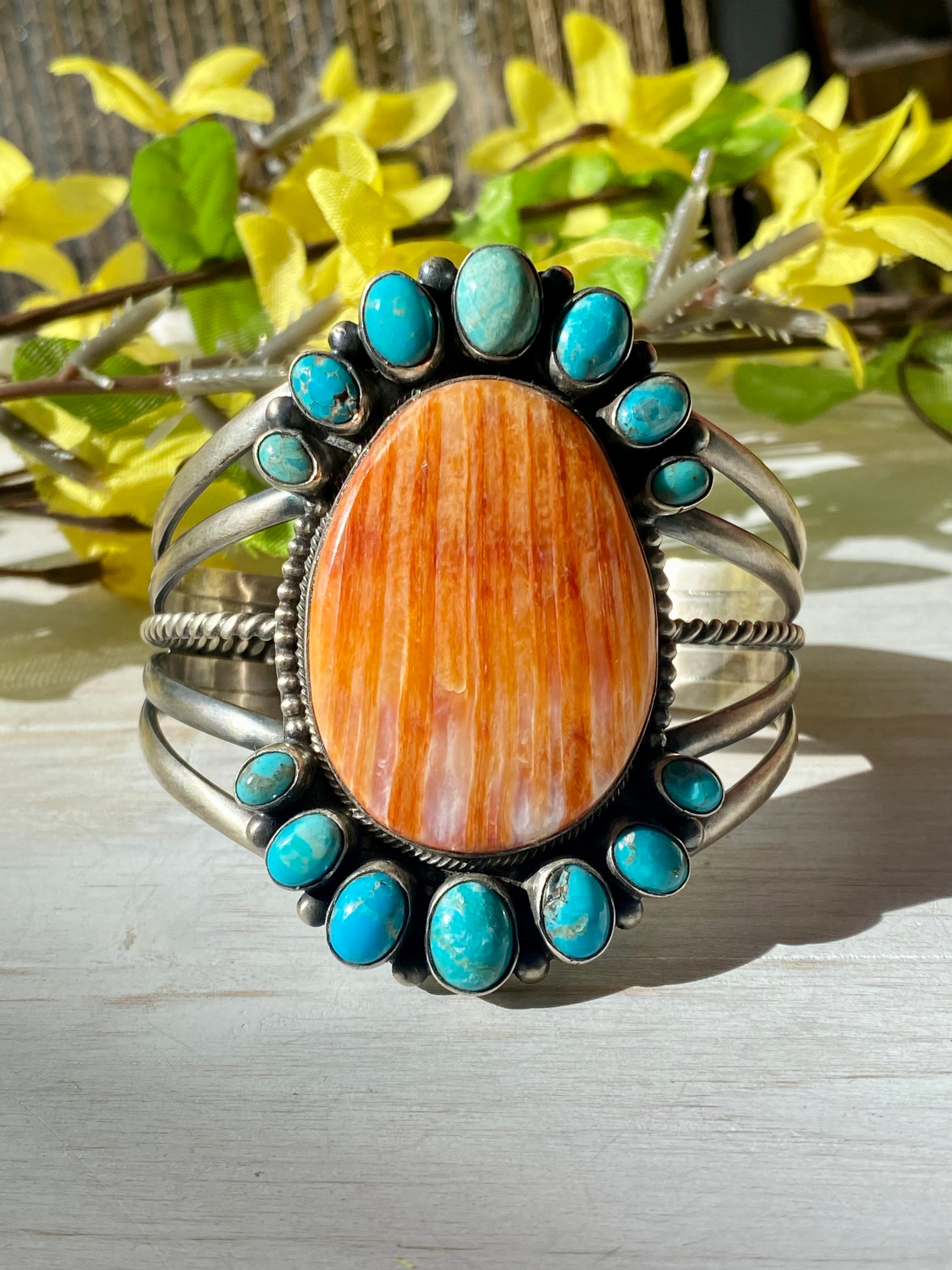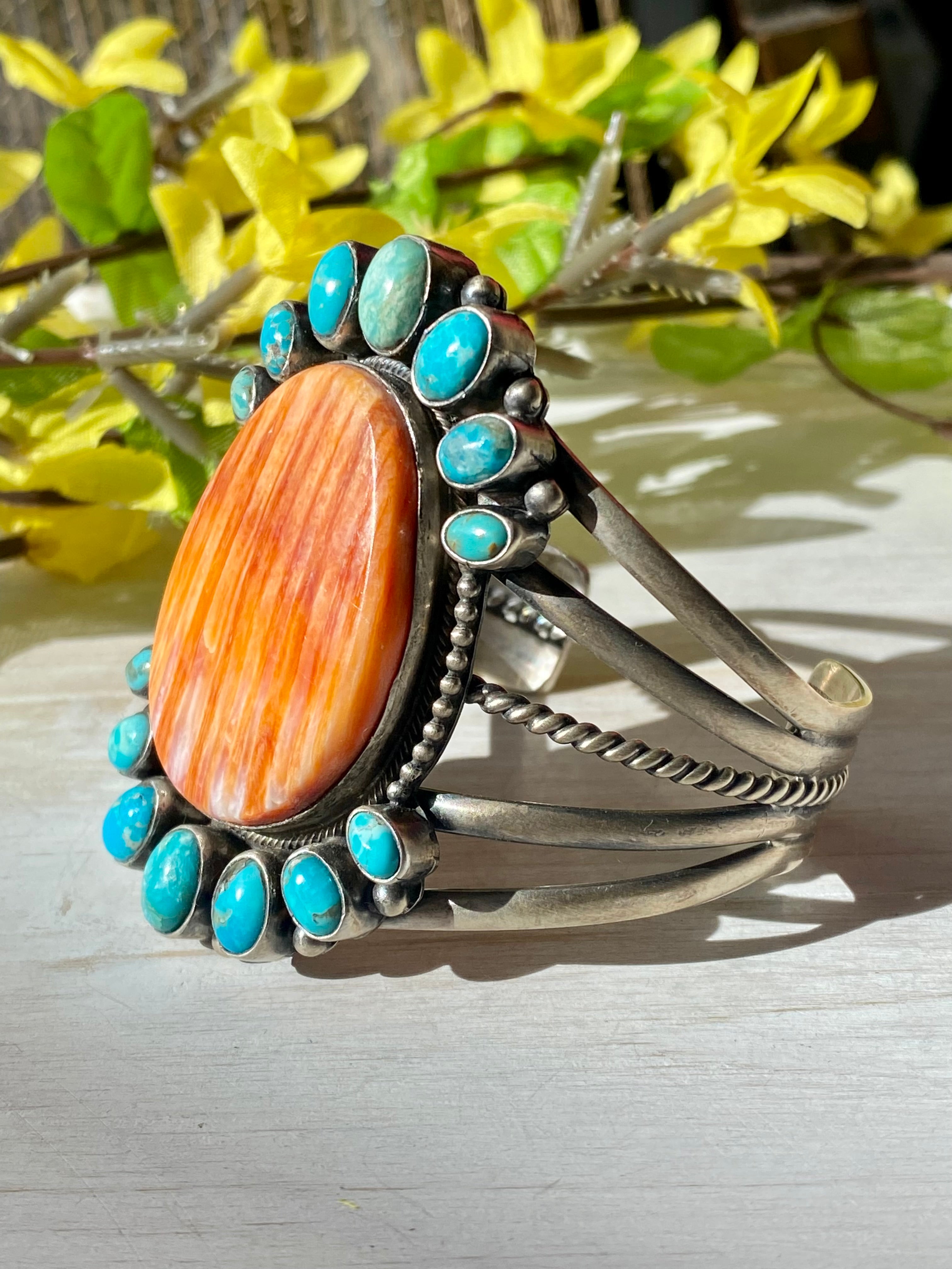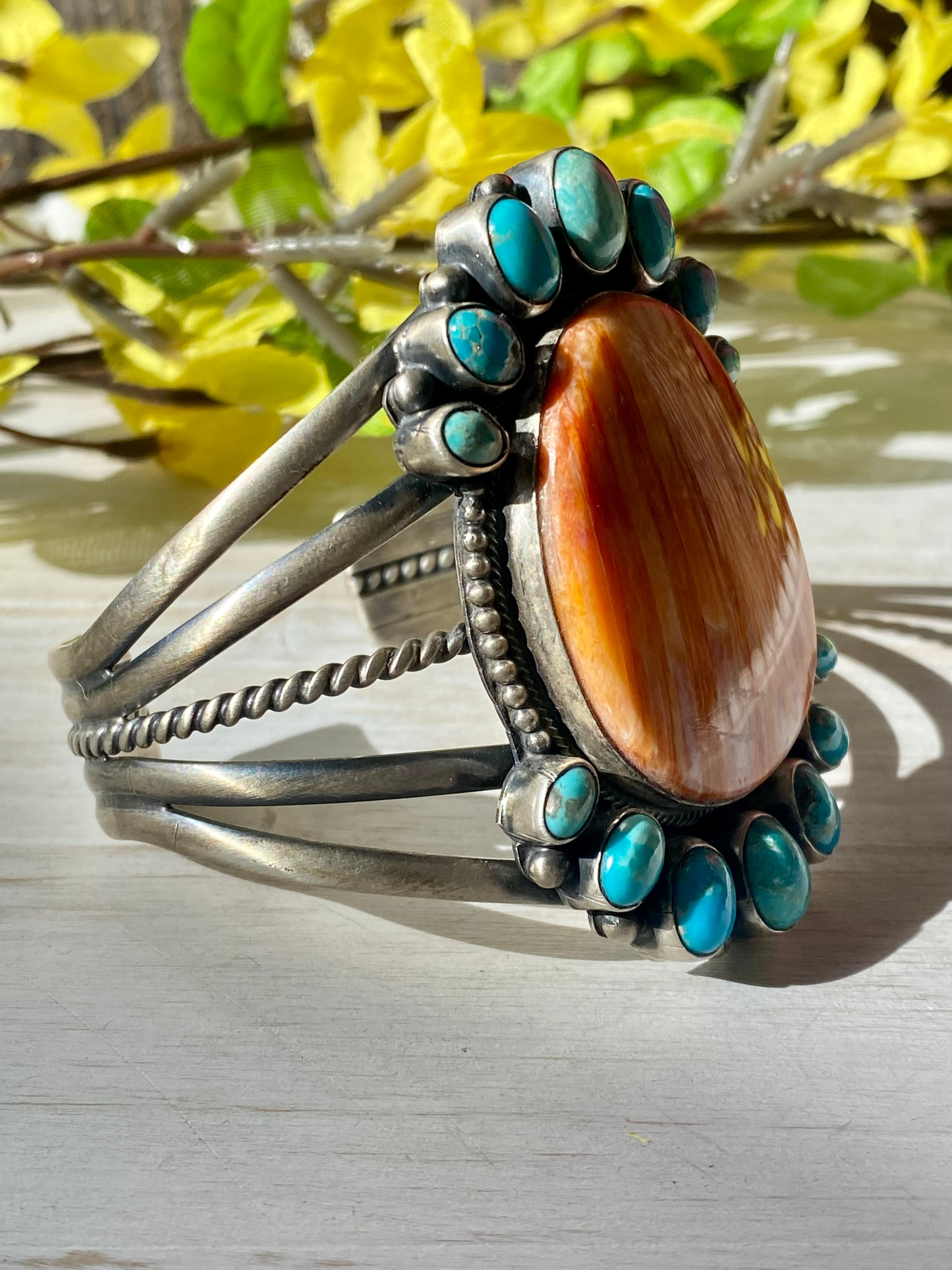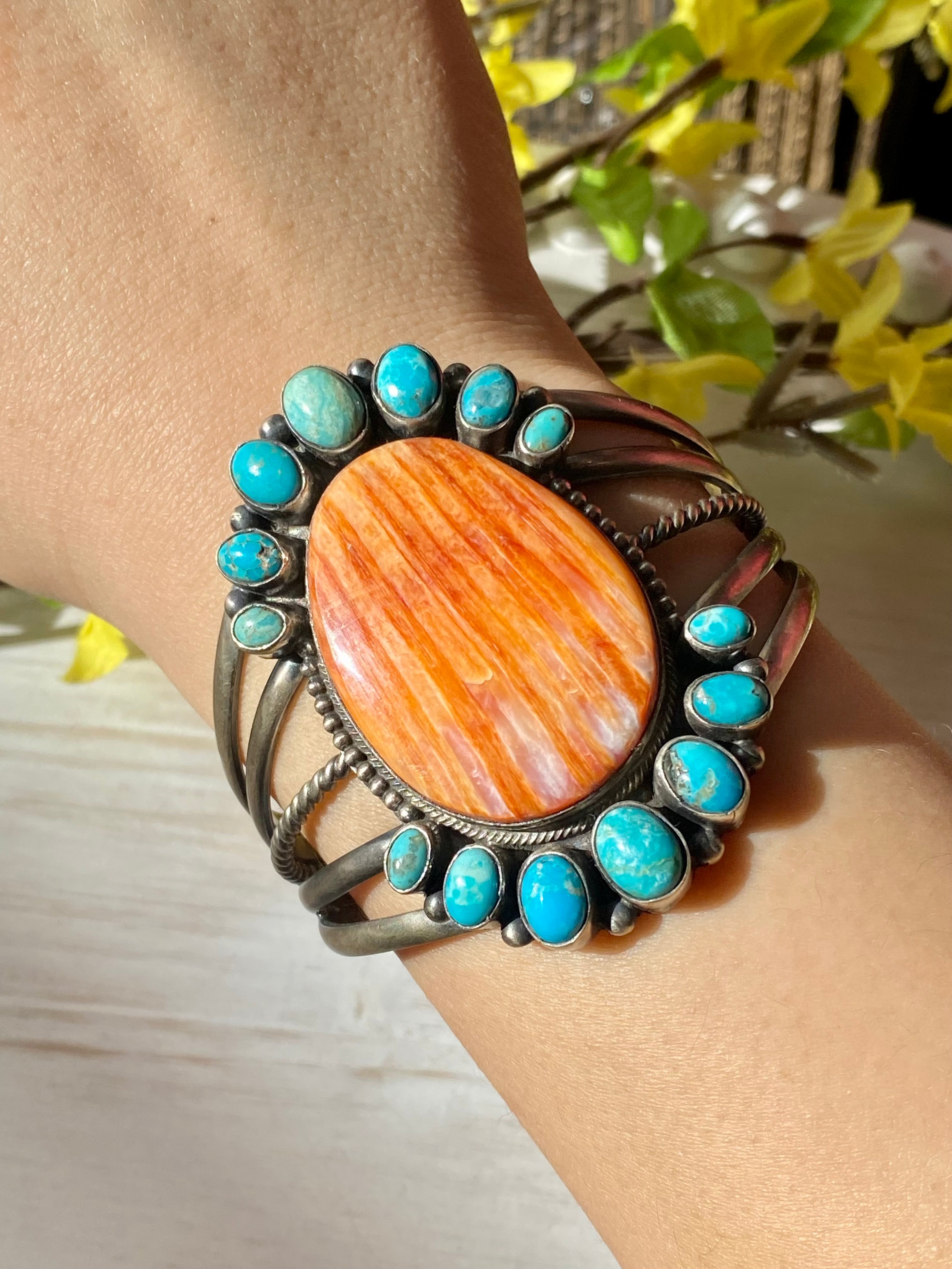 Paul Livingston Spiny Oyster & Kingman Turquoise Sterling Silver Cuff Bracelet