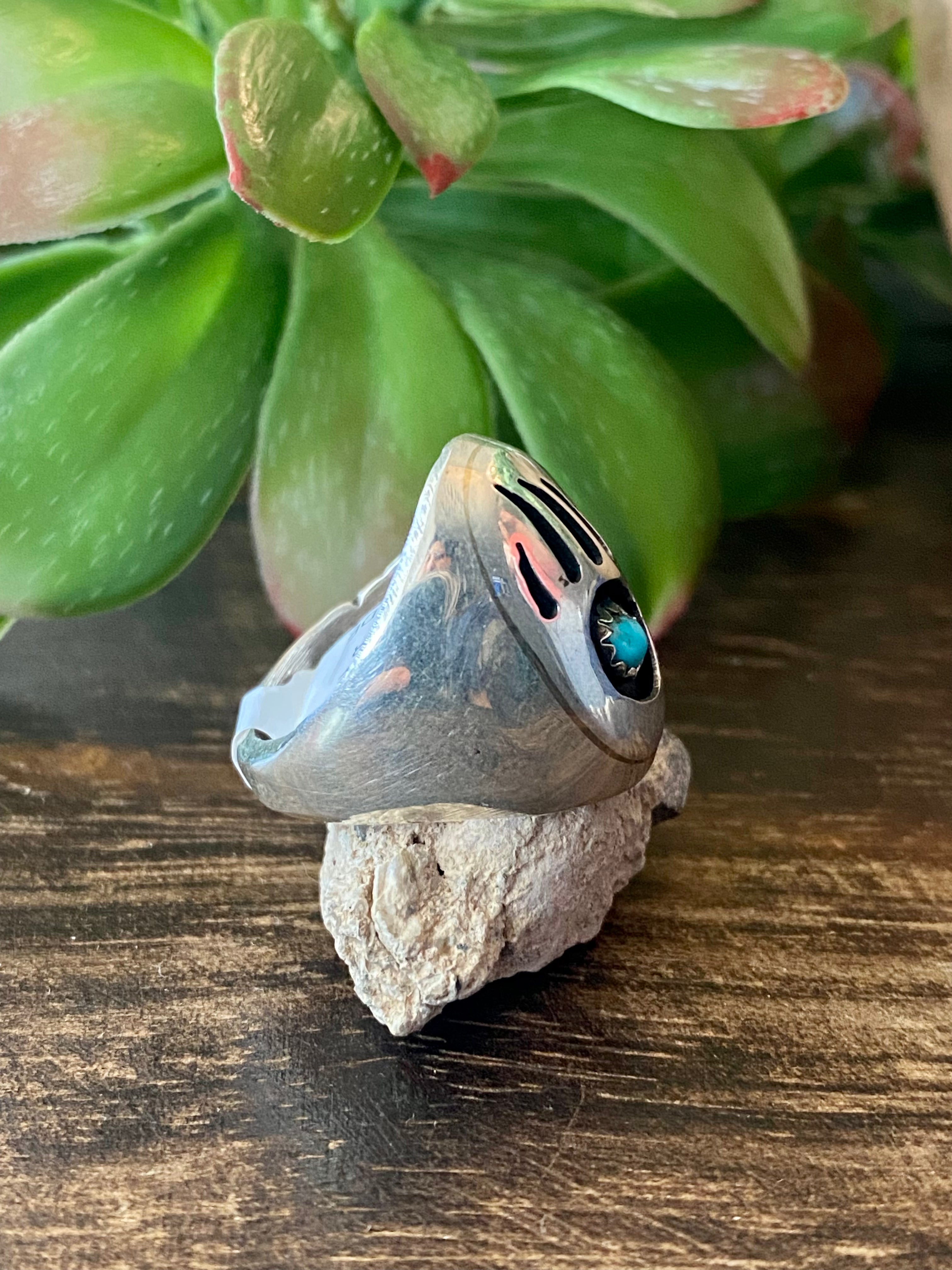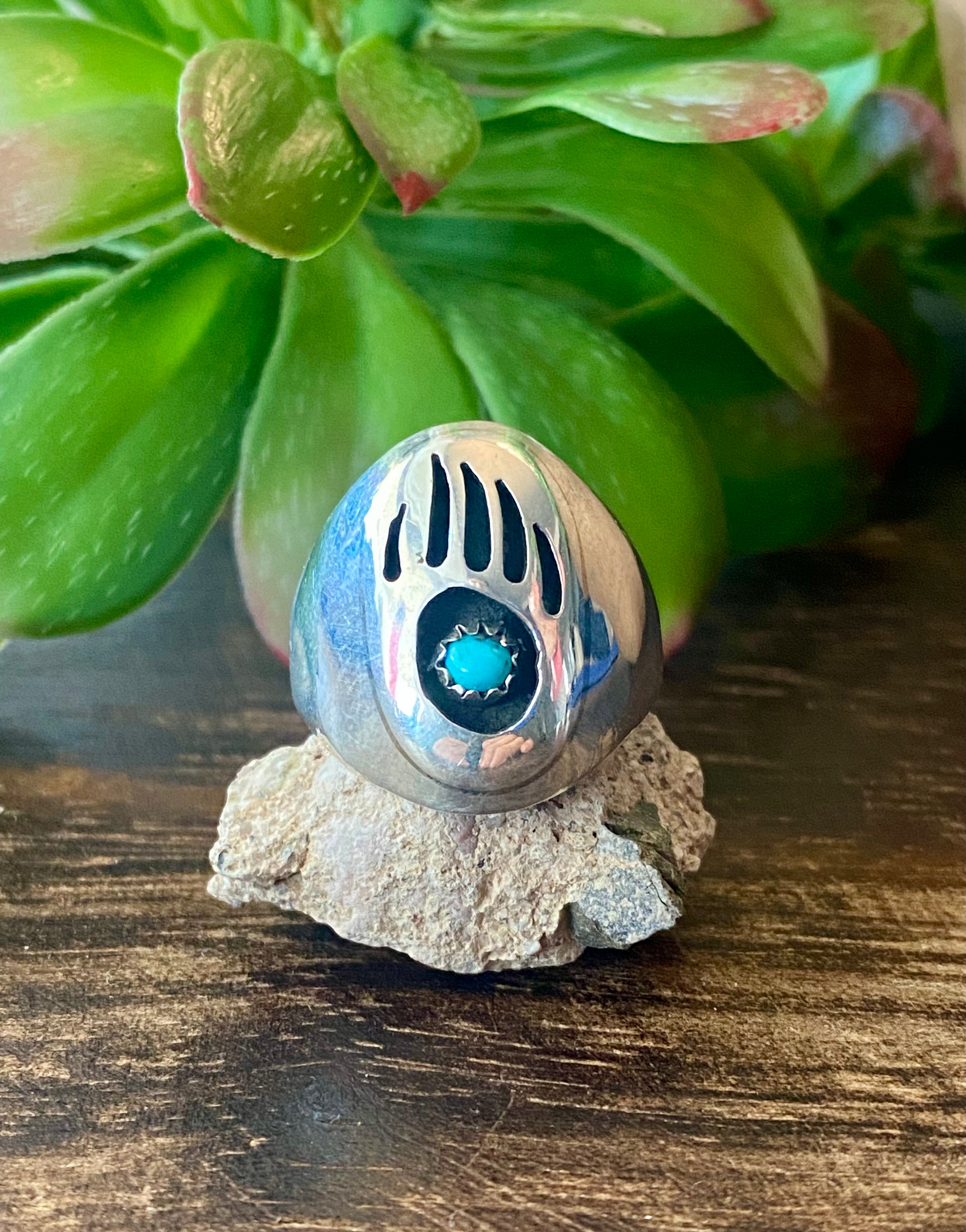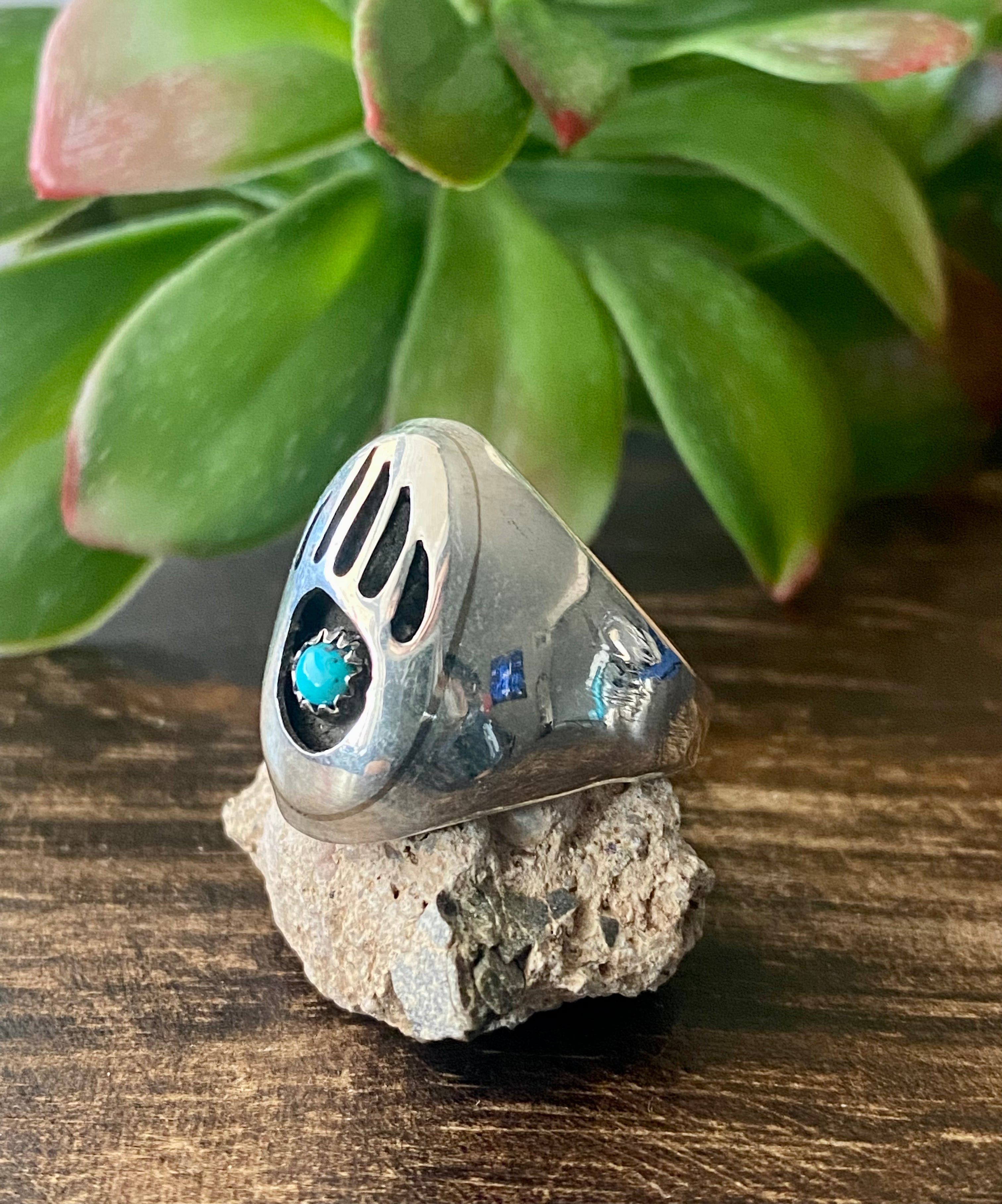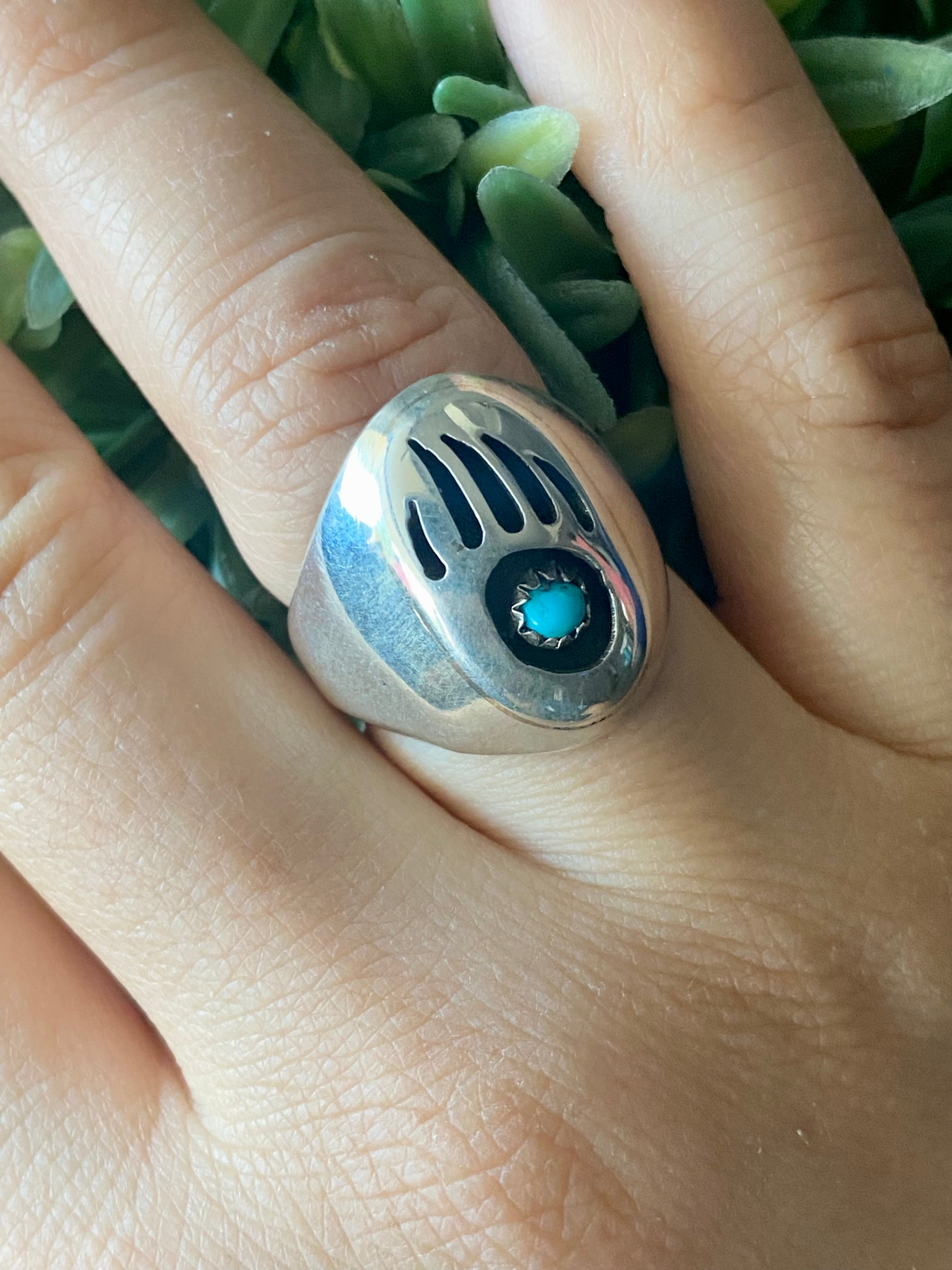 Pearlene Spencer Kingman Turquoise & Sterling Silver Bear Claw Ring Size 8.75